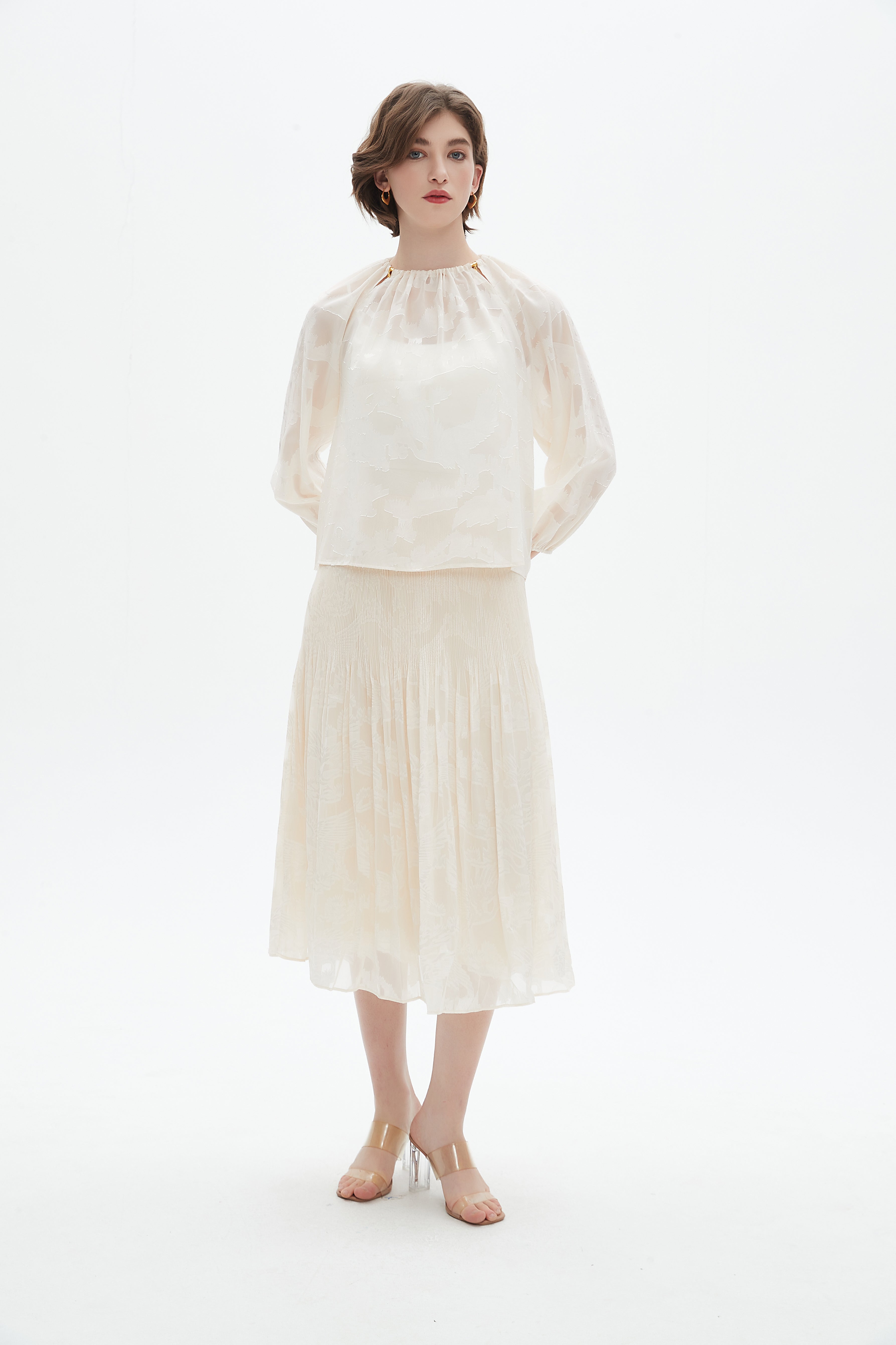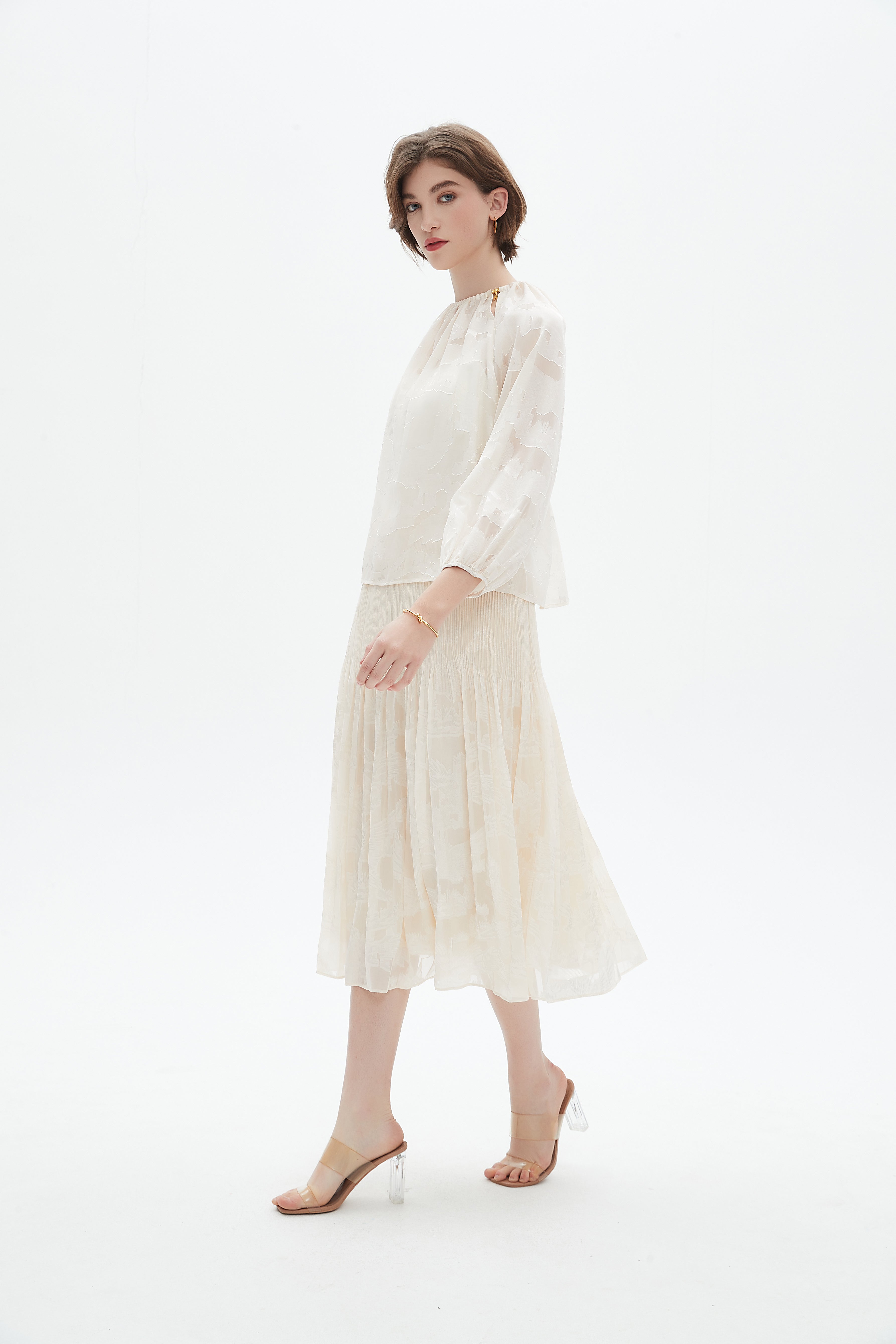 تنورة ميدي نسائية بيلسيه مطرزة بنقوش ورود