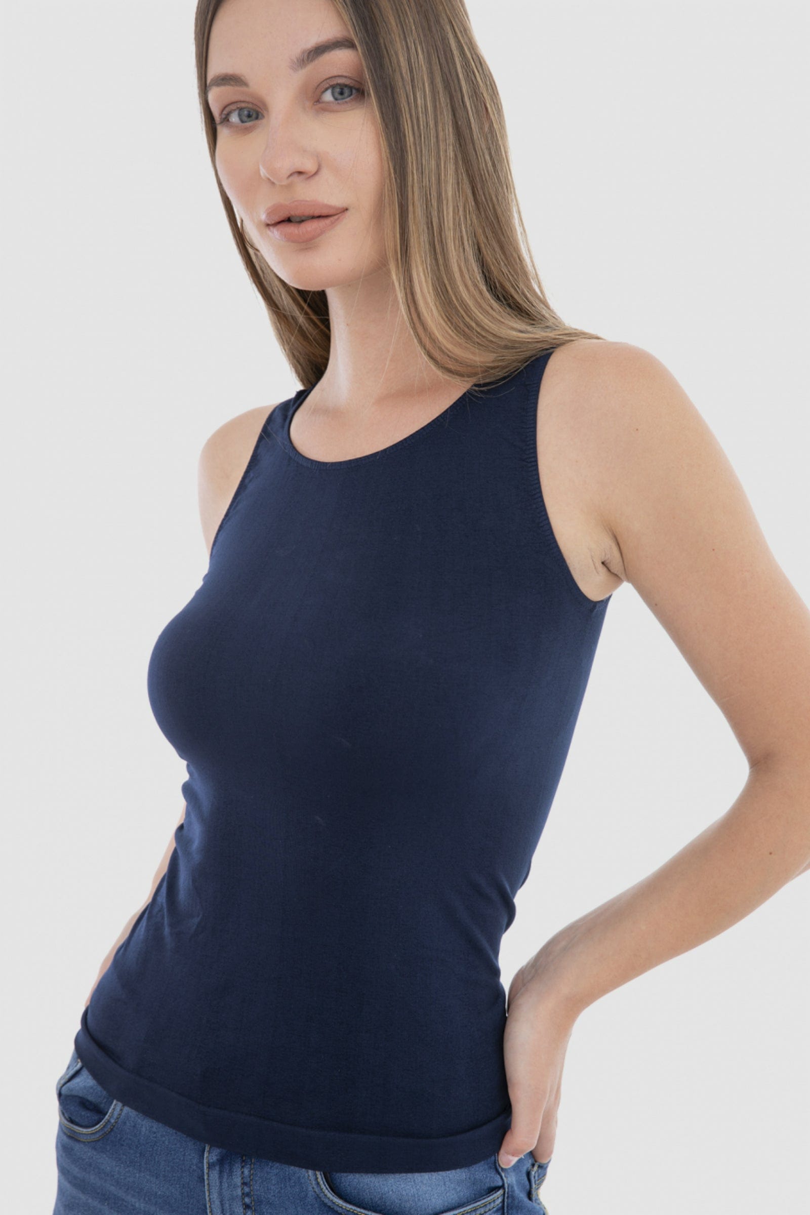 بلوزة سادة كت مايكروفايبر بياقة دائرية