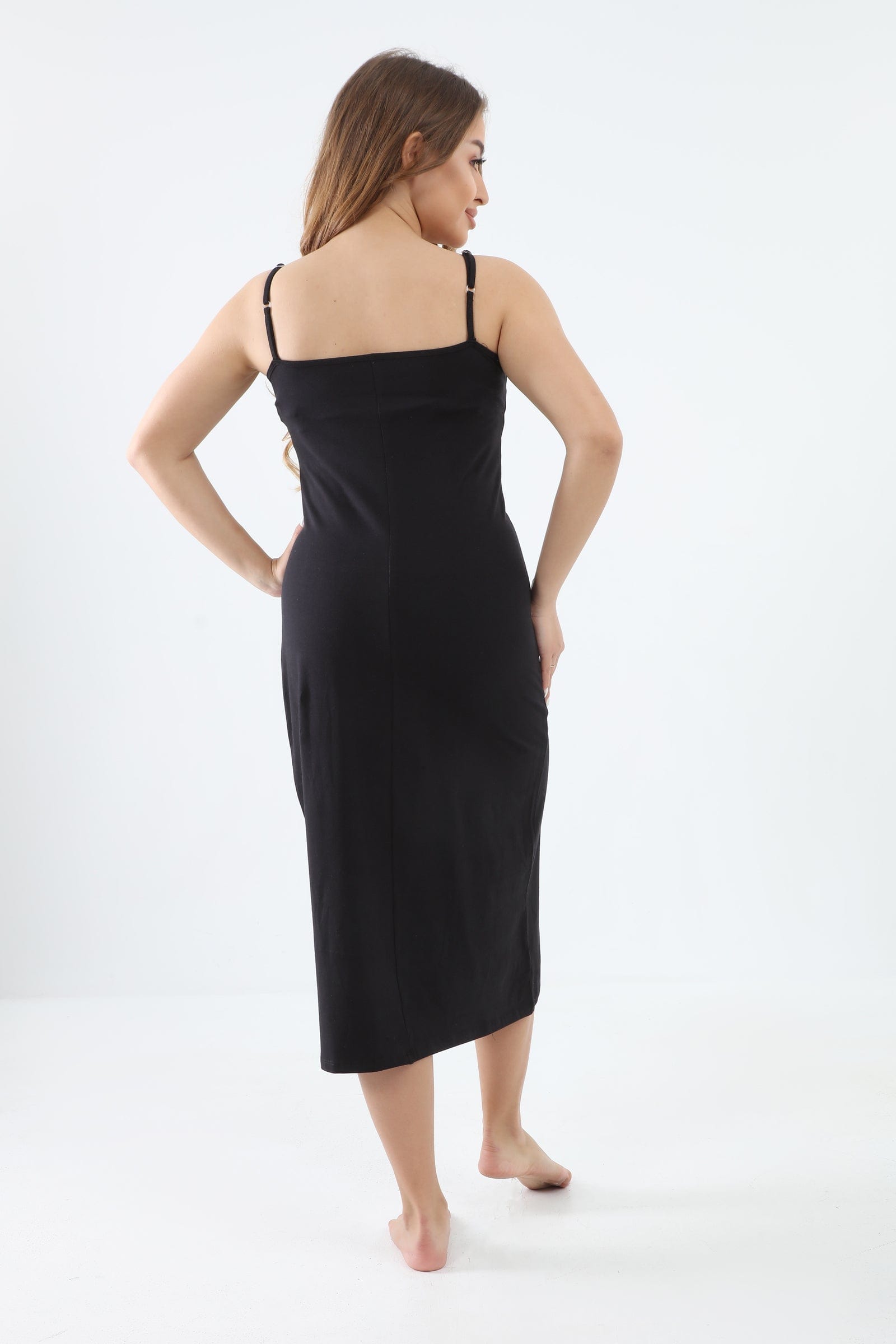 تبحثين عن فستان أسود عملي وأنثوي للخروجات اليومية؟ هذا الفستان رائع إن كنتِ تفضلين قطعة بسيطة تبرز شكل الجسم. القماش رفيع وخفيف، بلا بطانة، فستشعرين بالراحة في الأيام الحارة ويمكن تنسيقه بطبقات في الطقس البارد. القصة ضيقة بطابع بودي كون تطلع منحنياتك بشكل أنيق، والطول ميدي يعطي توازن بين الجرأة والعملية. الحمالات الرفيعة وبلا أكمام تمنح مظهراً ناعماً وأنثوياً، والتصميم سادة وخالٍ من الطباعة ليبقى قطعة متعددة الاستخدامات. لا يحتوي على إغلاق أو جيوب أو حزام، ما يجعله سهل الارتداء والخلع. مناسب للمناسبات الكاجوال واليومية، مثالي للخروجات الرومانسية أو نهار العمل غير الرسمي، وستحبين كيف يتحرك معك ويكمل خزانة كل المواسم. اعثري على مقاسك في فاشن السعودية وأضيفي هذه القطعة المتنوعة إلى خزانة ملابسك اليوم.