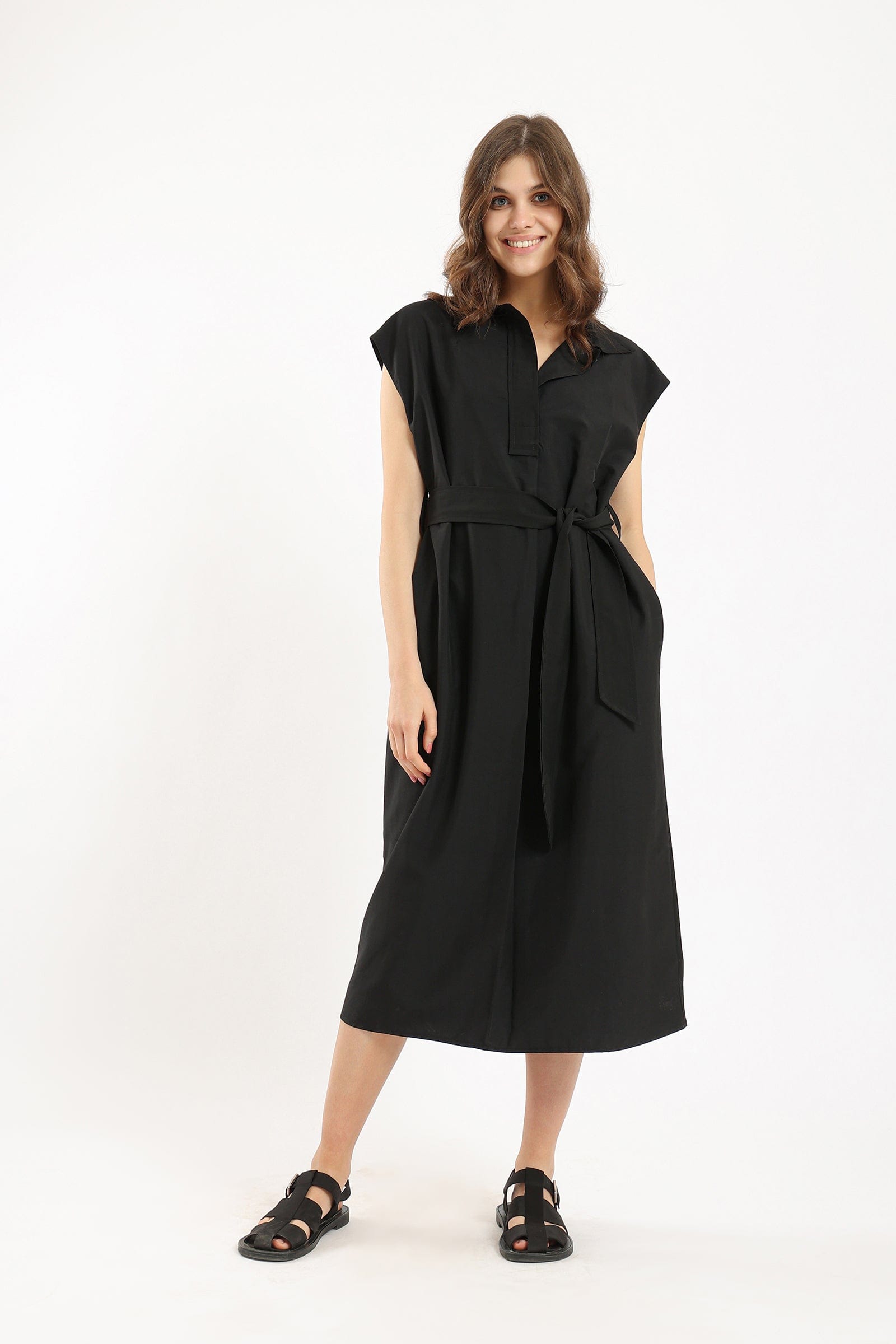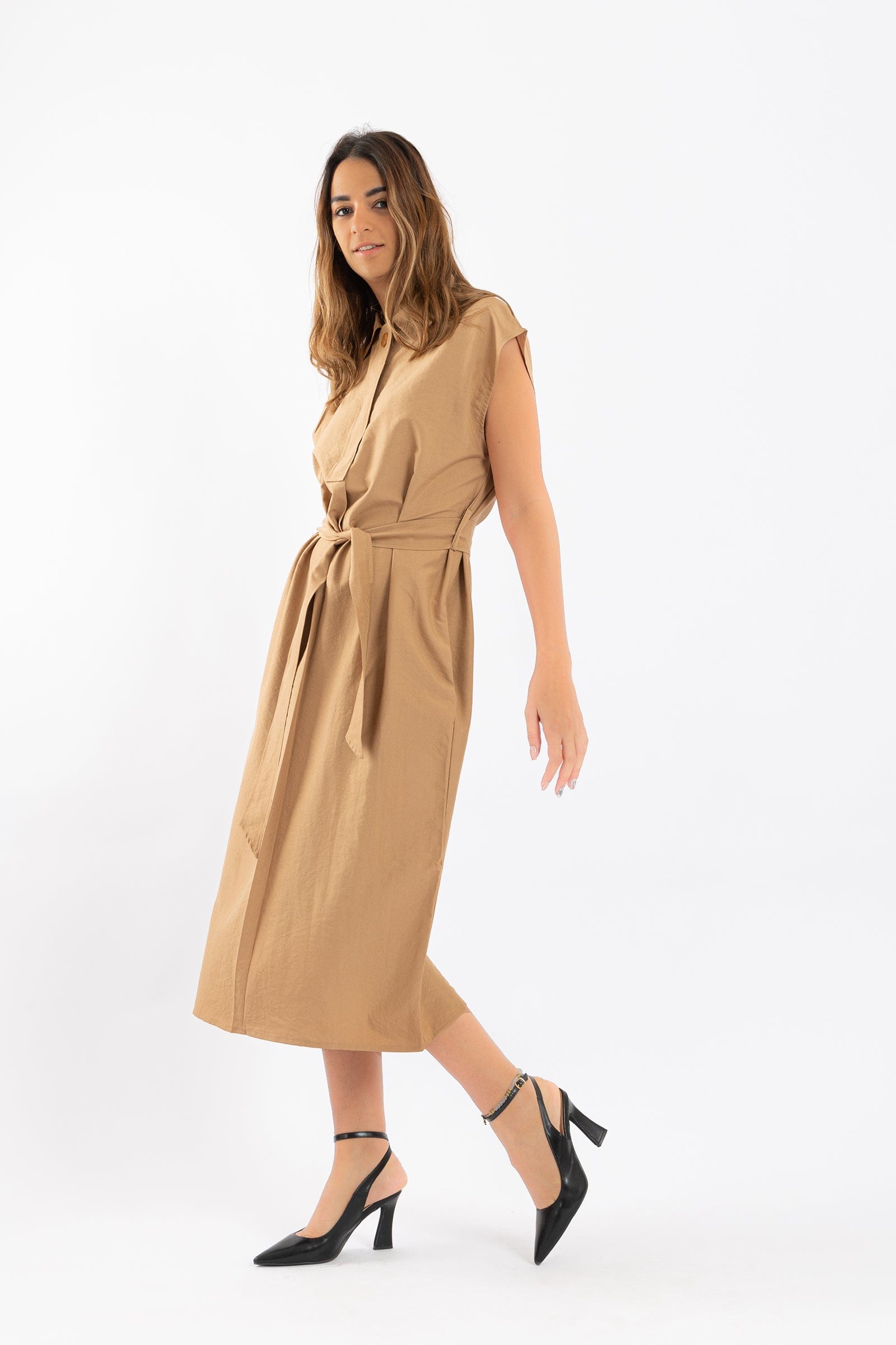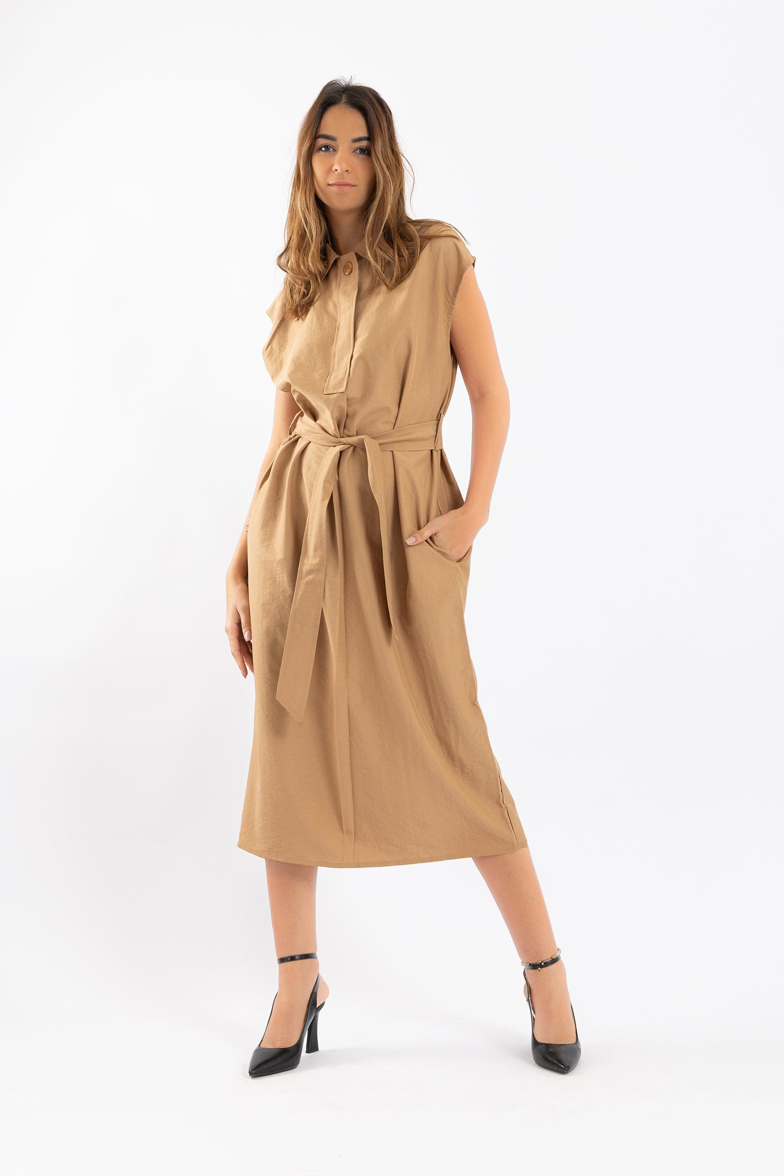 فستان ميدي بدون اكمام بحزام على الخصر نسائي