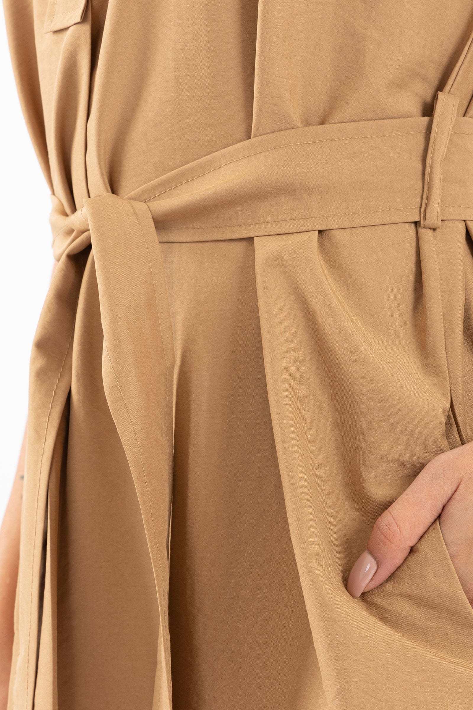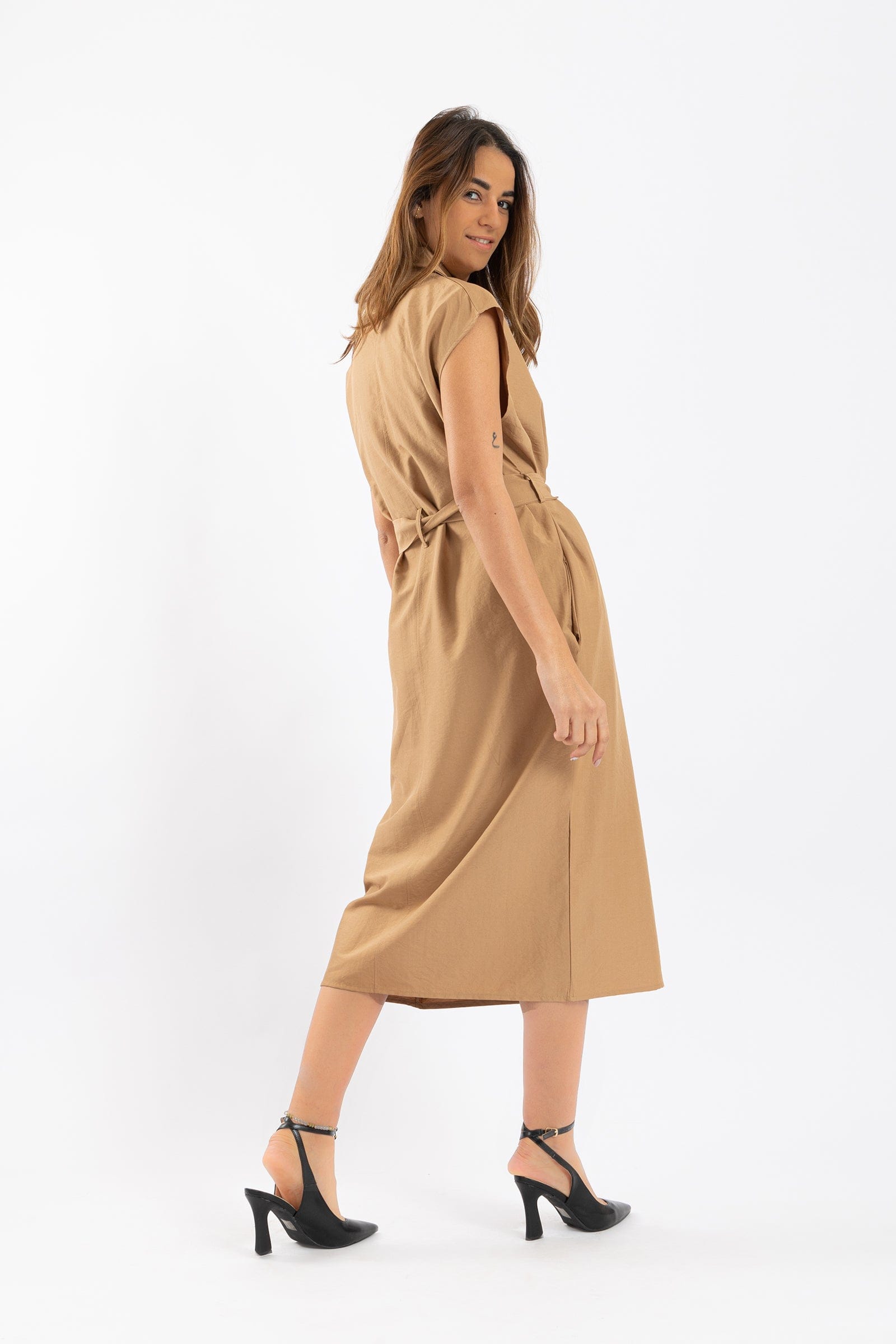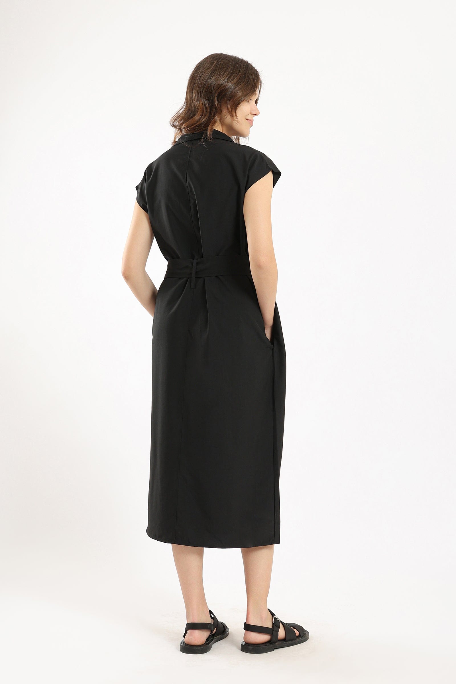 فستان ميدي بدون اكمام بحزام على الخصر نسائي