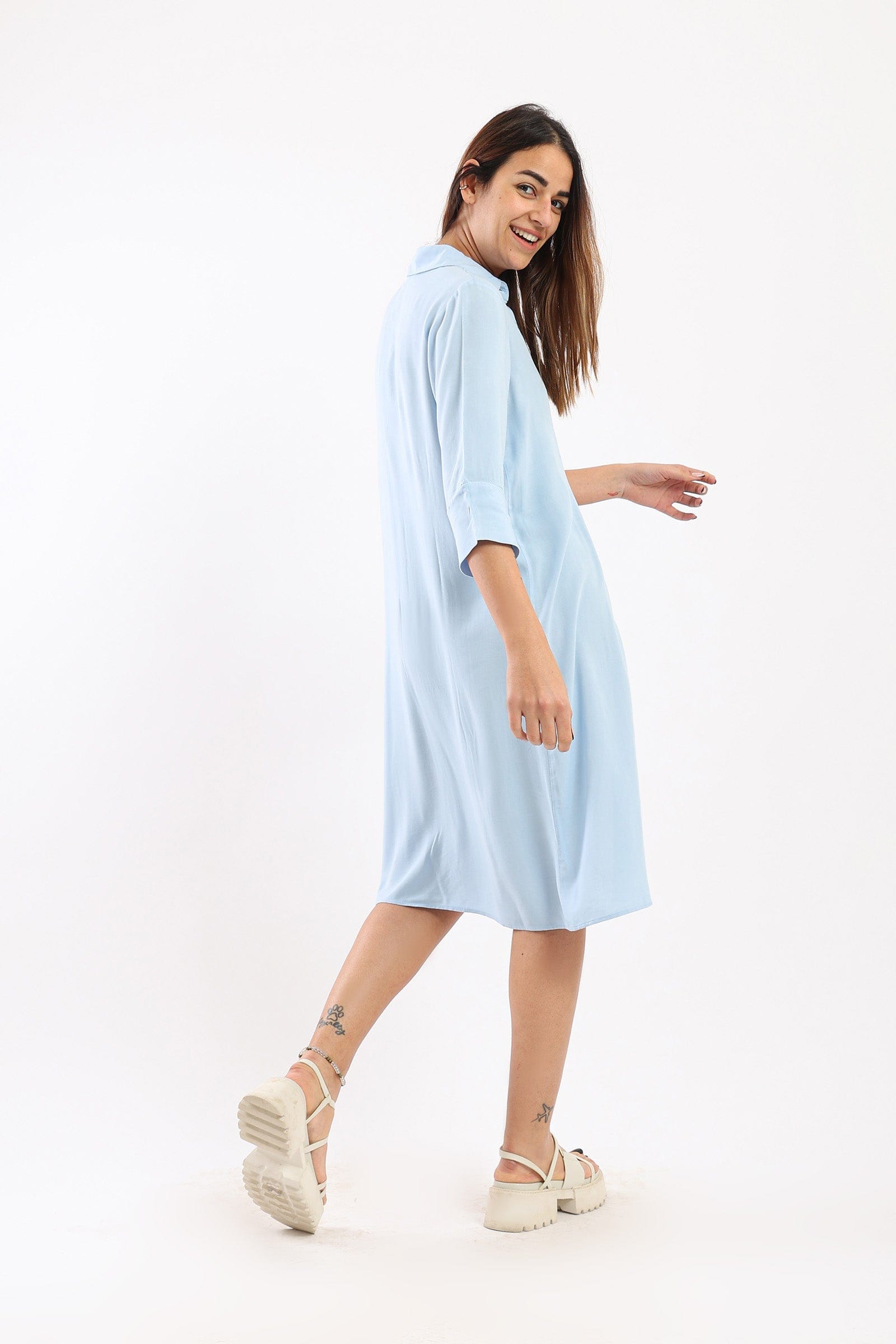 فستان قصير قميص بفتحة مخفية بأكمام 3/4