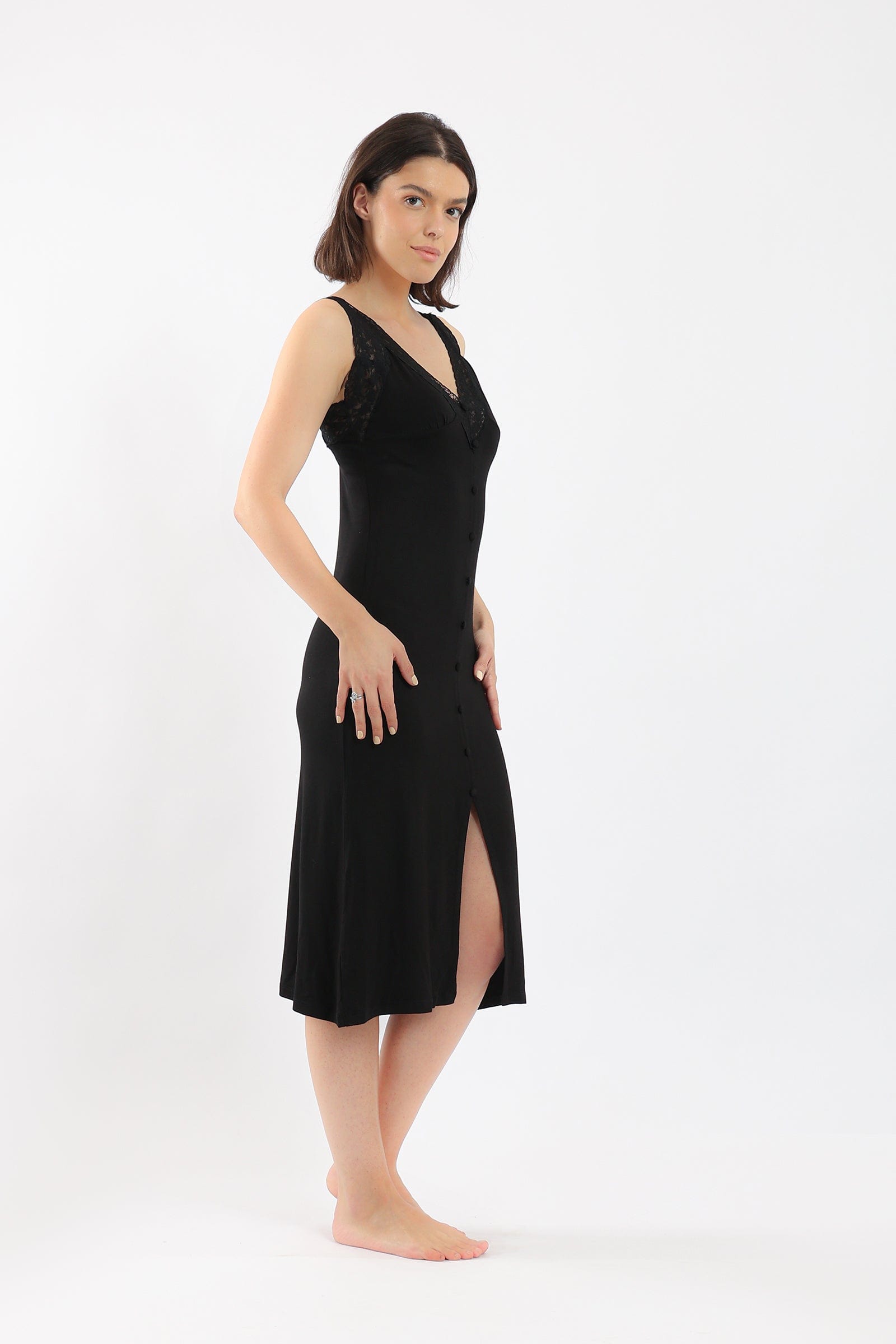 ثوب نوم بأزرار أمامية مع حزام دانتيل عريض