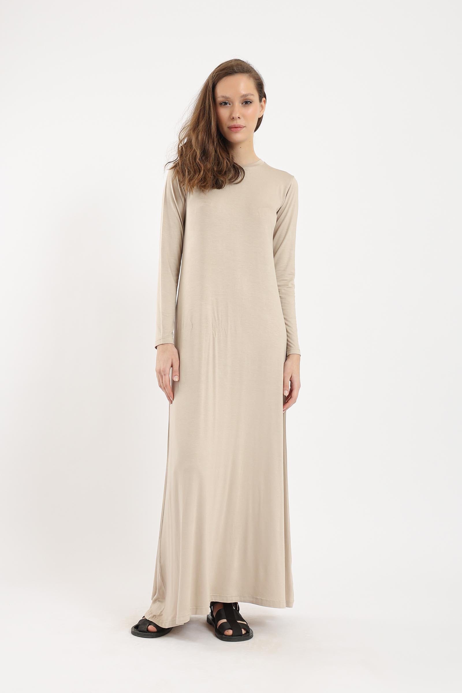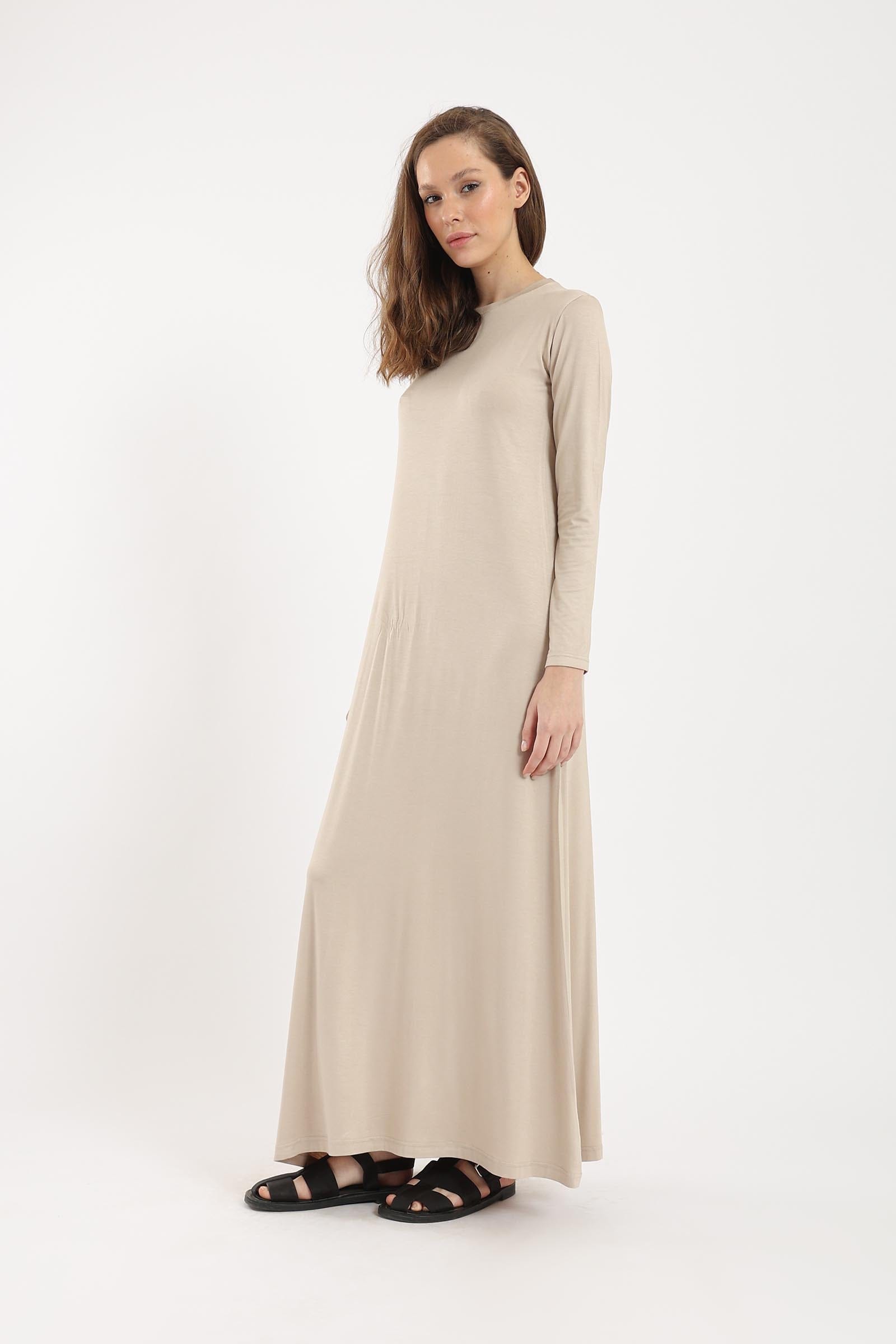 فستان ماكسي كم طويل سادة نسائي
