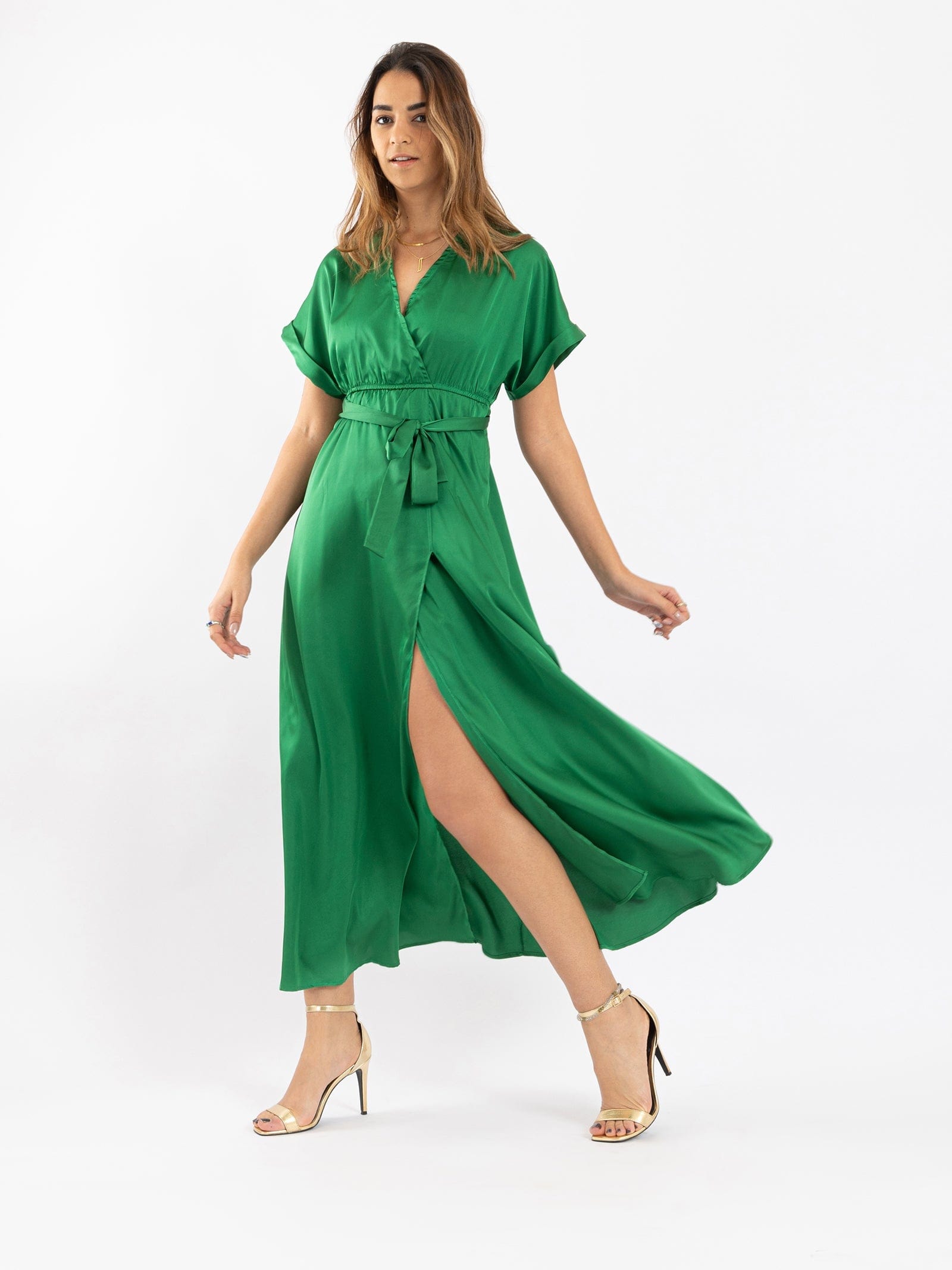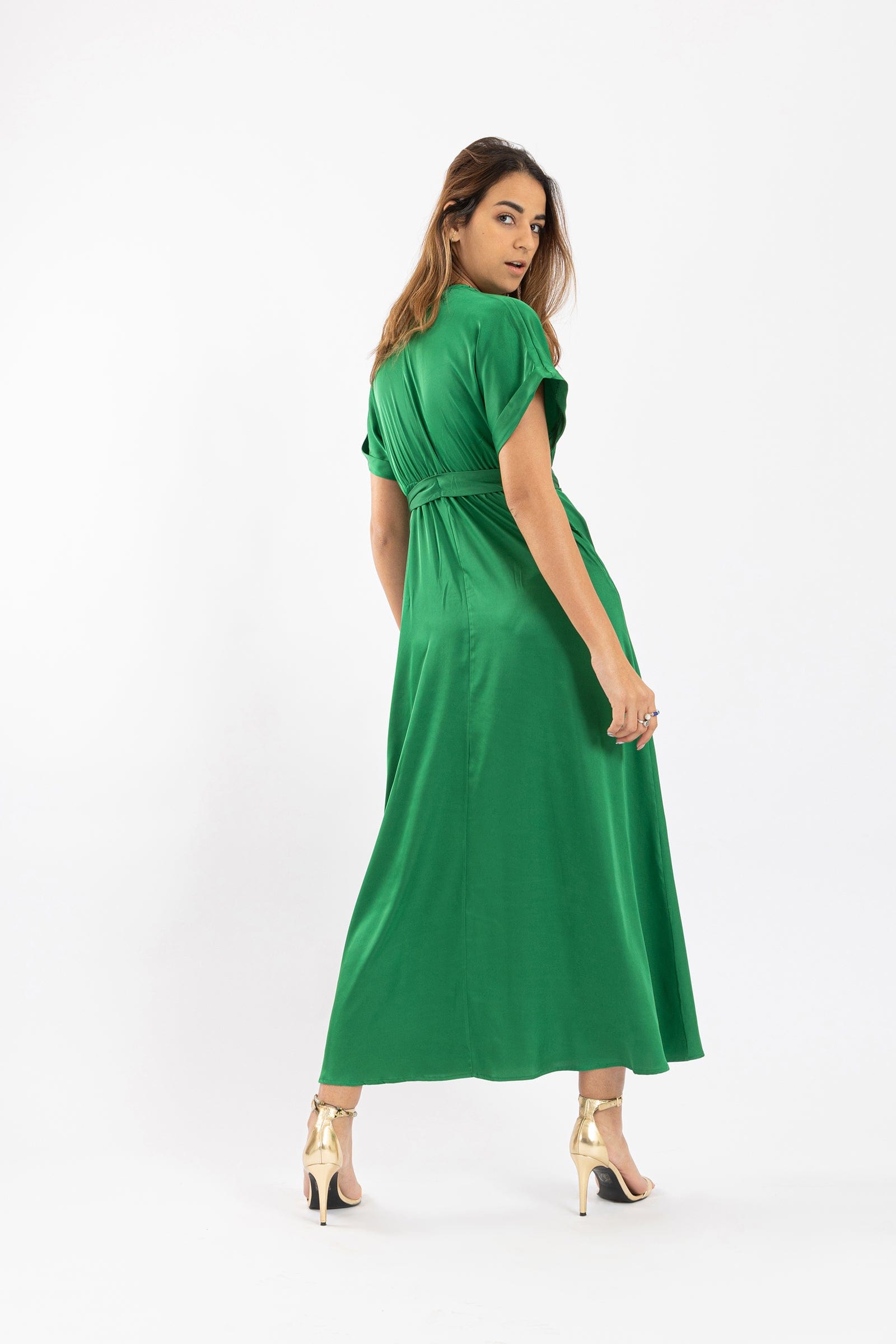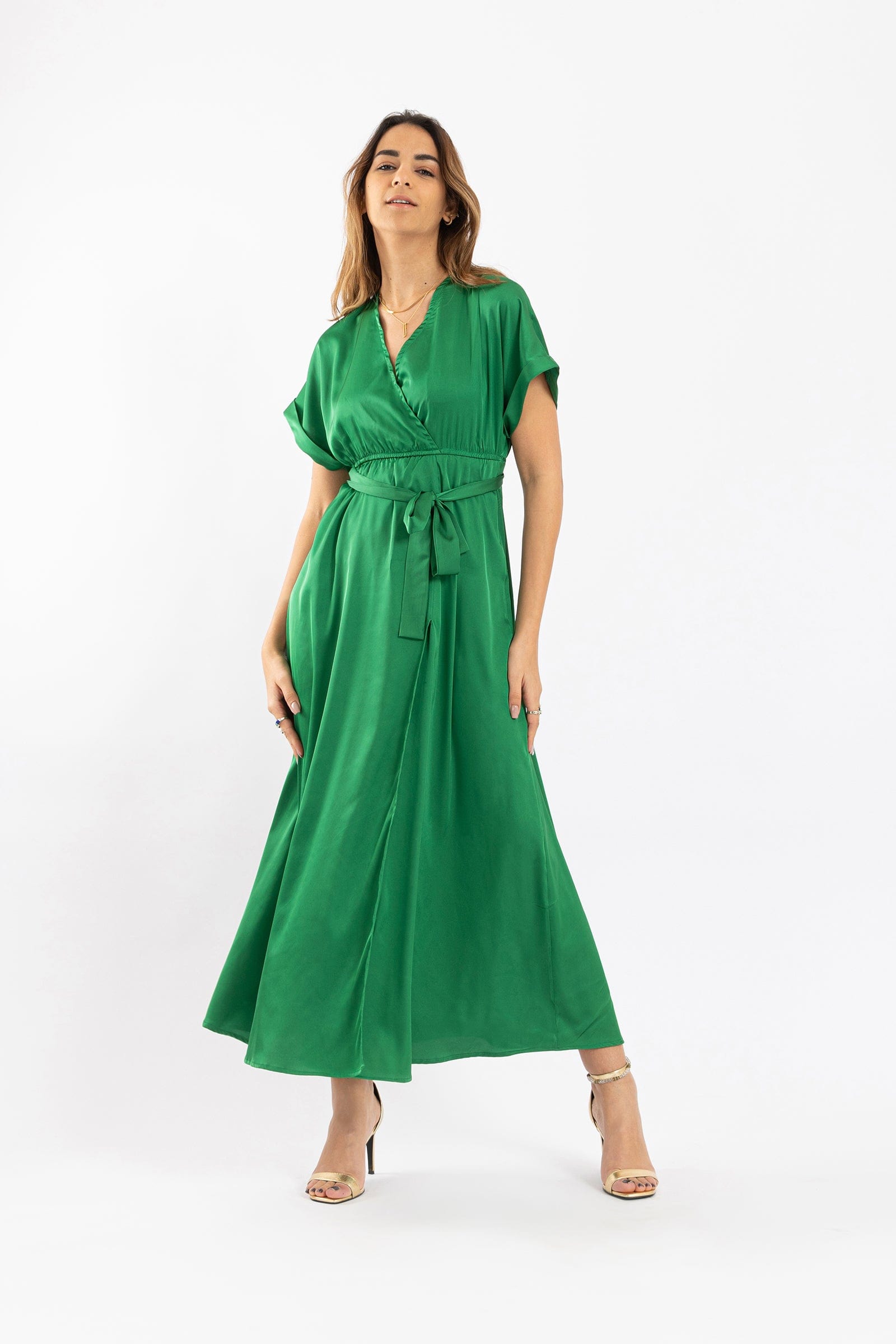 إذا أردتِ فستانًا أنثويًا يناسب خزانة الربيع والخريف، فهذه القطعة خيار جميل. القماش بسماكة متوسطة ويأتي بدون بطانة، يمنحك دفء خفيف لكنه لا يثقل المظهر. القصة ملفوفة بحزام مرفق يحدد الخصر بطريقة ناعمة والإغلاق ذاته يسهّل الارتداء، وياقة V تضيف لمسة أنثوية. الطول ماكسي مع شق جانبي يخلق حركة جذابة ستحبينها في المشي. التصميم سادة بلون أخضر هادئ، كم قصير وقصة عادية تناسب الإطلالات الكاجوال واليومية. لا يوجد جيوب، ولا طبعات، مما يجعل الفستان بسيطًا وأنيقًا في آن واحد. مثالي للخروجات الرومانسية أو نزهات القهوة، وستحبين كيف يتحرك معك ويحتفظ بمظهر مرتب طوال اليوم. اعثري على مقاسك في فاشن السعودية وأضيفي هذه القطعة المتنوعة إلى خزانة ملابسك اليوم.