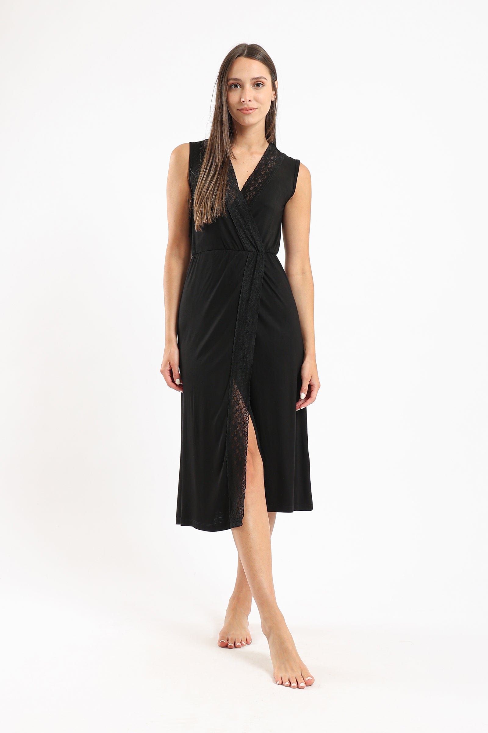 قميص نوم ميدي بشق أمامي من الدانتيل