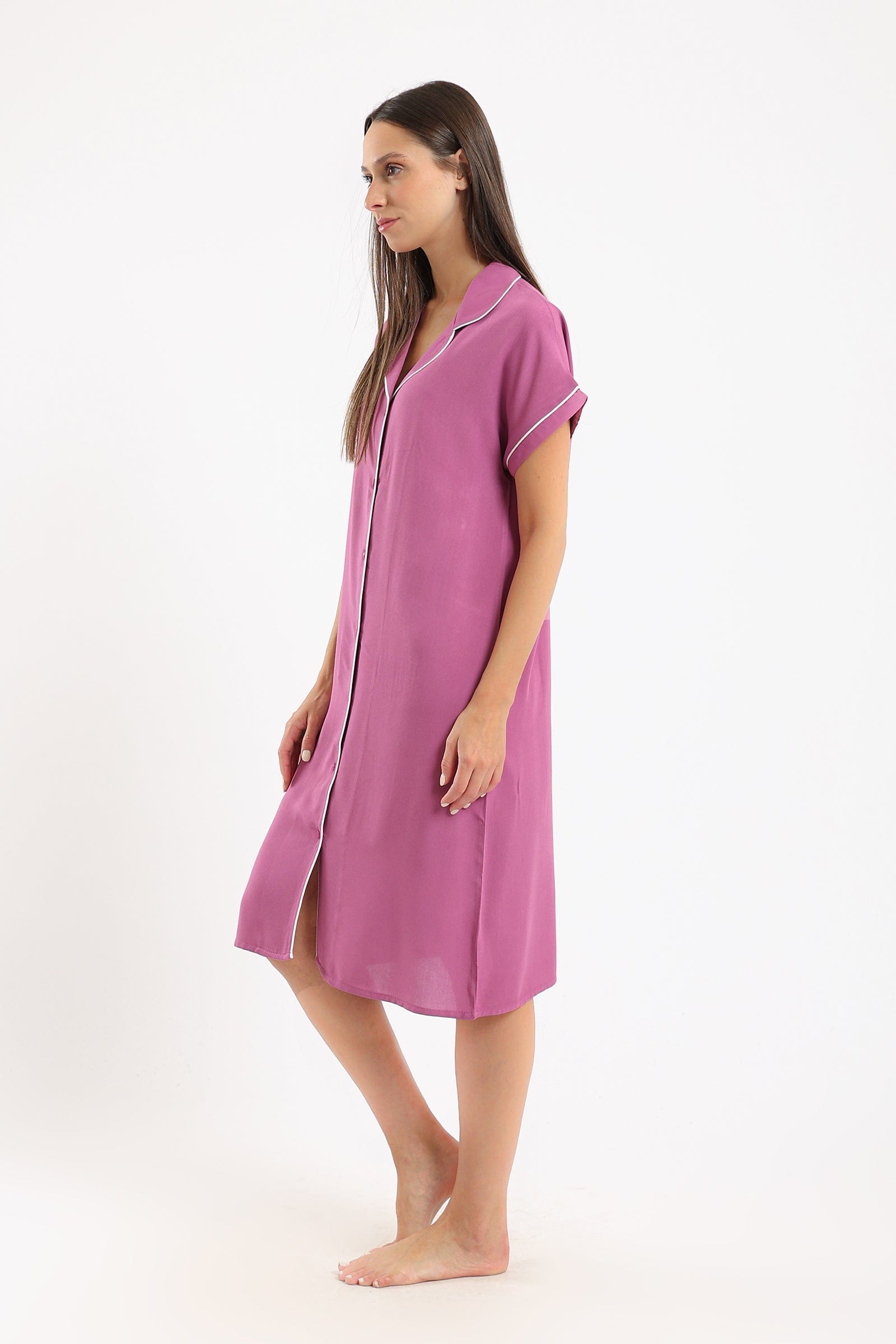 قميص نوم حريمي بأكمام قصيرة بأزرار من الأمام