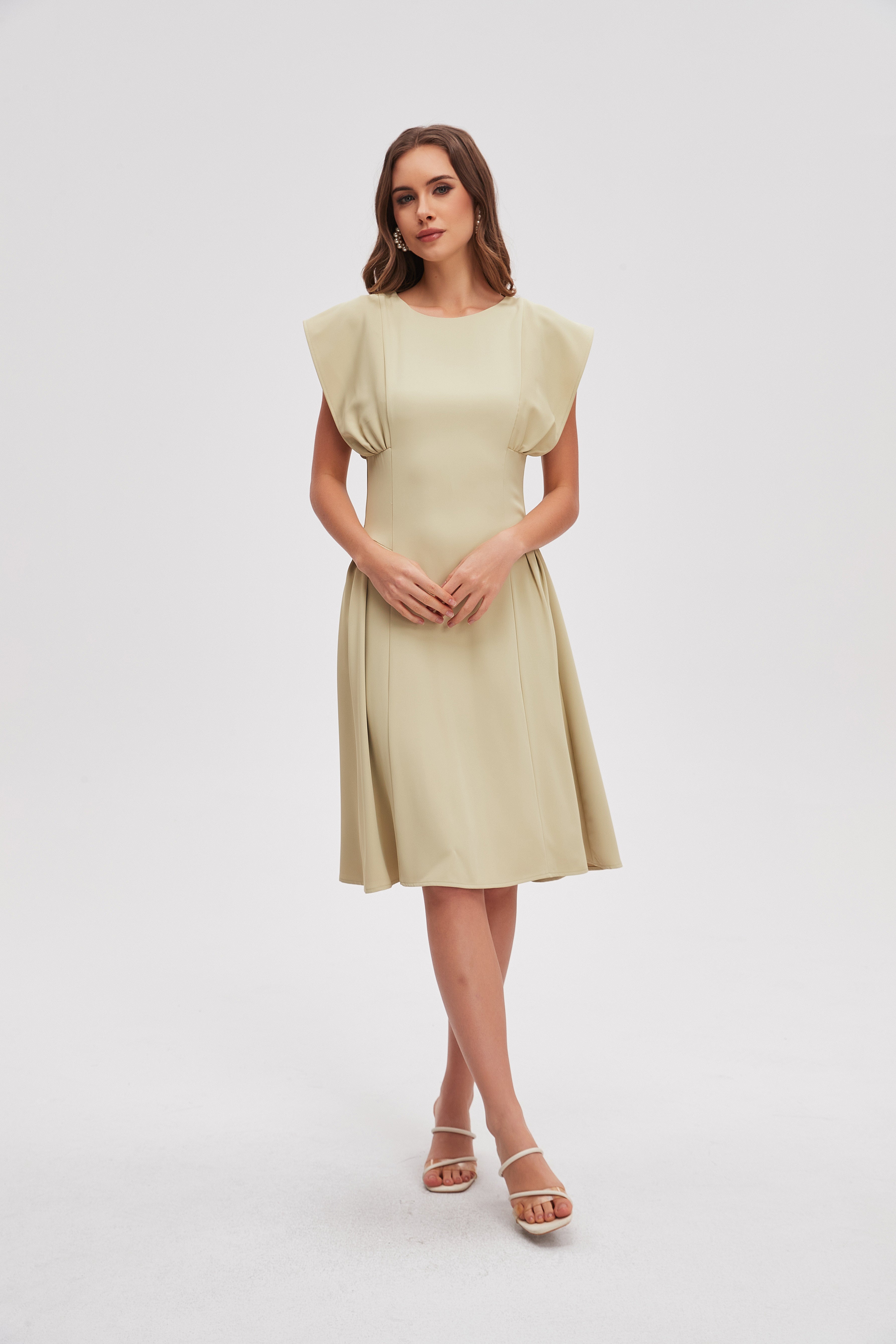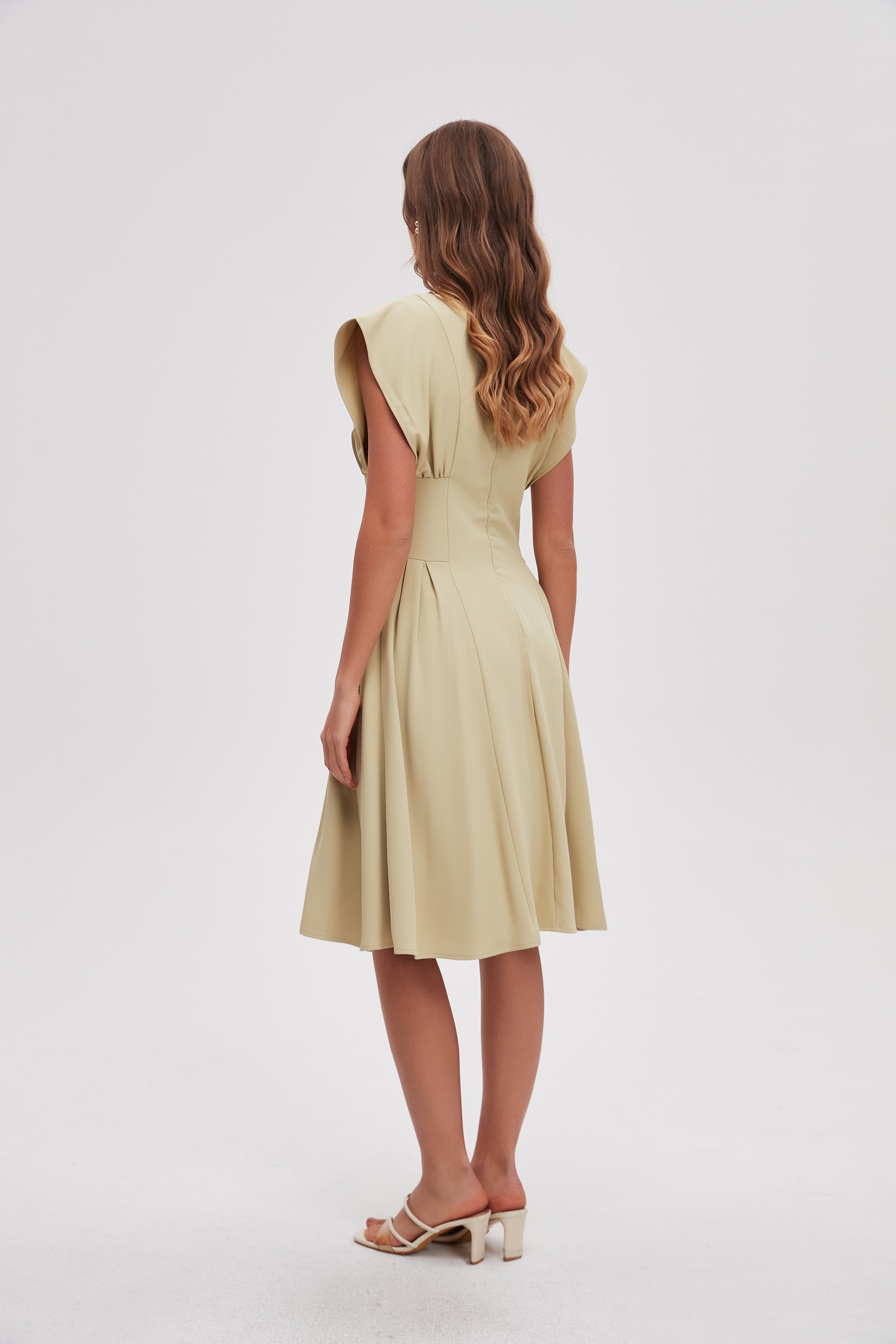 فستان ميدي سادة بدون اكمام