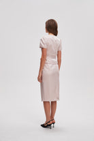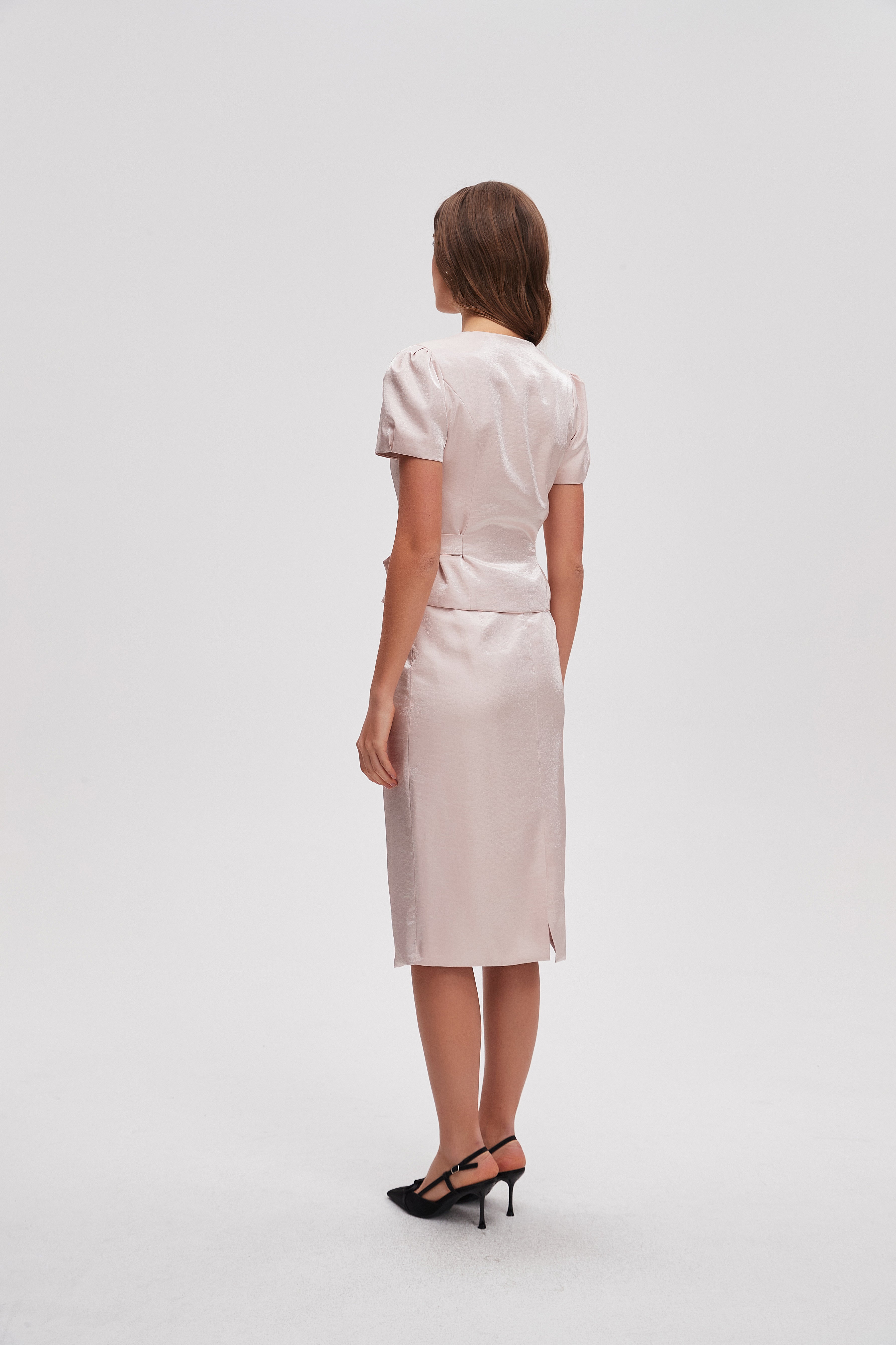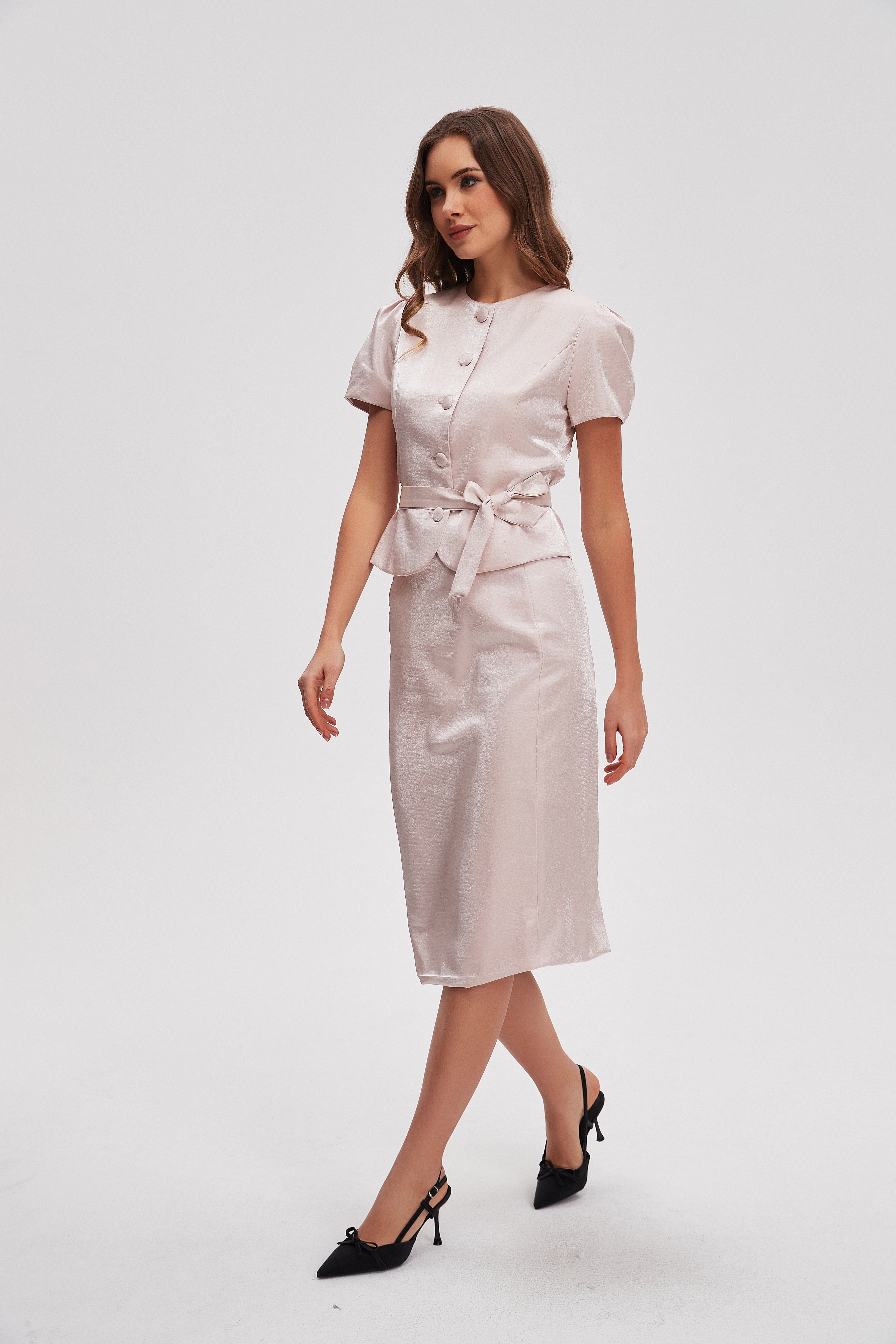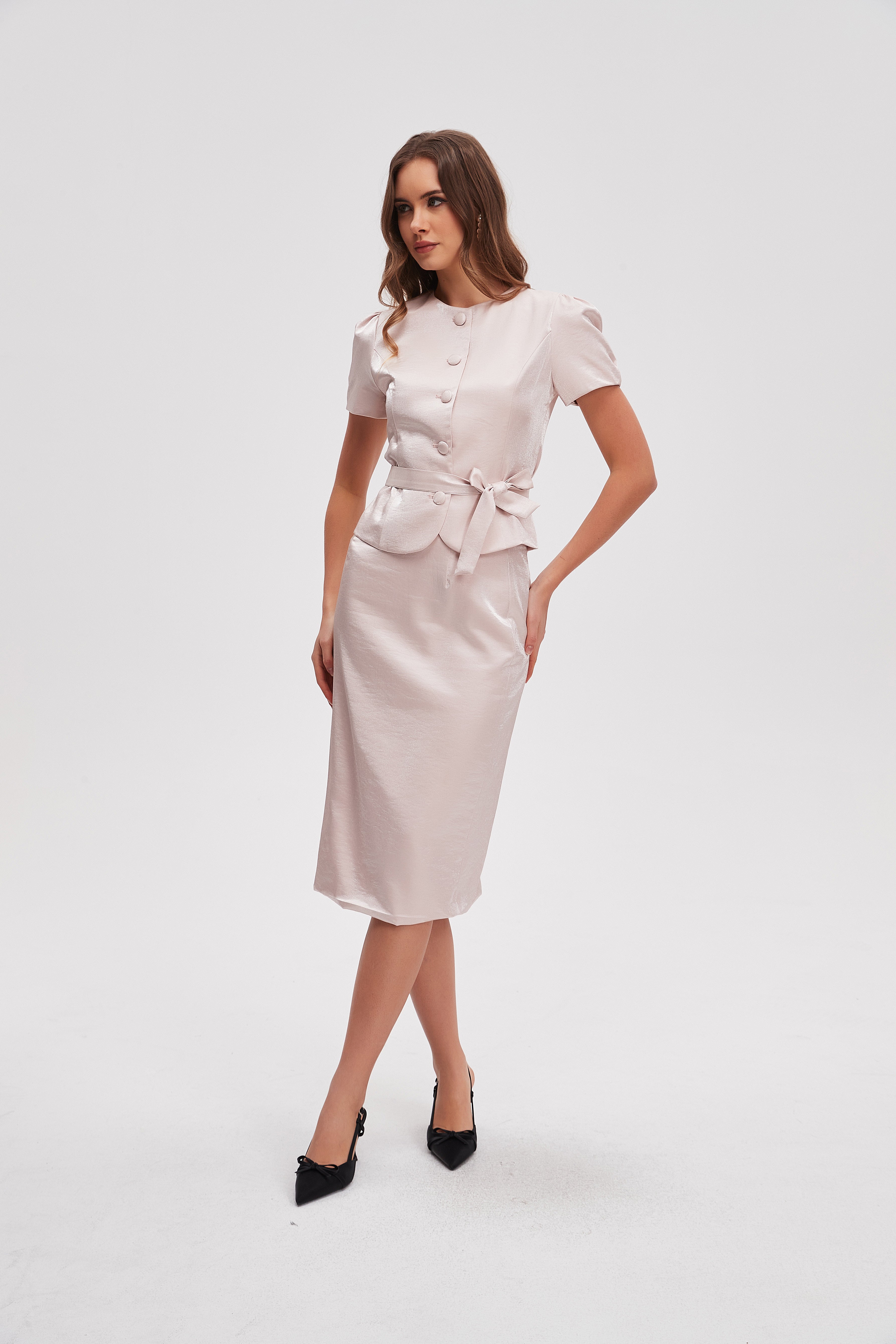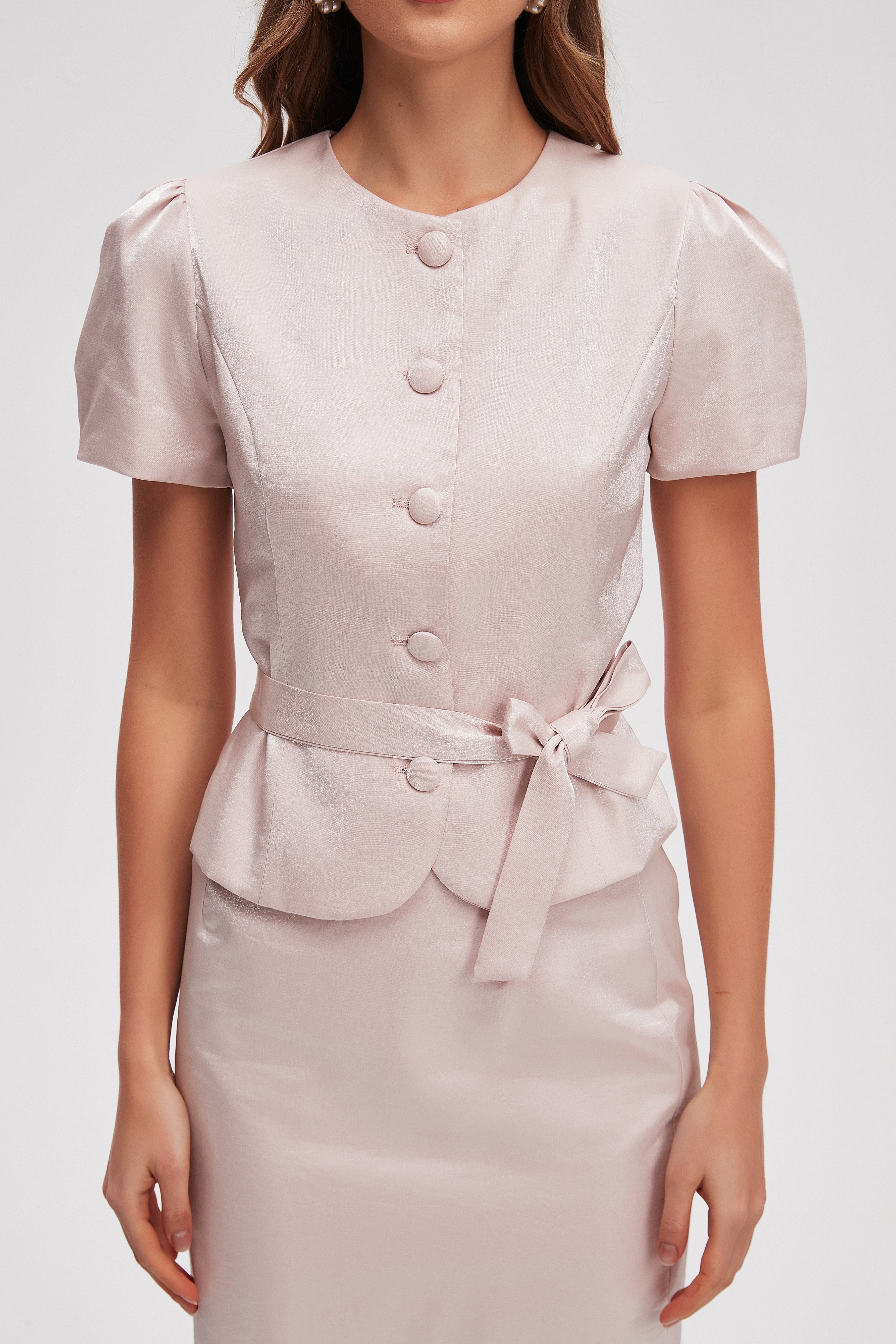بلوزة بطول الخصر سادة كم قصير بحزام