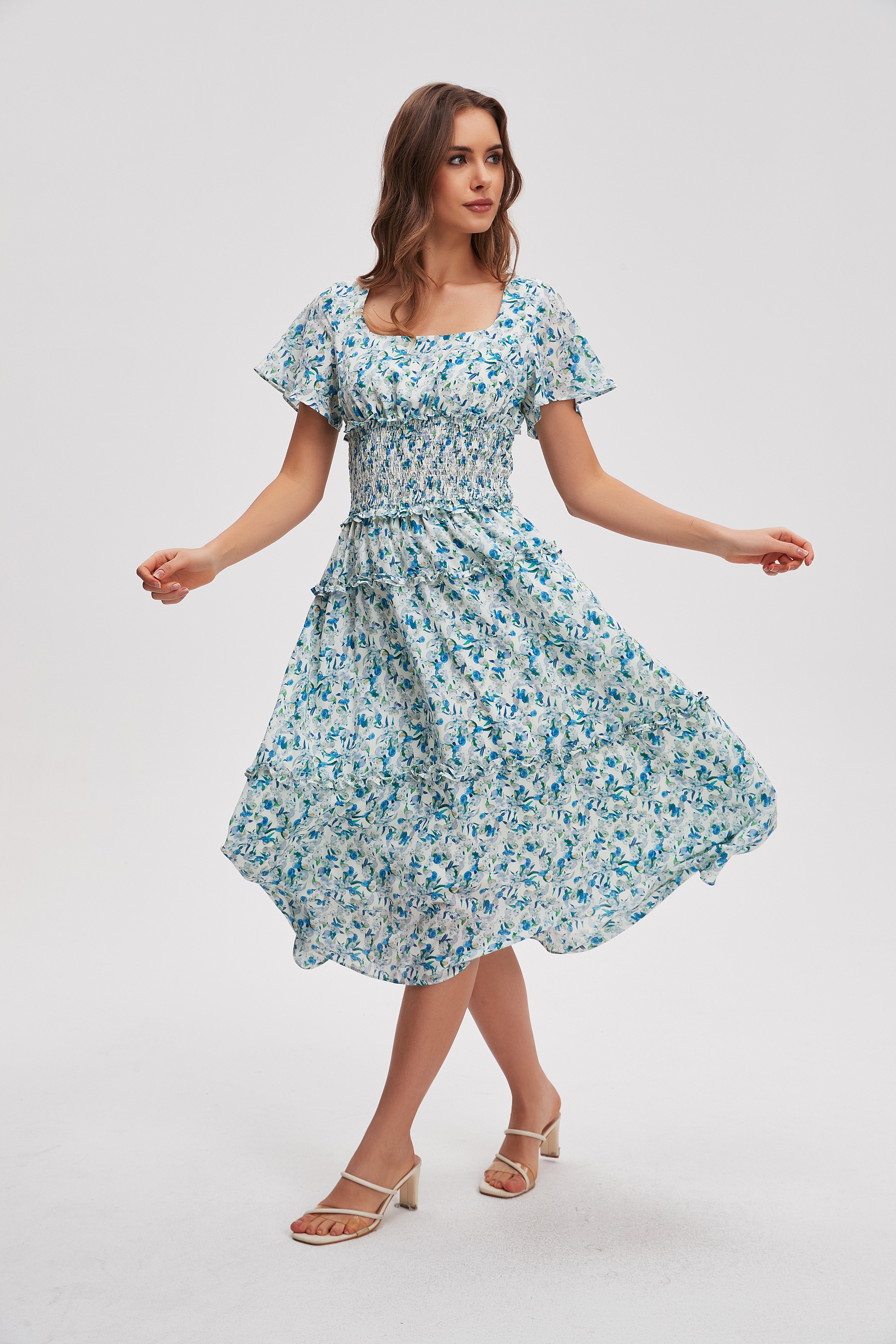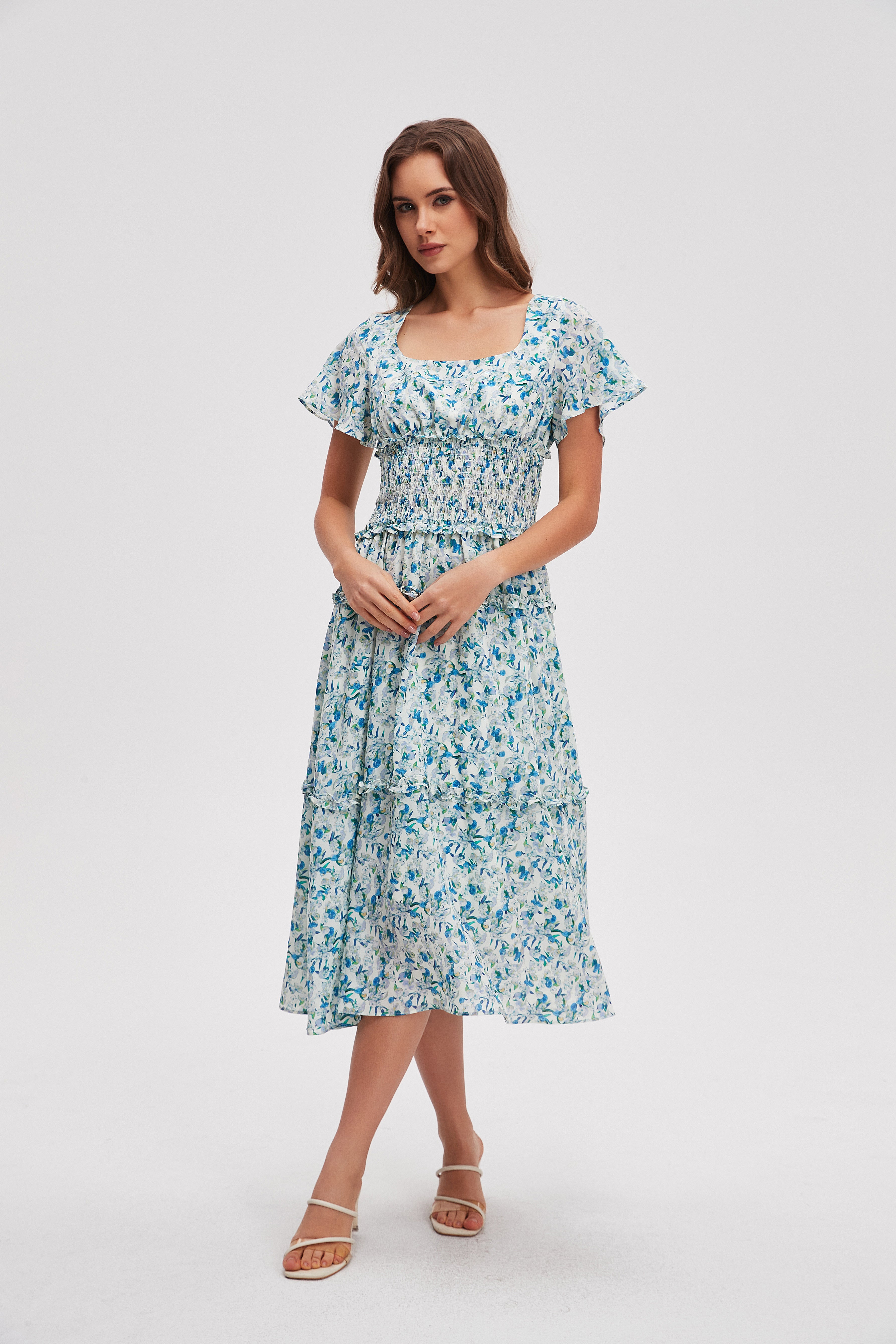 فستان ميدي منقوش كم قصير