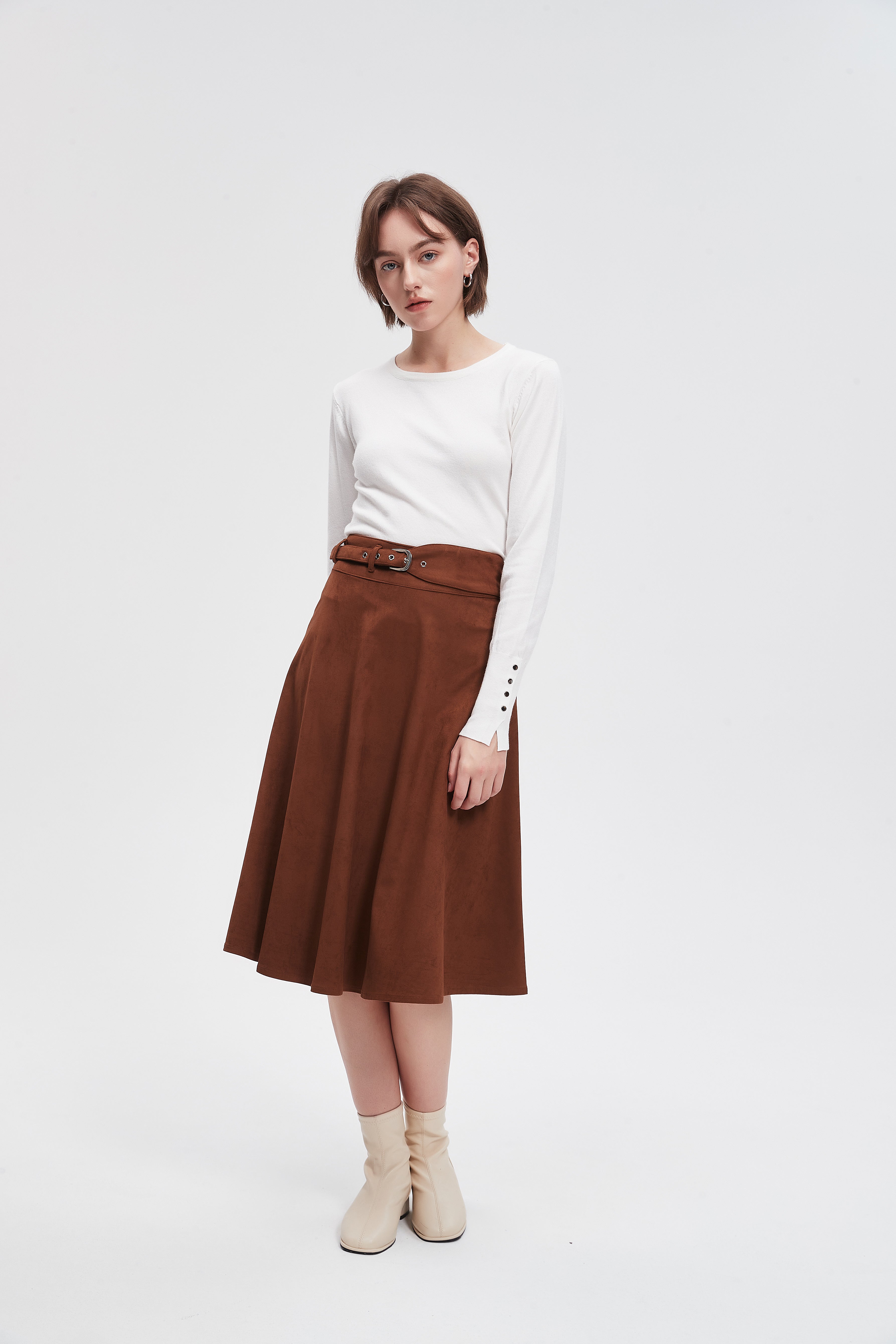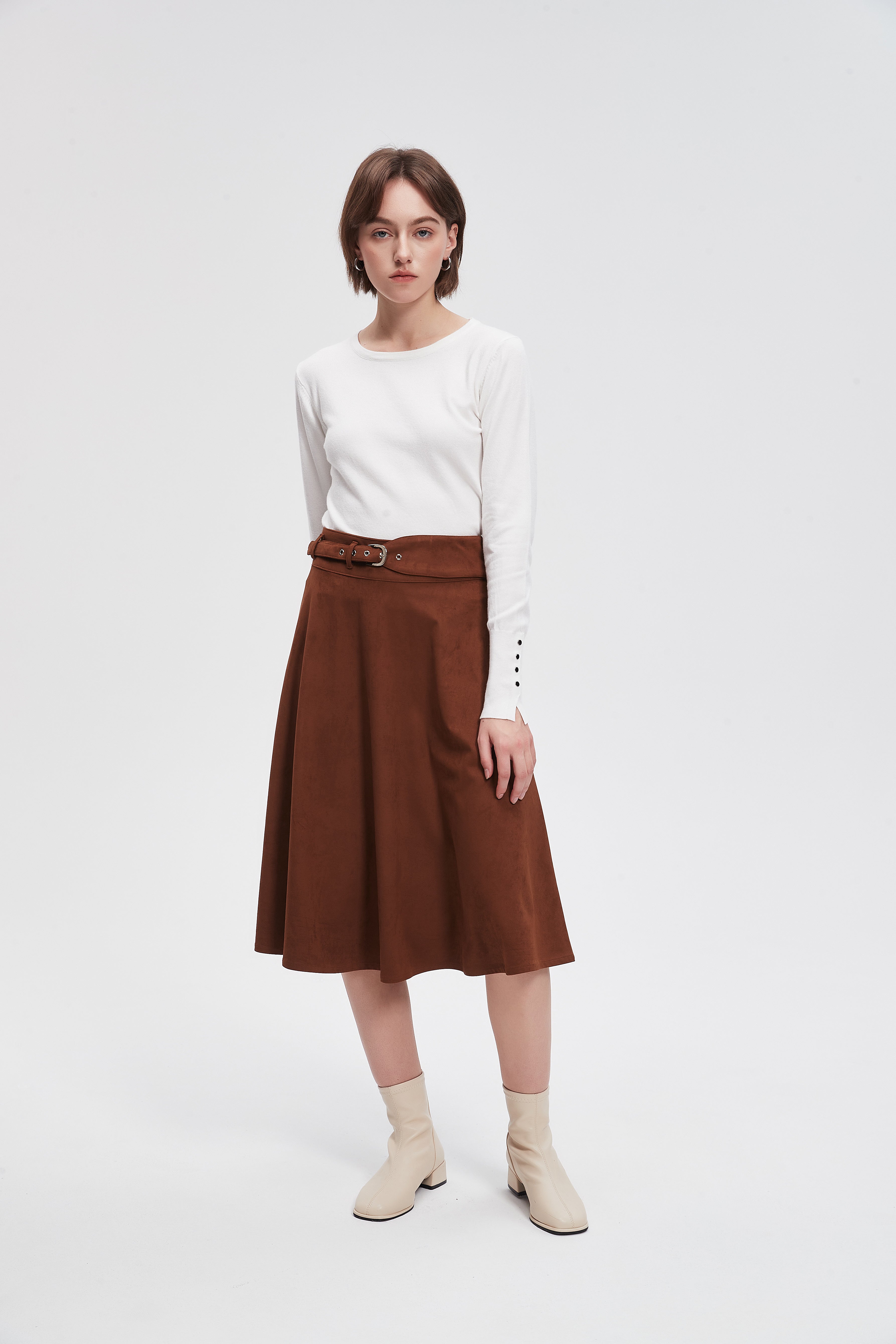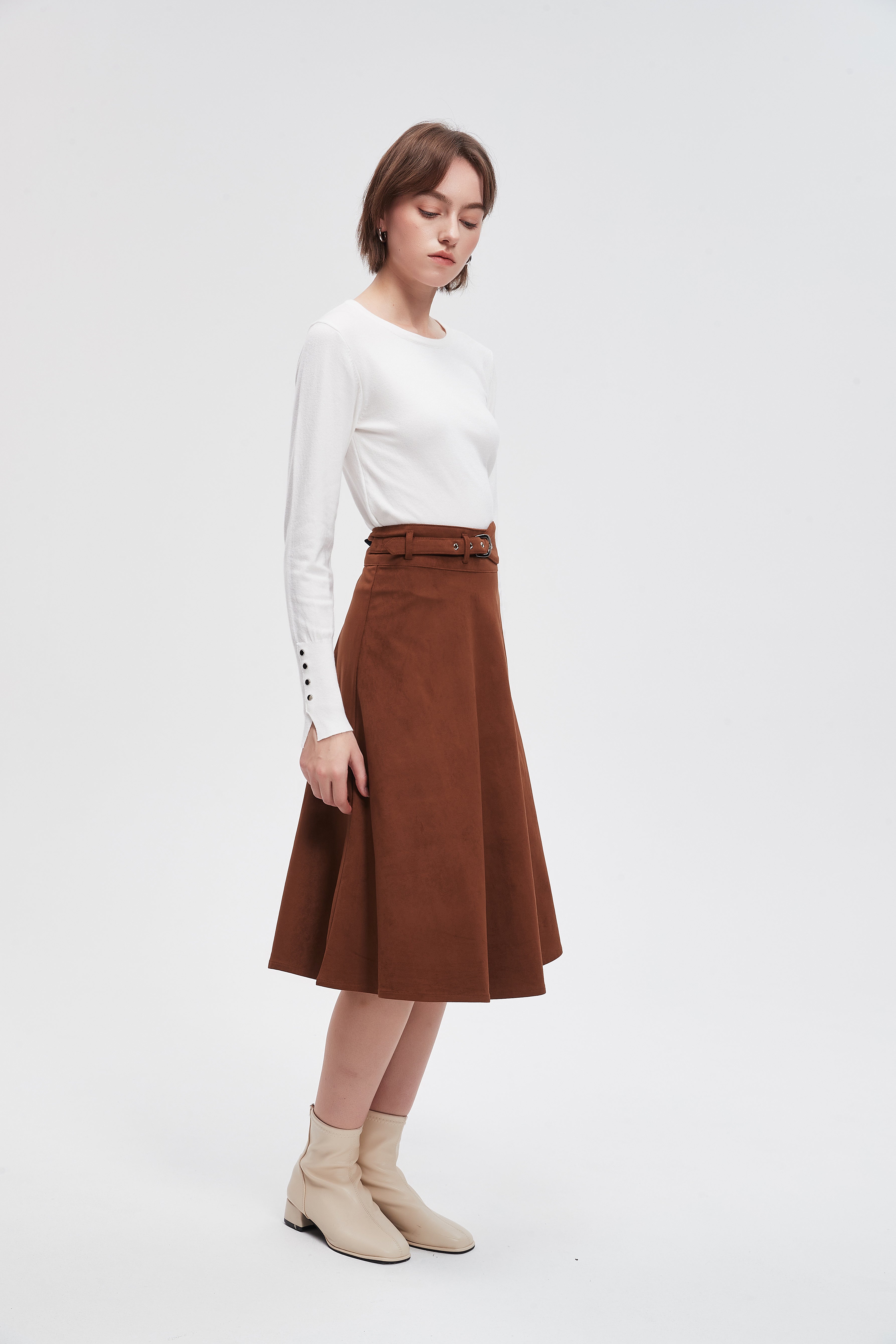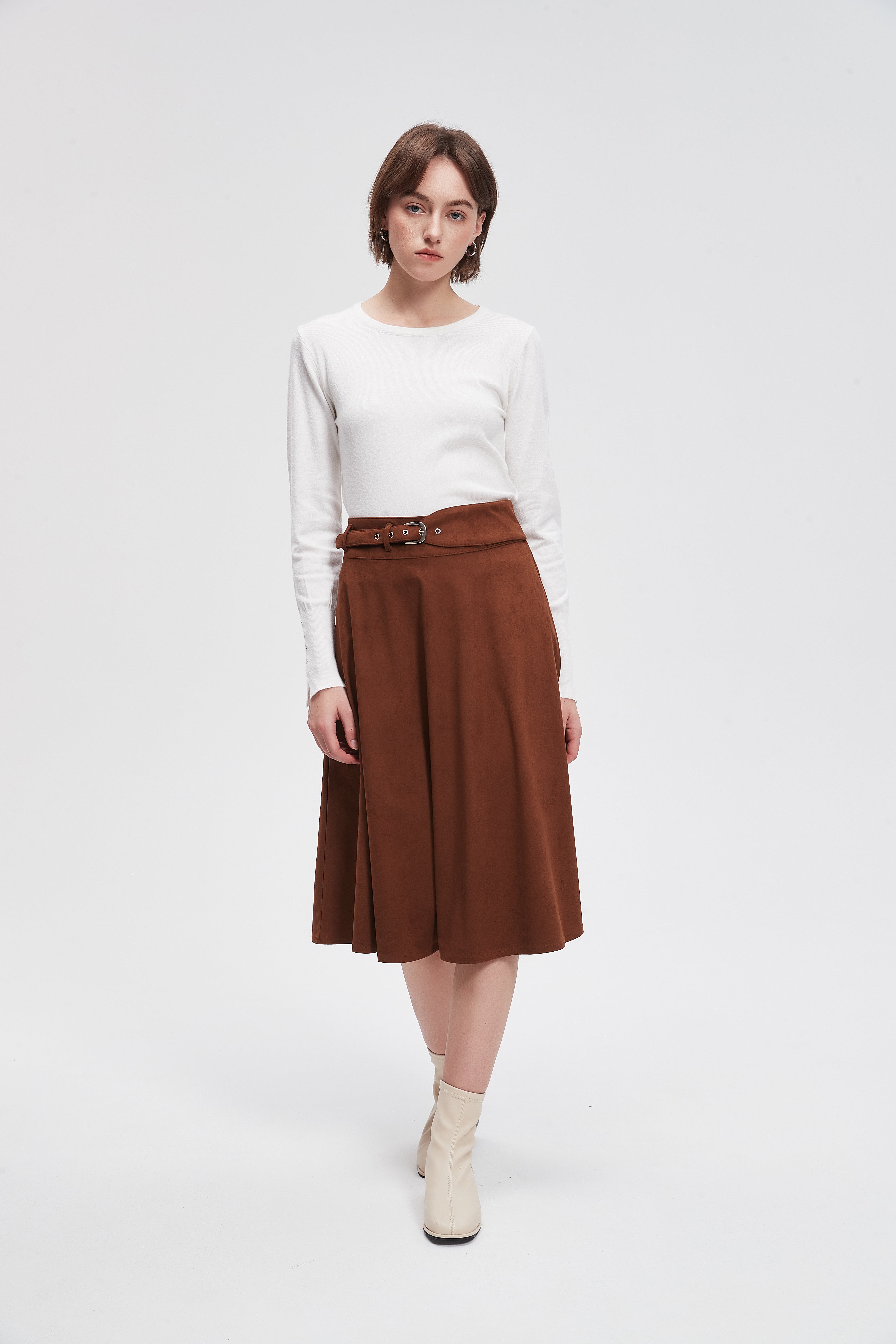 تنورة ميدي سادة بحزام خصر