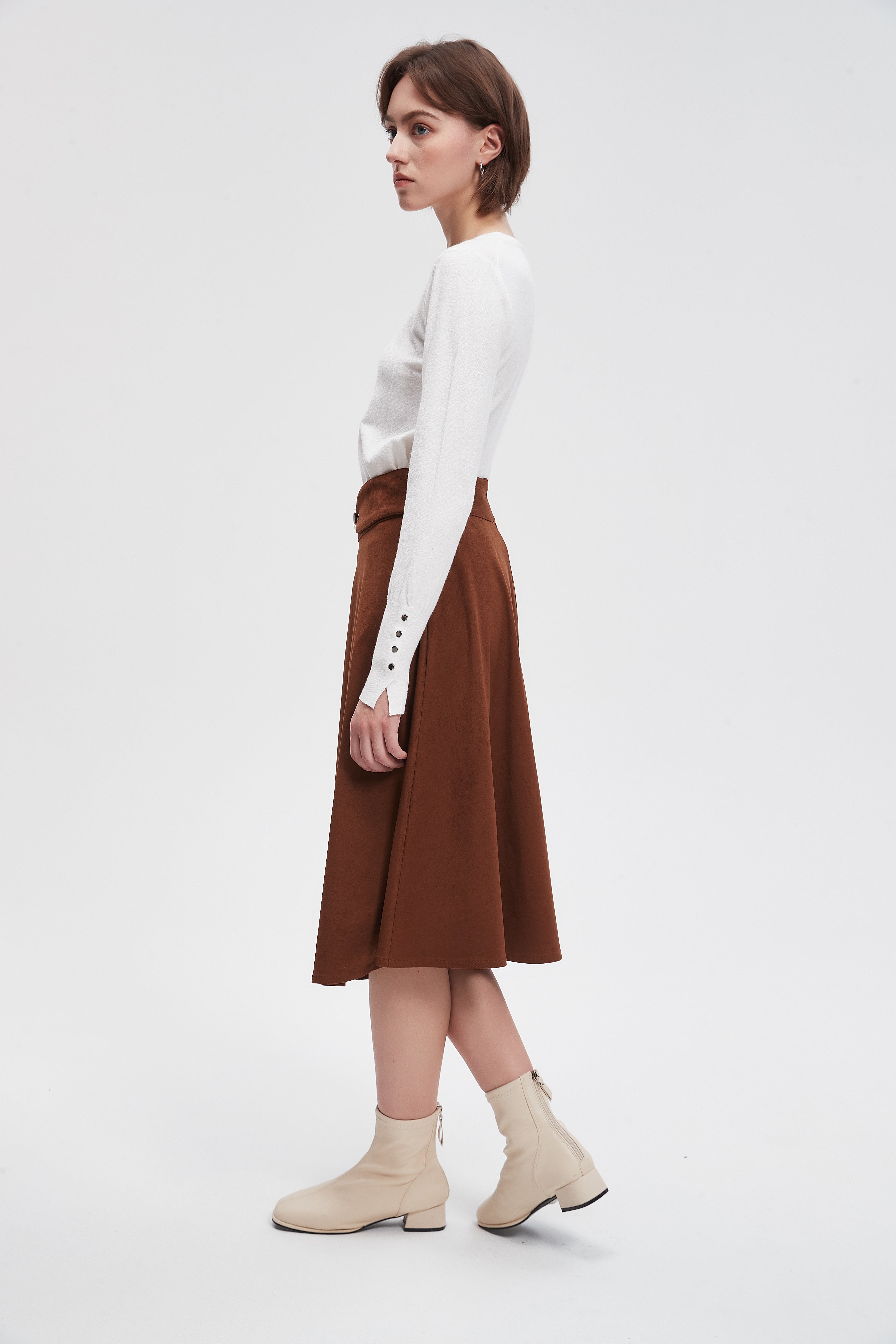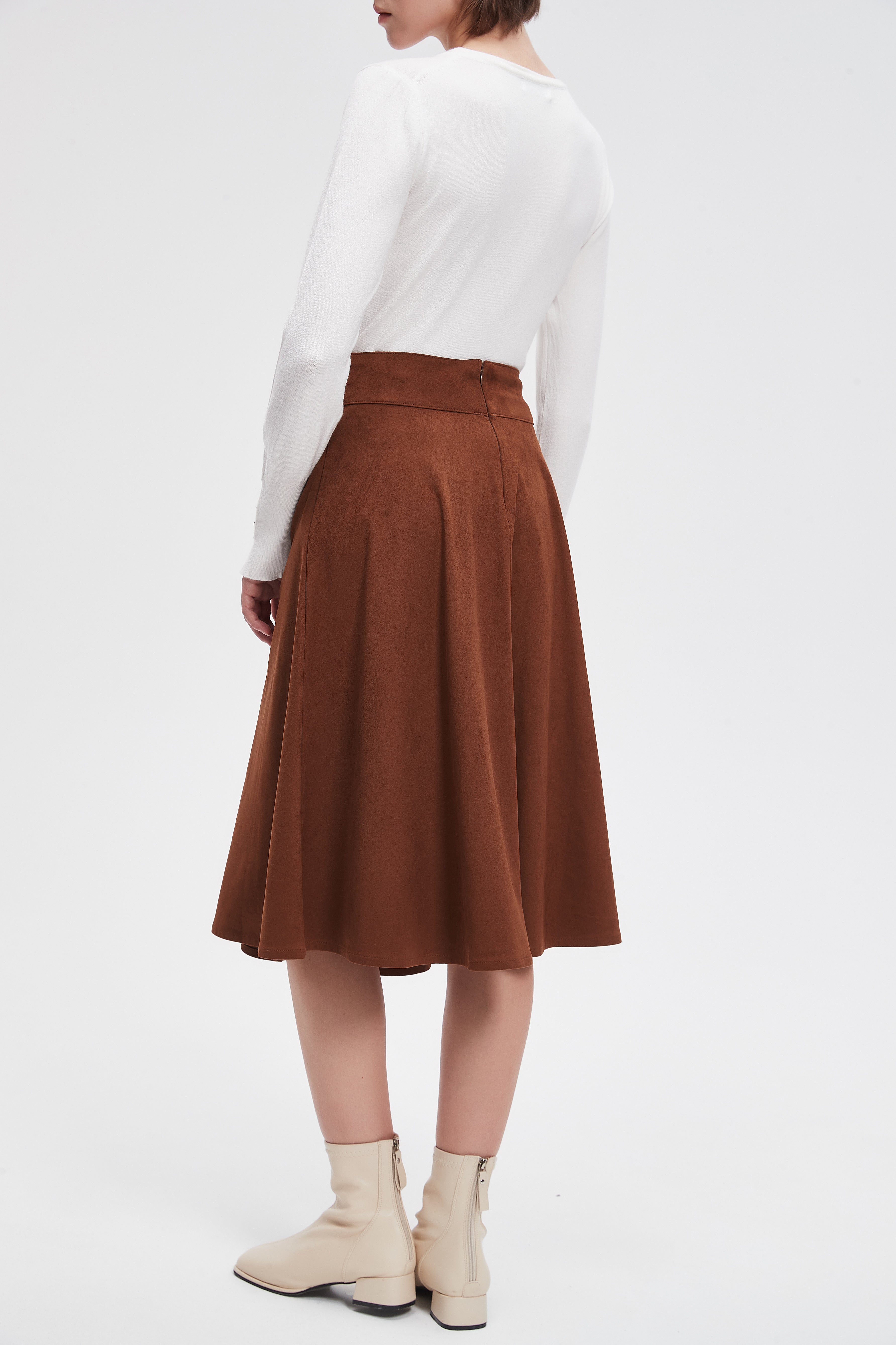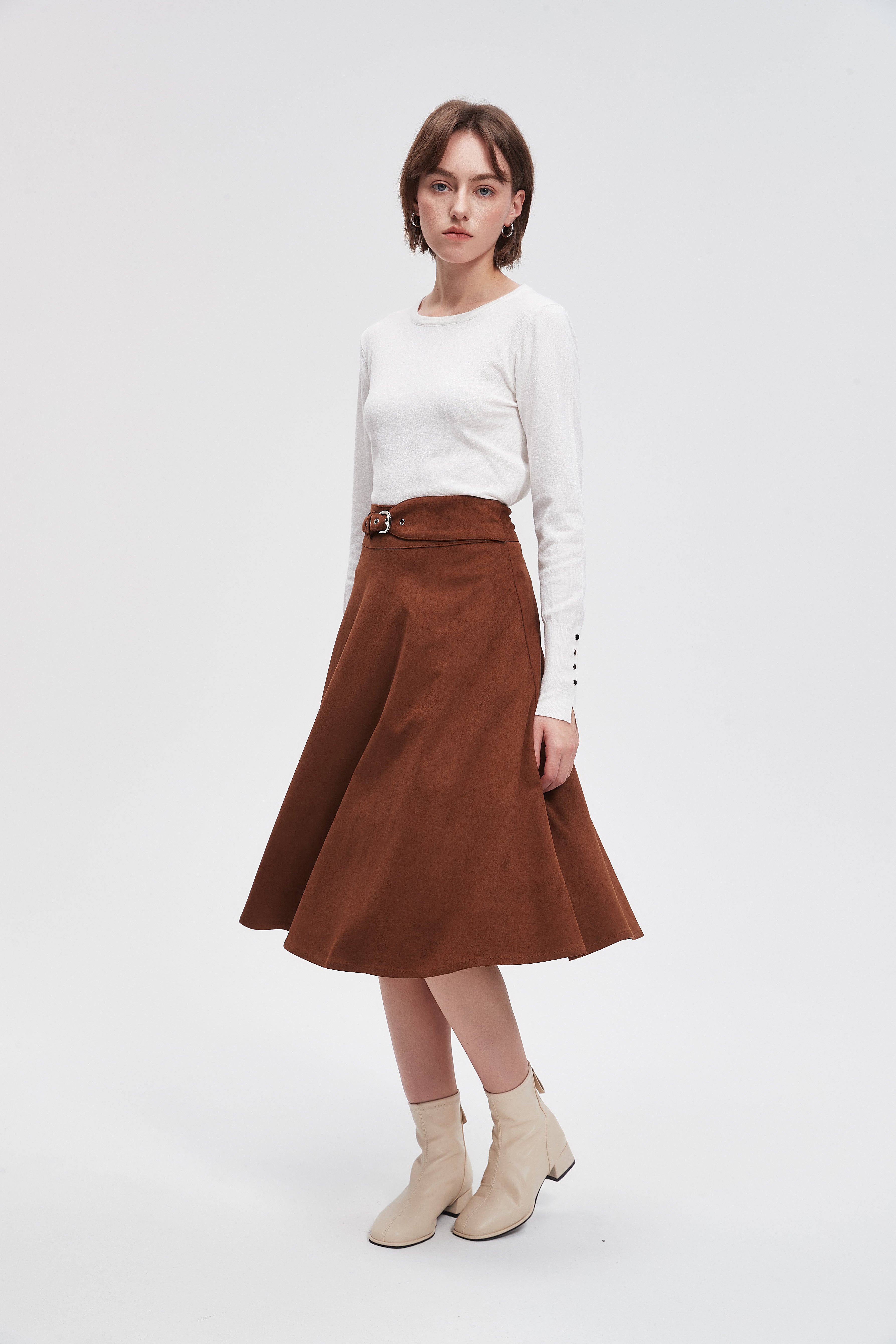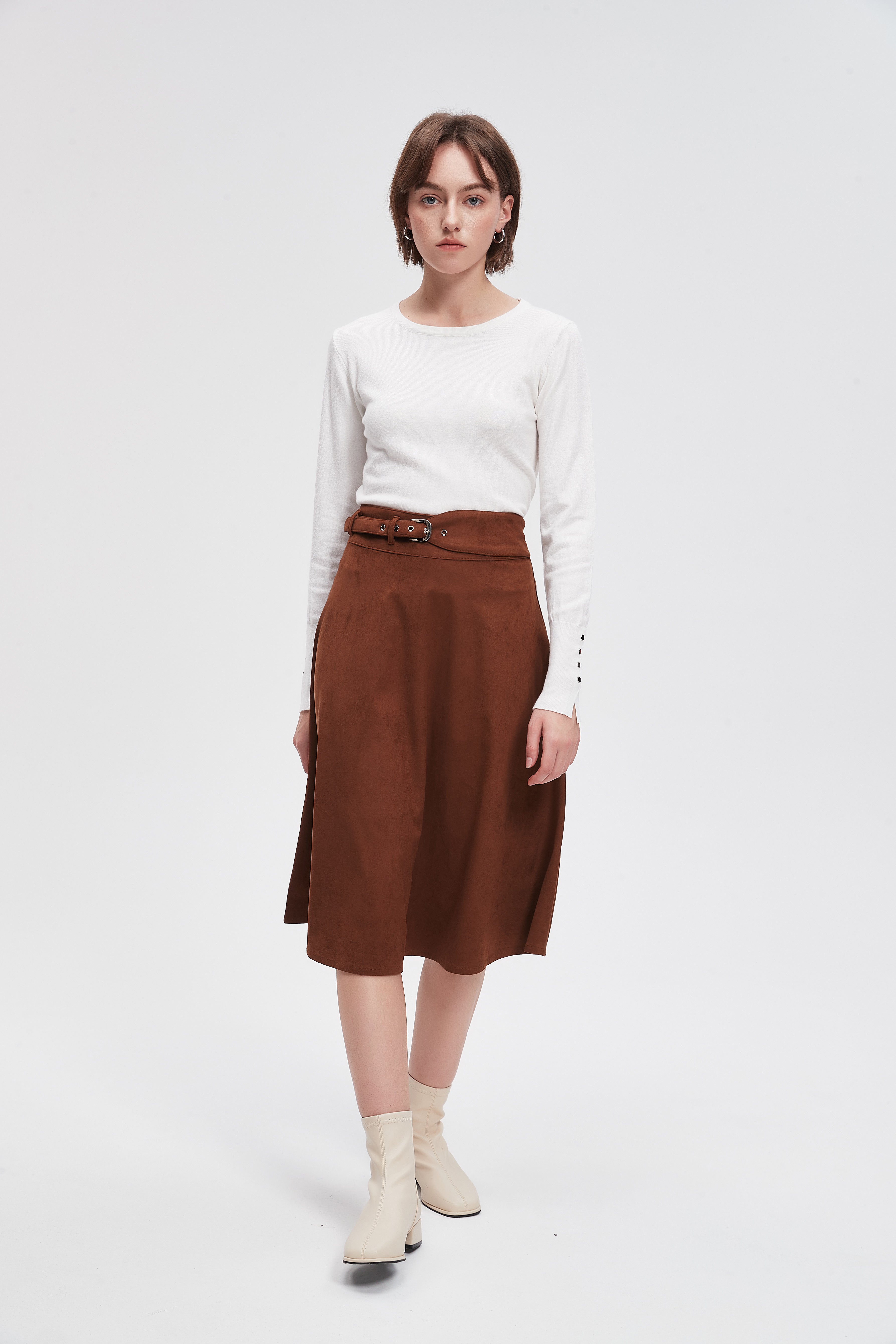 تنورة ميدي سادة بحزام خصر