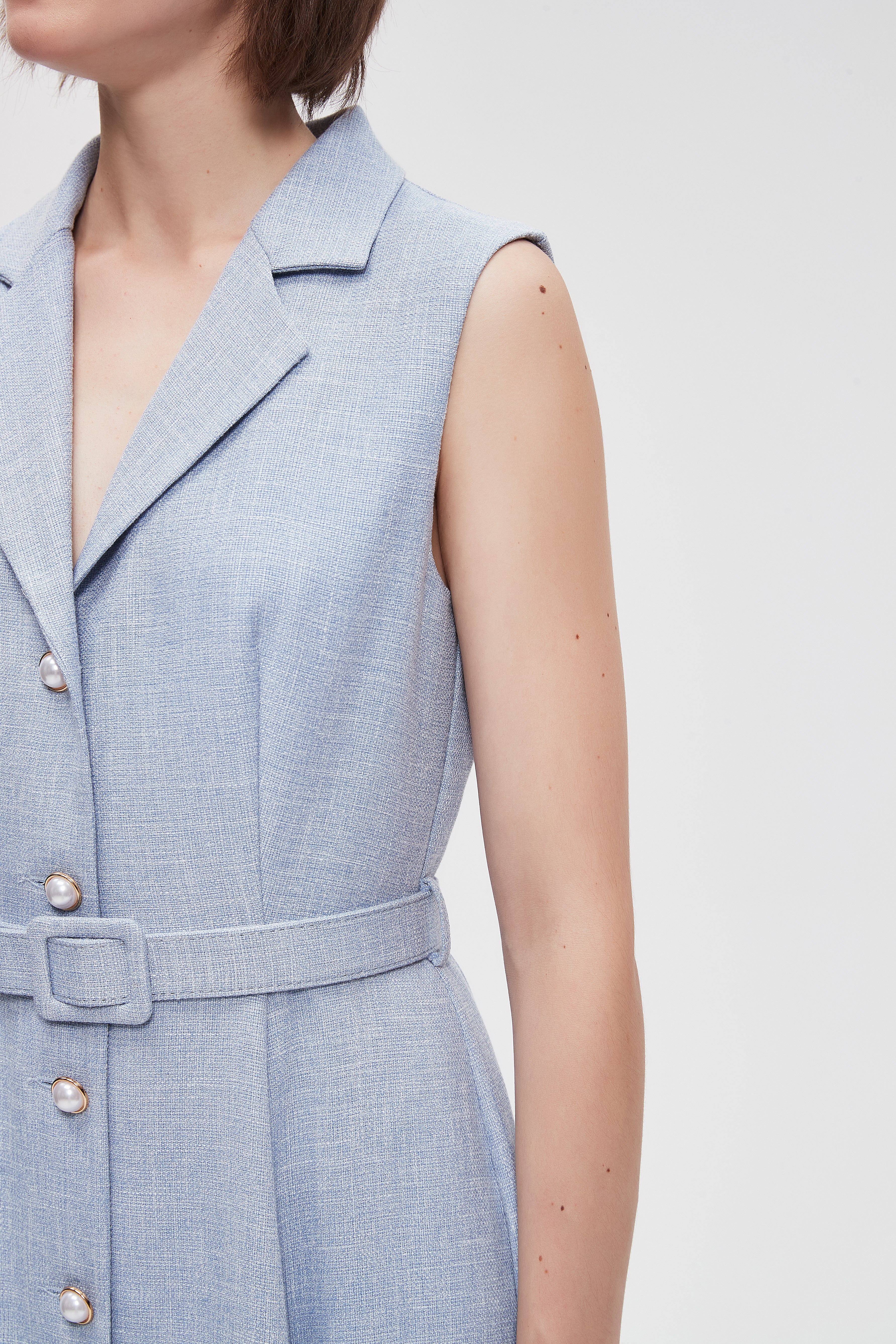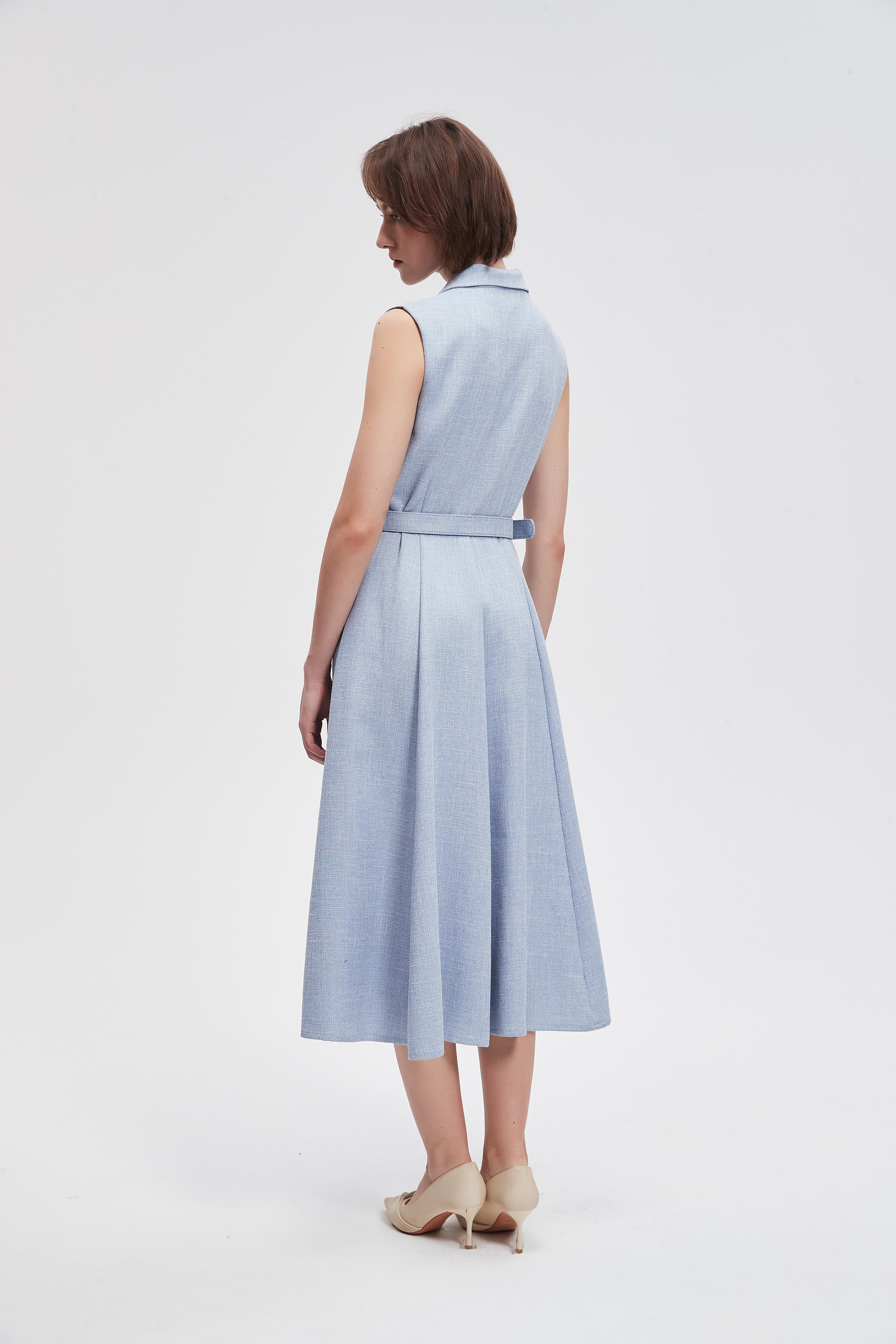 فستان ميدي سادة بدون اكمام رقبة دائرية