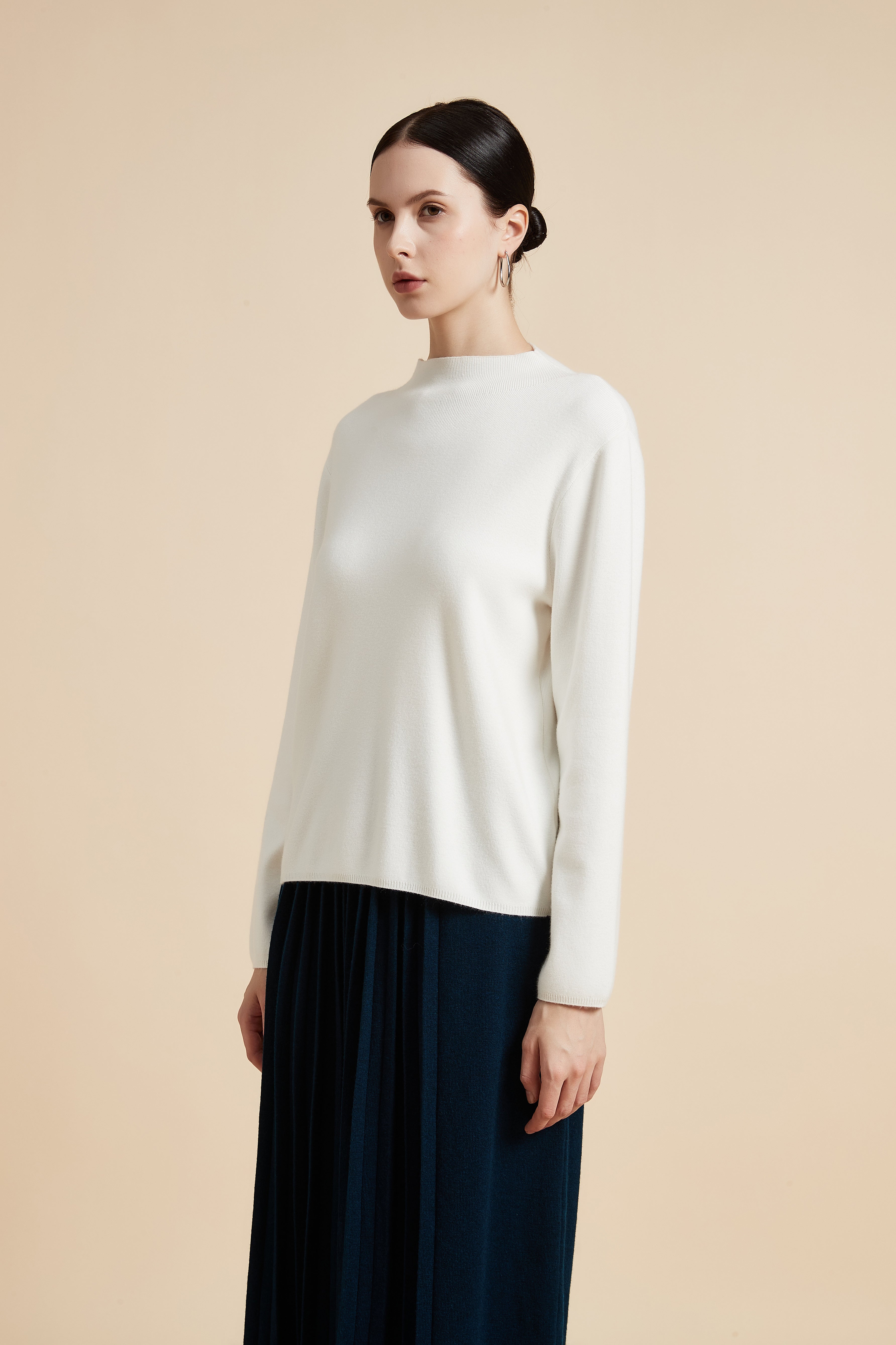 بلوفر بكم طويل سادة وياقة مرتفعة