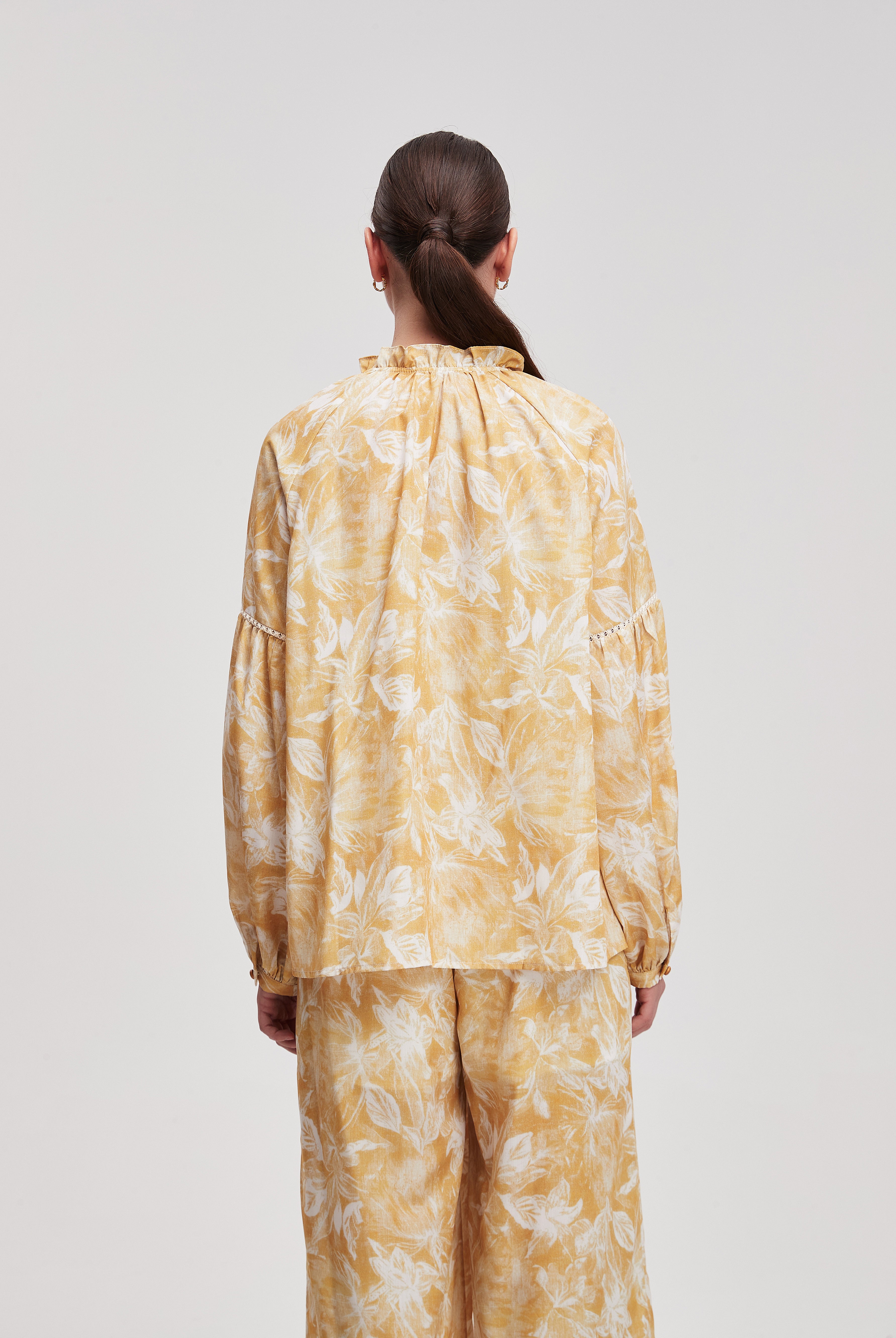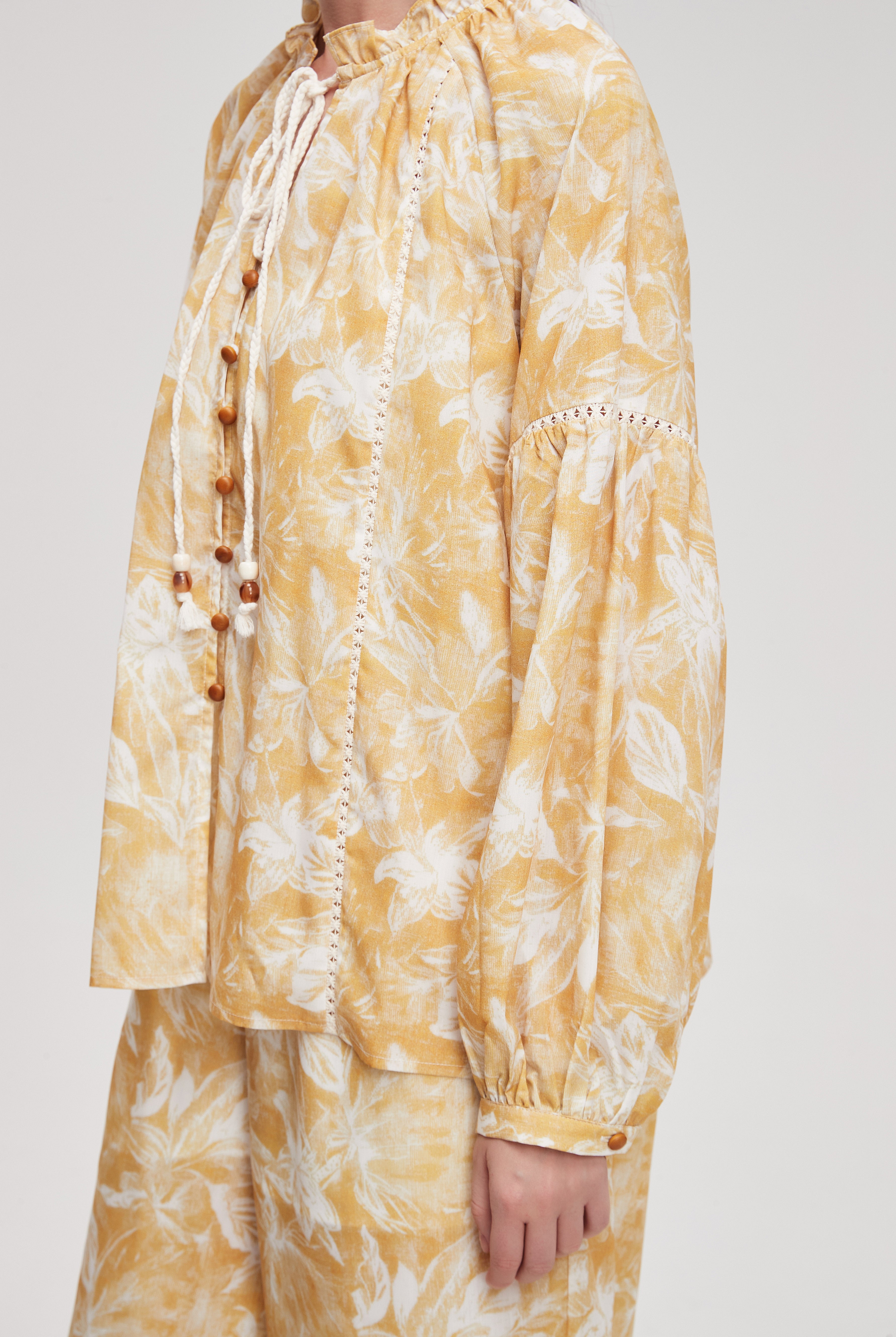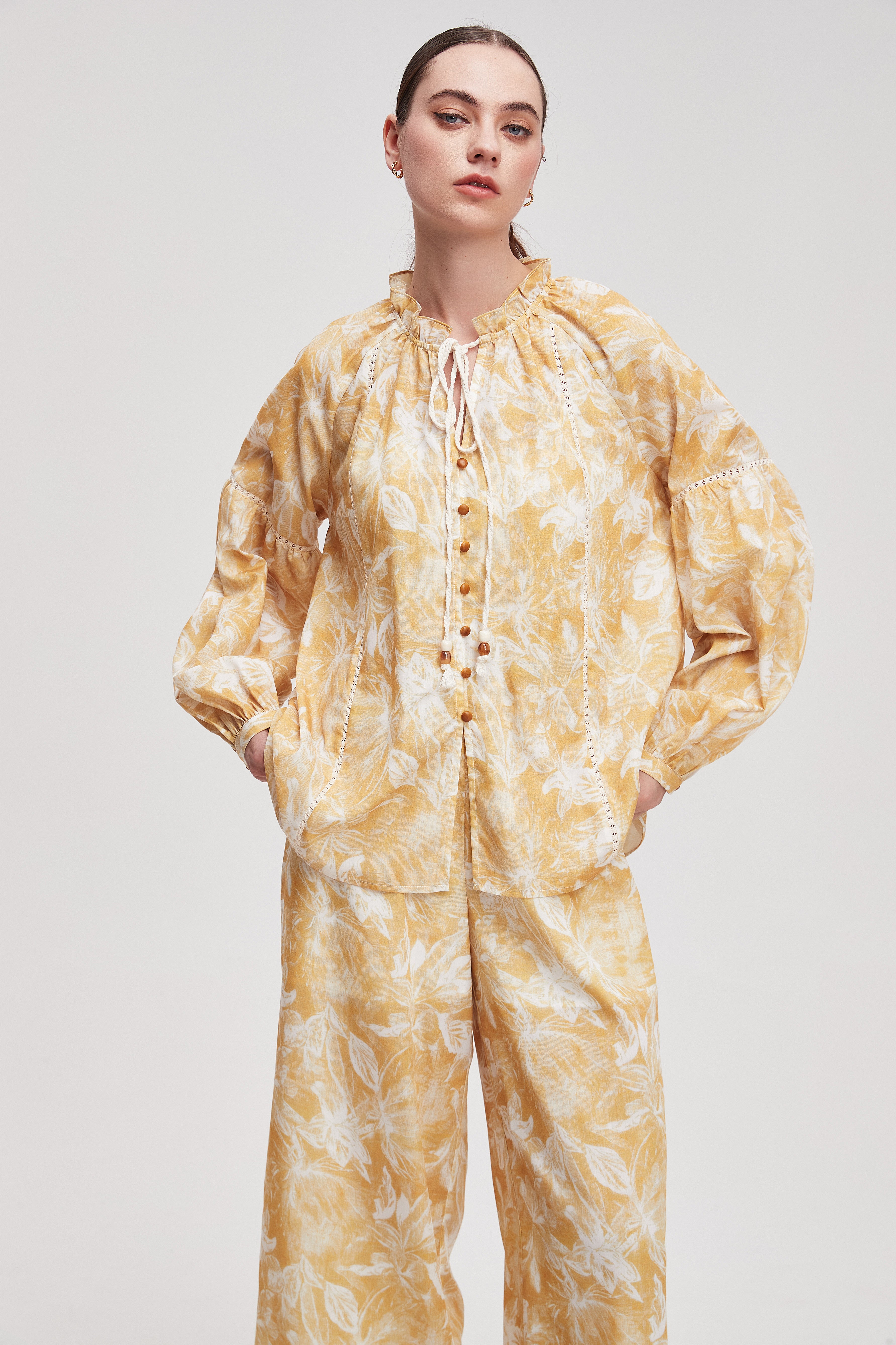 فميص سادة كم طويل بياقة وأزرار أمامية