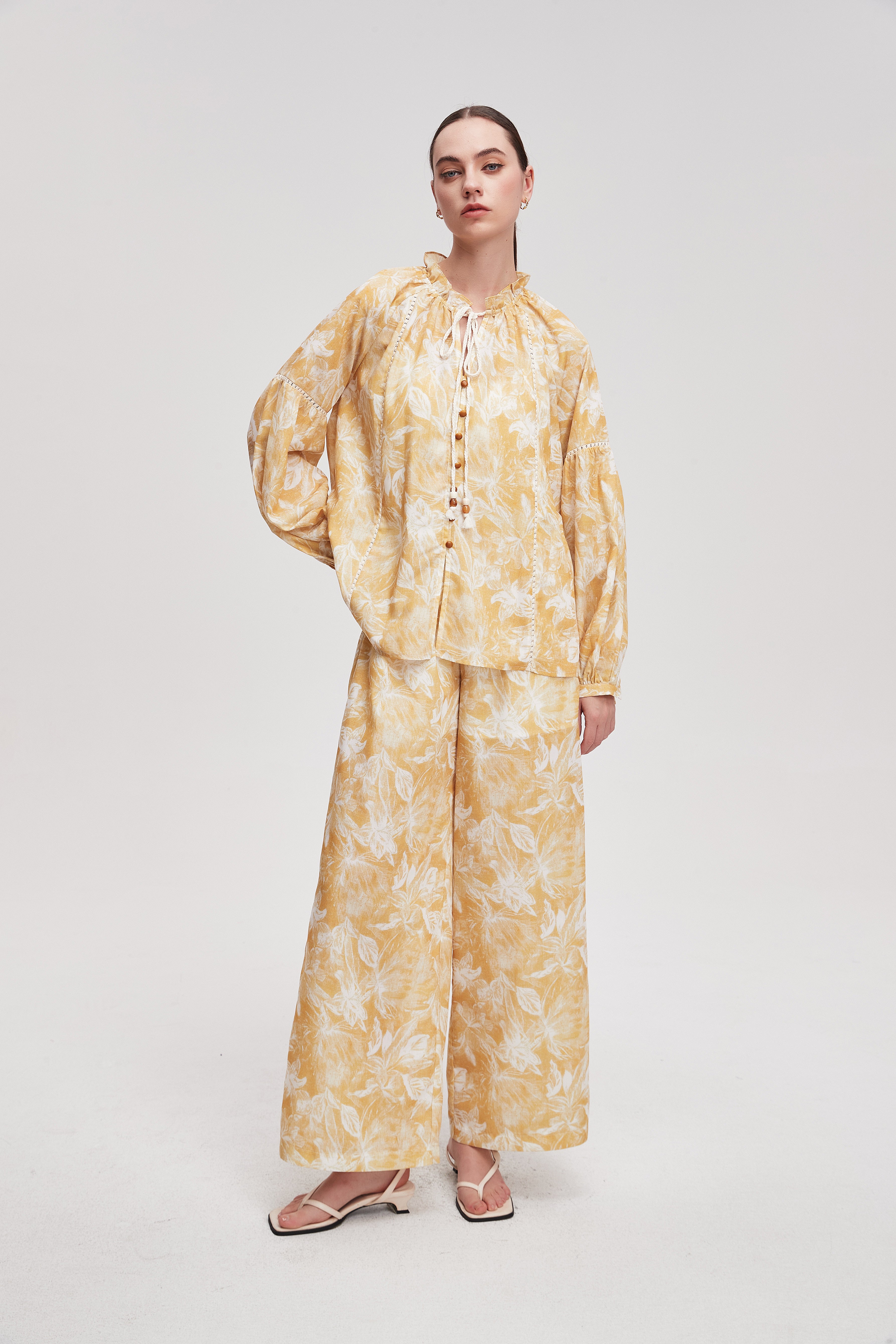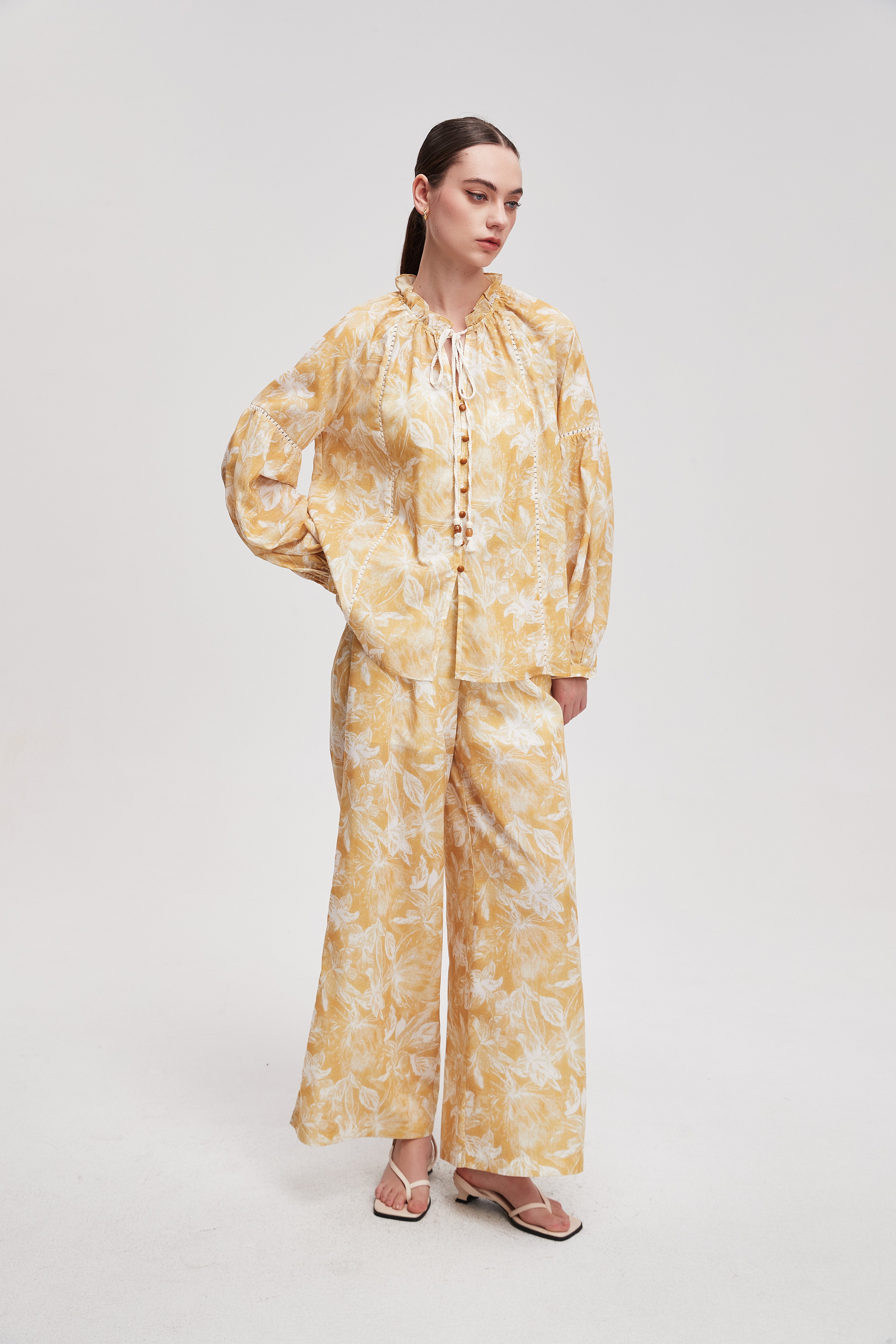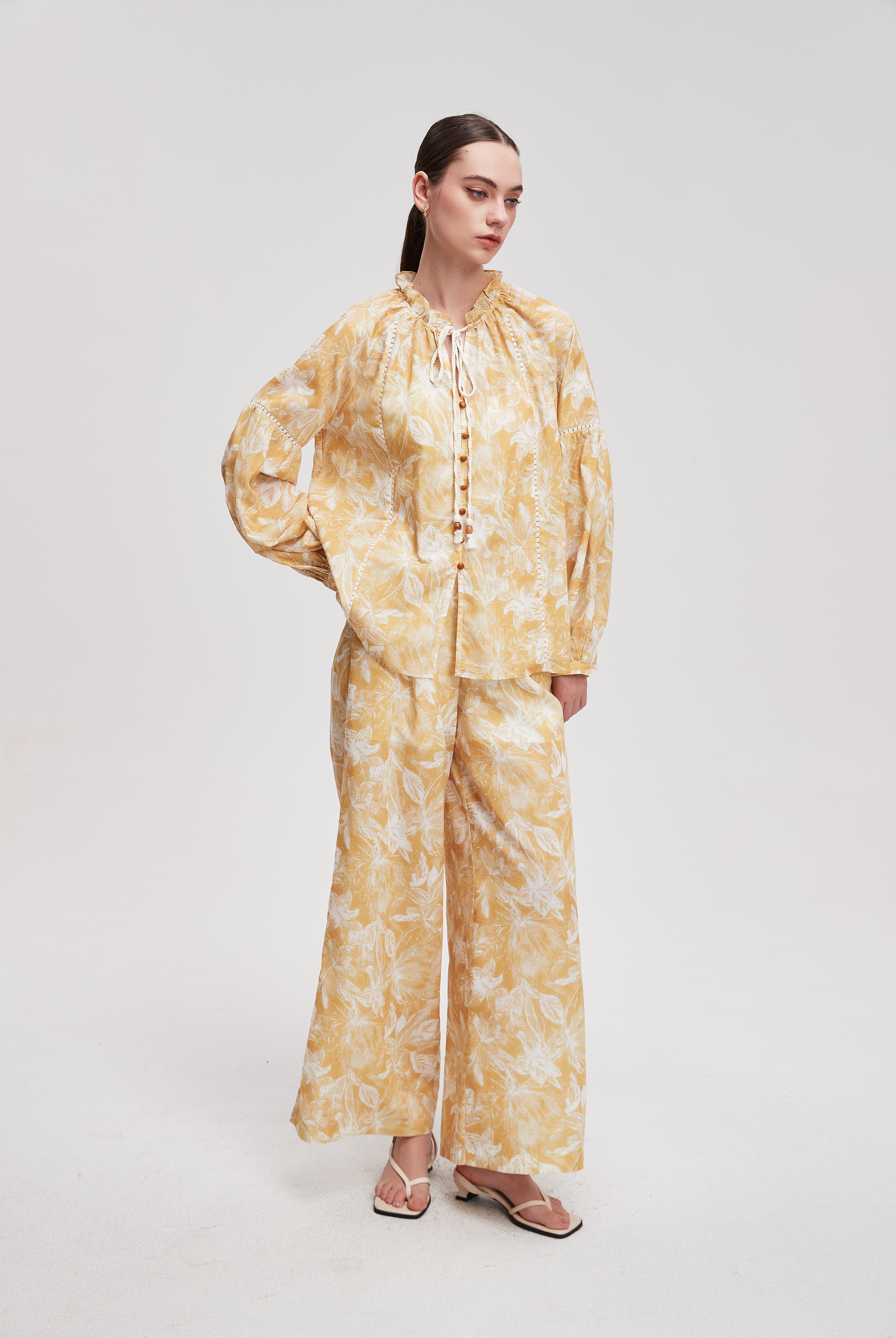 فميص سادة كم طويل بياقة وأزرار أمامية