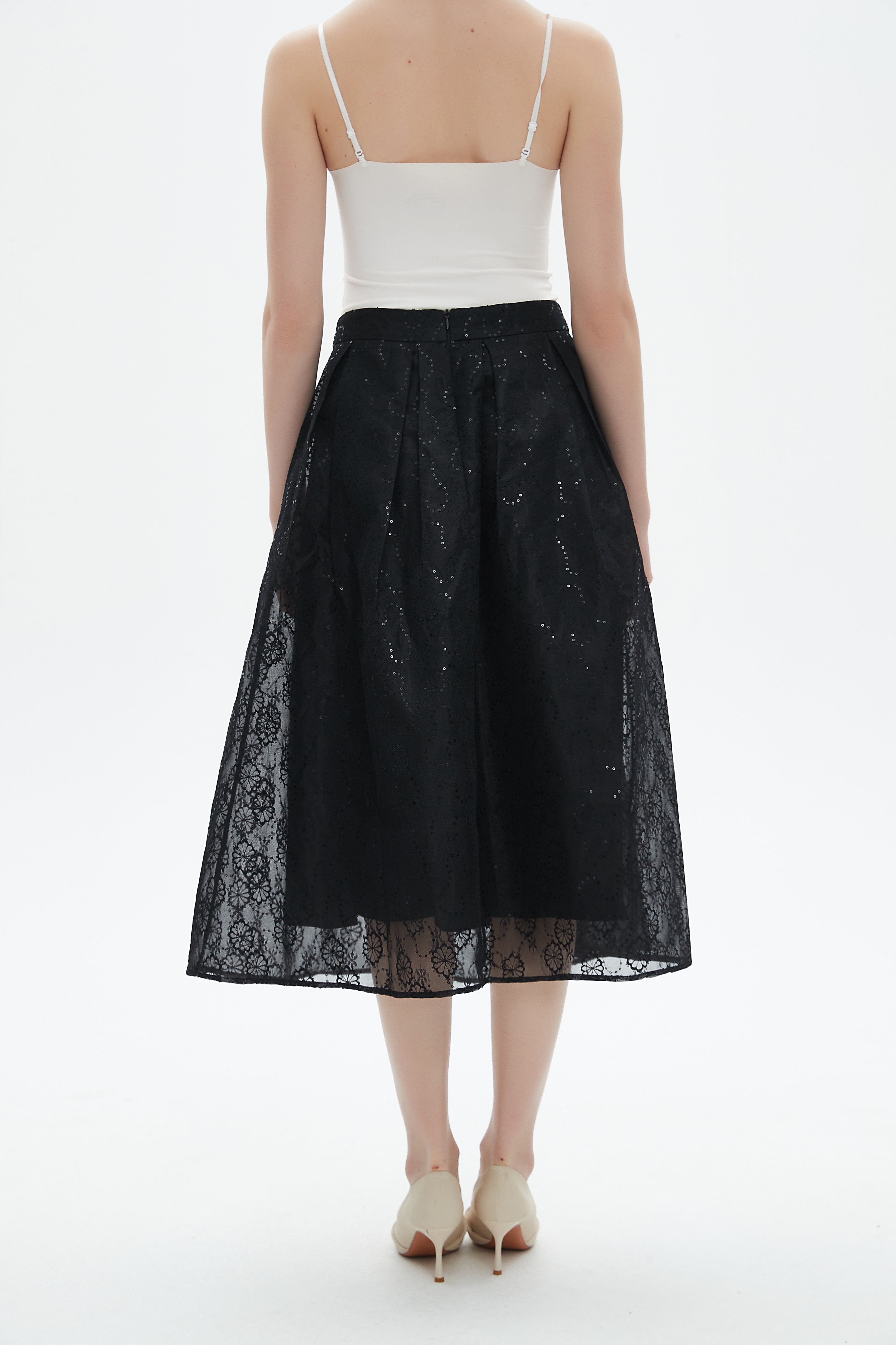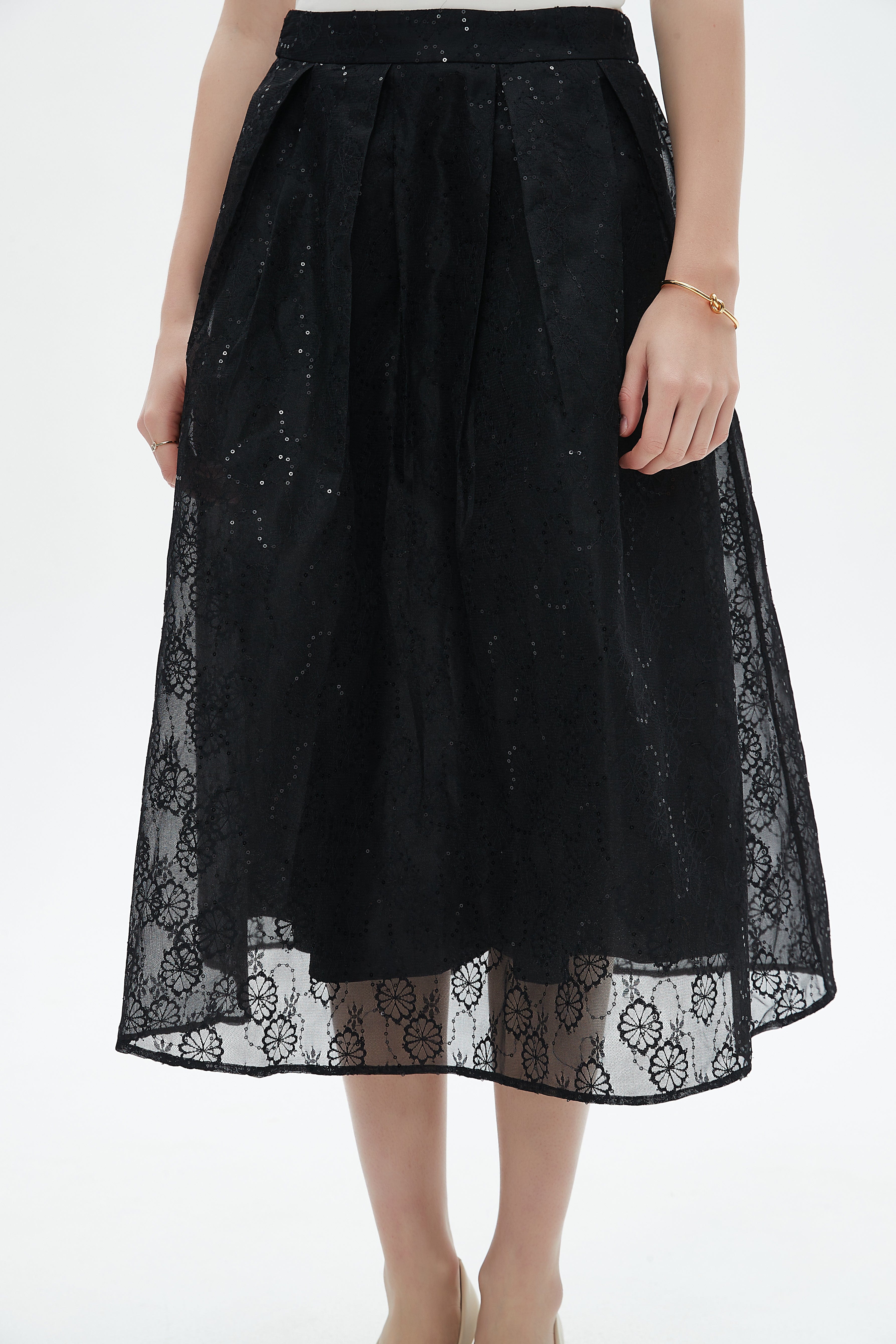 تنورة ميدي مطرزة بتفاصيل شيفون من الاسفل