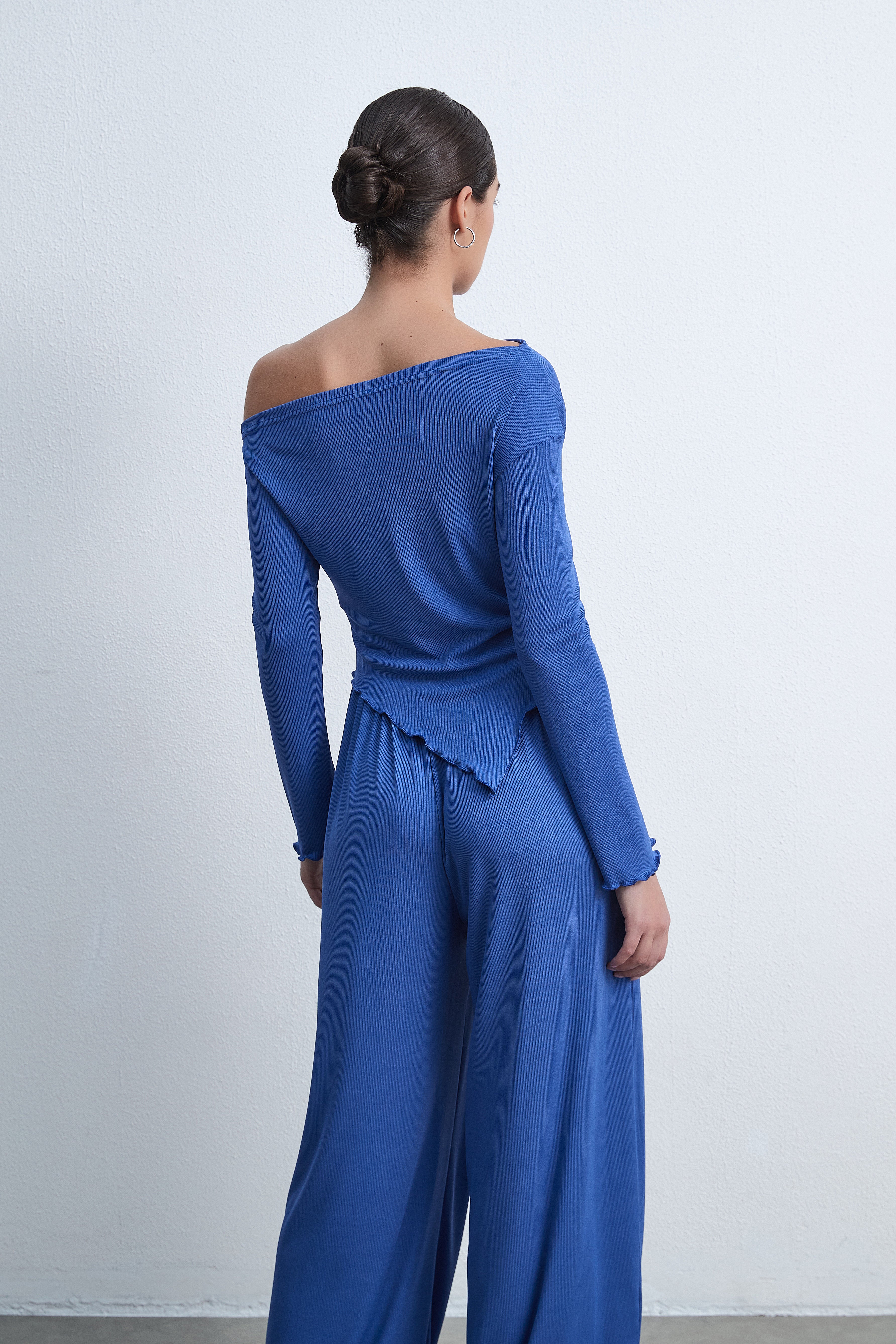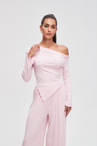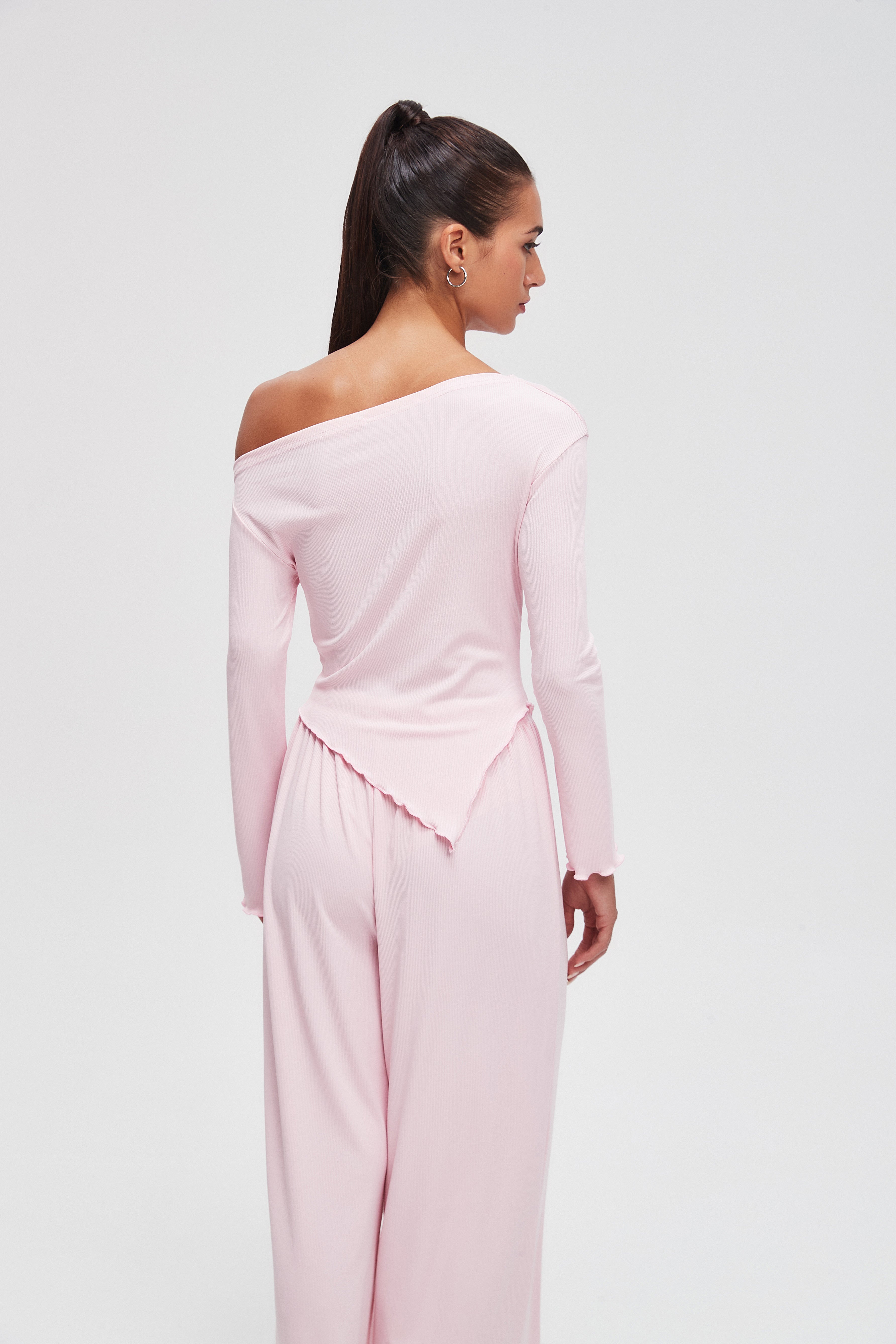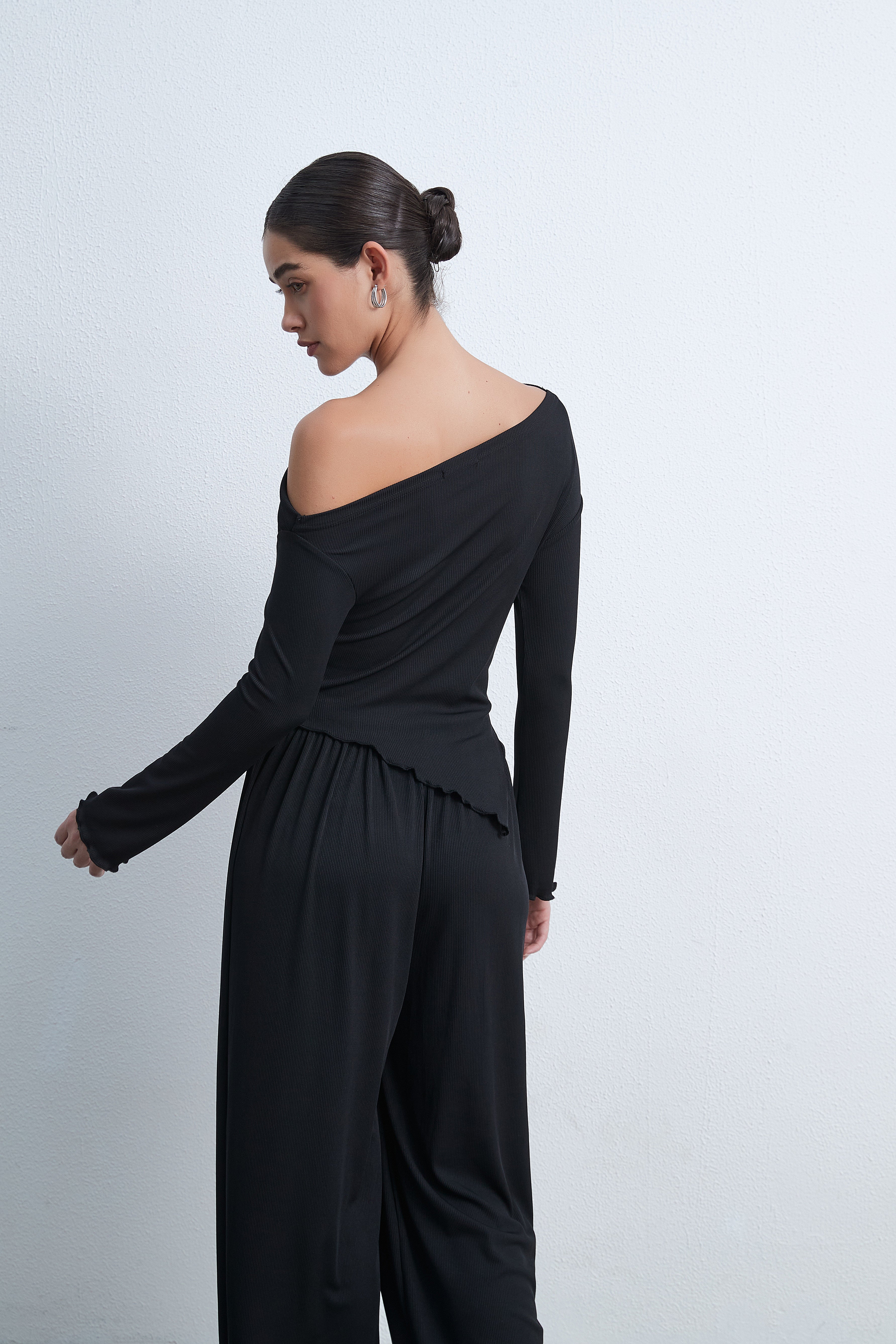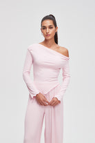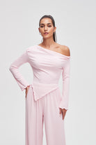 بلوزة سادة بكم طويل على شكل V