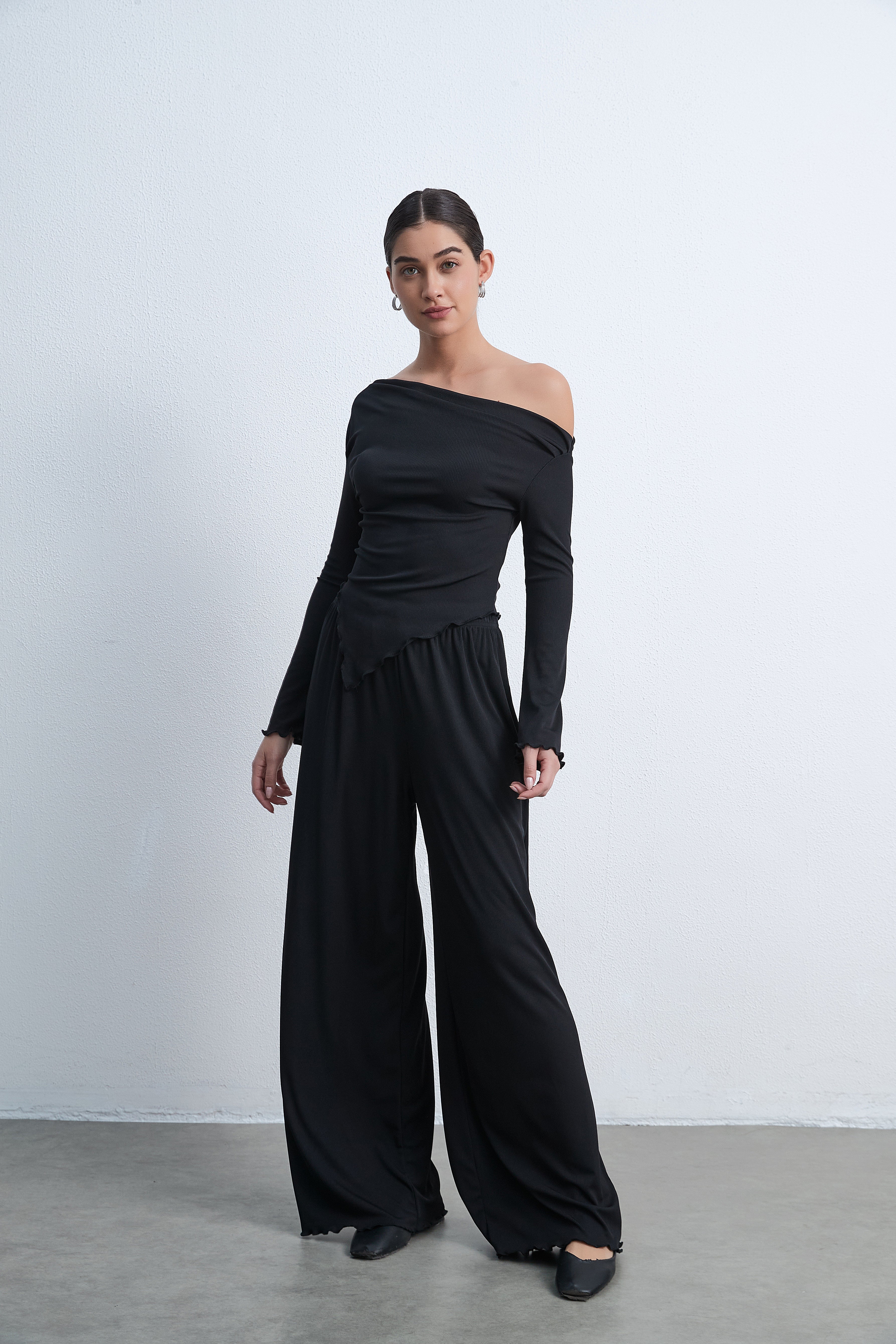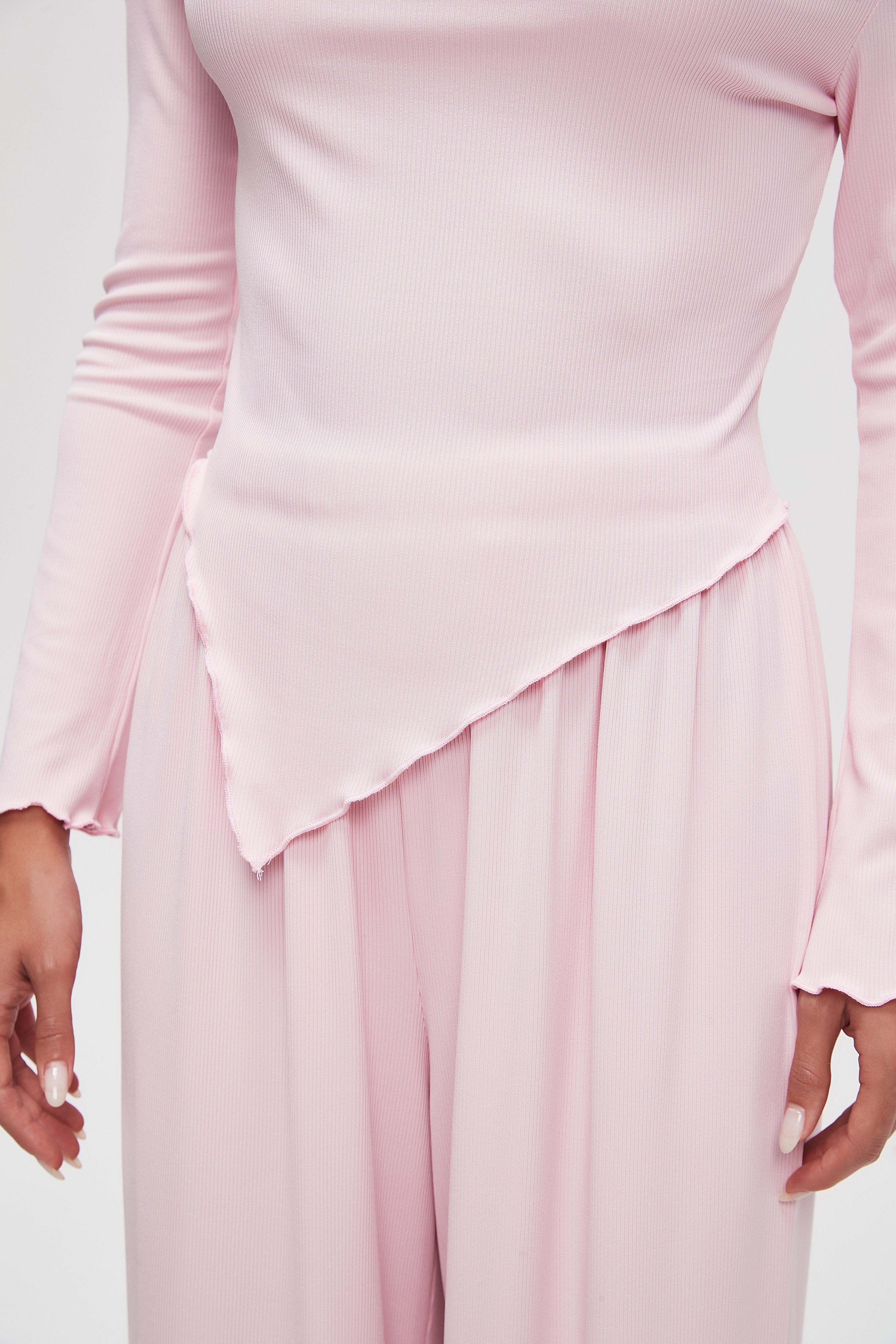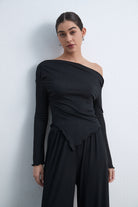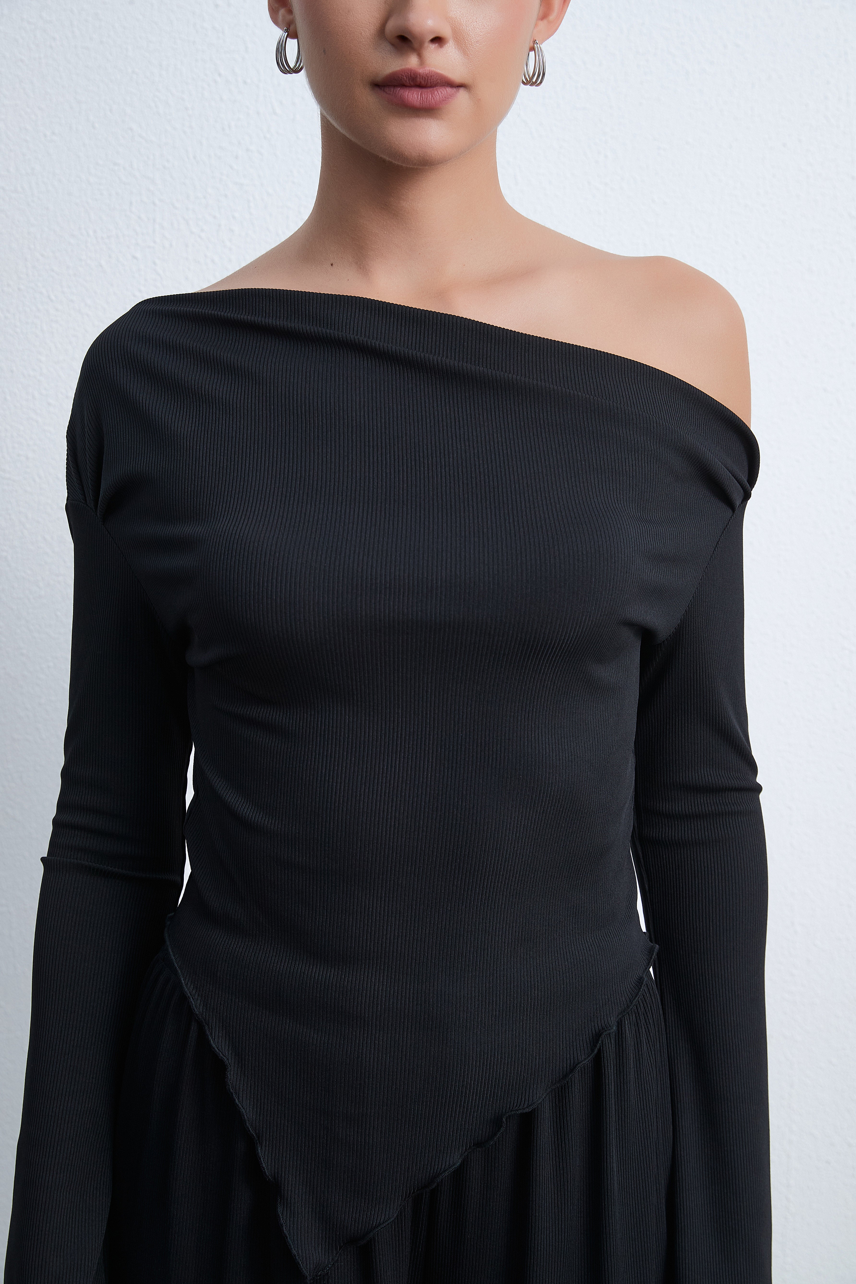 بلوزة سادة بكم طويل على شكل V