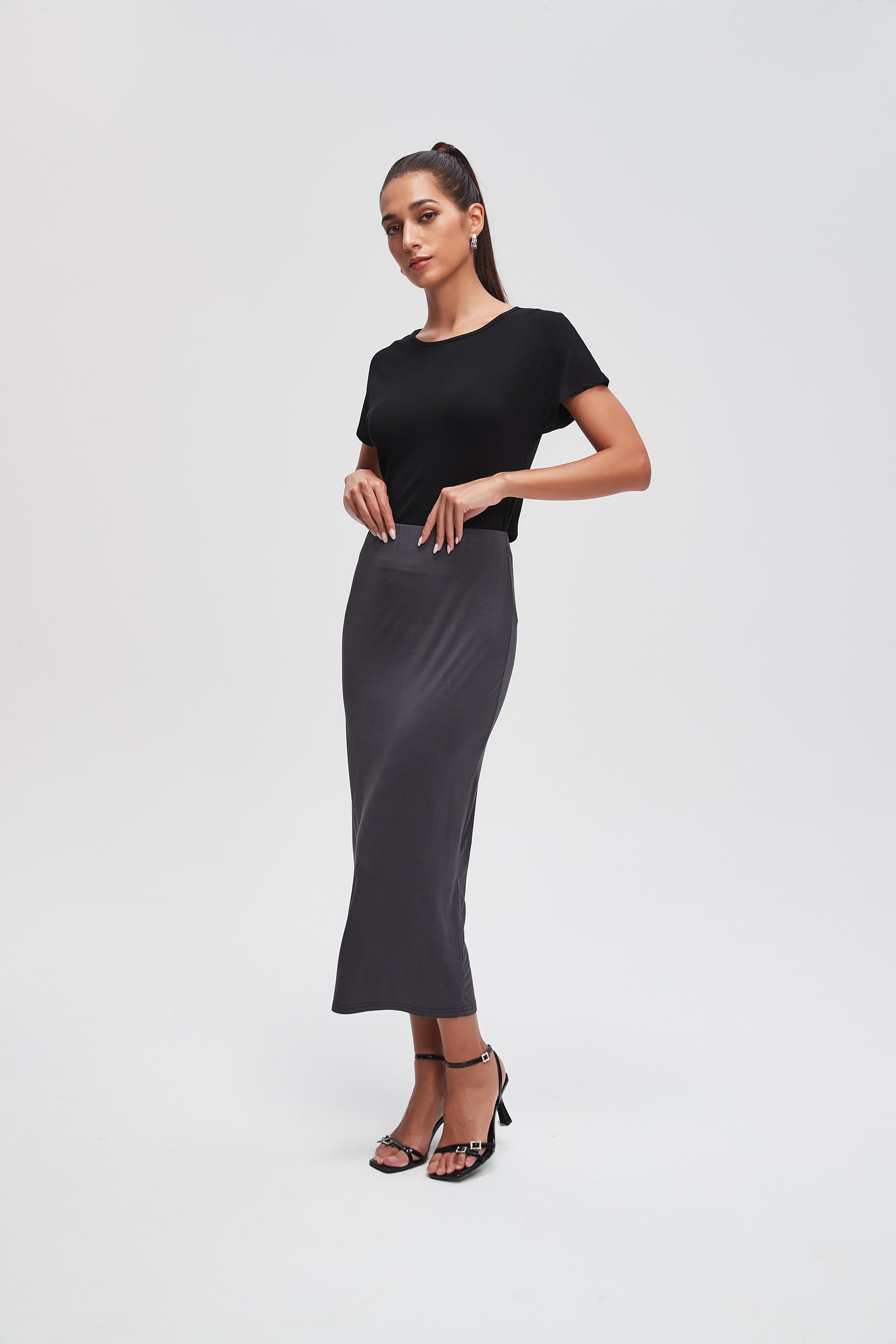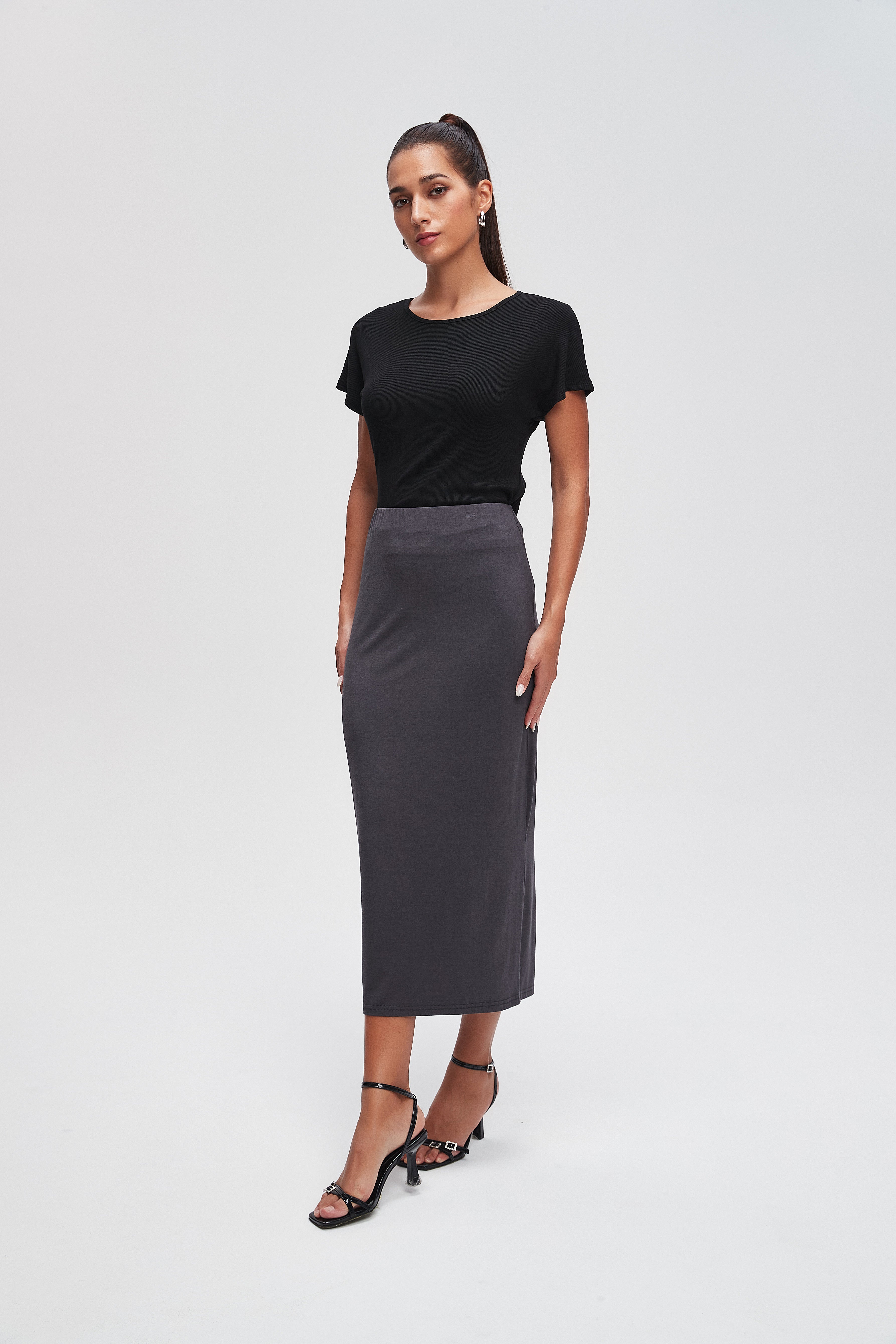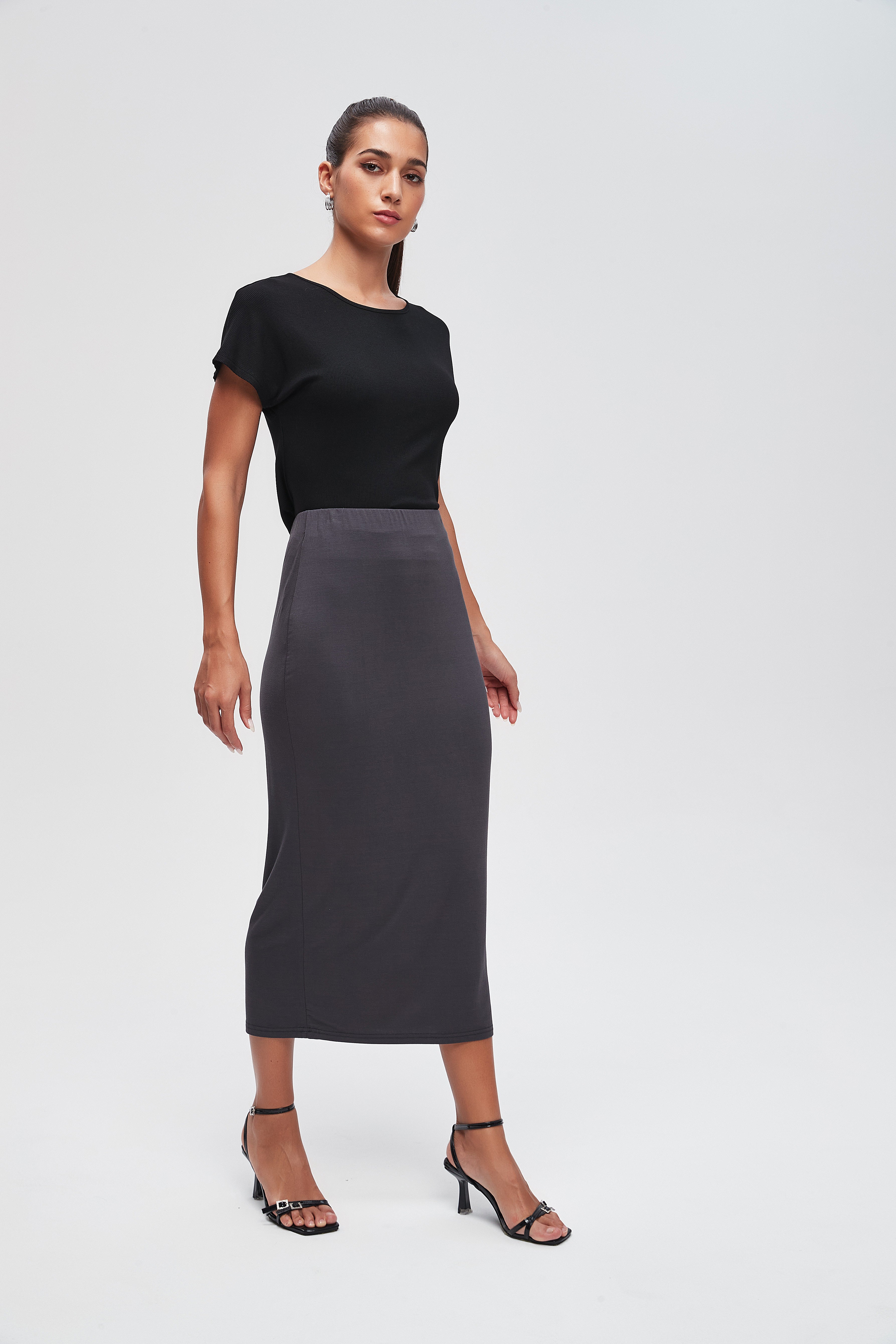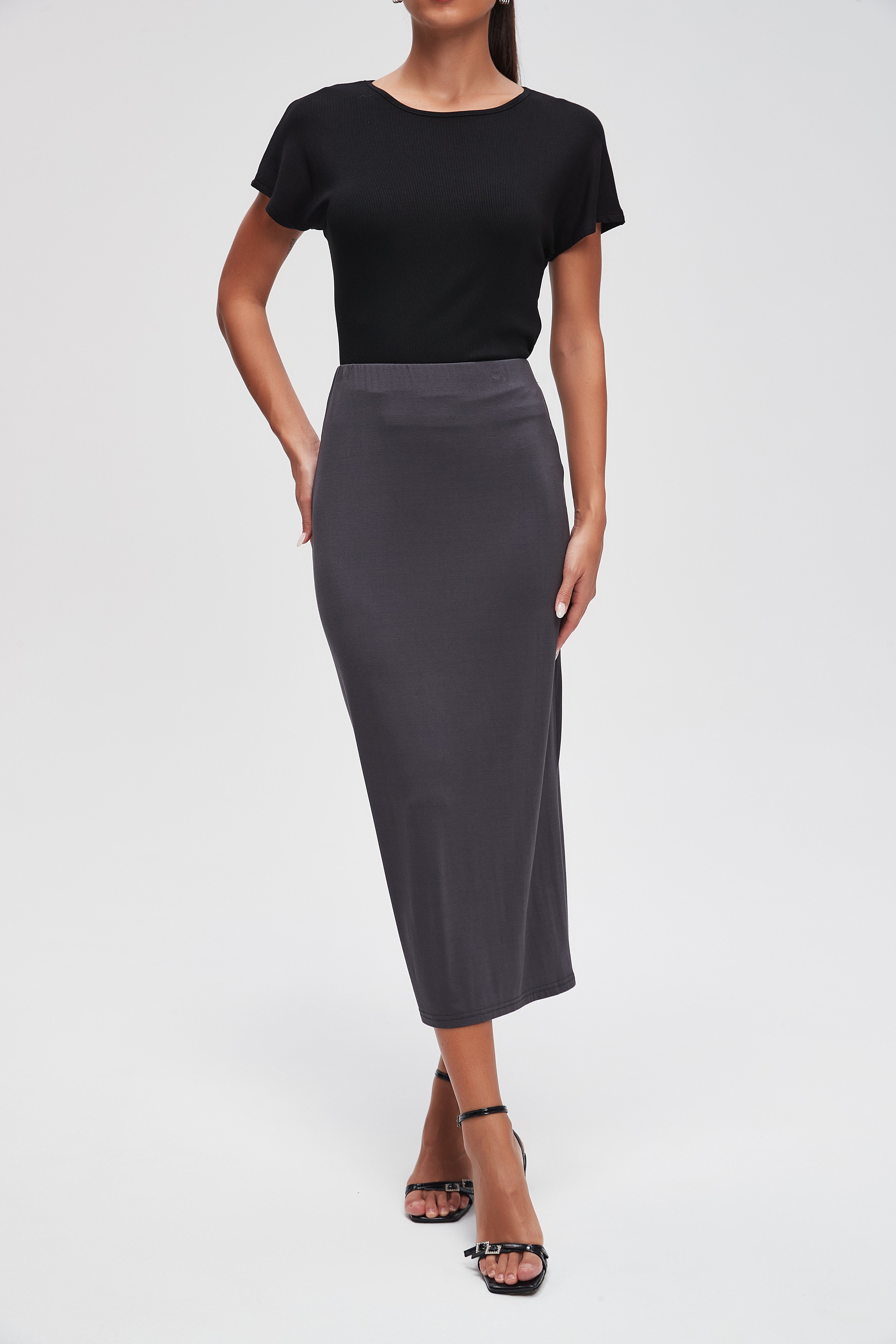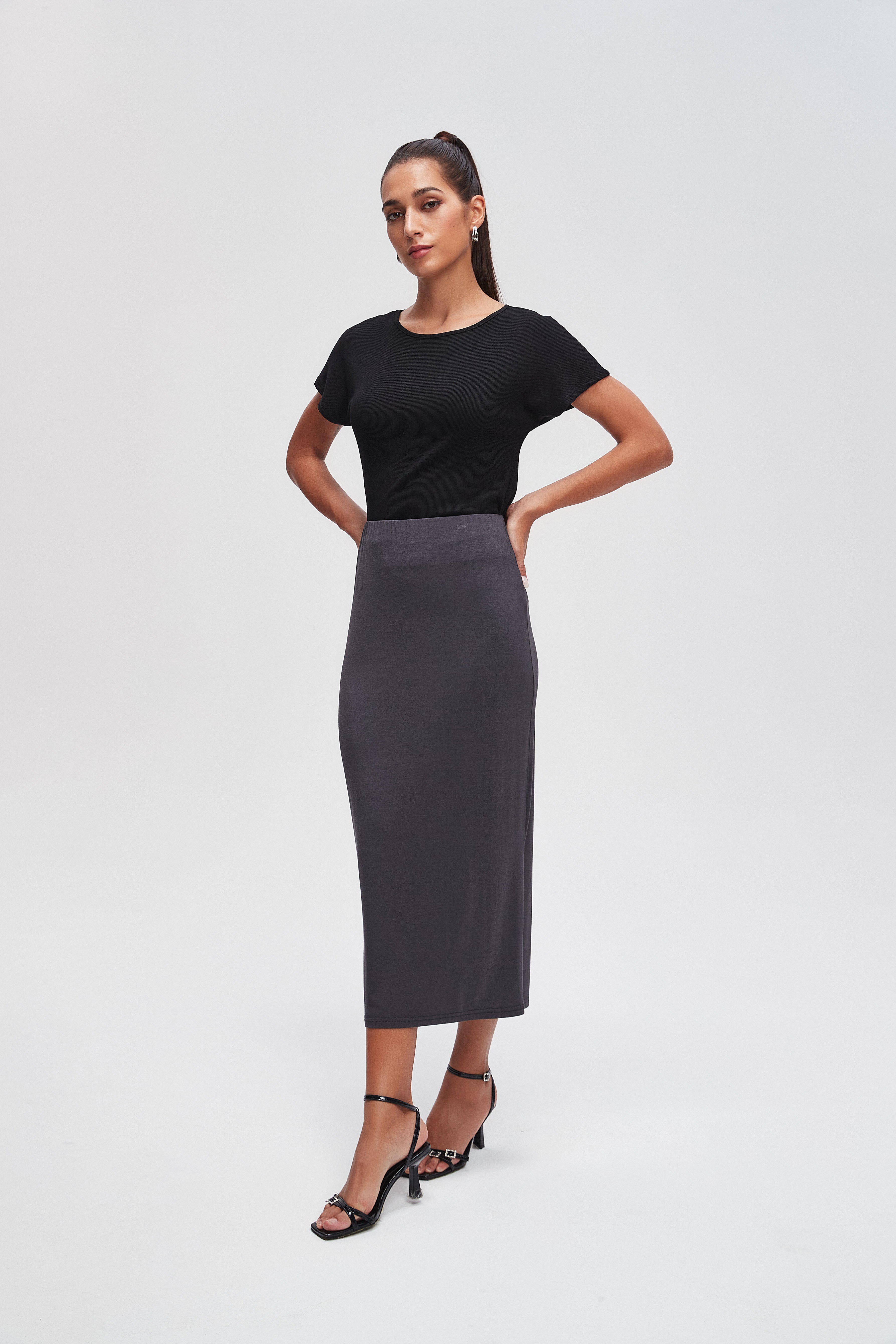 تنورة محبوكة ميدي سادة