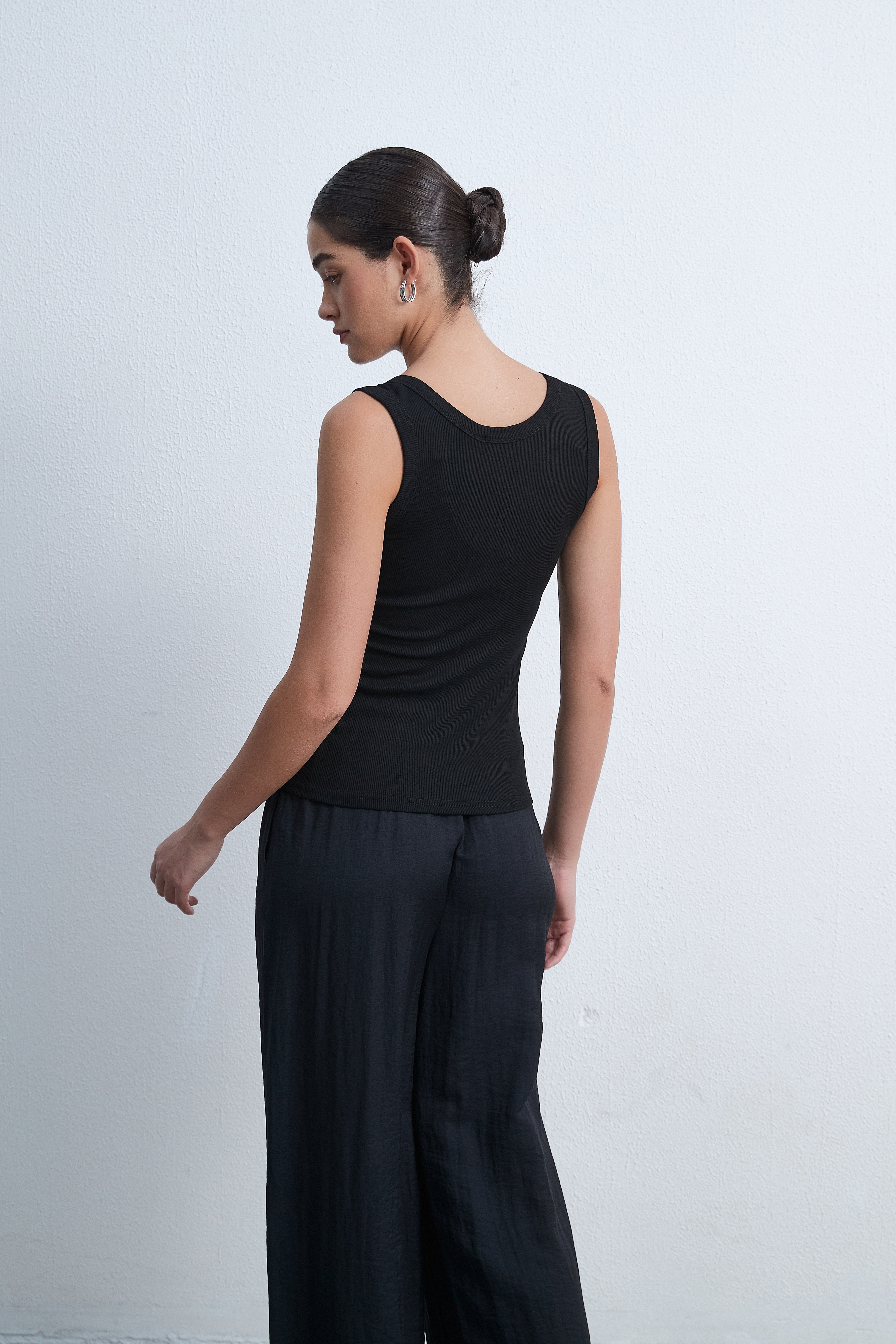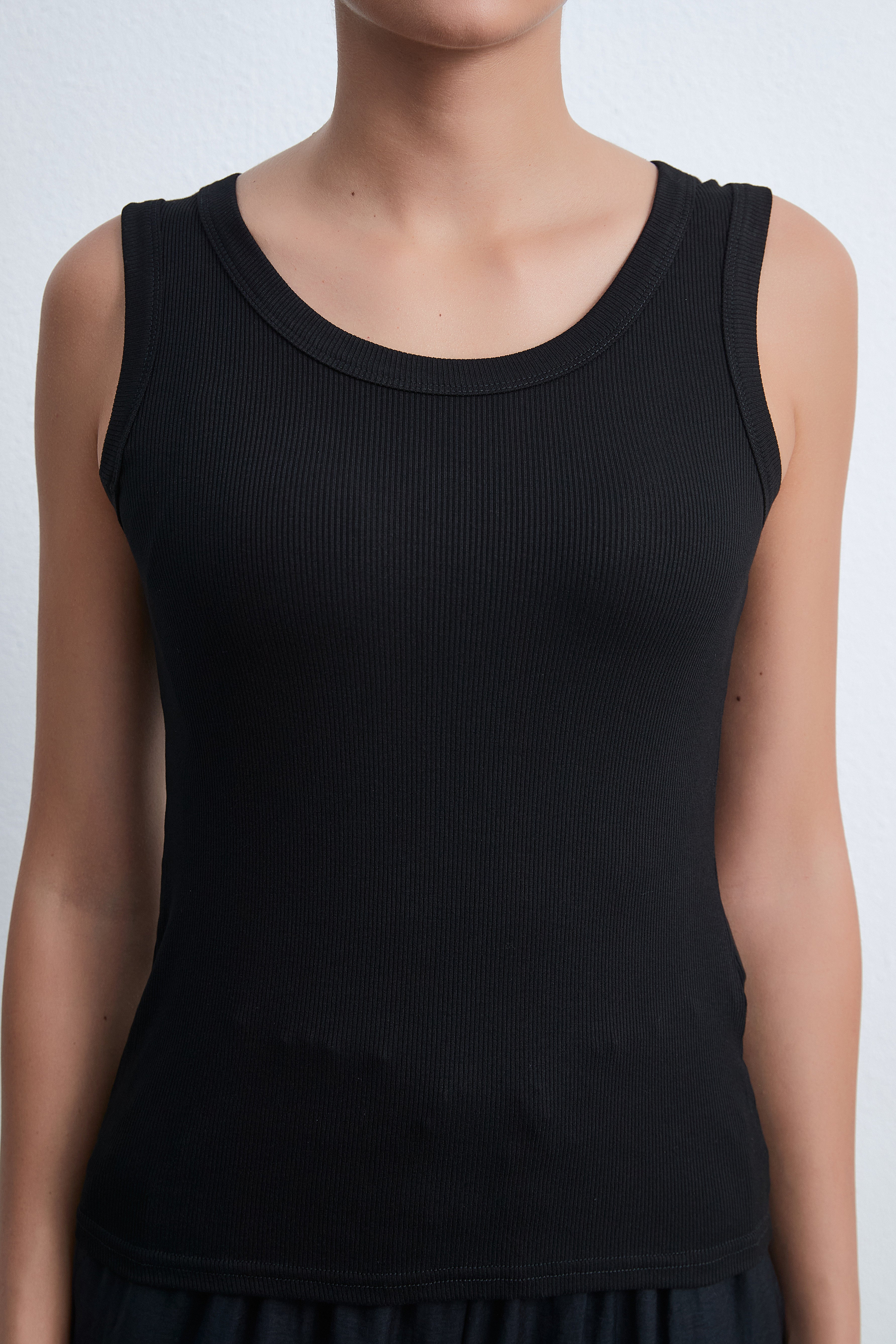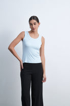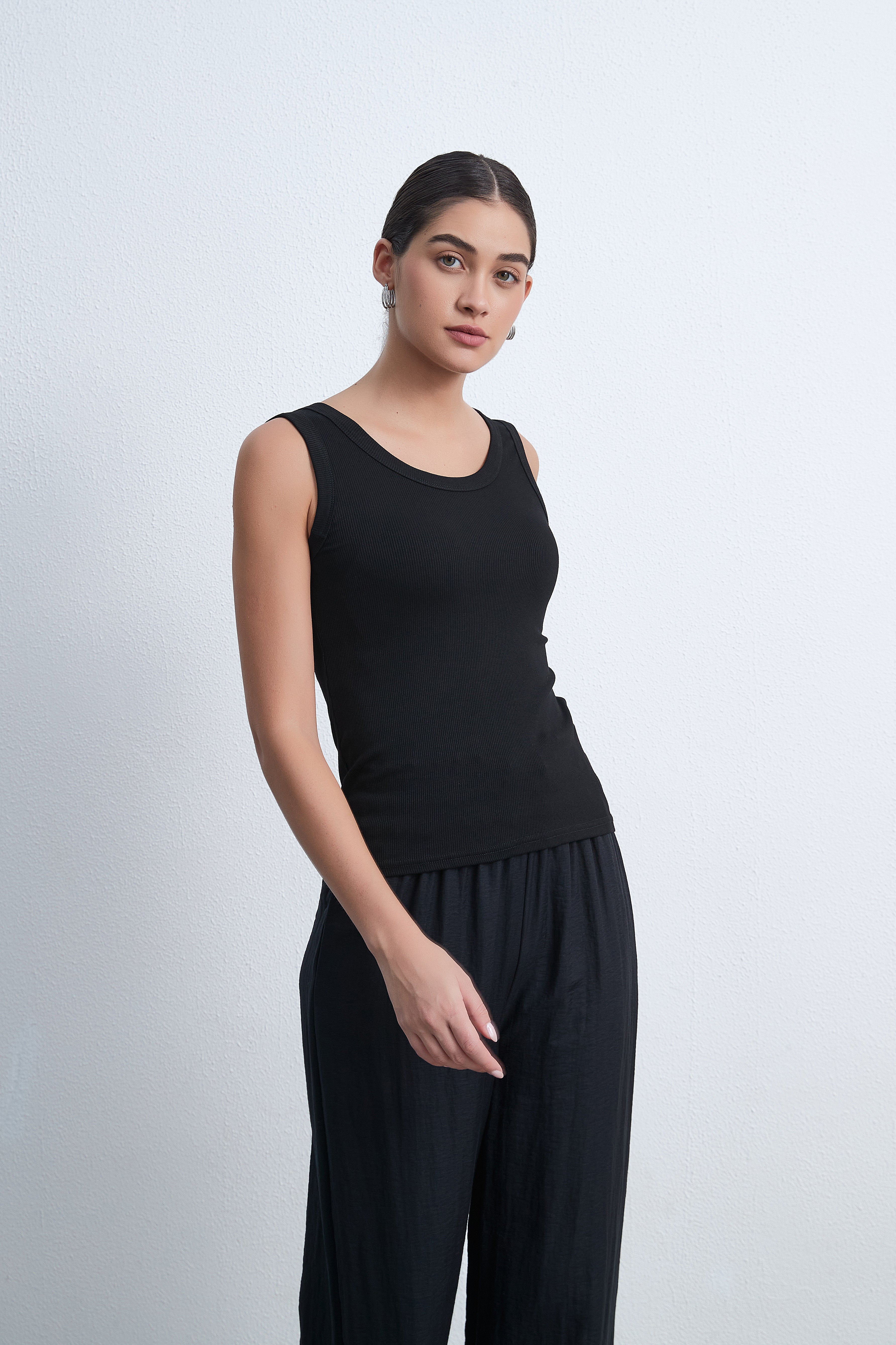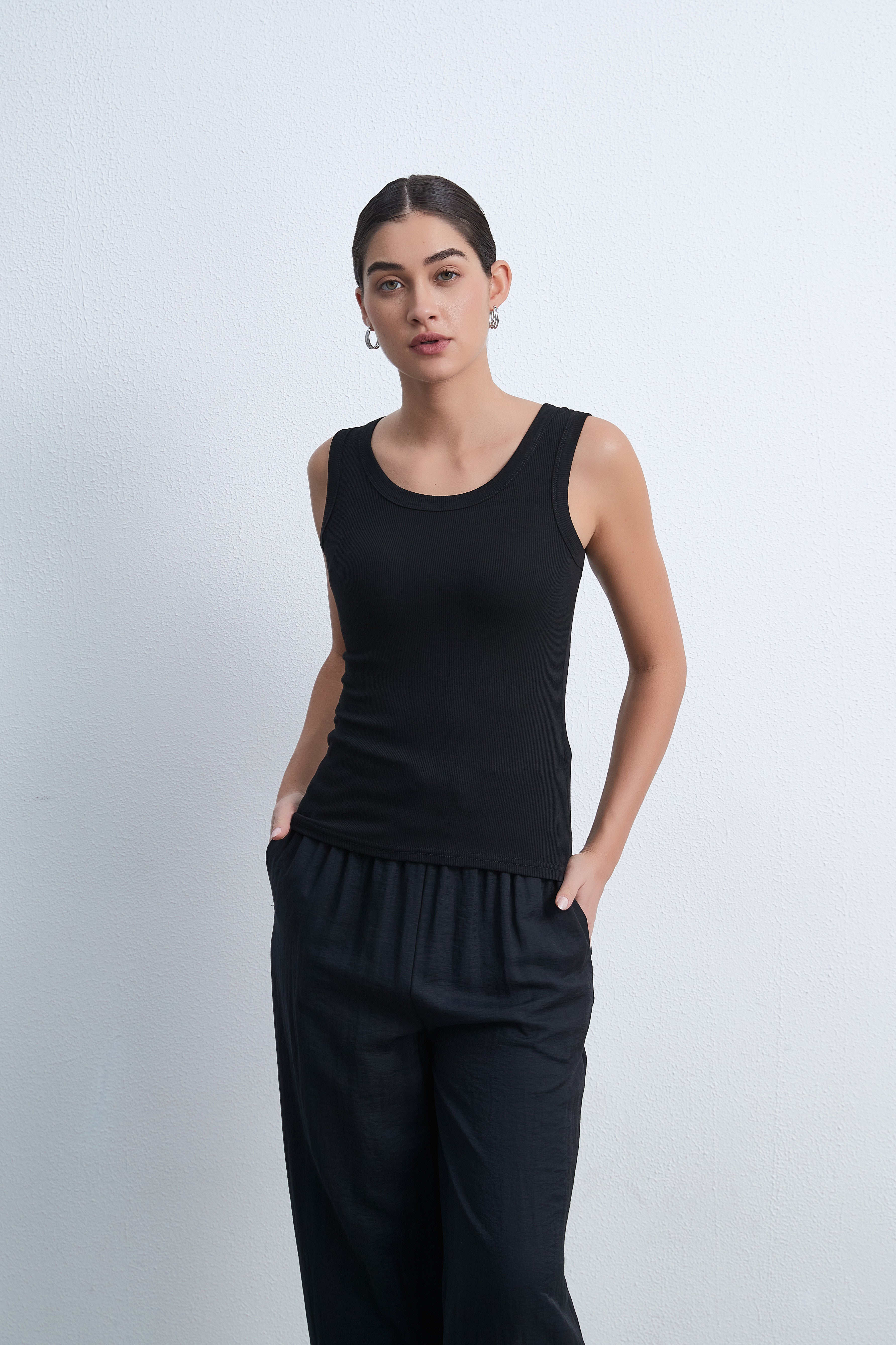 بلوزة سادة بدون أكمام وفتحة رقبة مستديرة