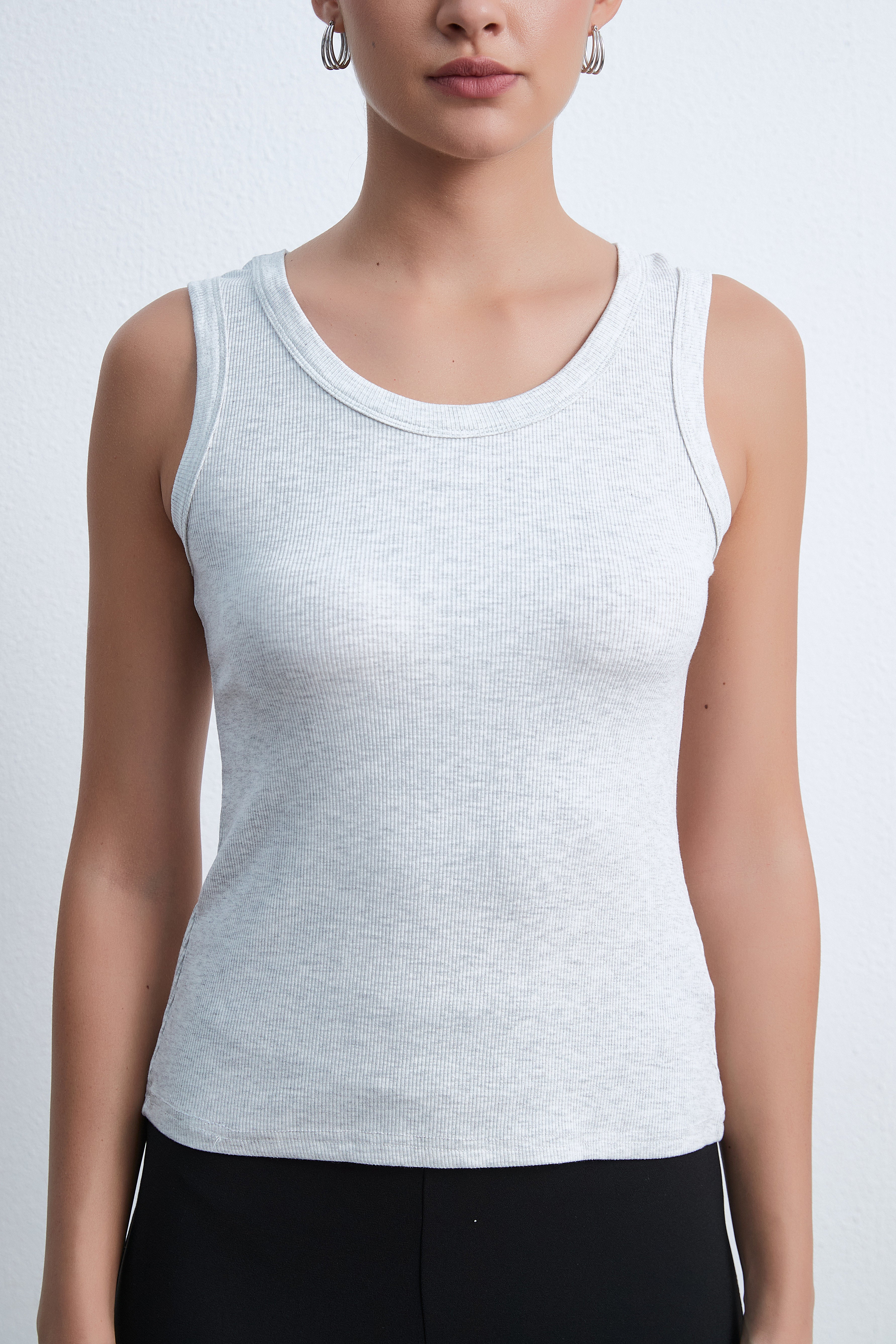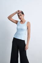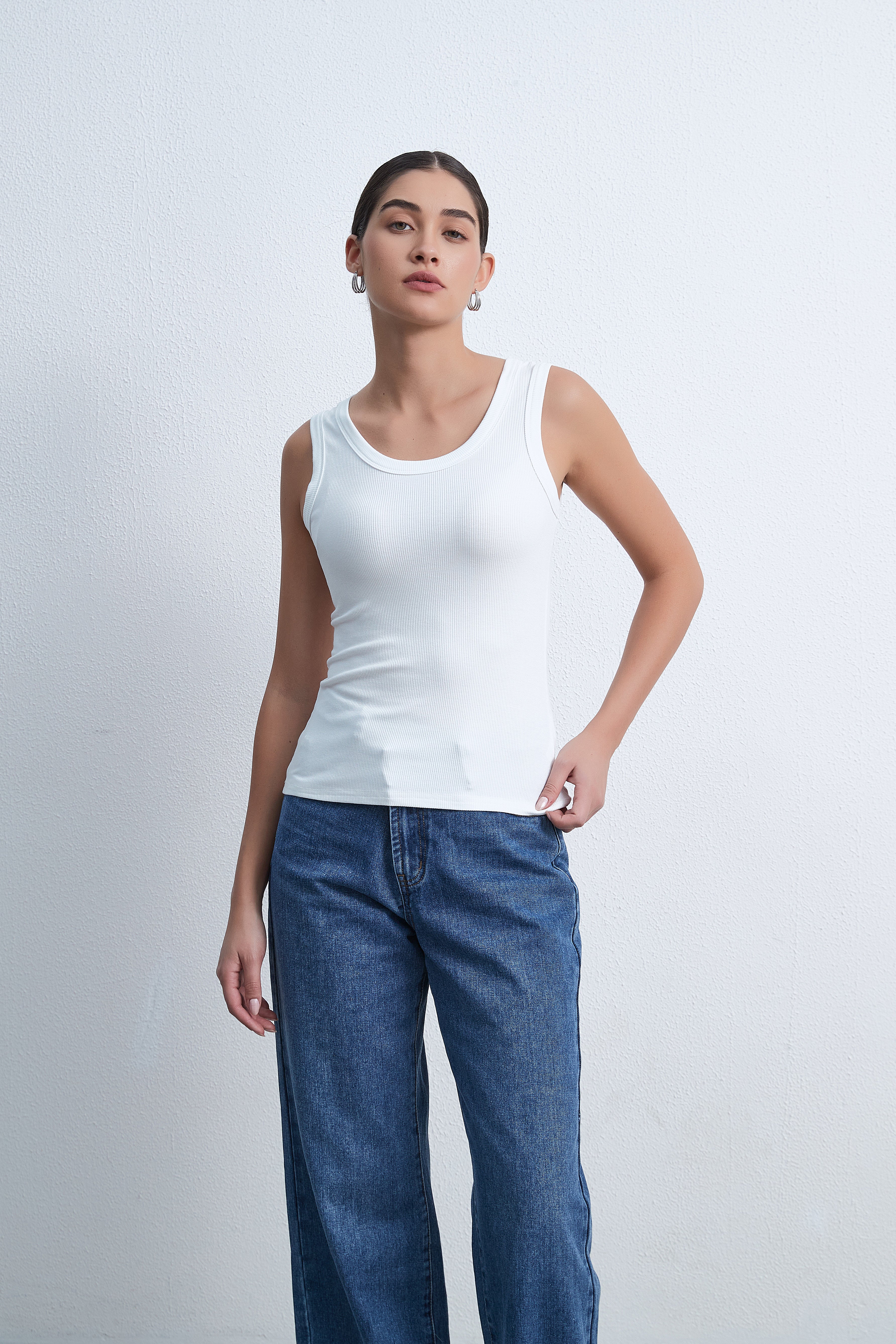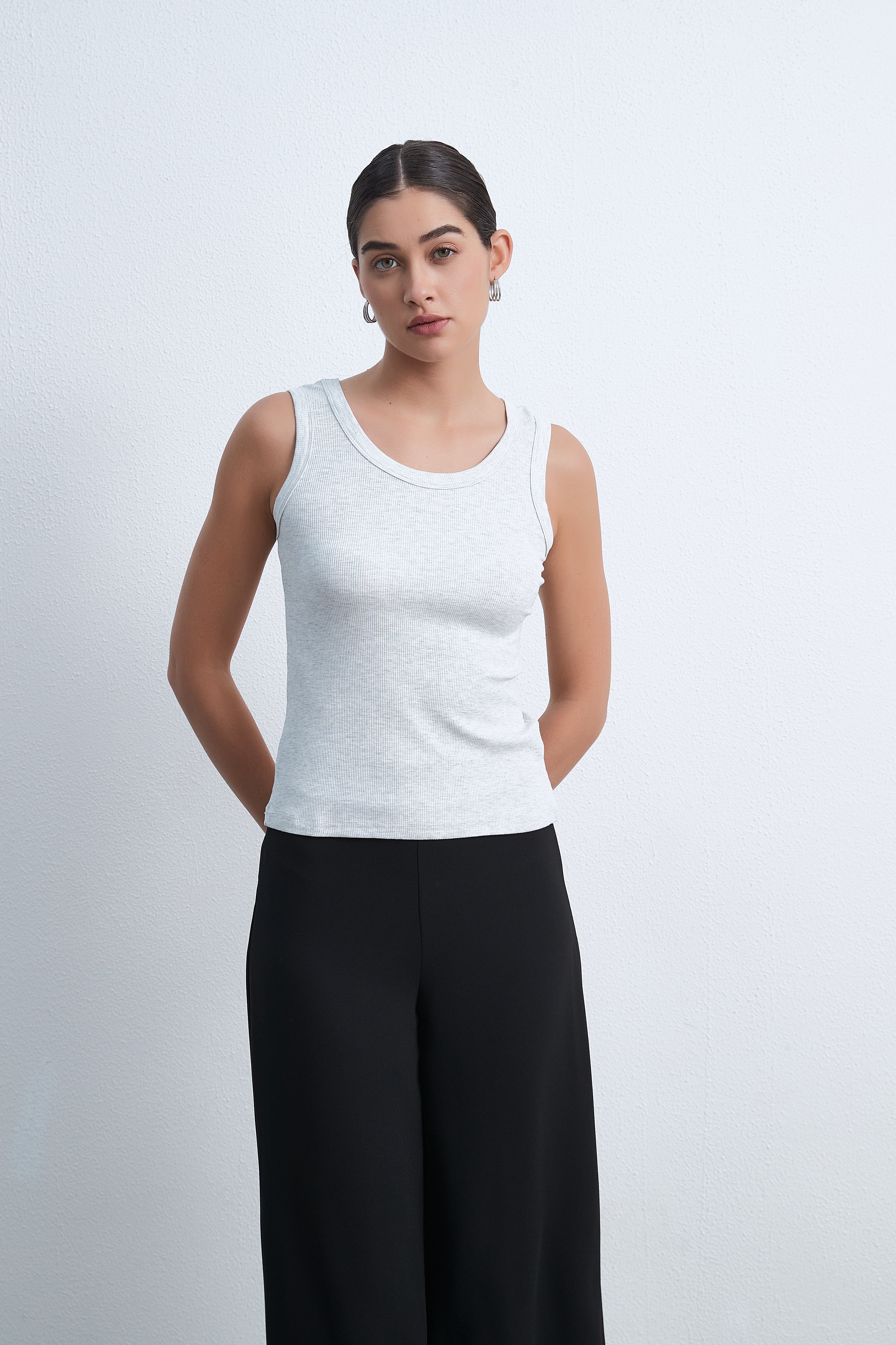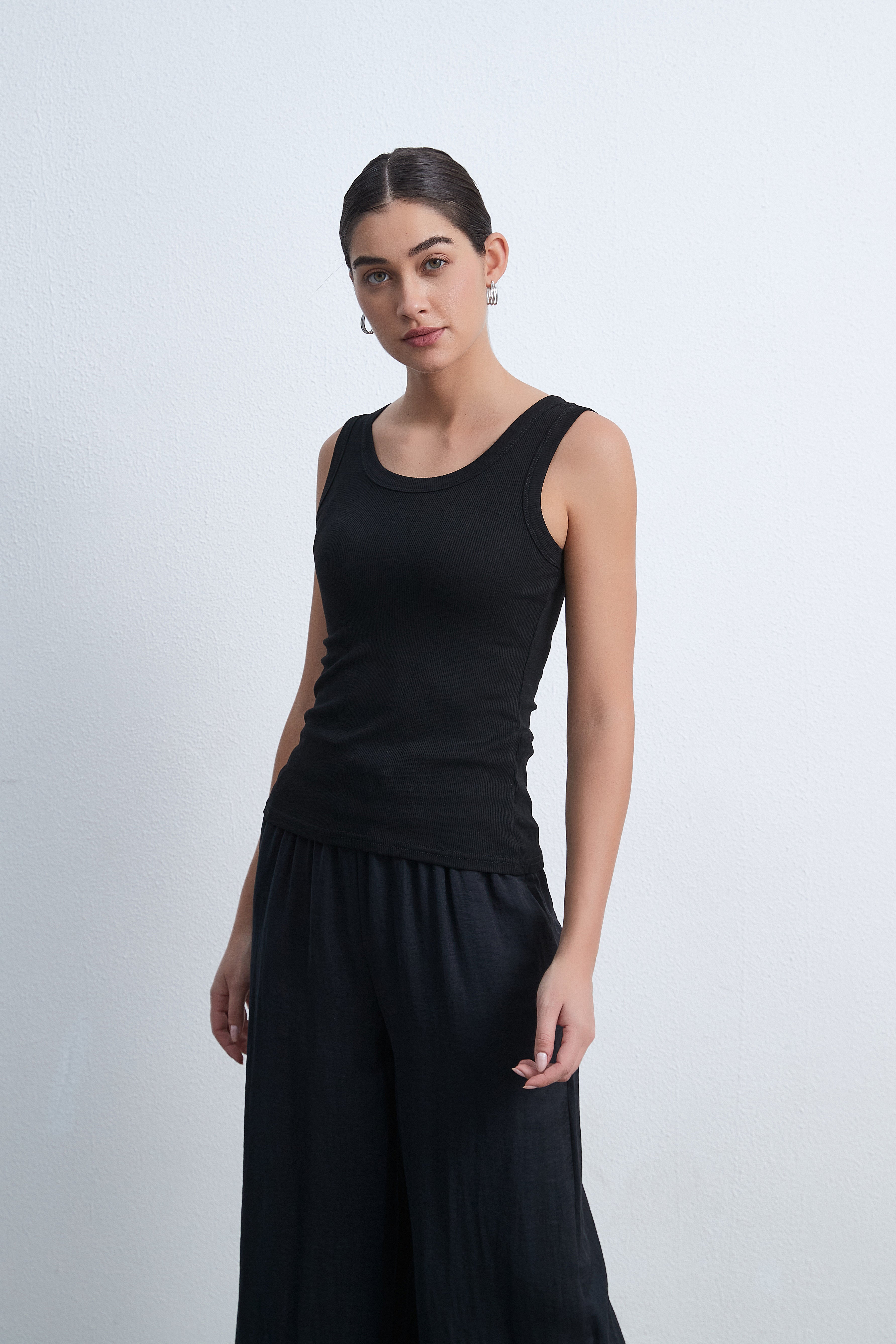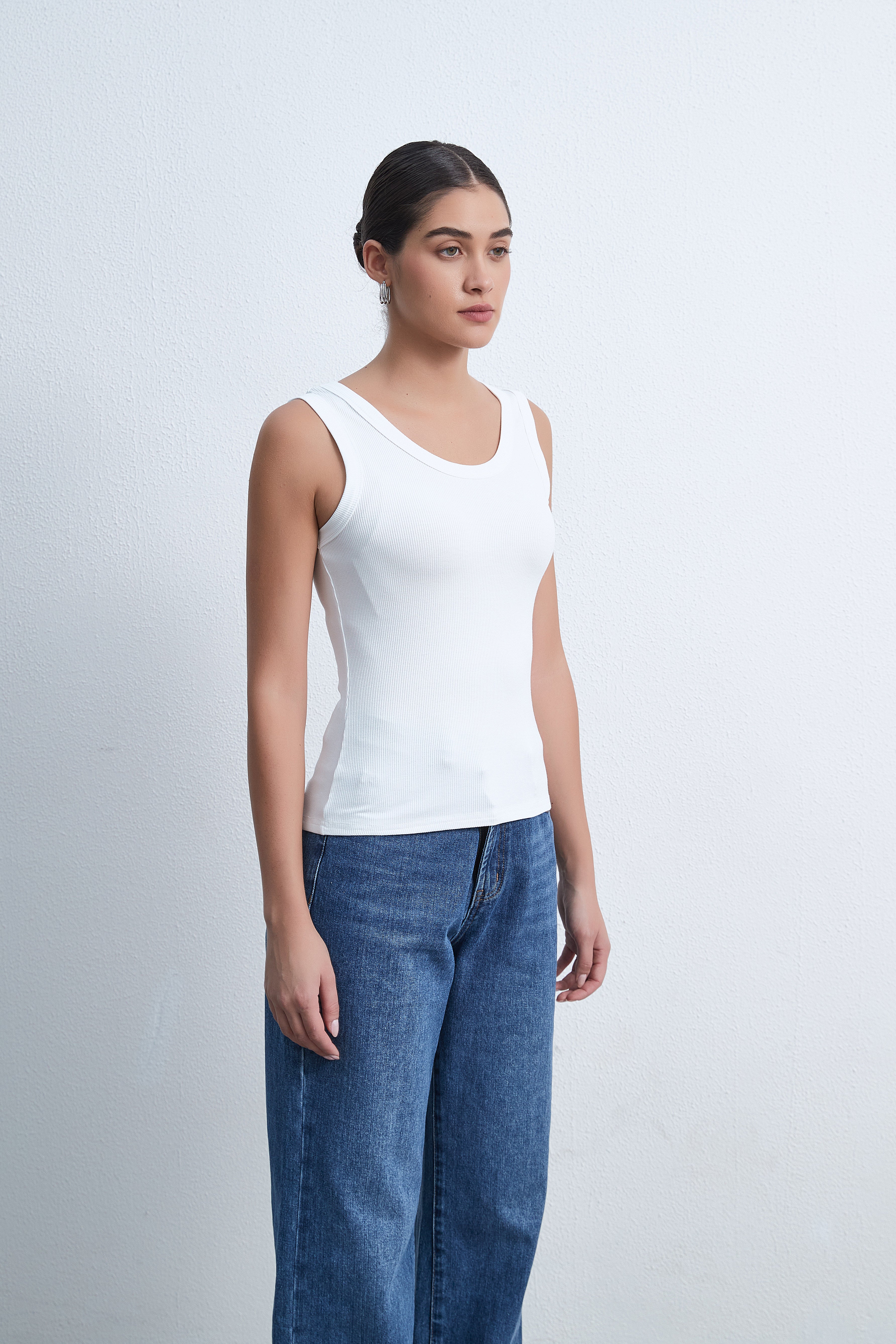 بلوزة سادة بدون أكمام وفتحة رقبة مستديرة
