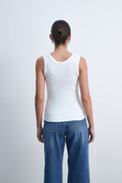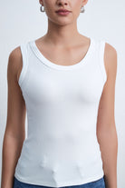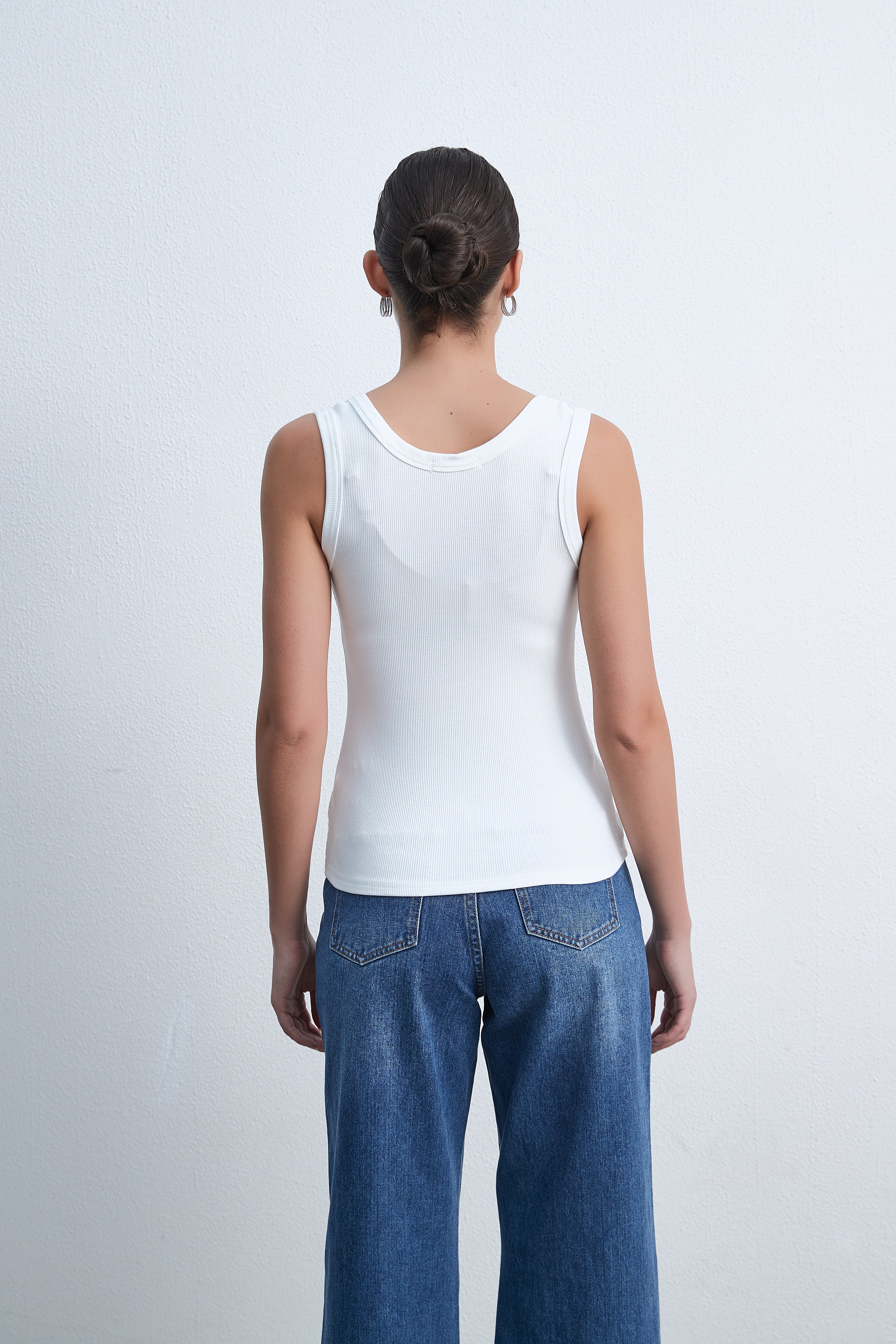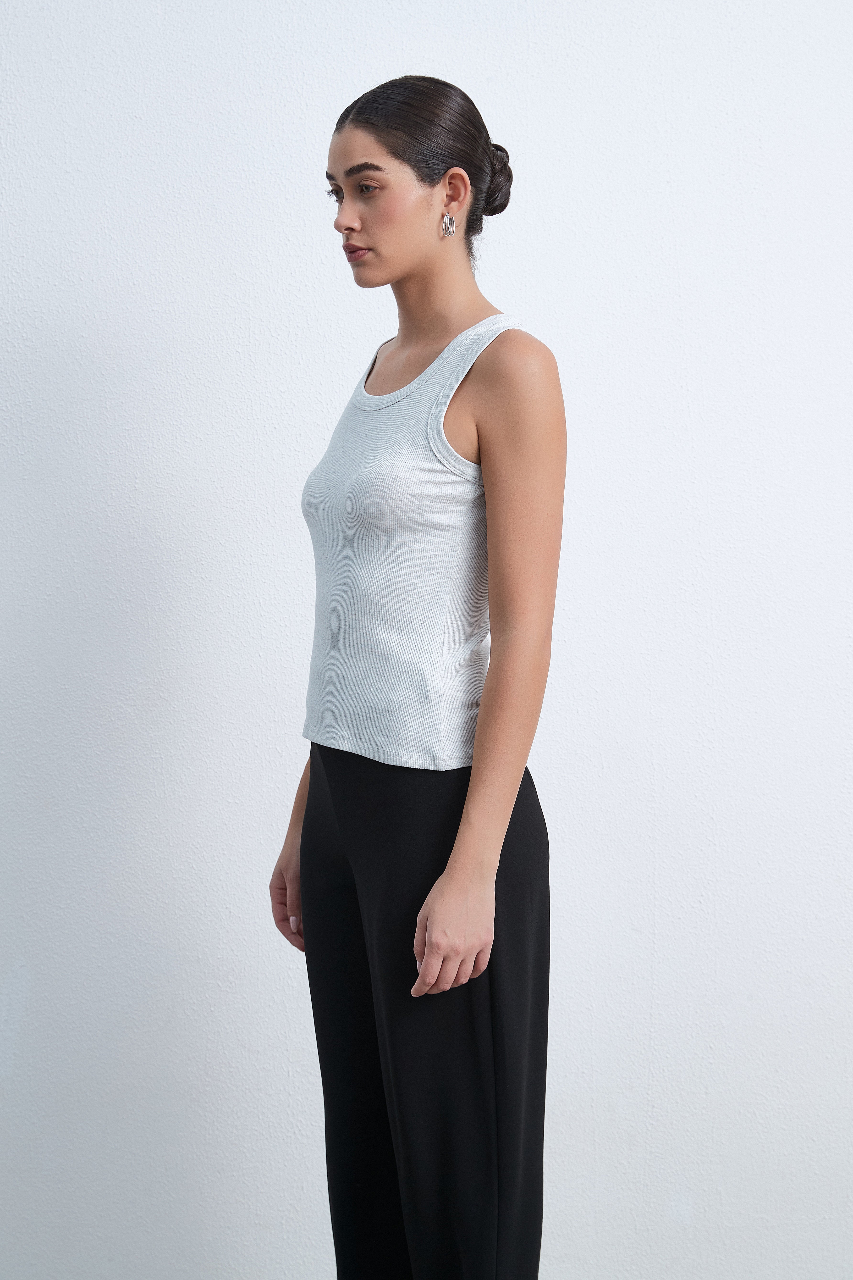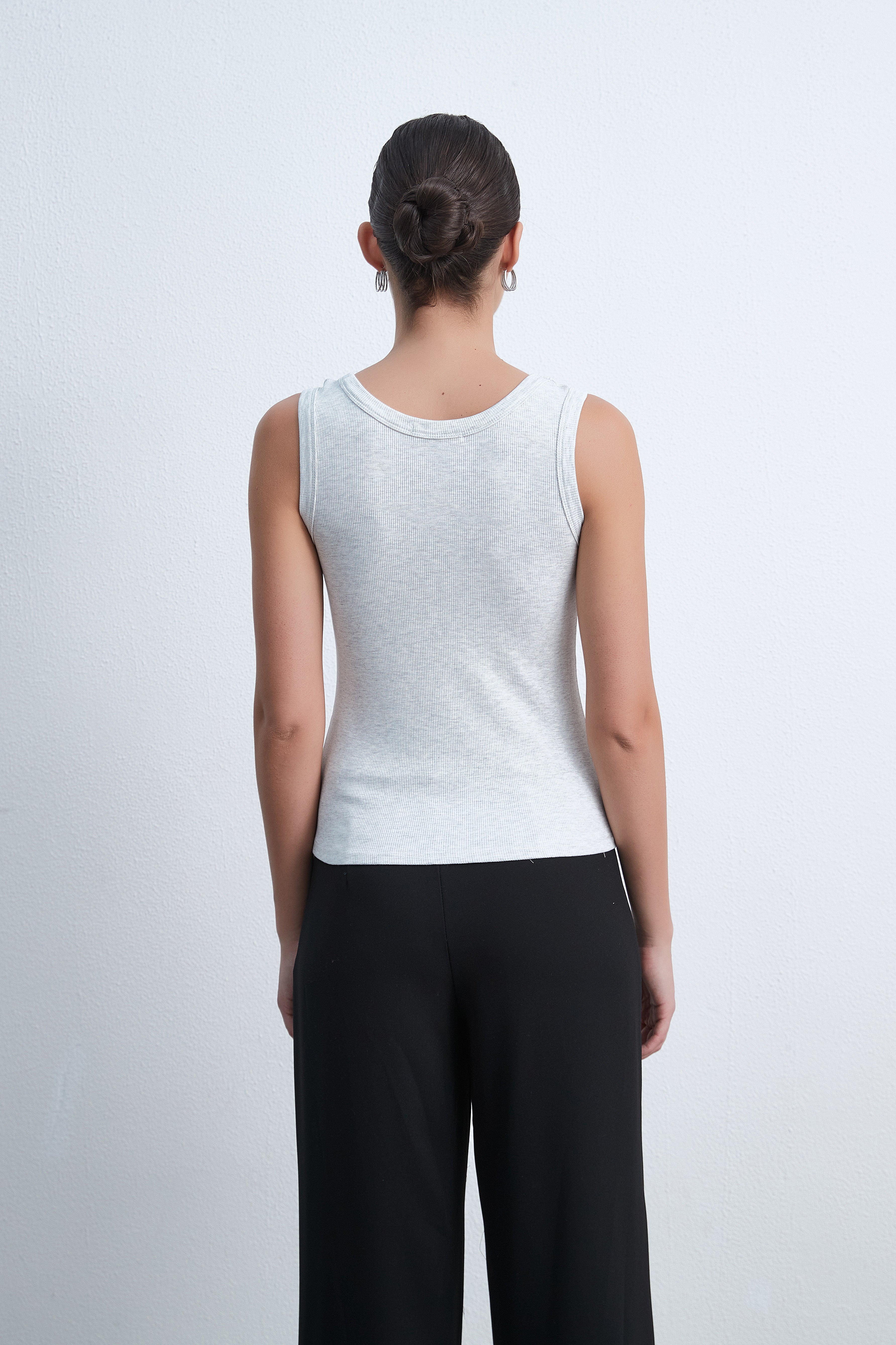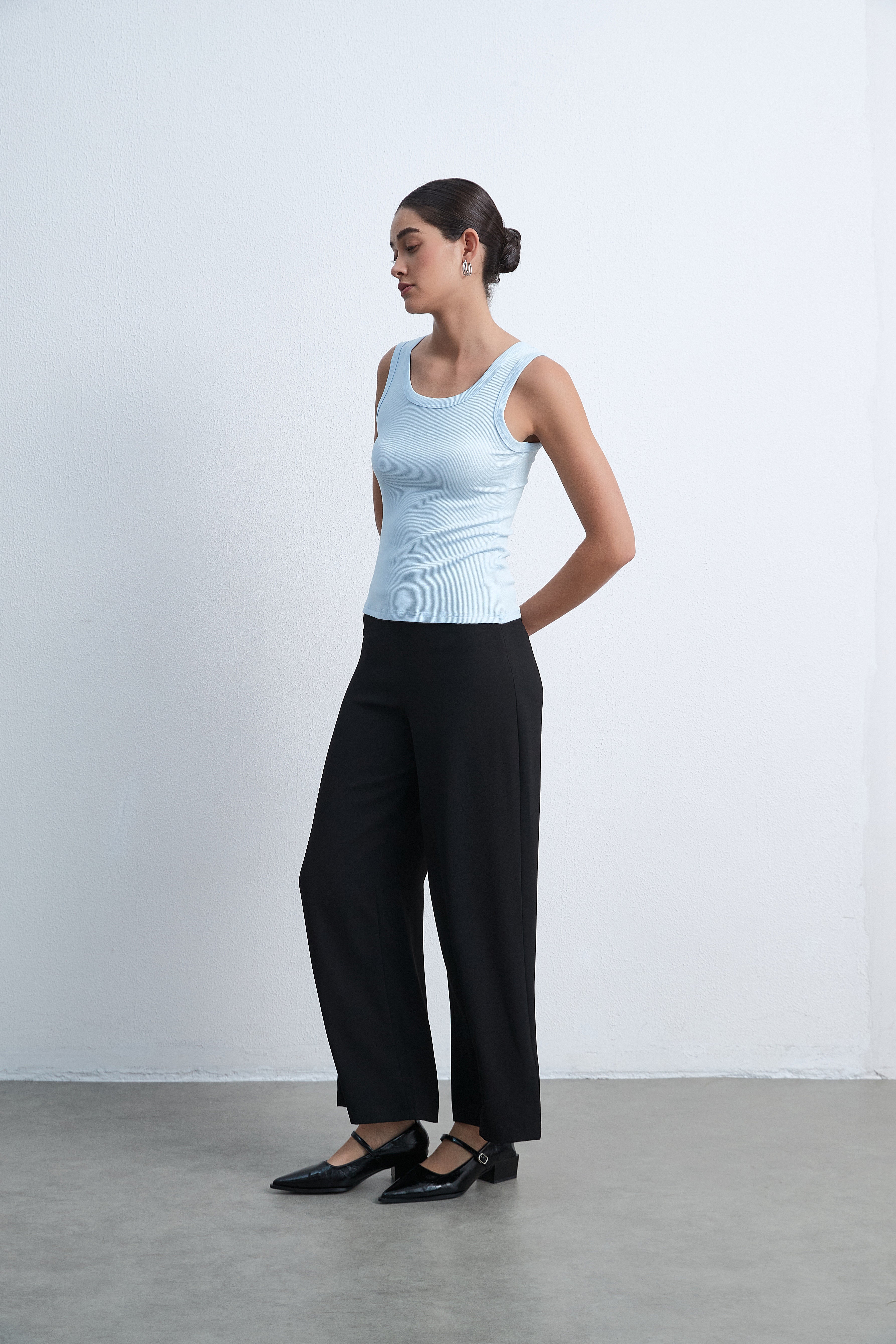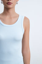 بلوزة سادة بدون أكمام وفتحة رقبة مستديرة
