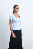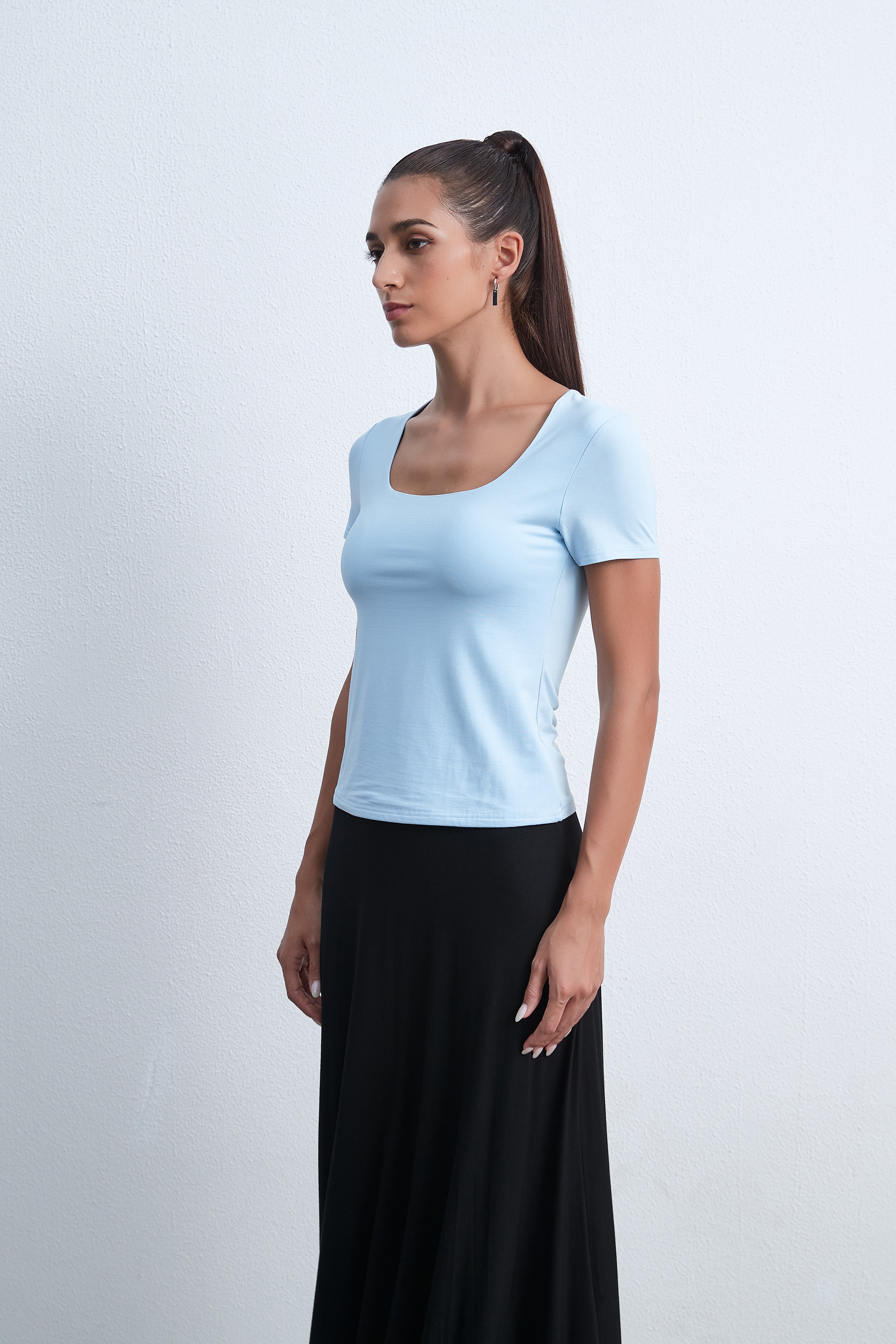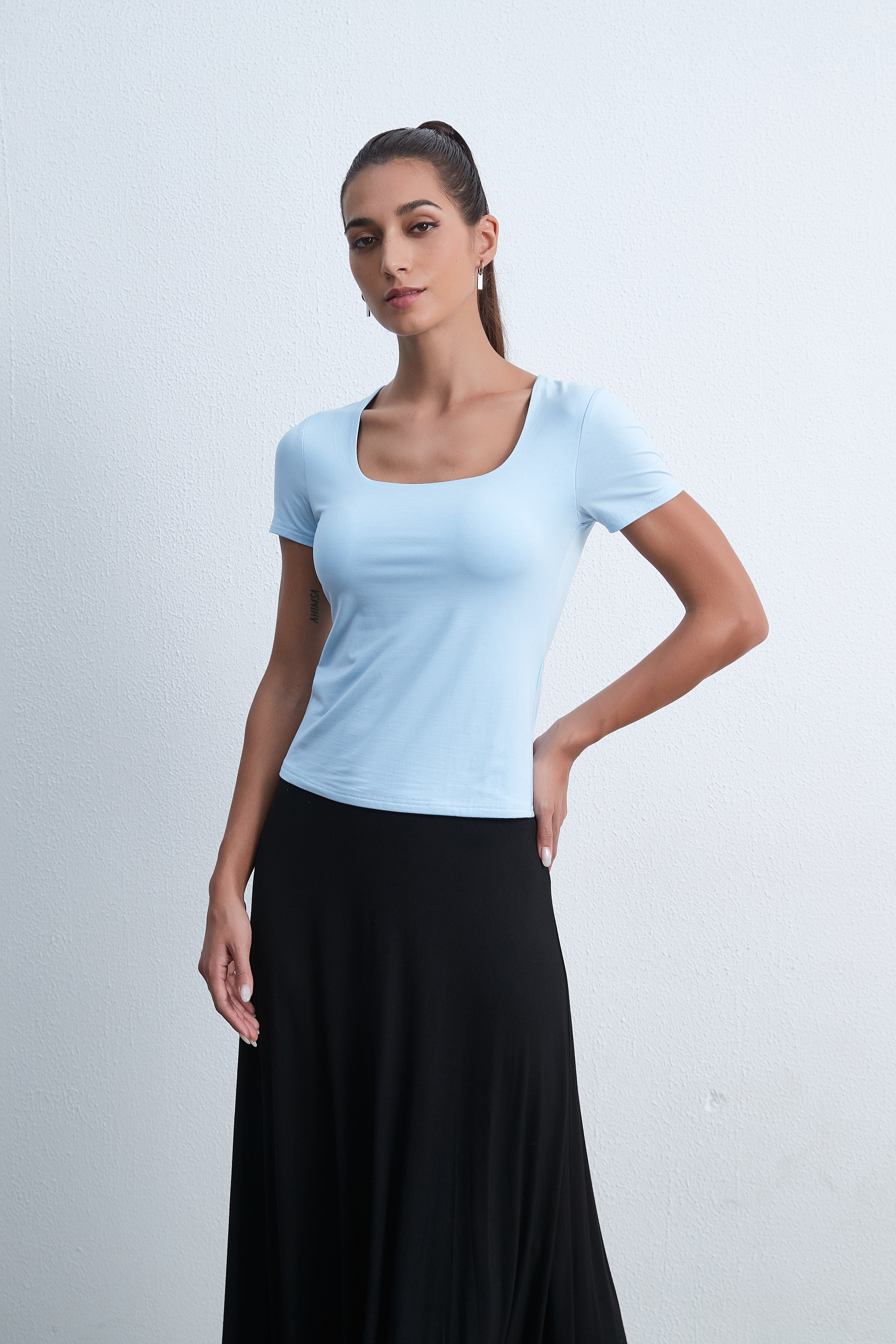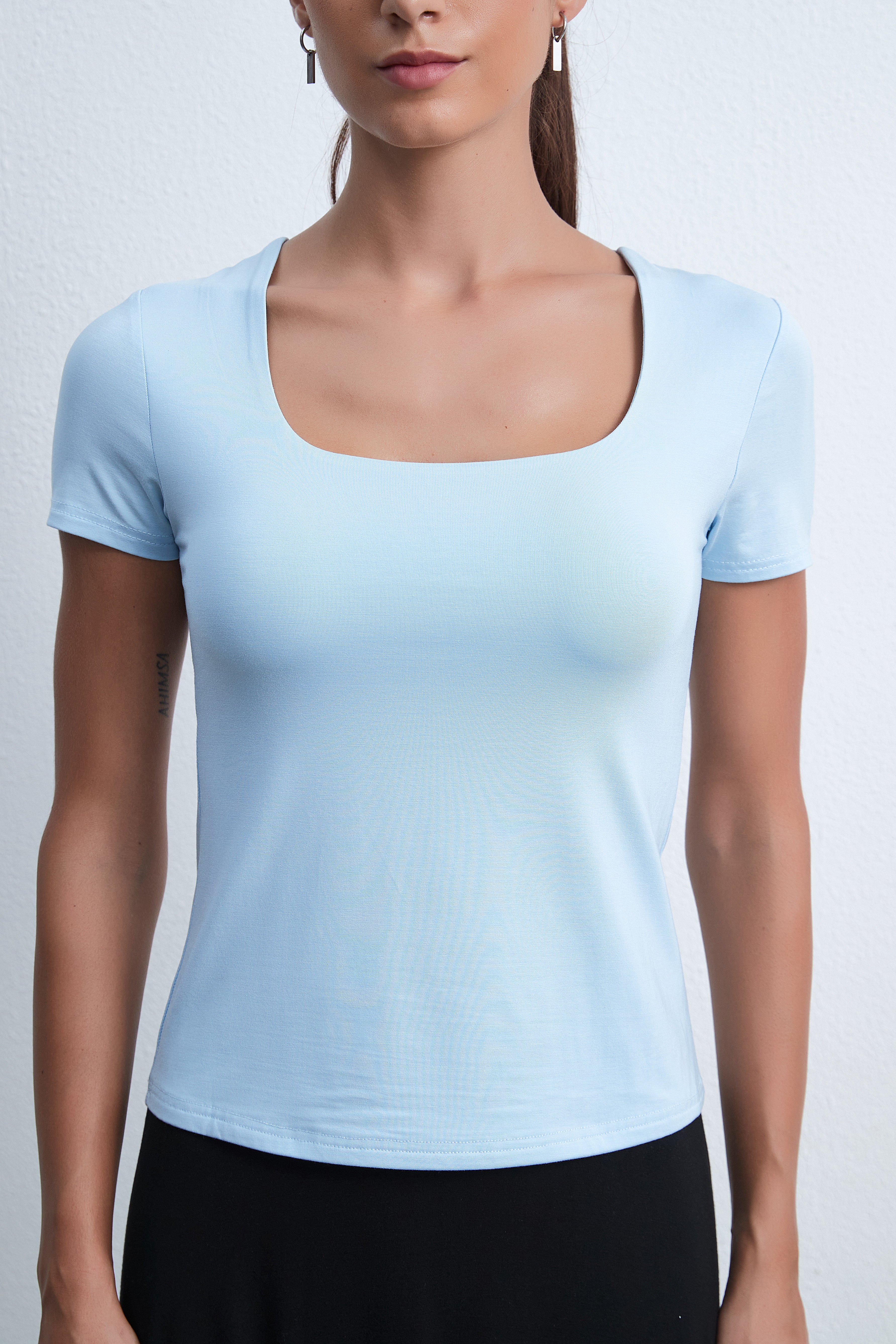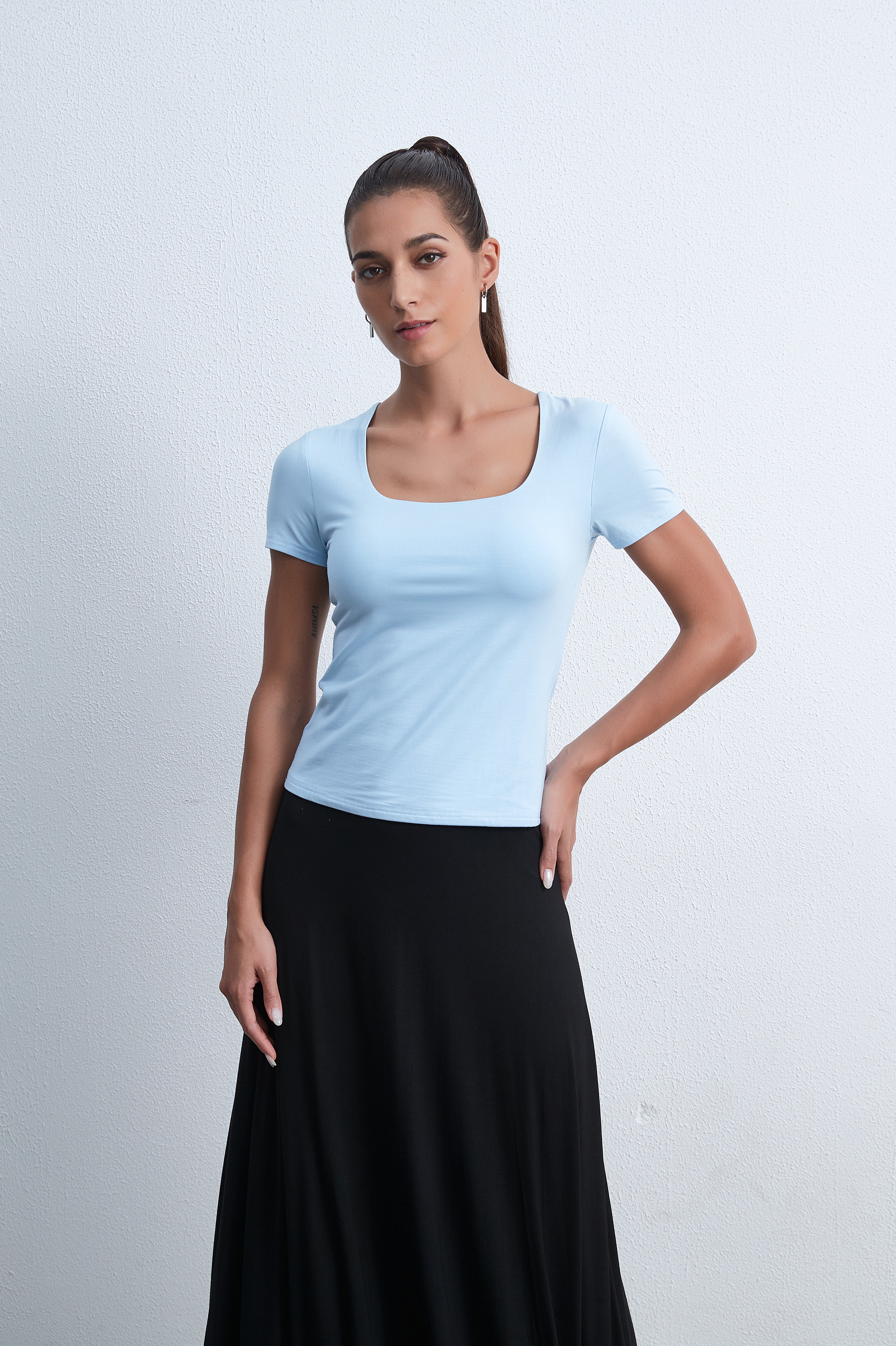 بلوزة نصف كم سادة بفتحة رقبة مربعة
