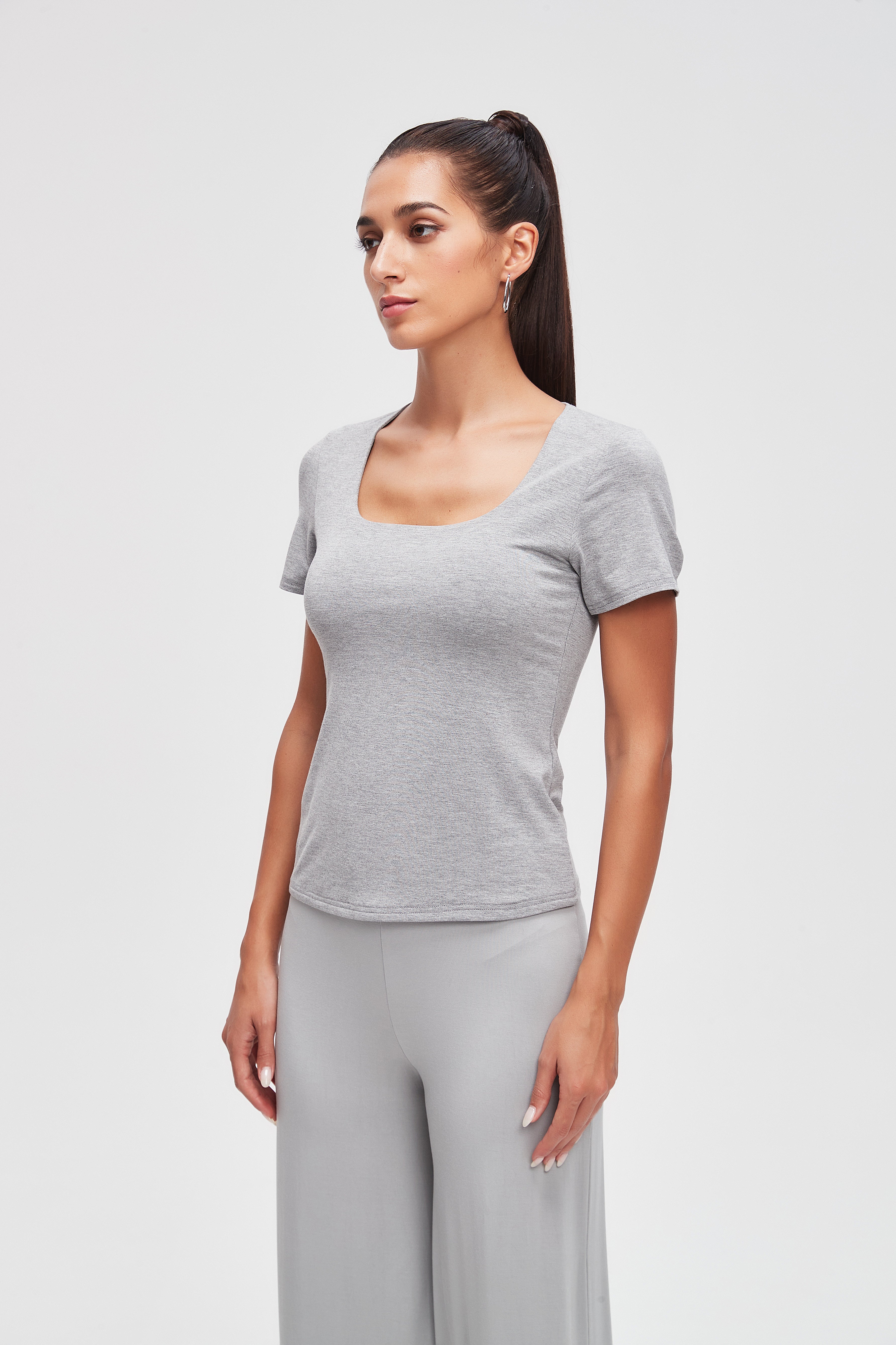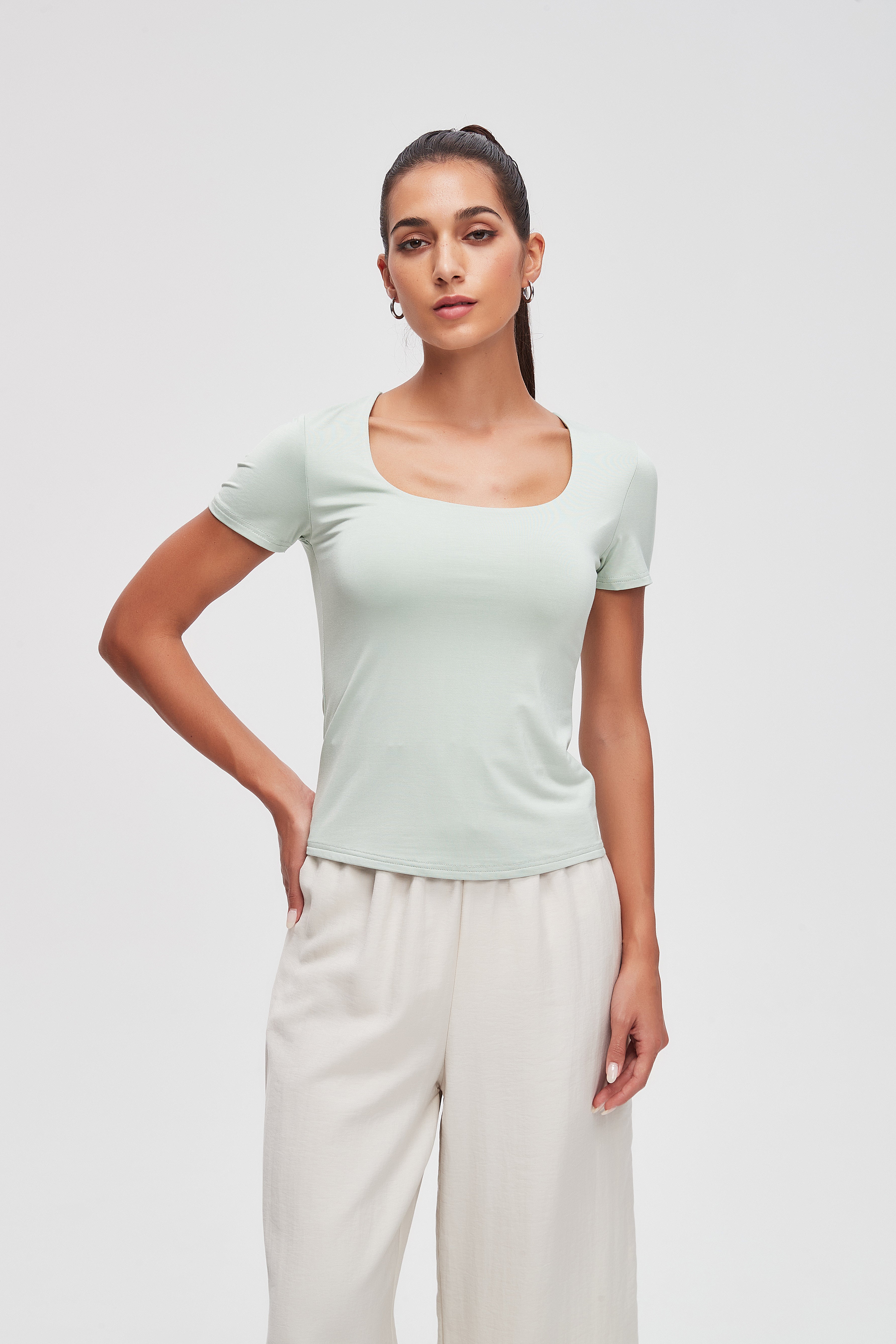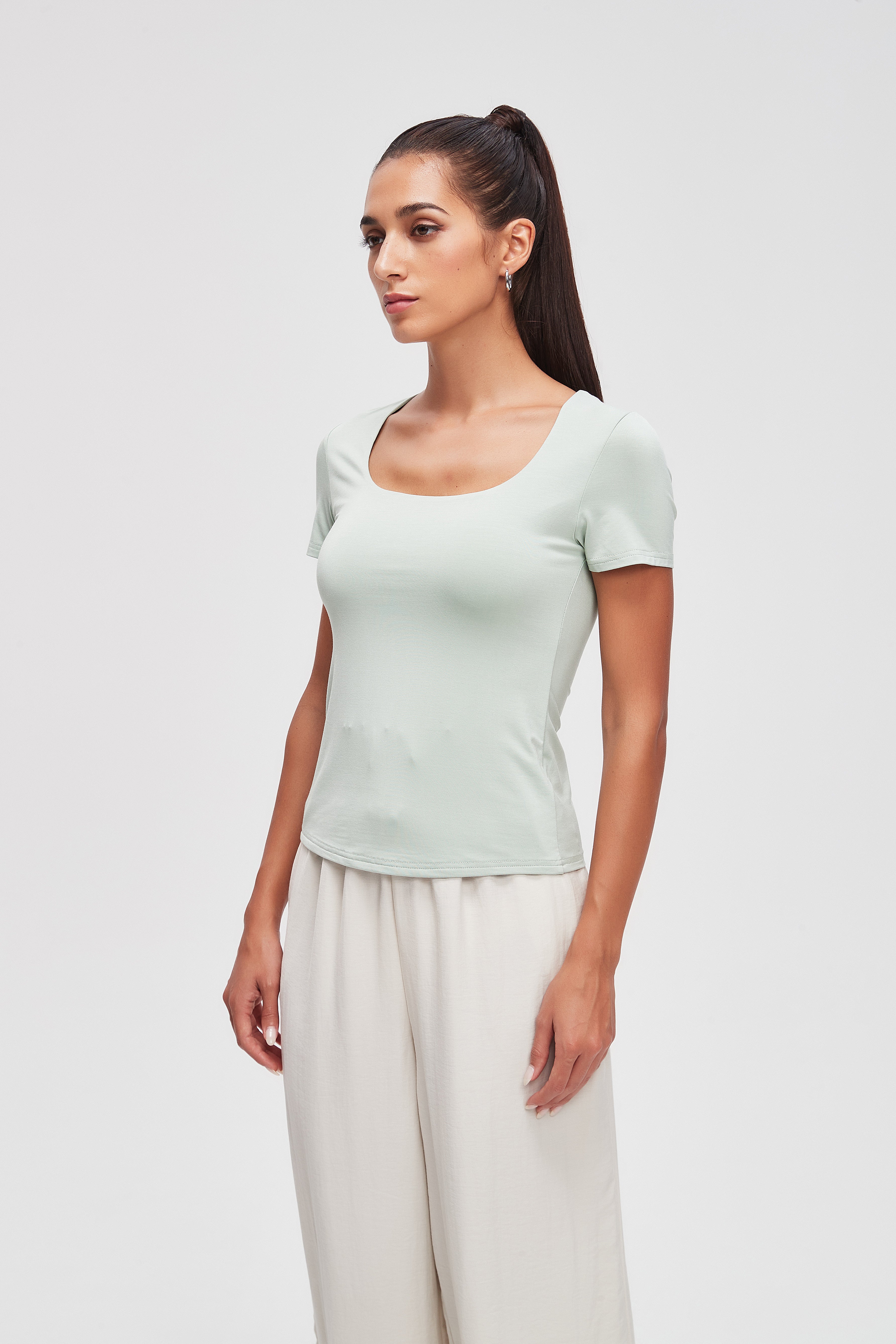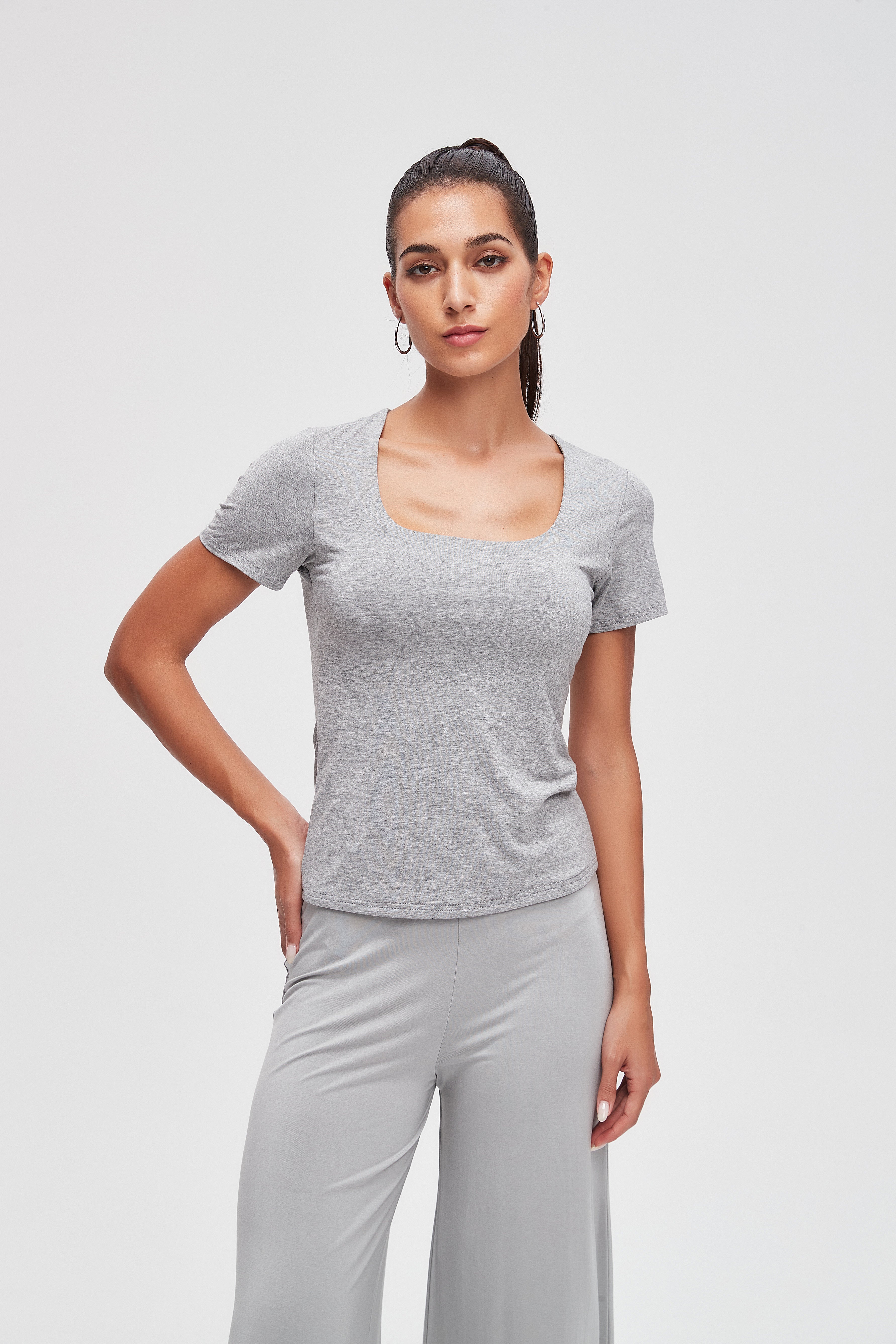 بلوزة نصف كم سادة بفتحة رقبة مربعة