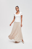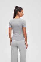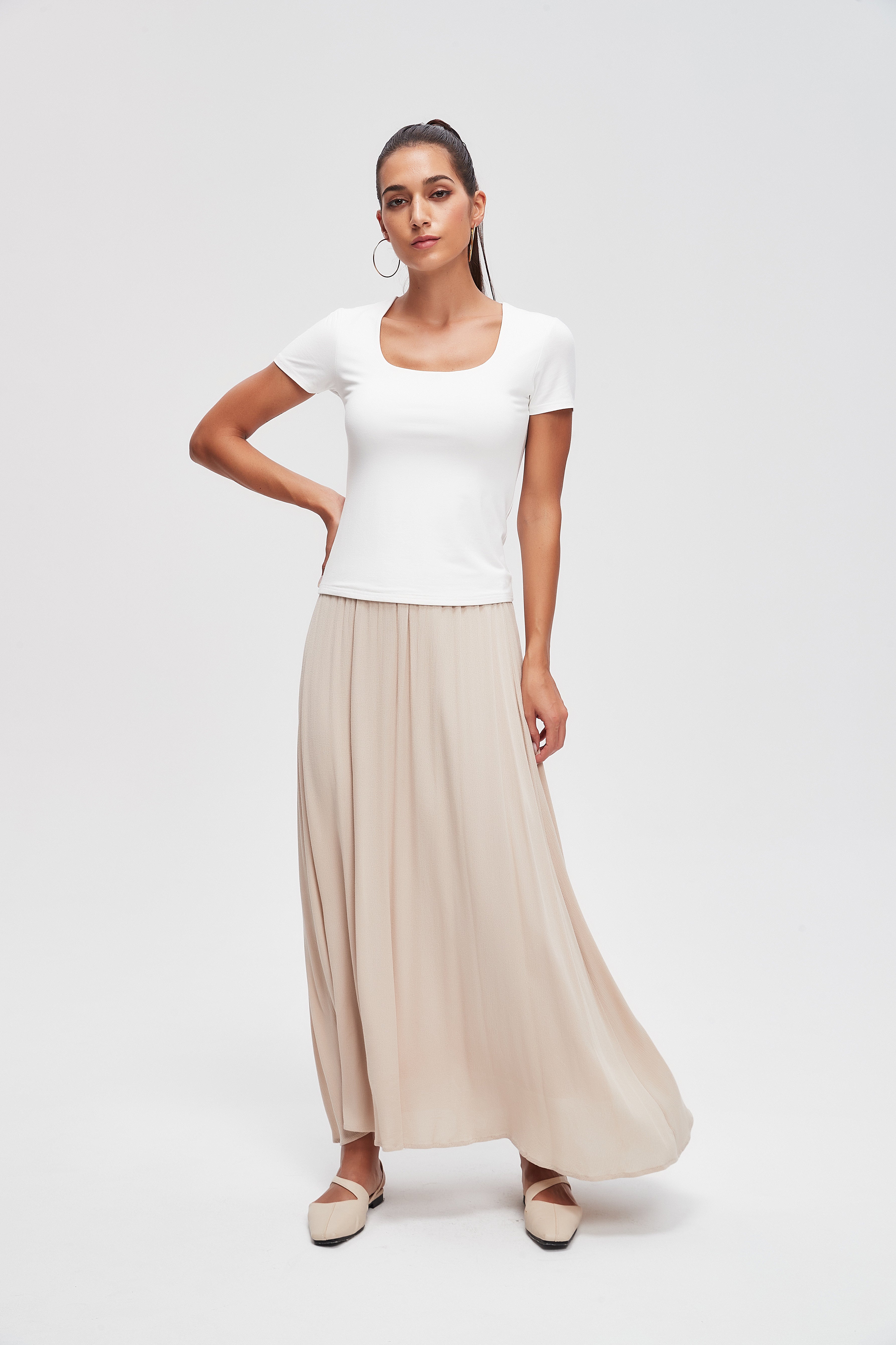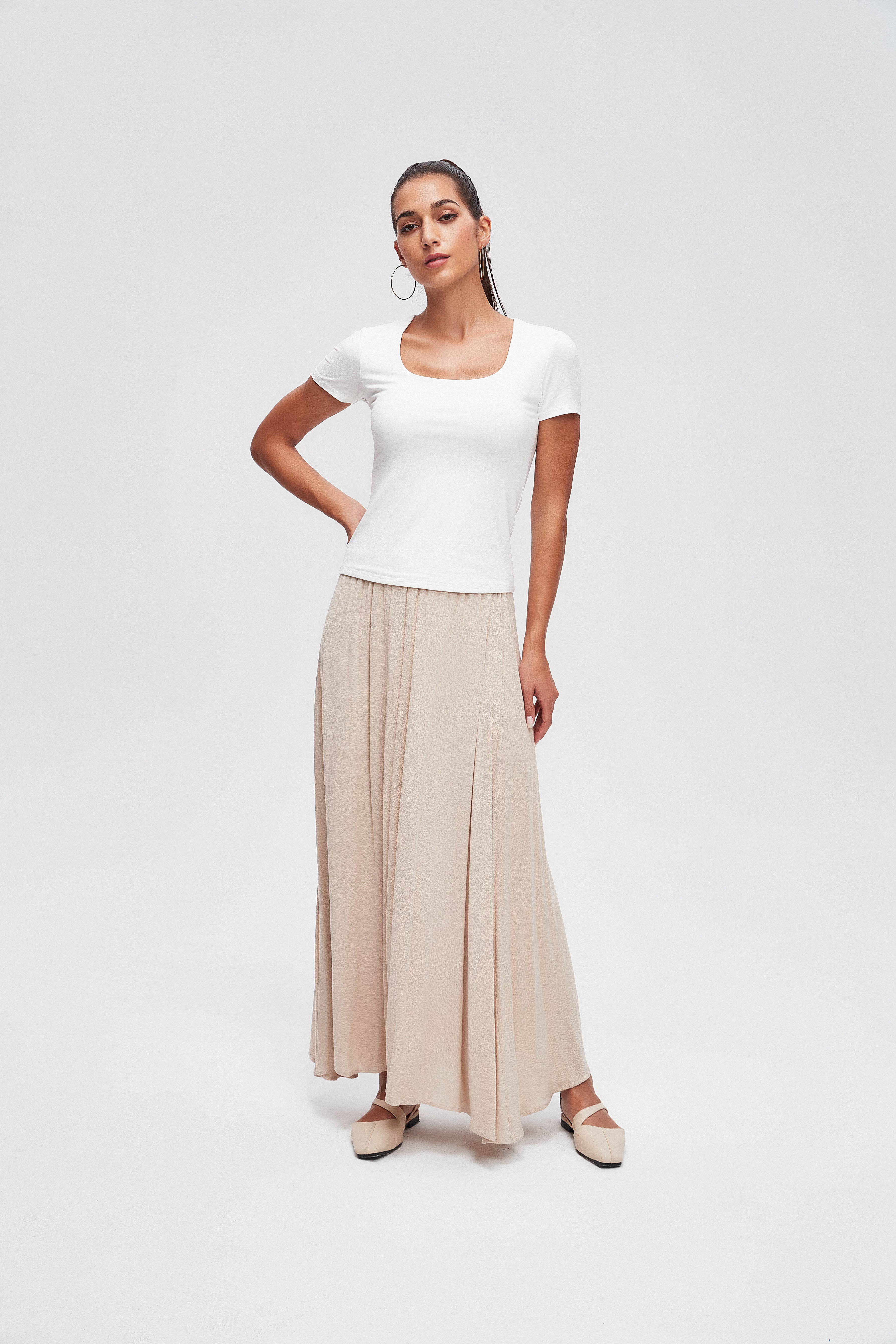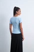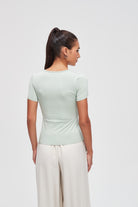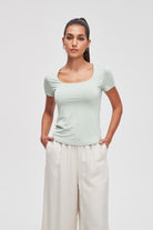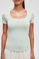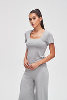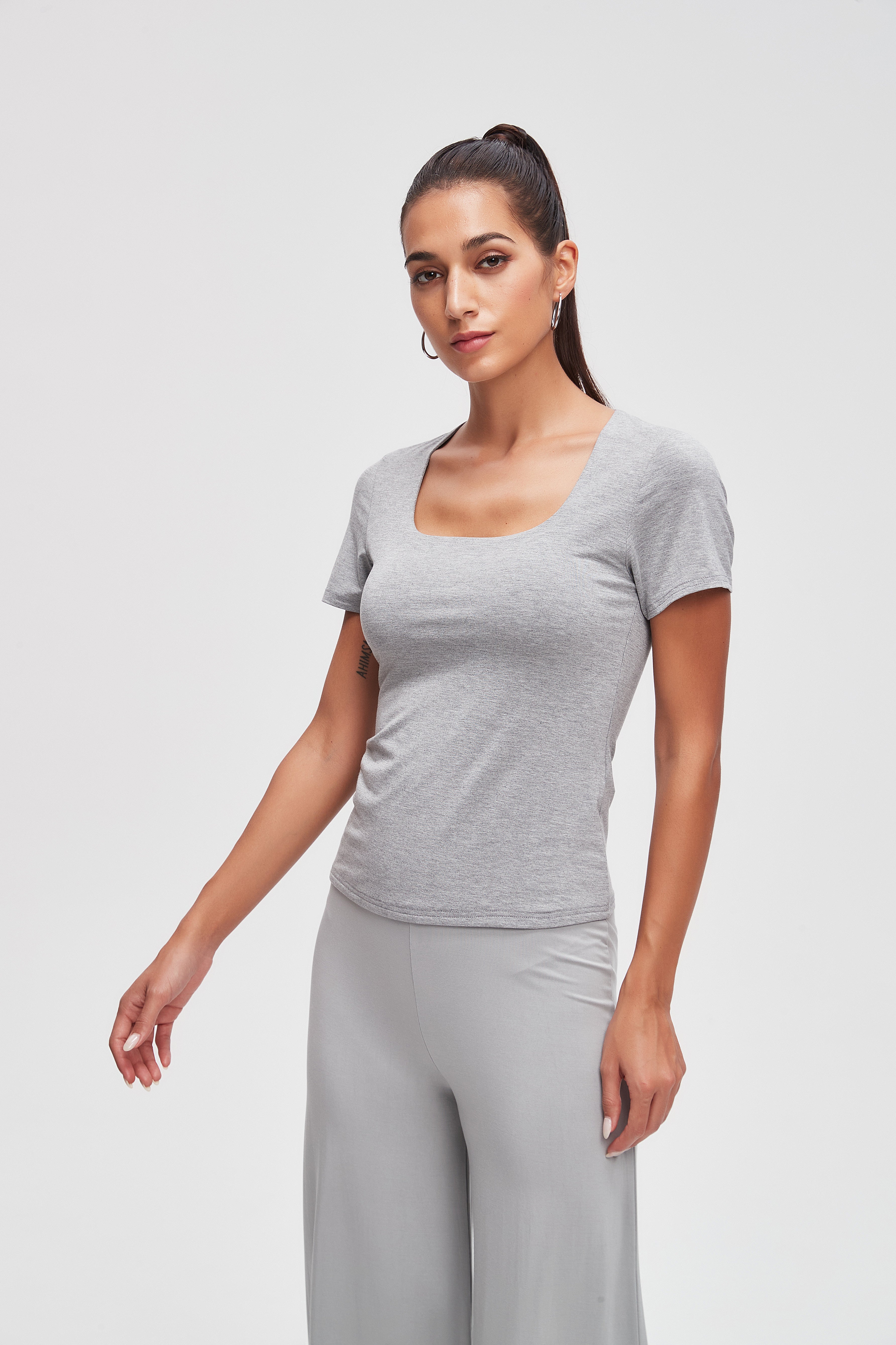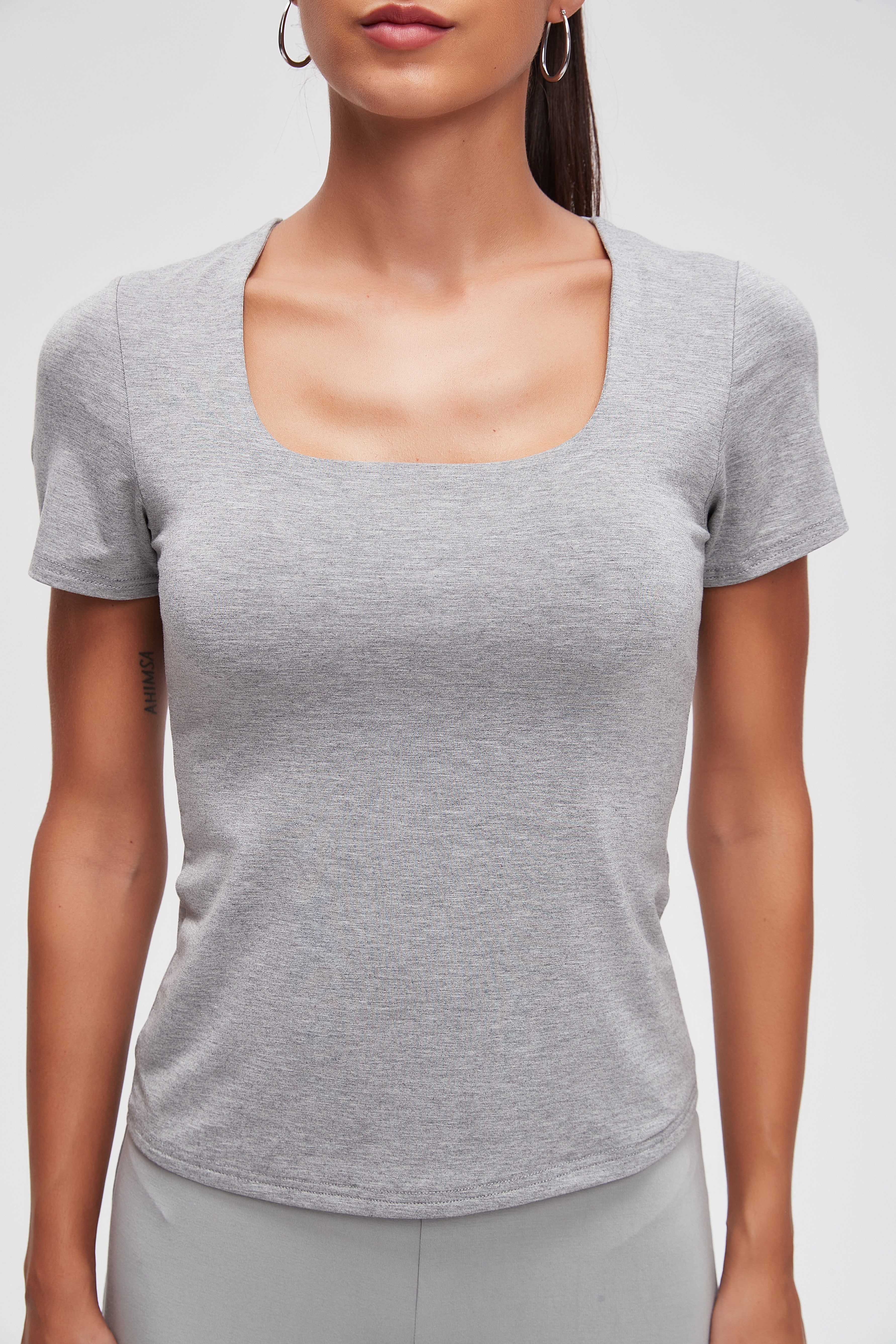بلوزة نصف كم سادة بفتحة رقبة مربعة