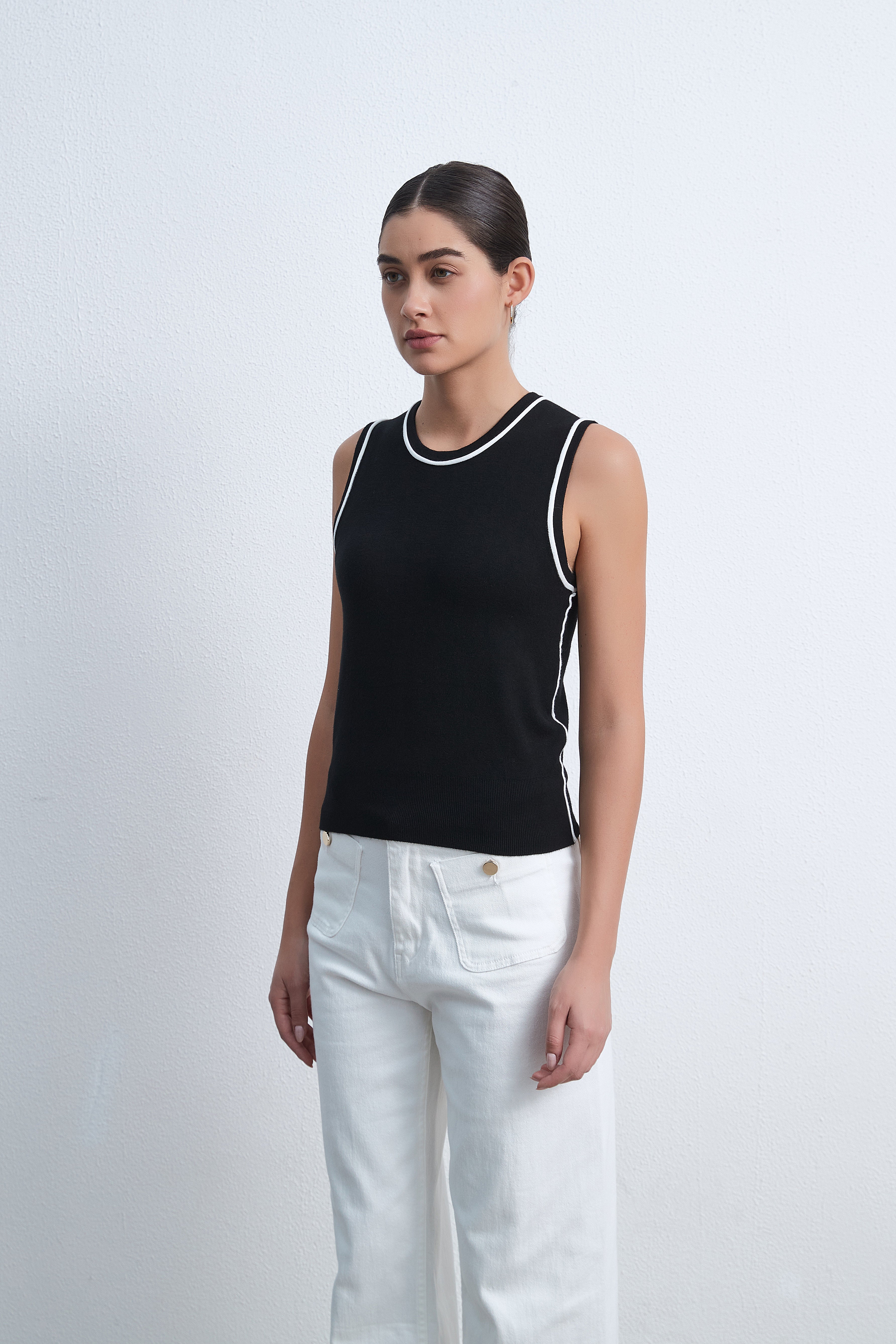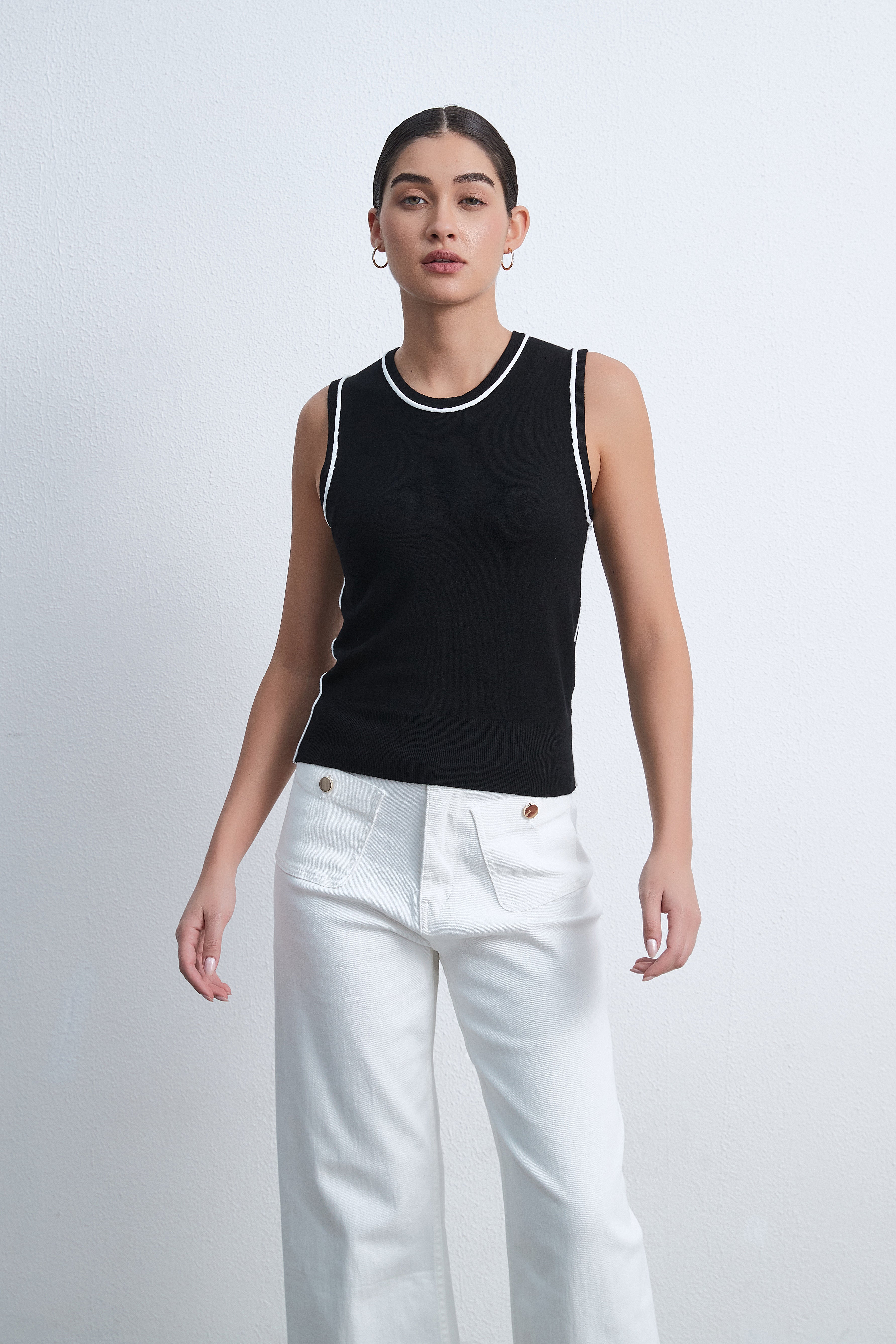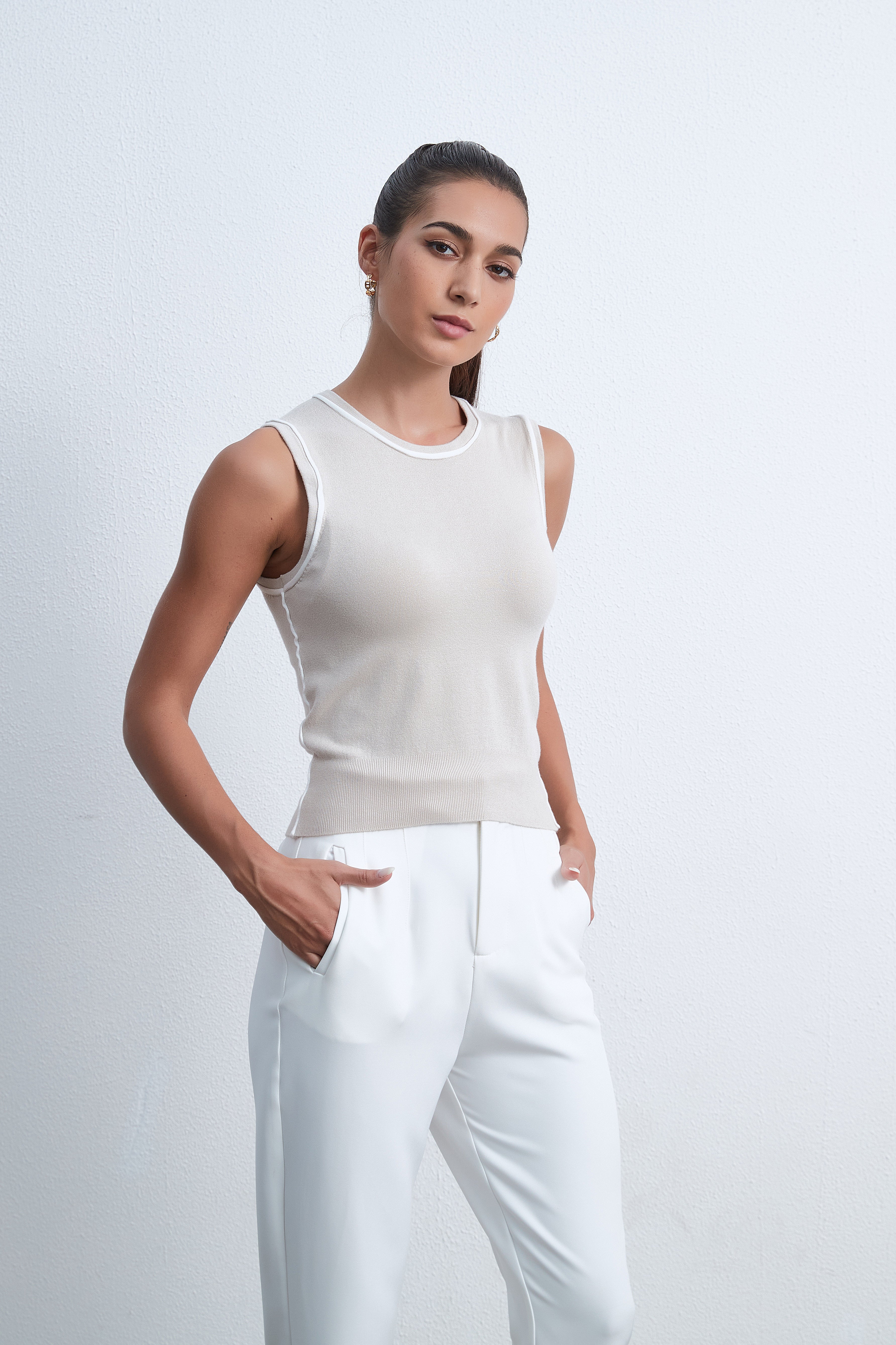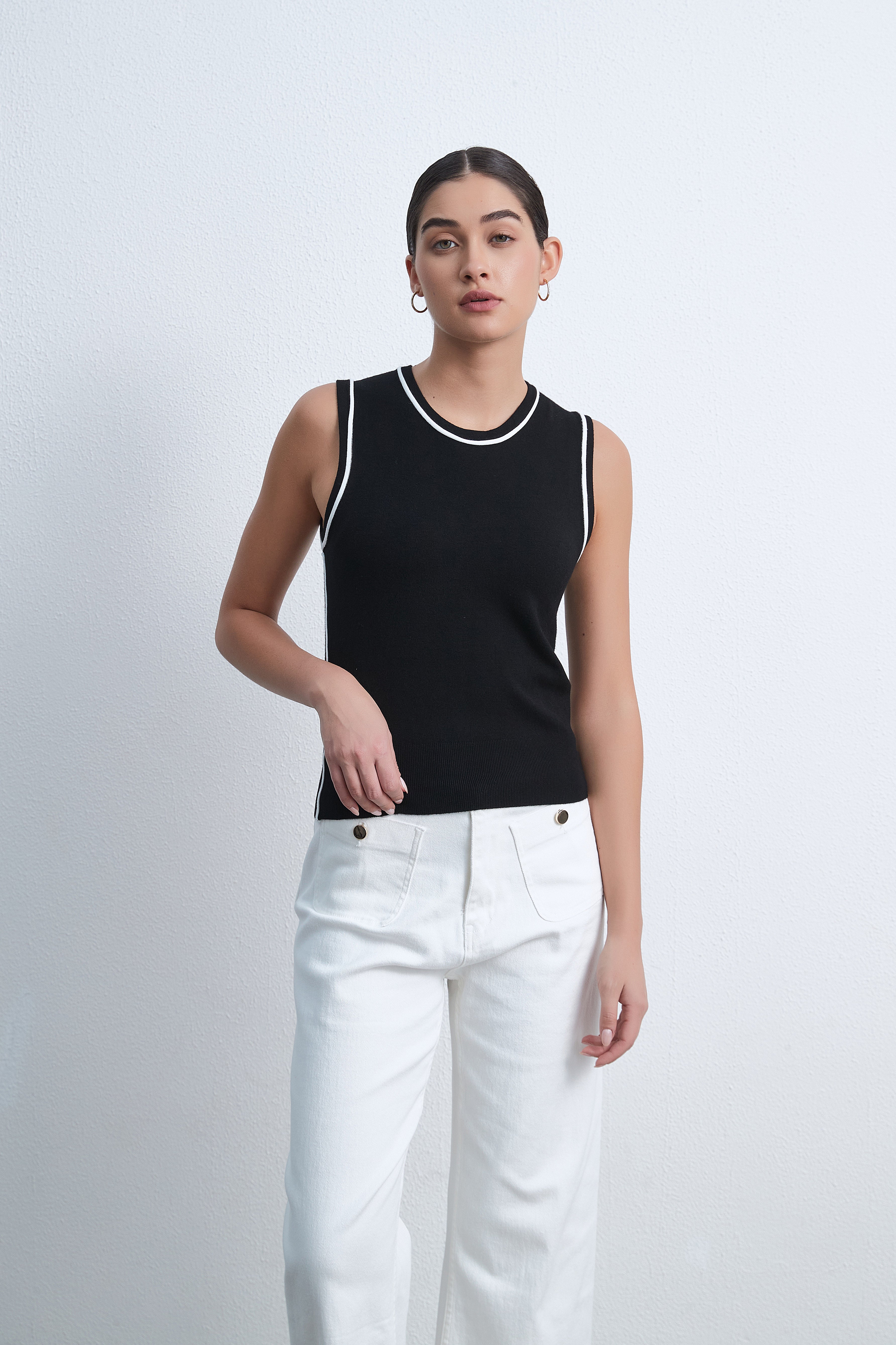بلوزة بدون أكمام بفتحة رقبة دائرية