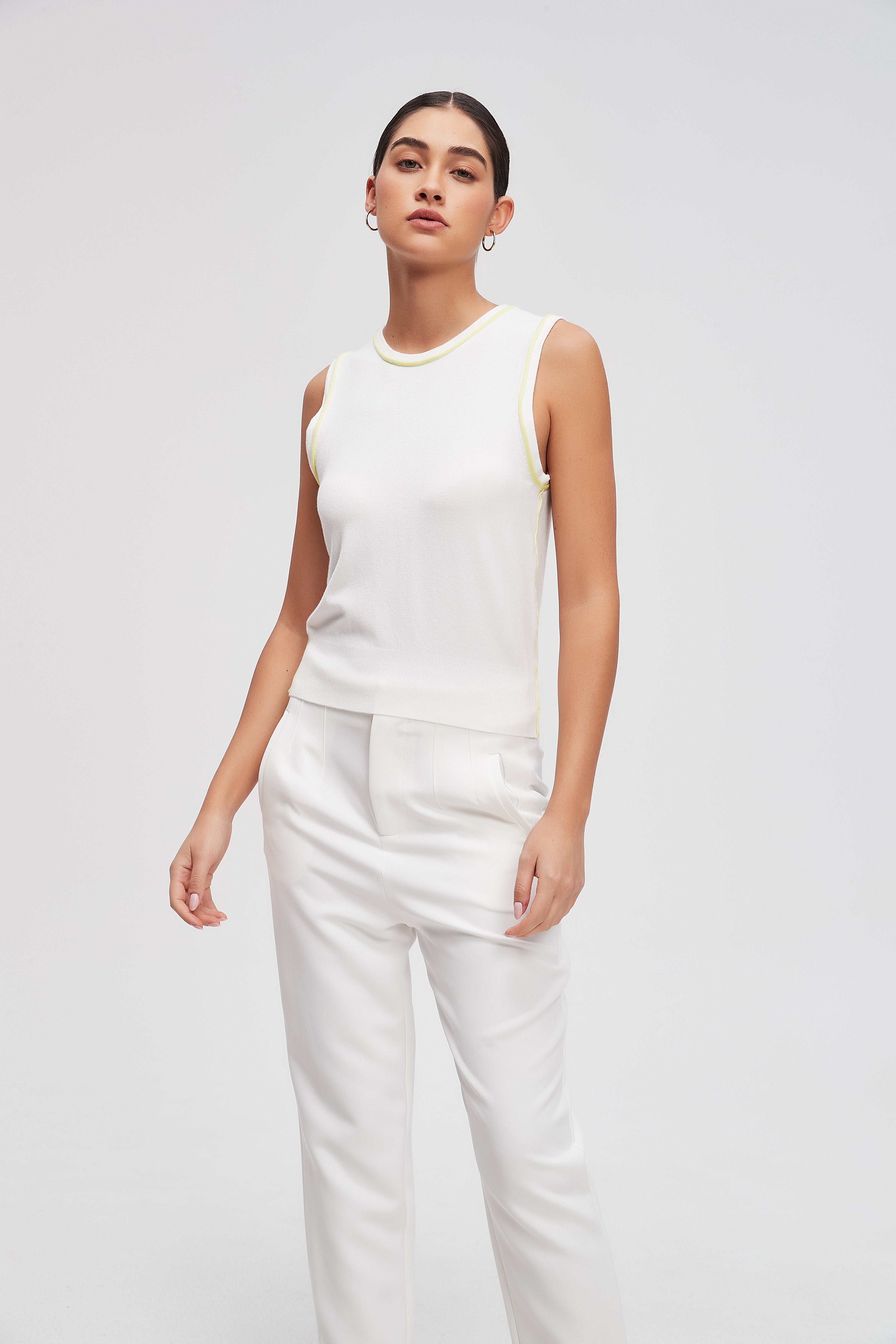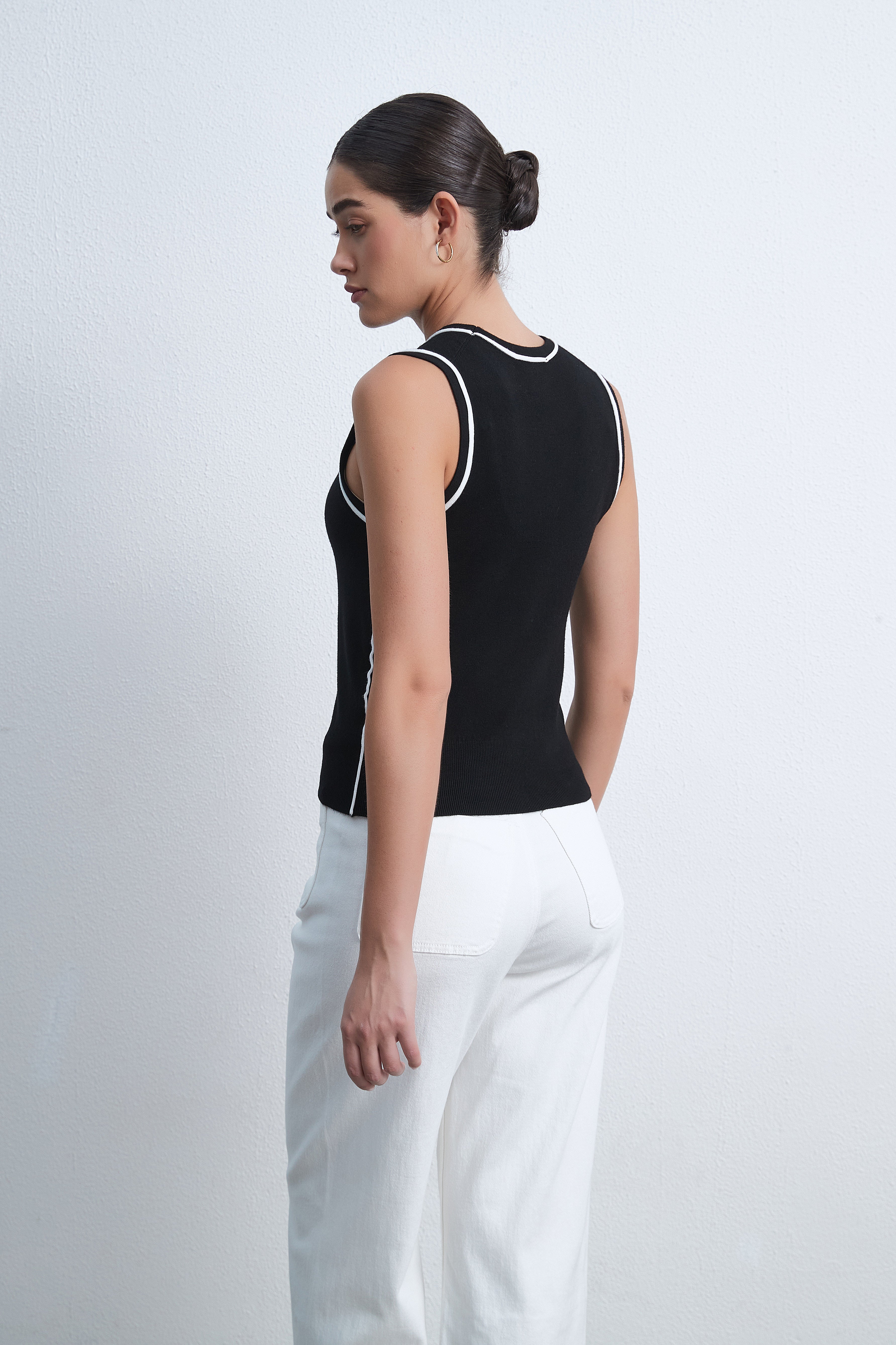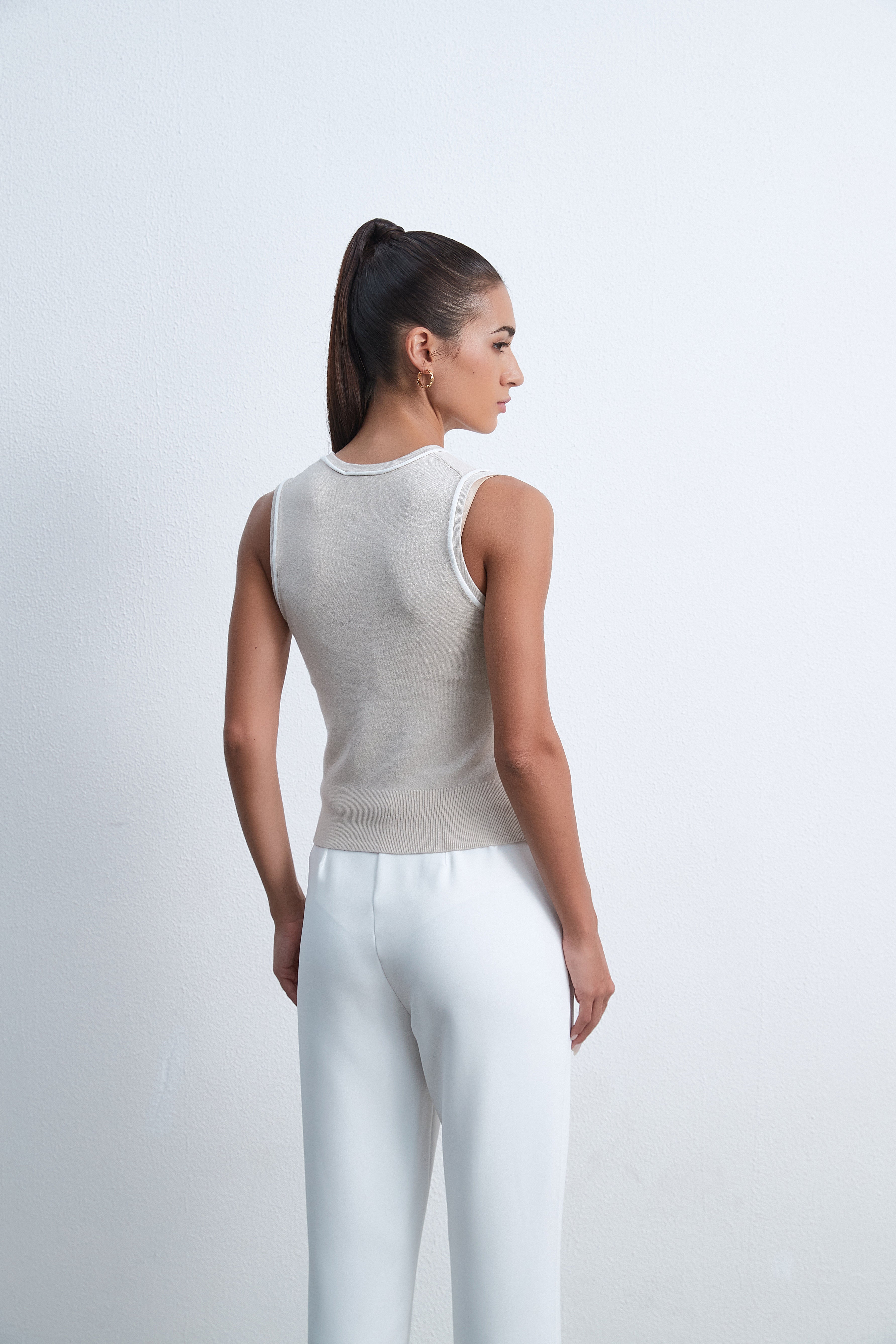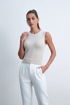 بلوزة بدون أكمام بفتحة رقبة دائرية