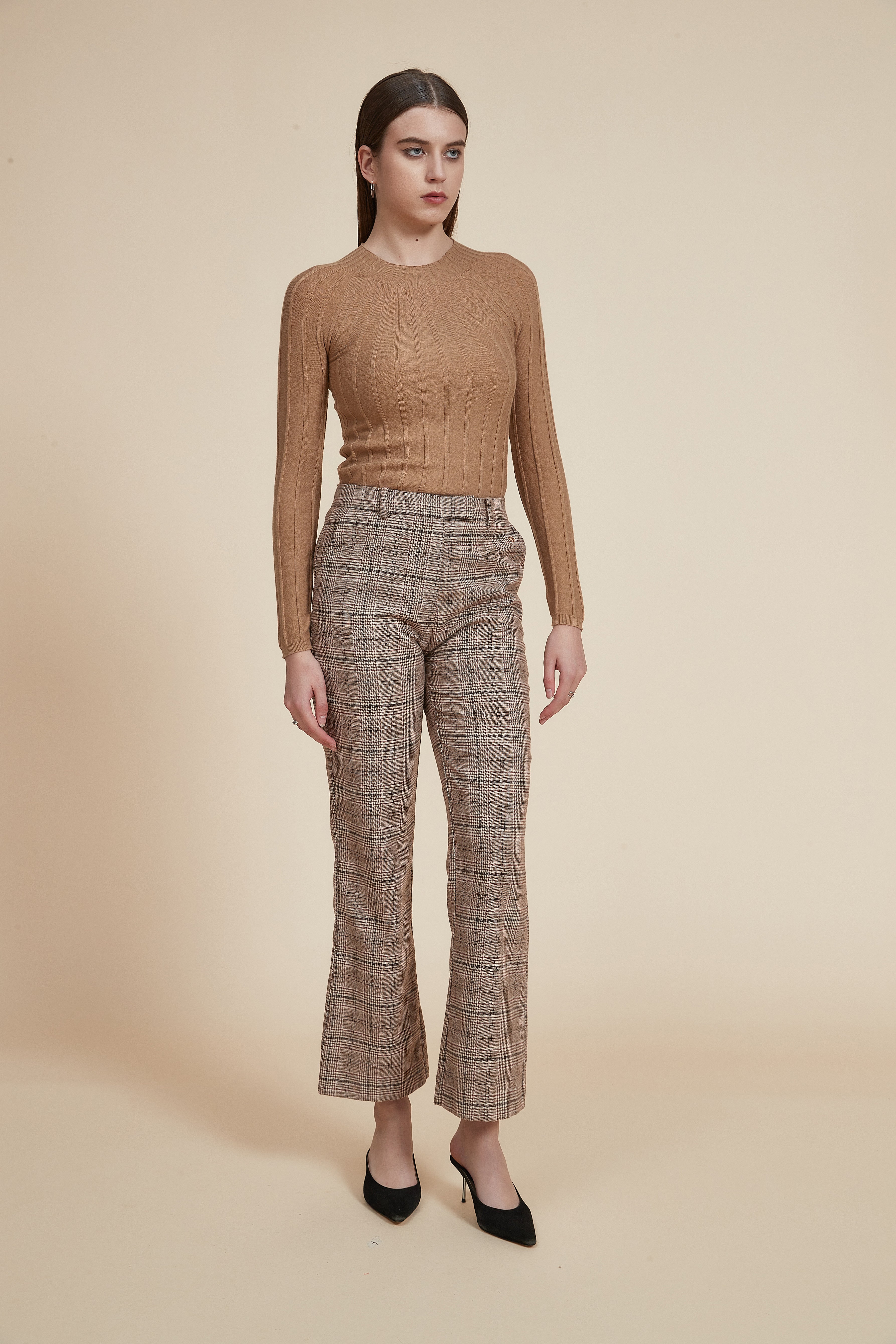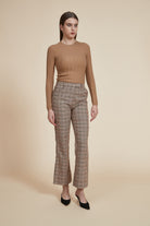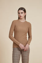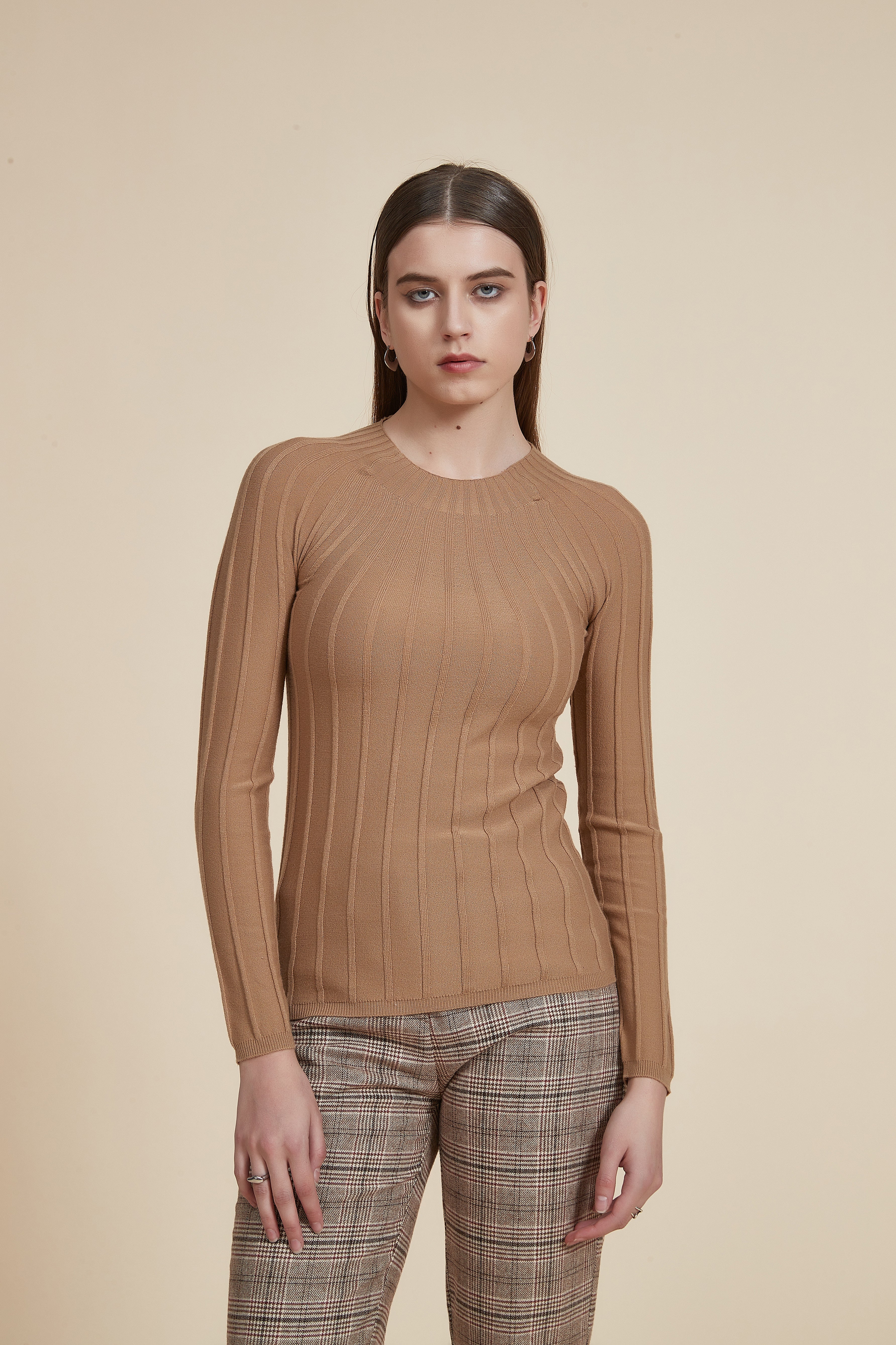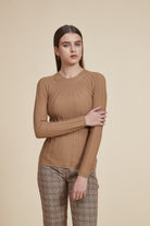 بلوفر كم طويل وفتحة رقبة مستديرة مضلع