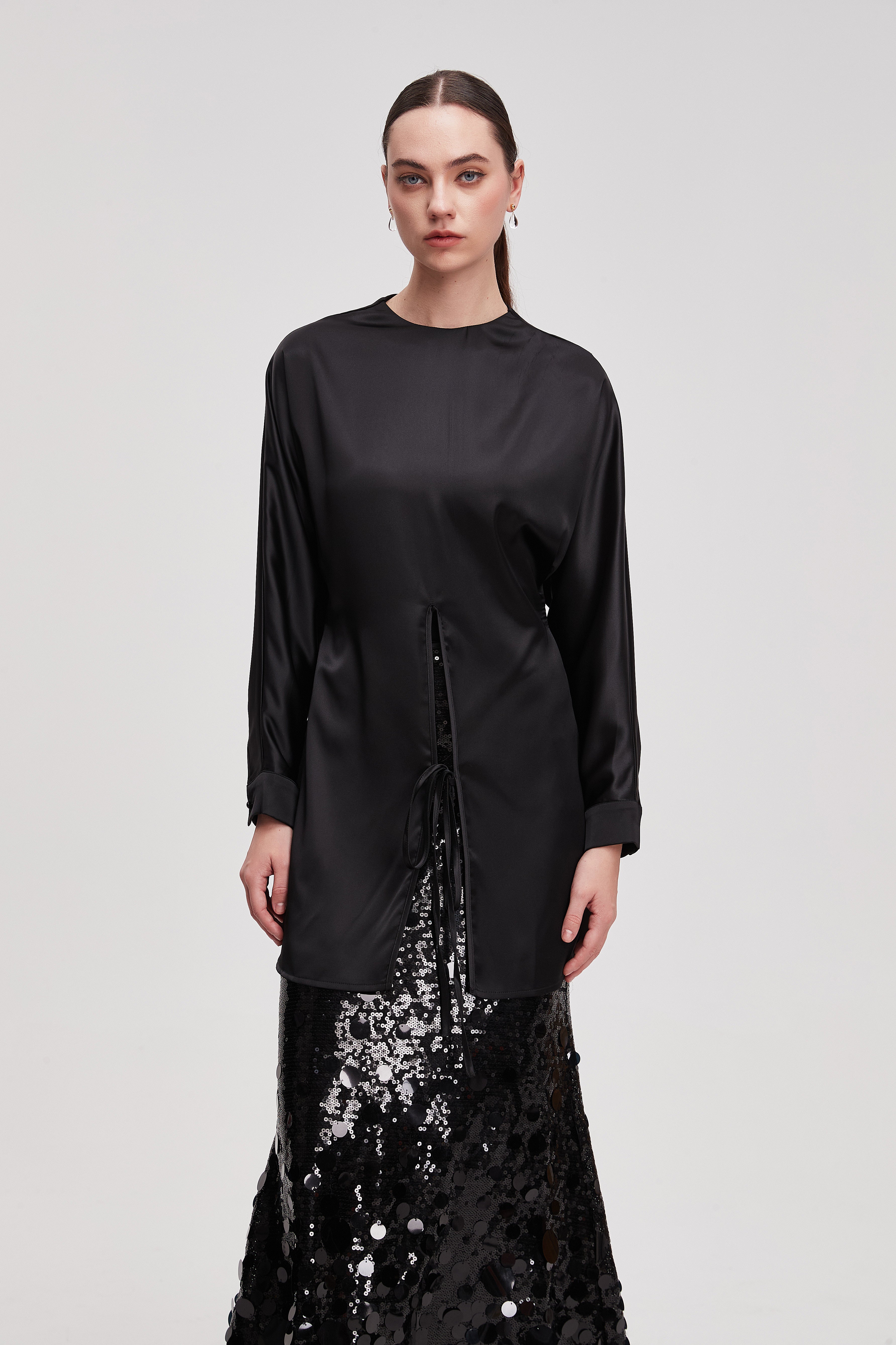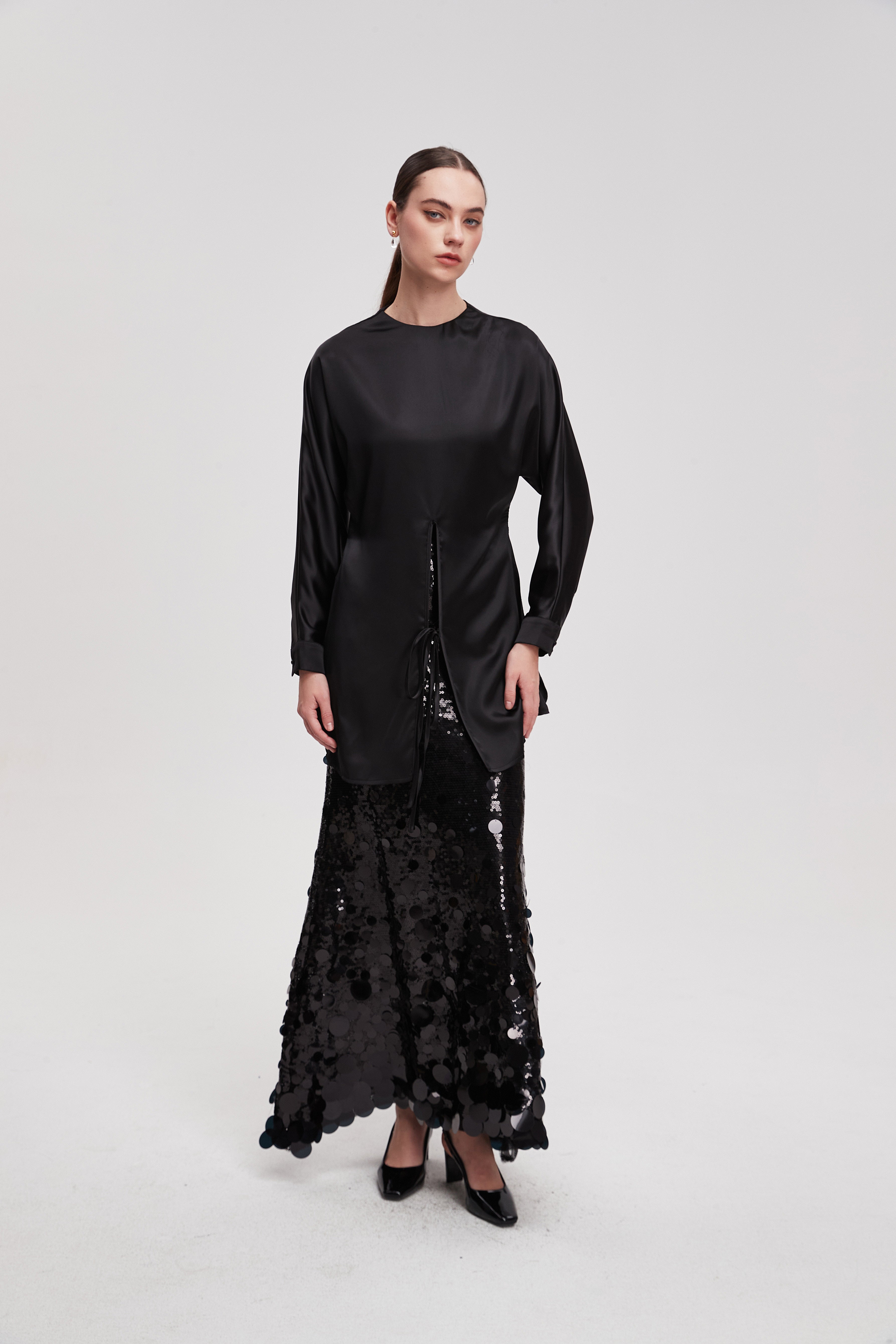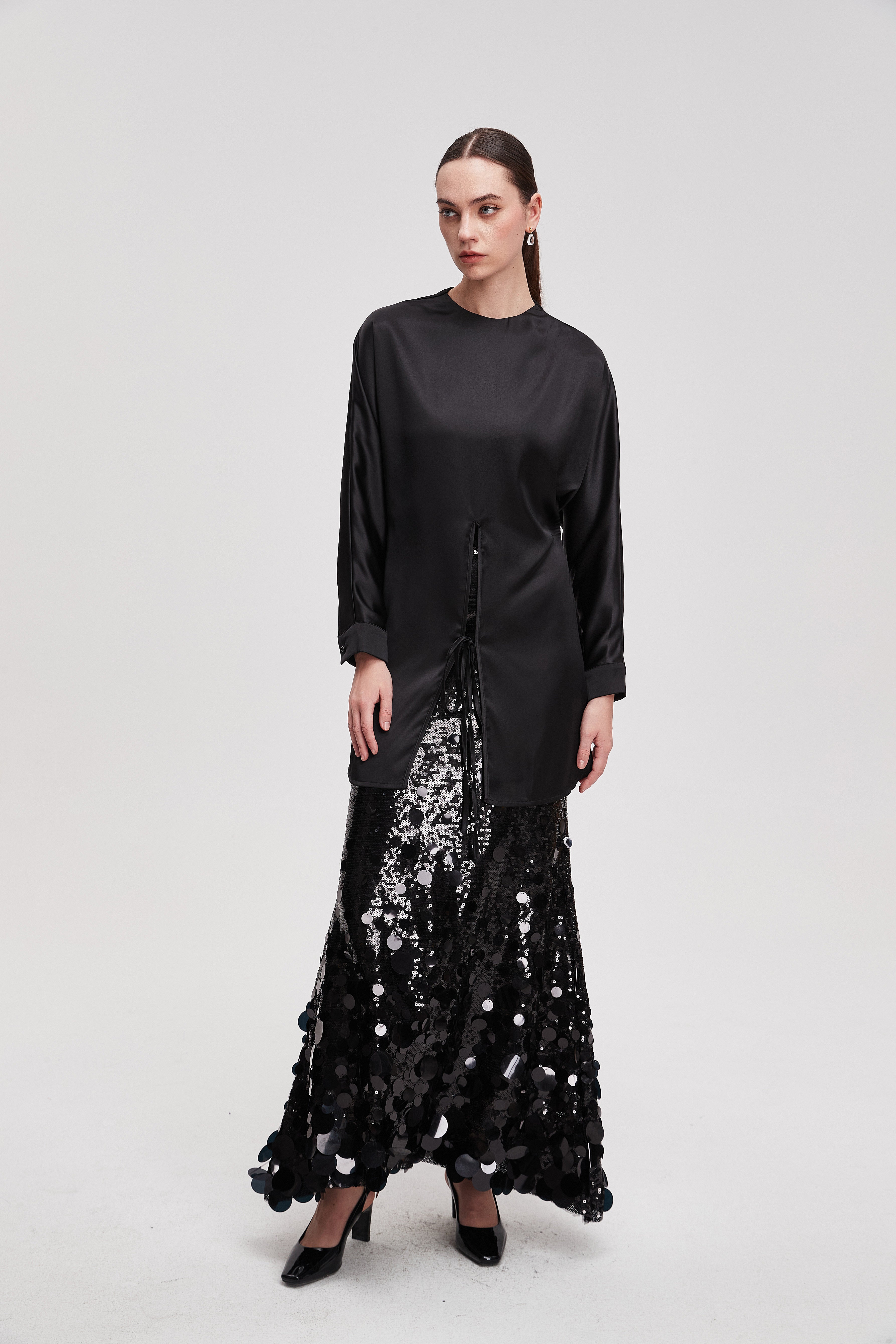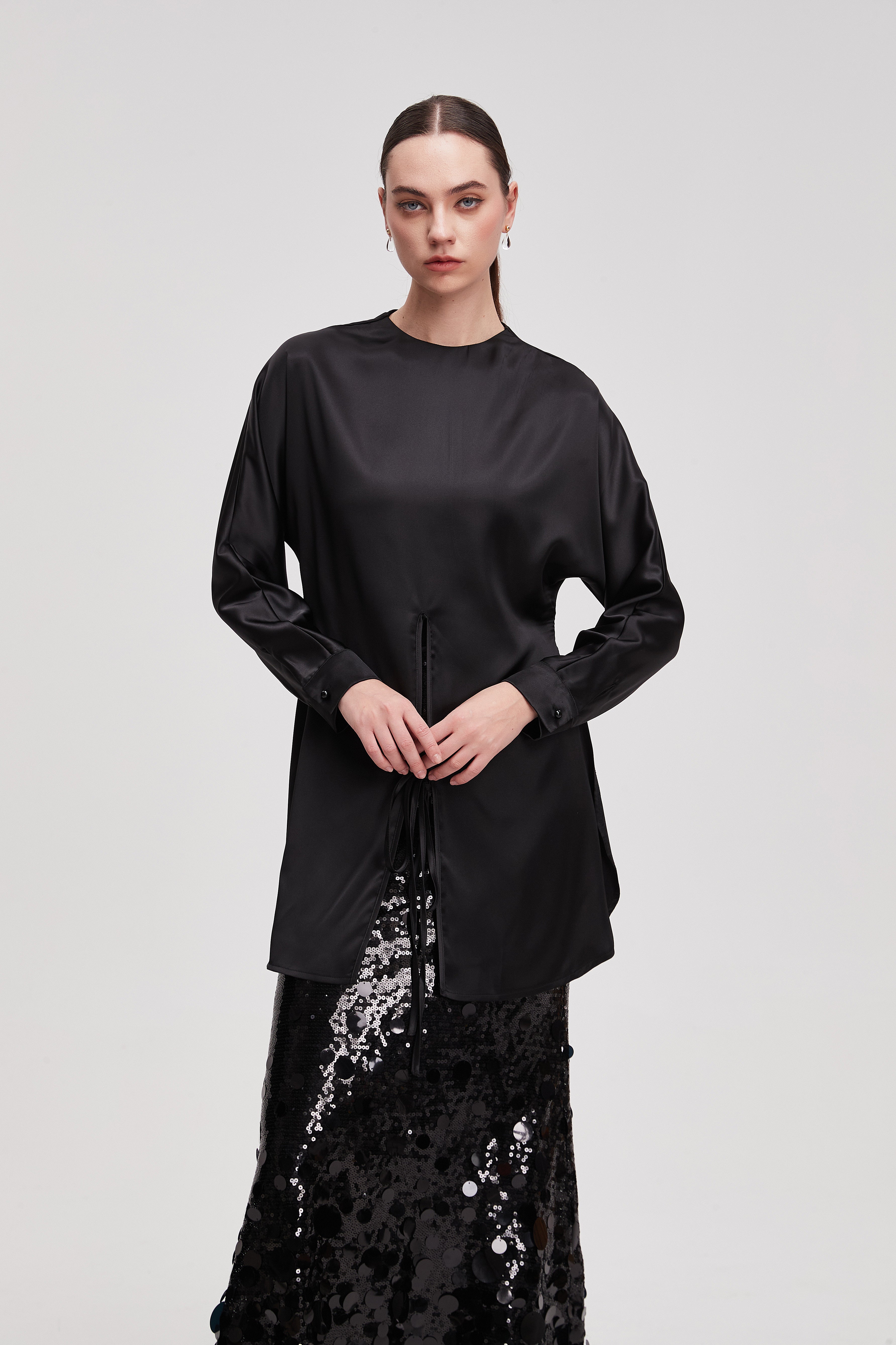 قميص طويل سادة كم طويل