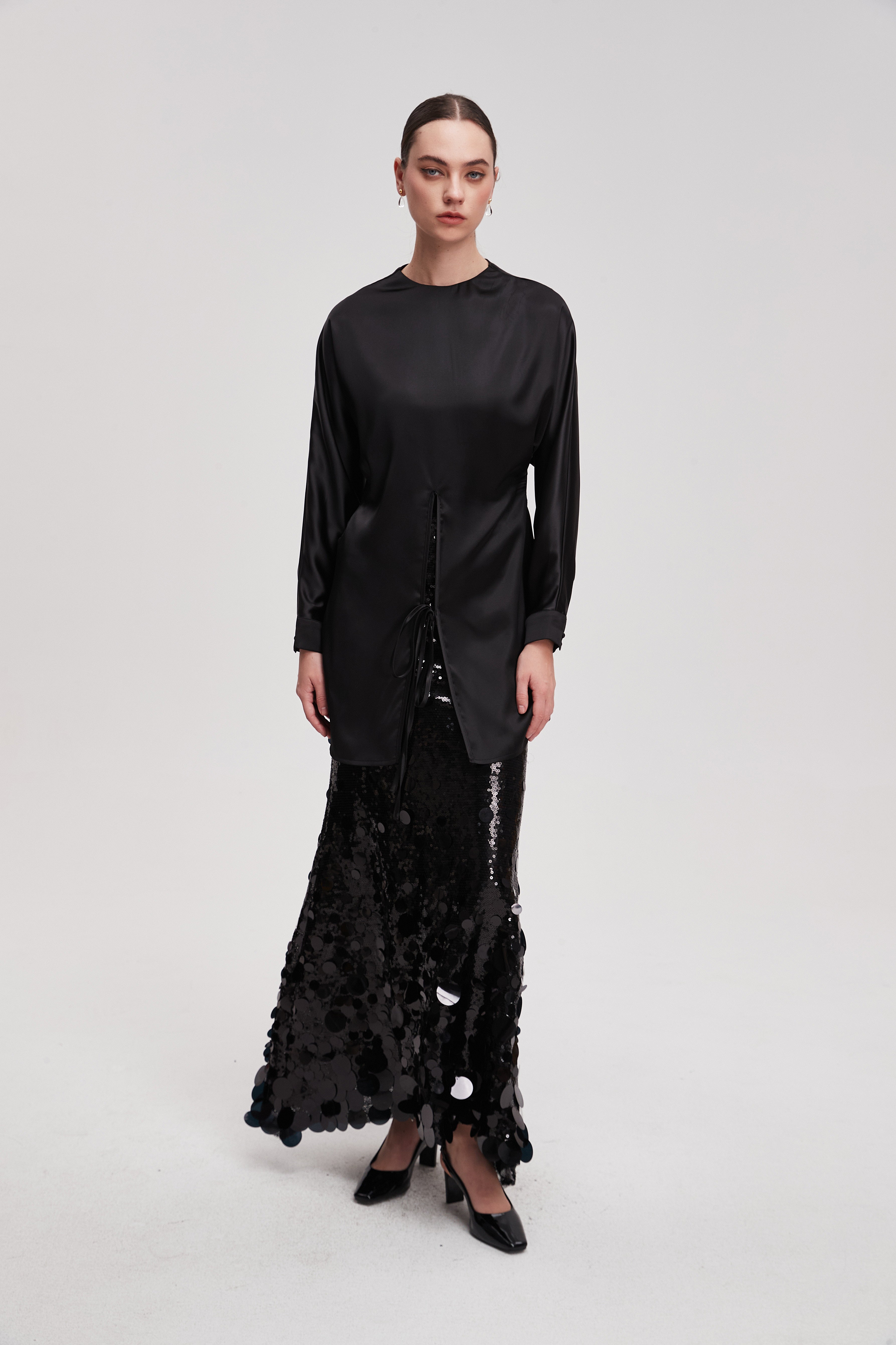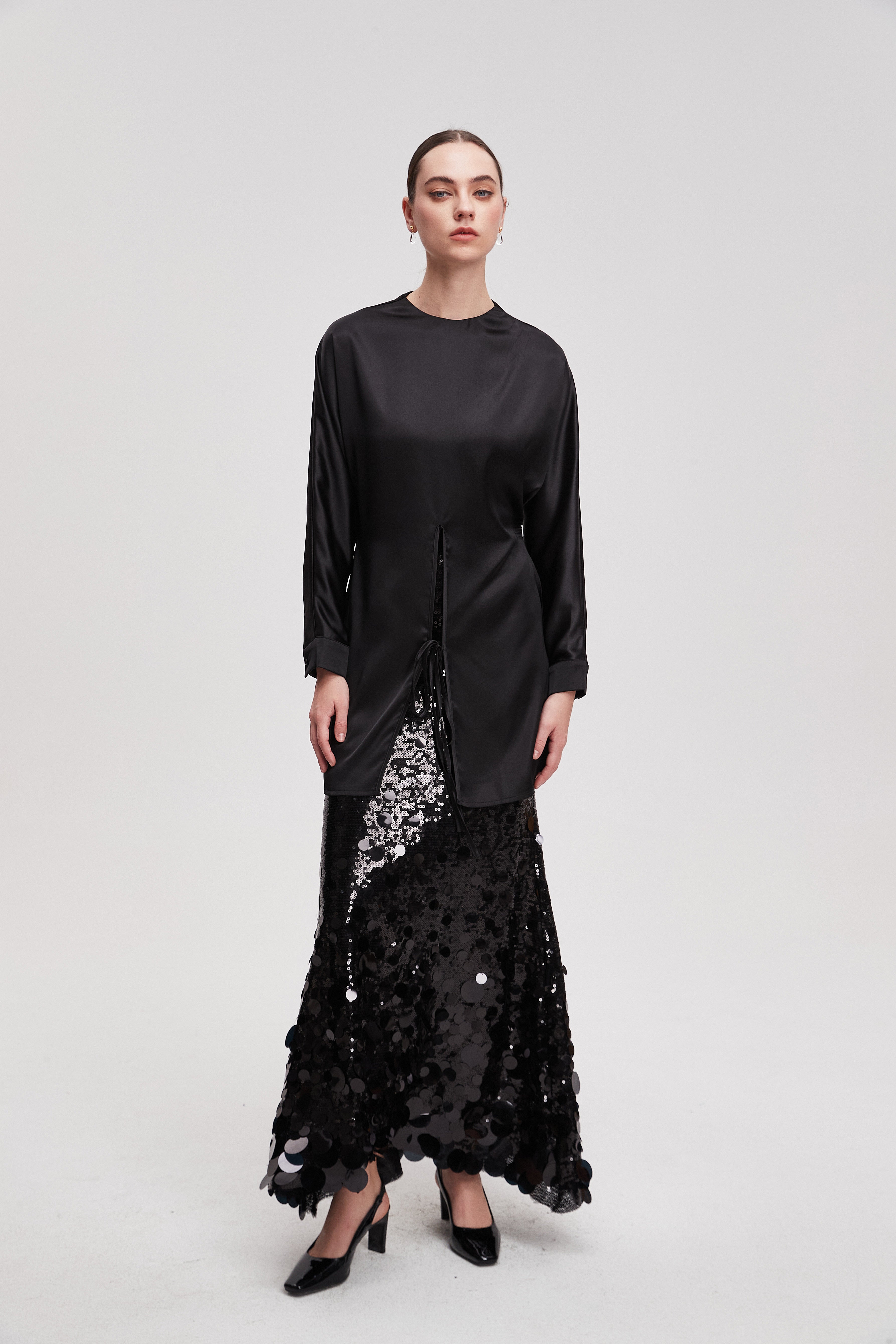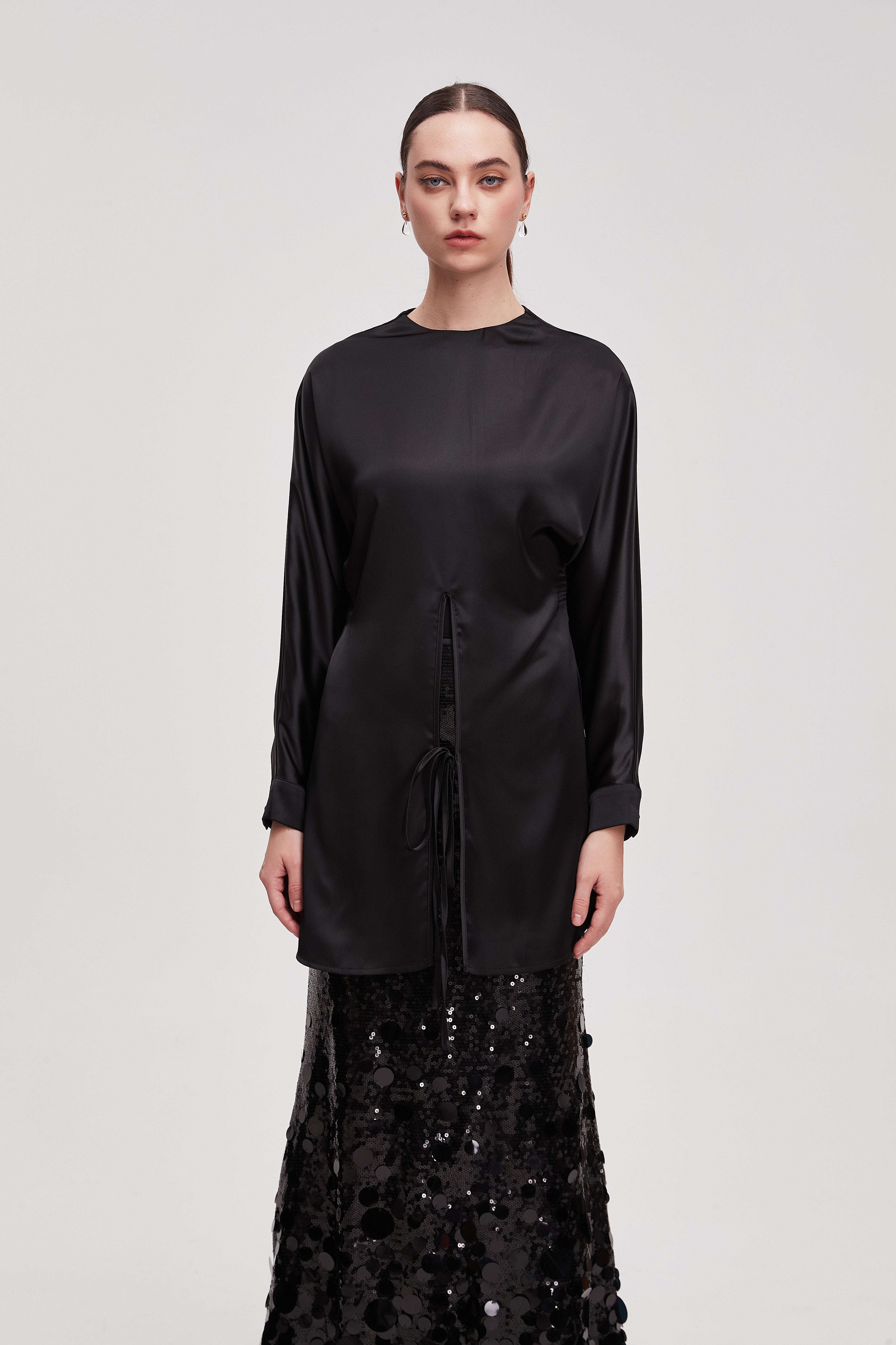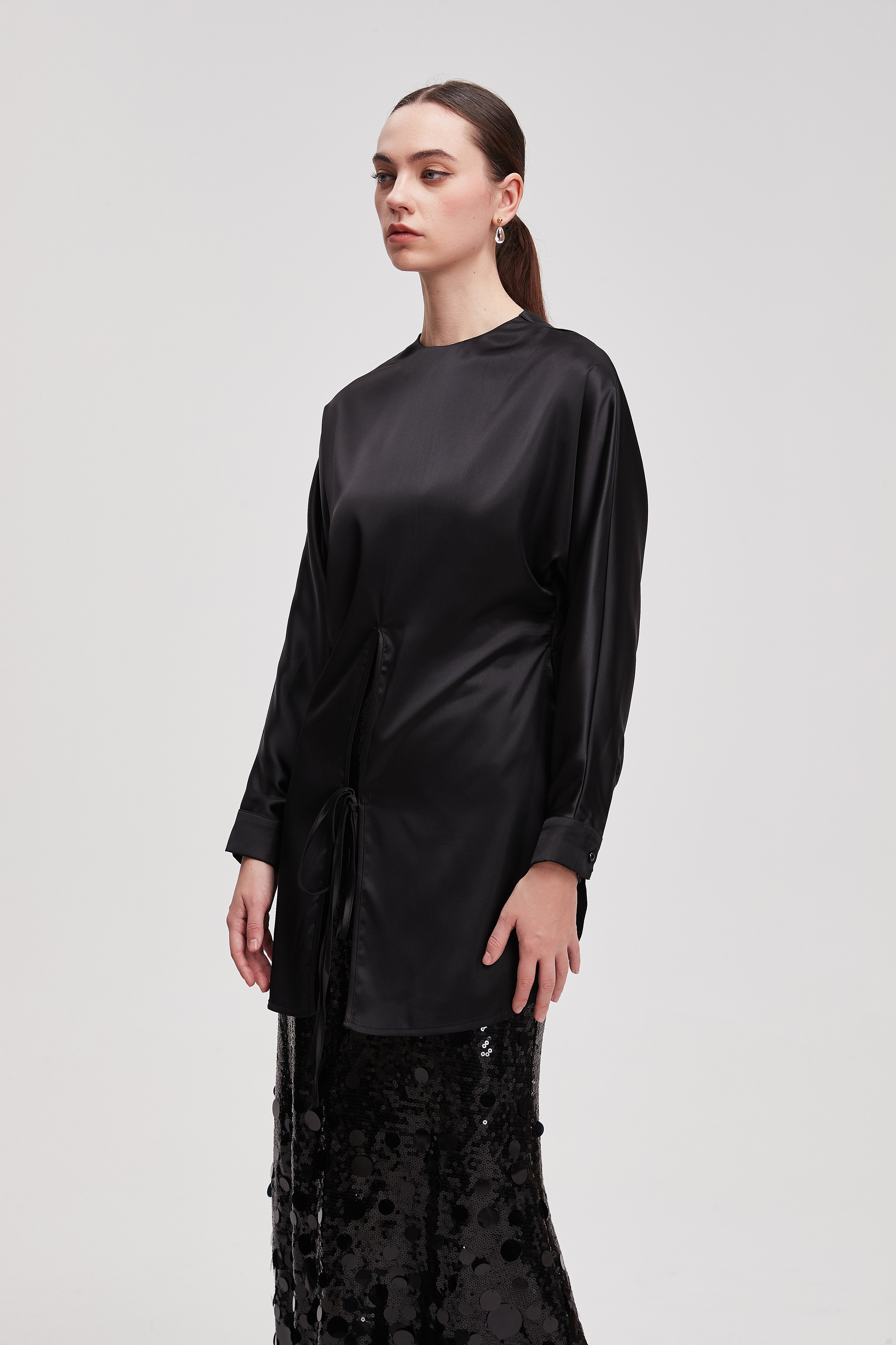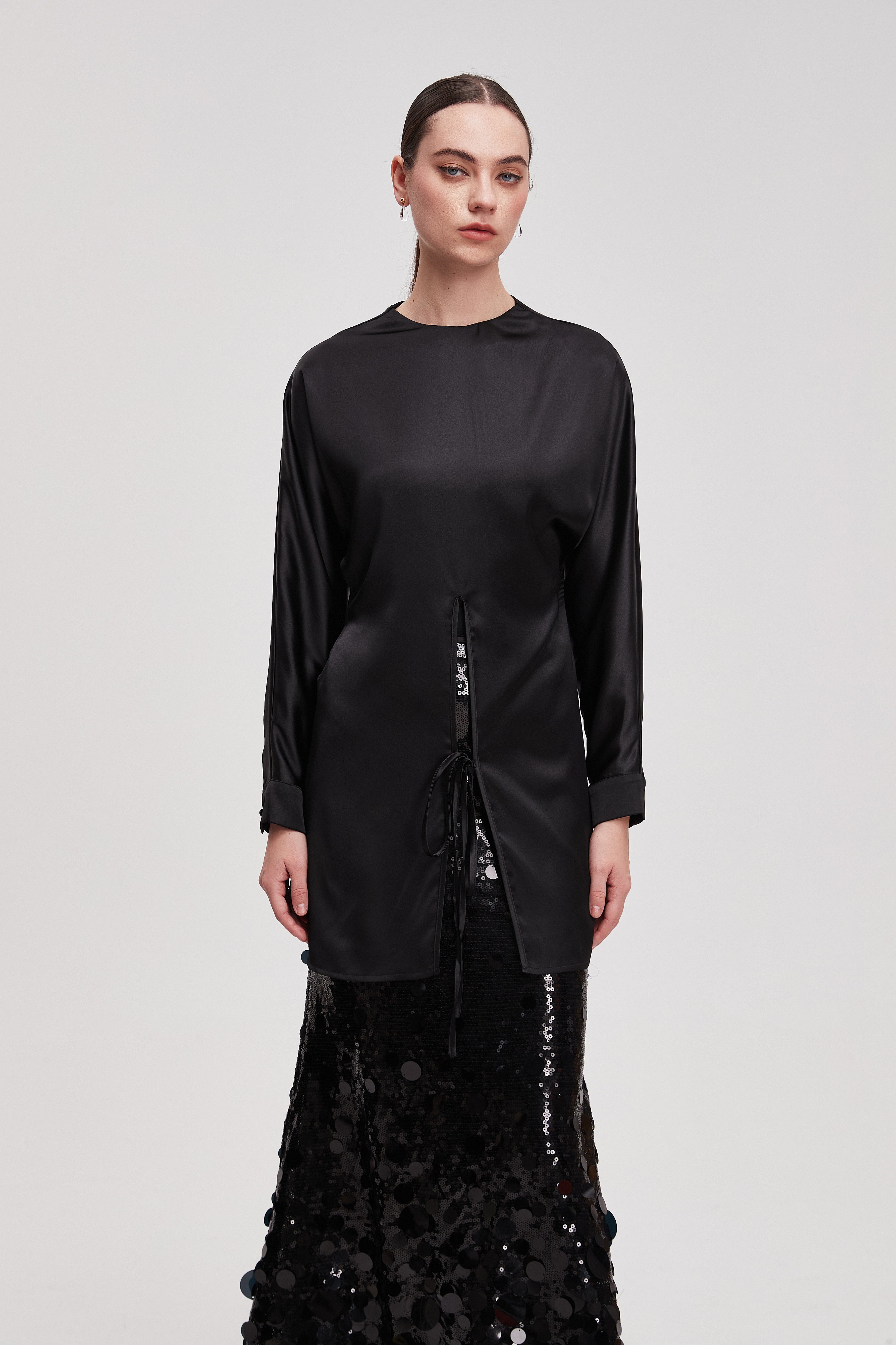 قميص طويل سادة كم طويل