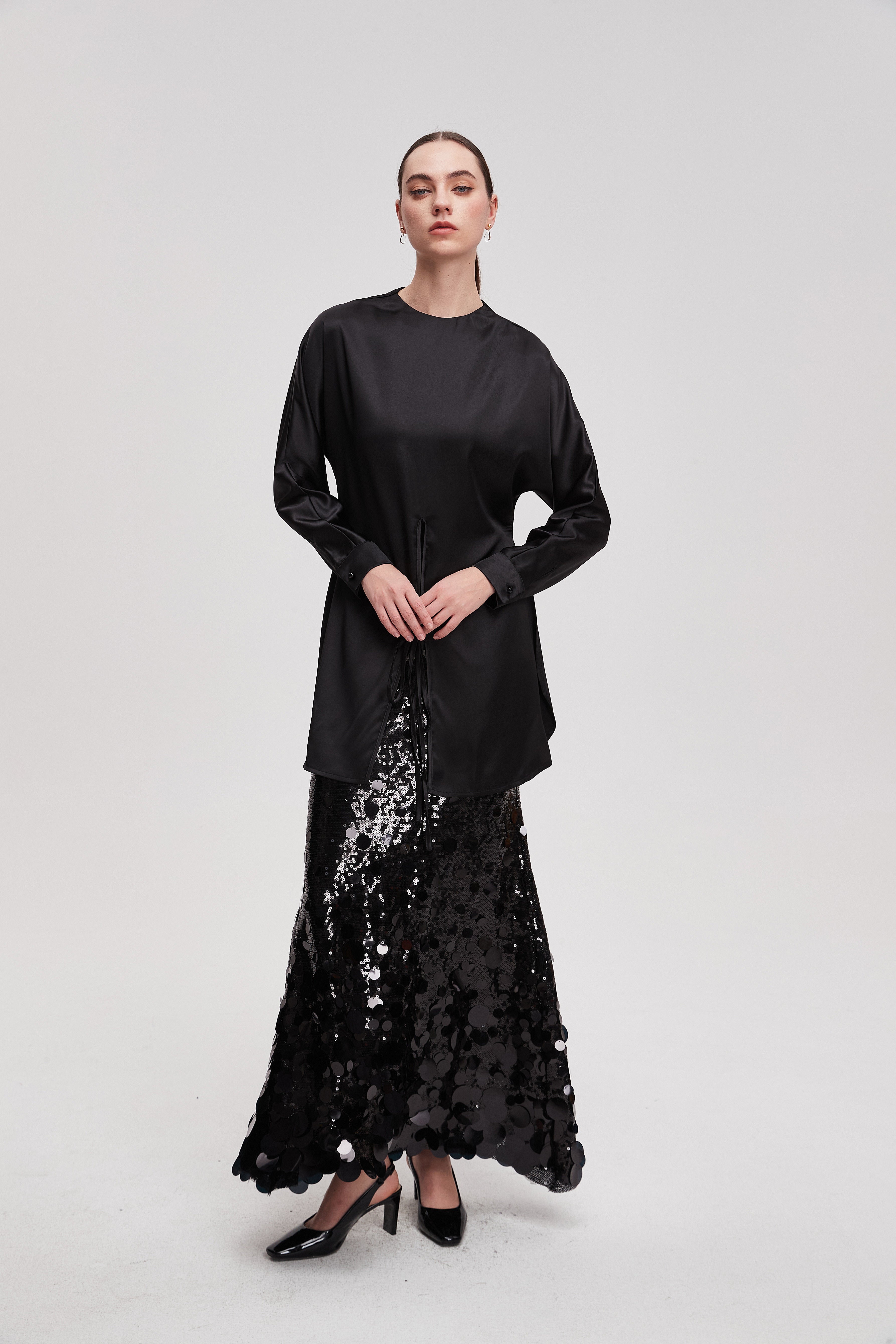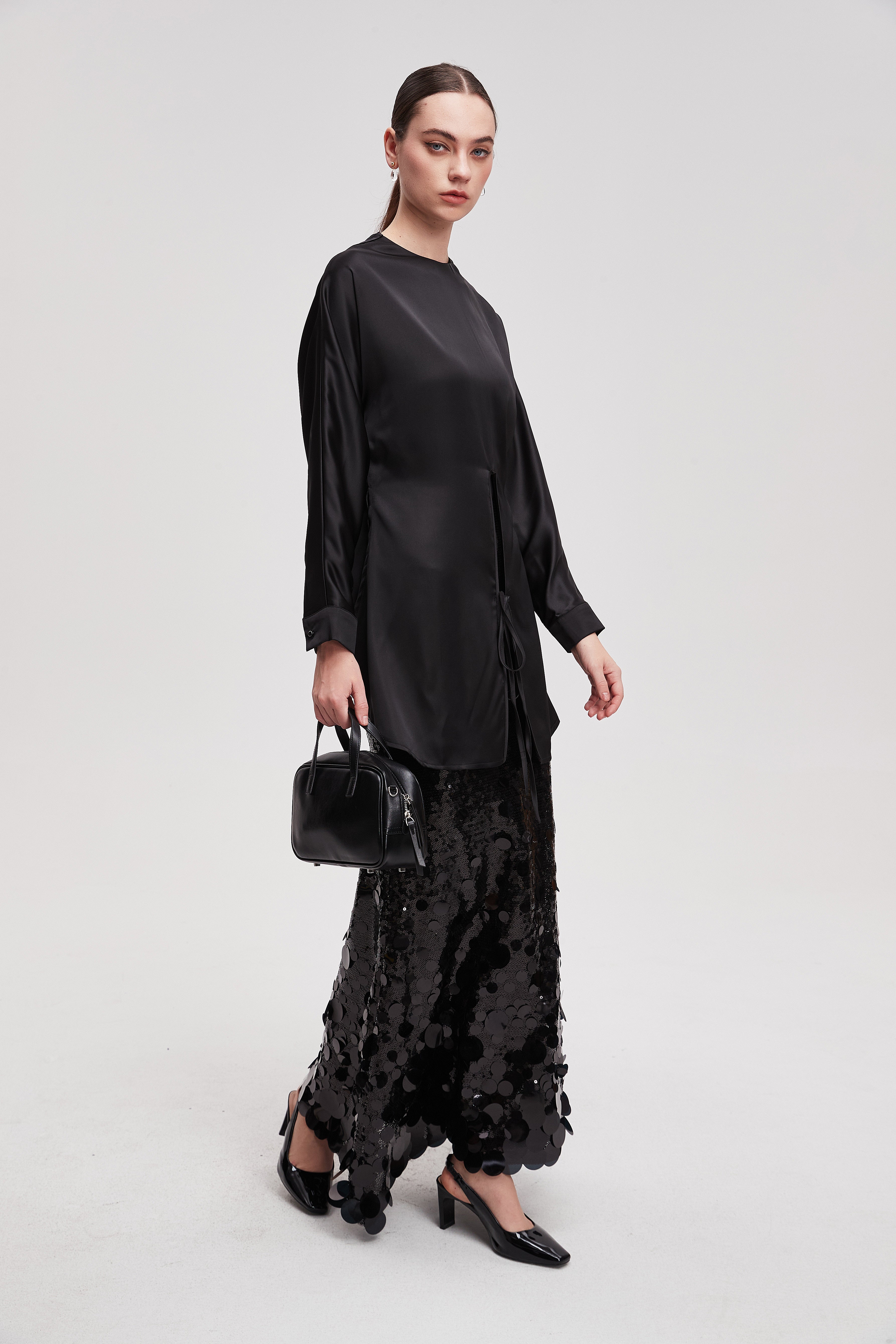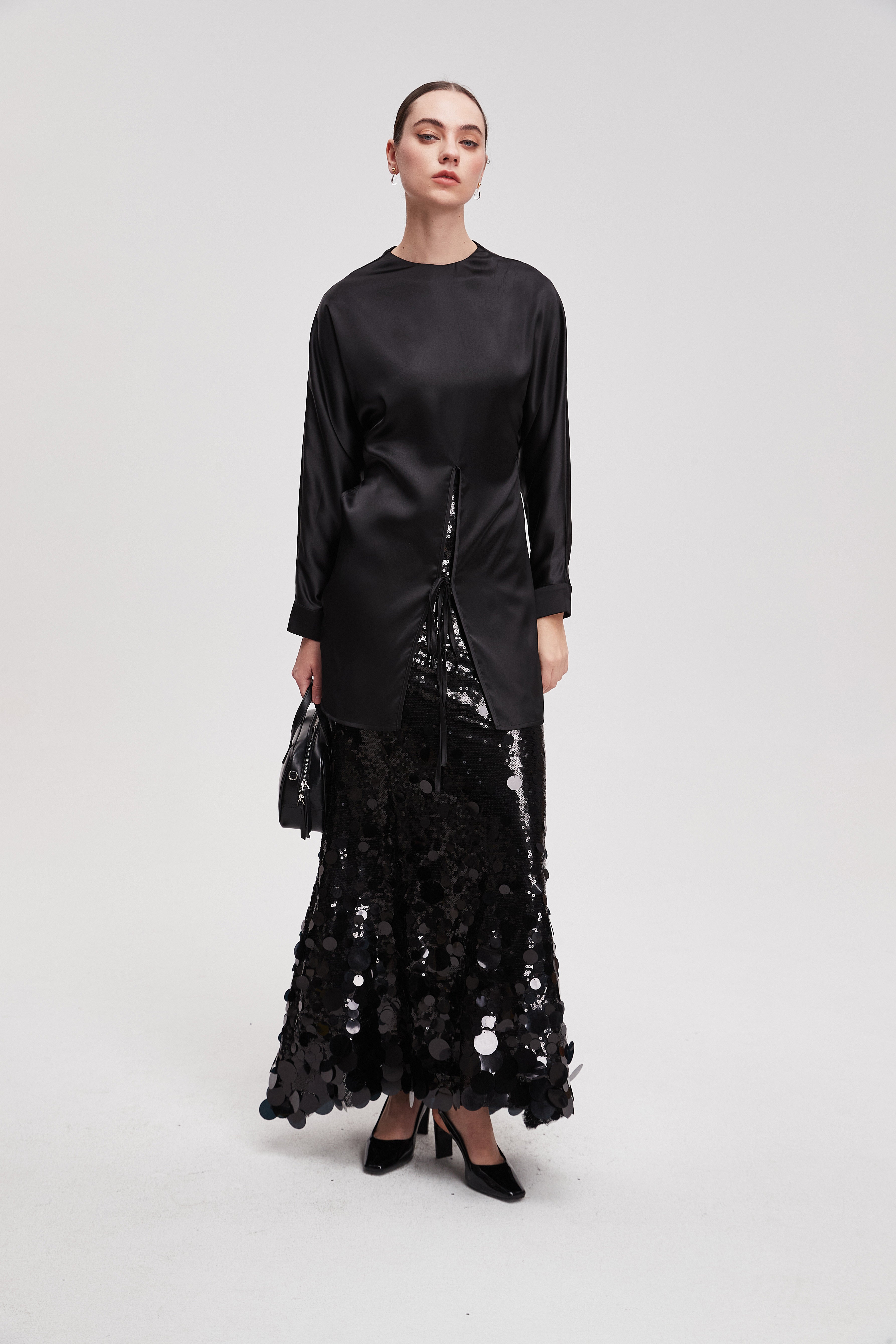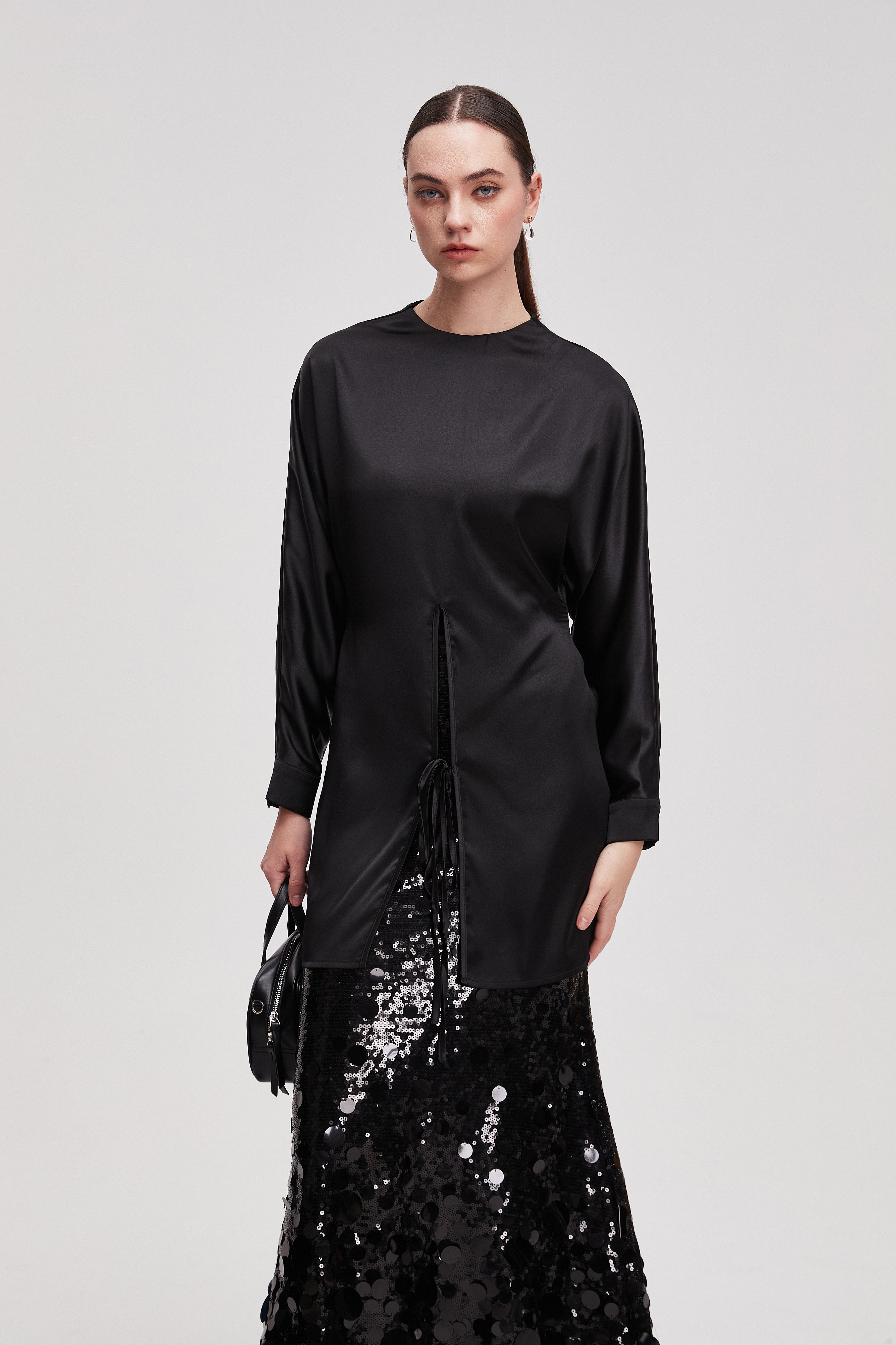 قميص طويل سادة كم طويل