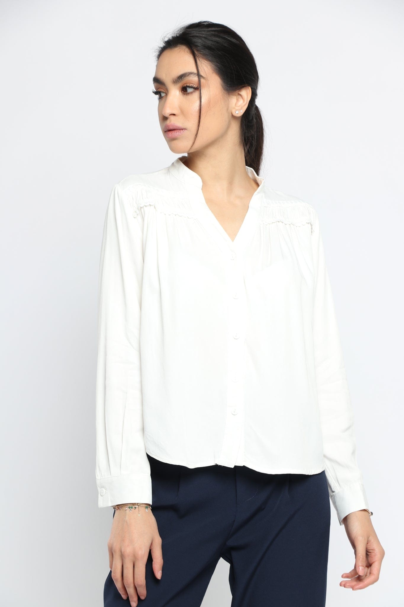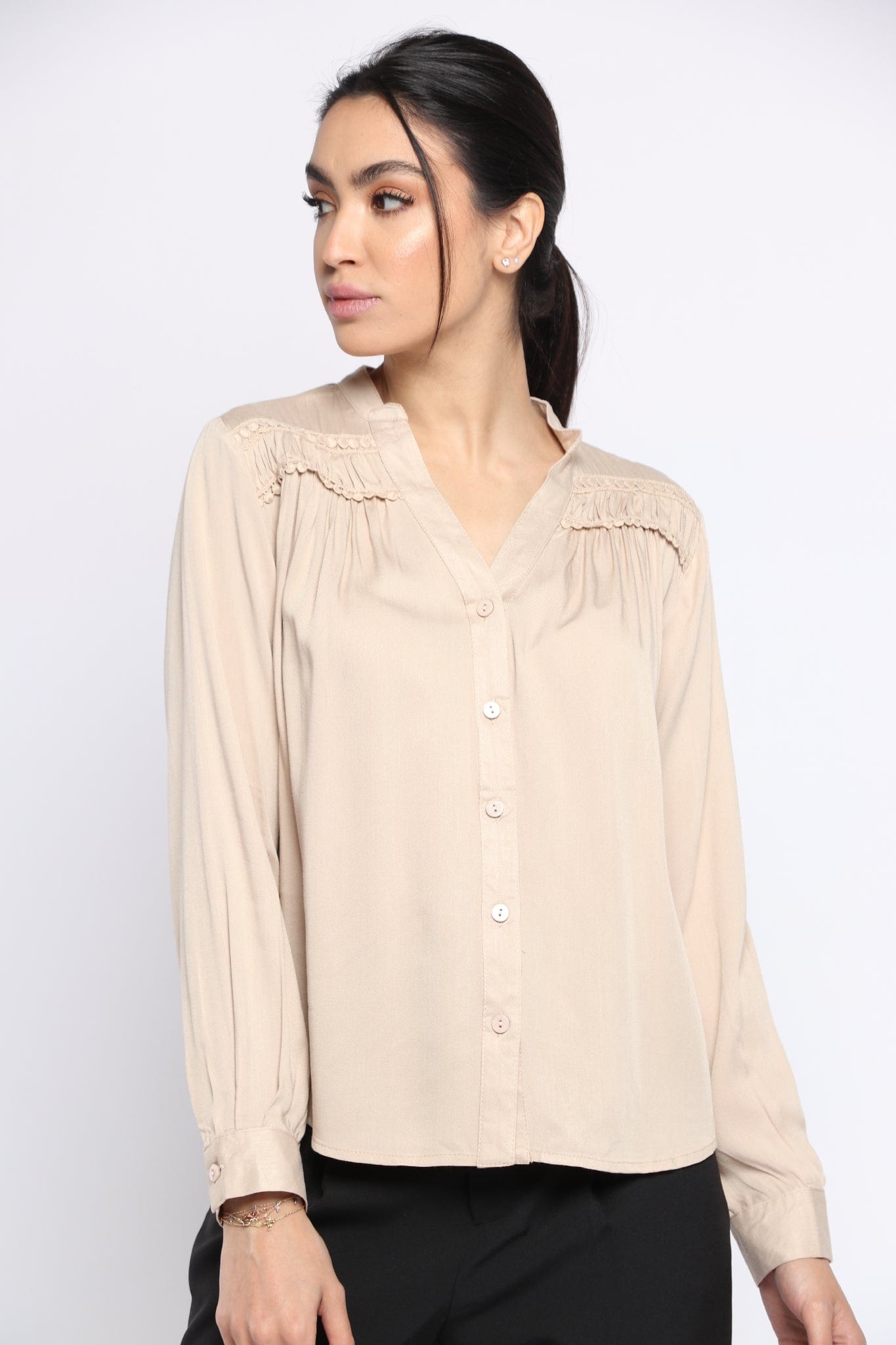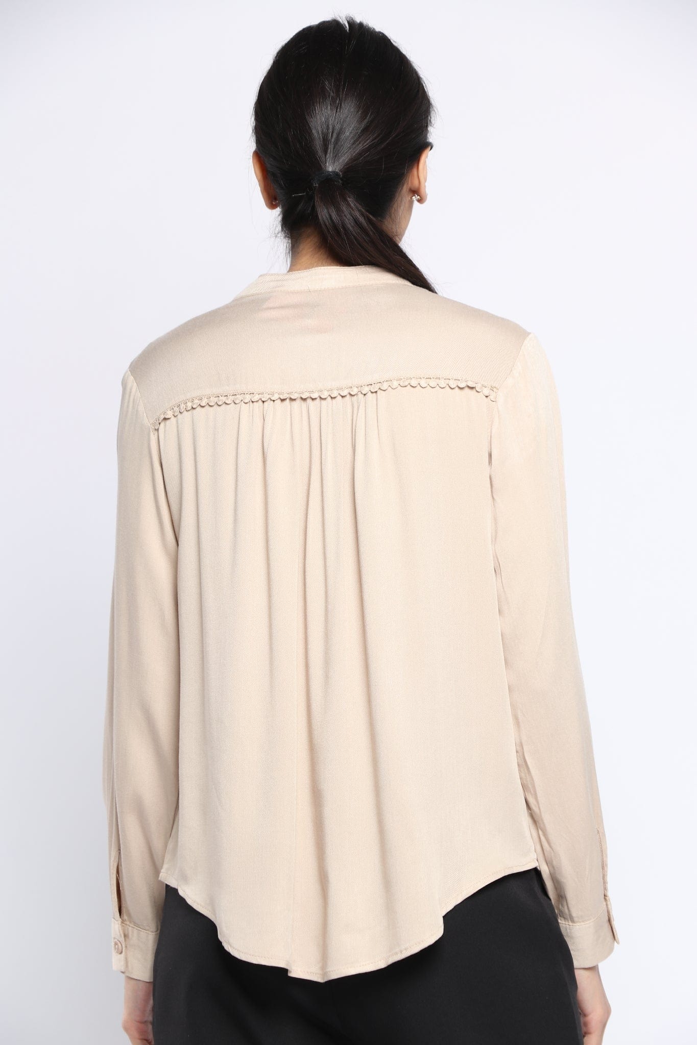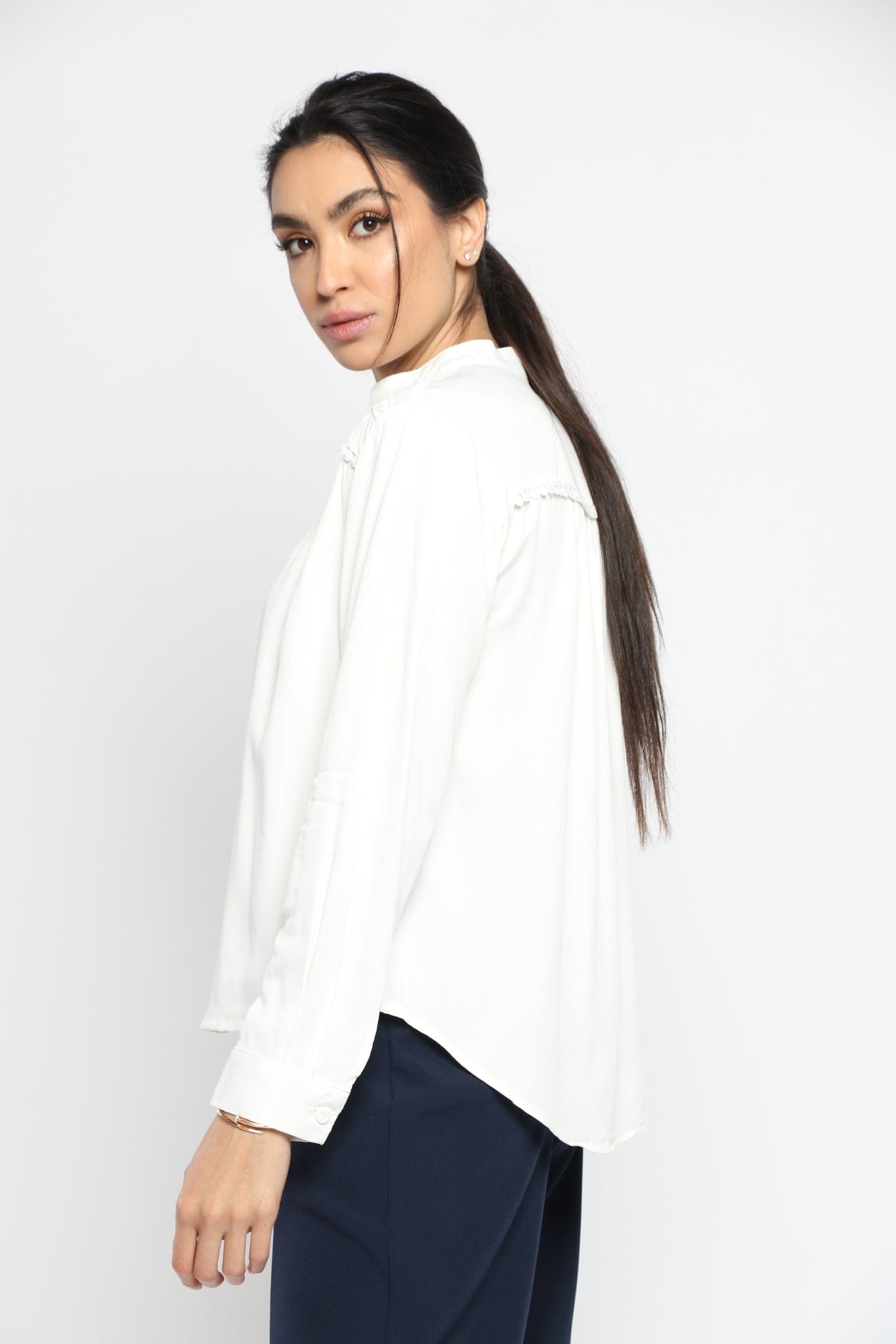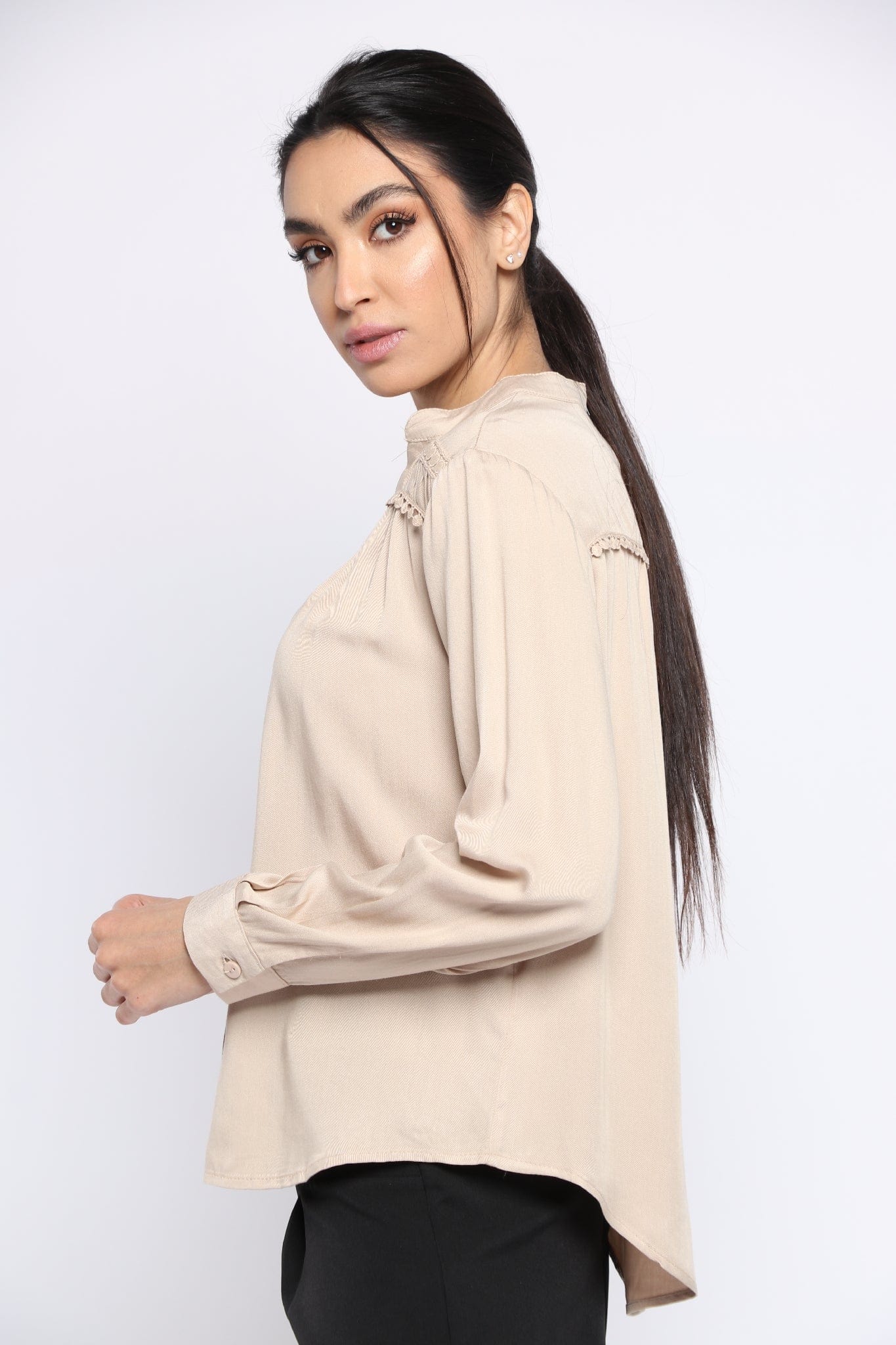 بلوزة سادة بفتحة سبعة وياقة كم طويل نسائي