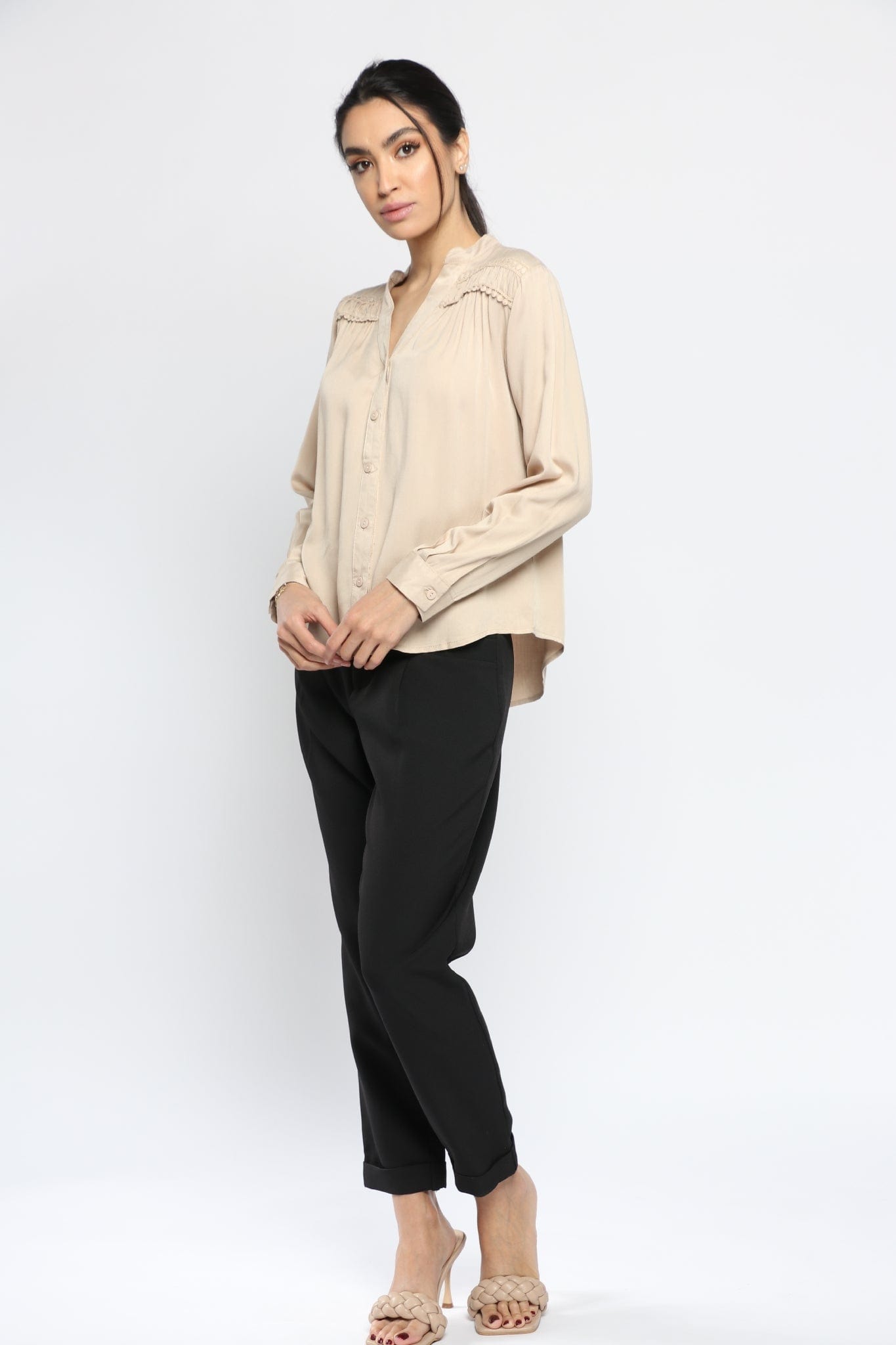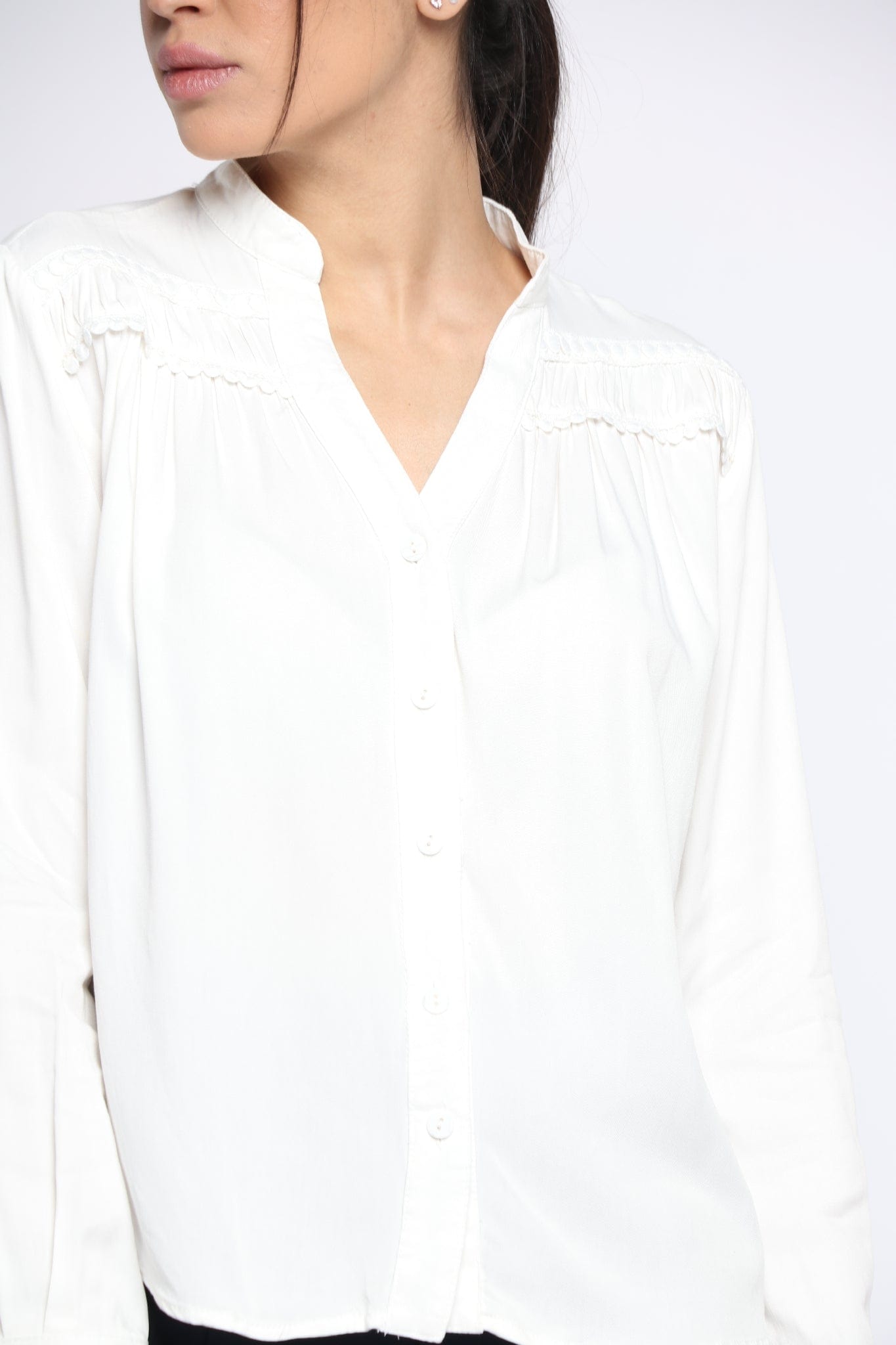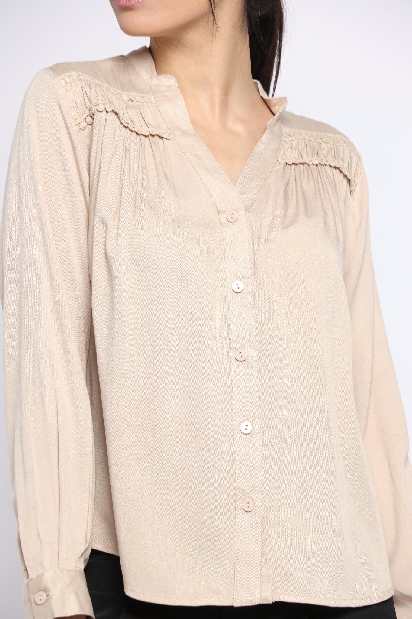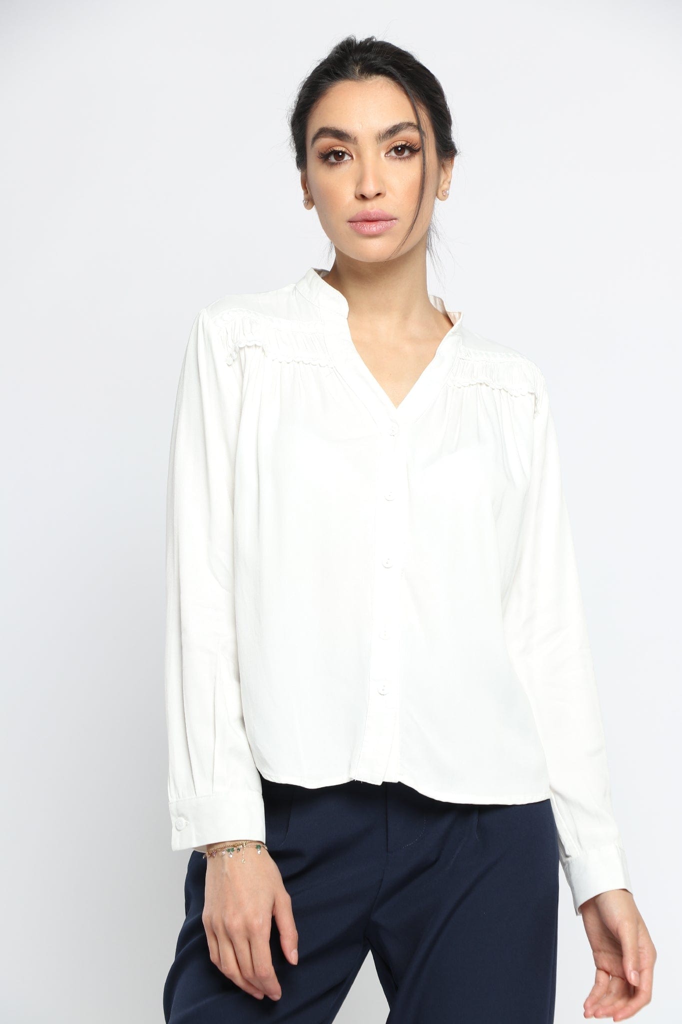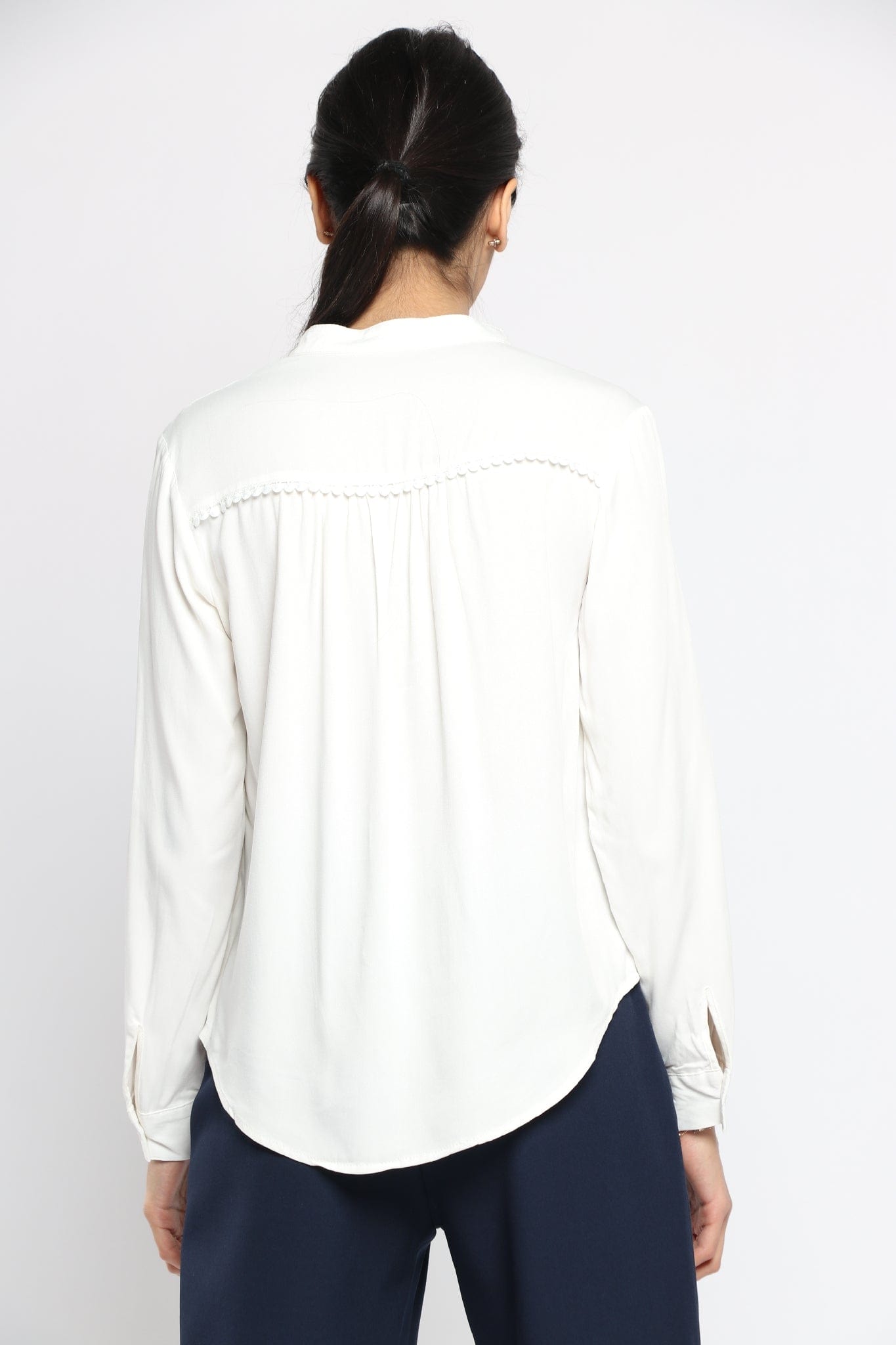 بلوزة سادة بفتحة سبعة وياقة كم طويل نسائي