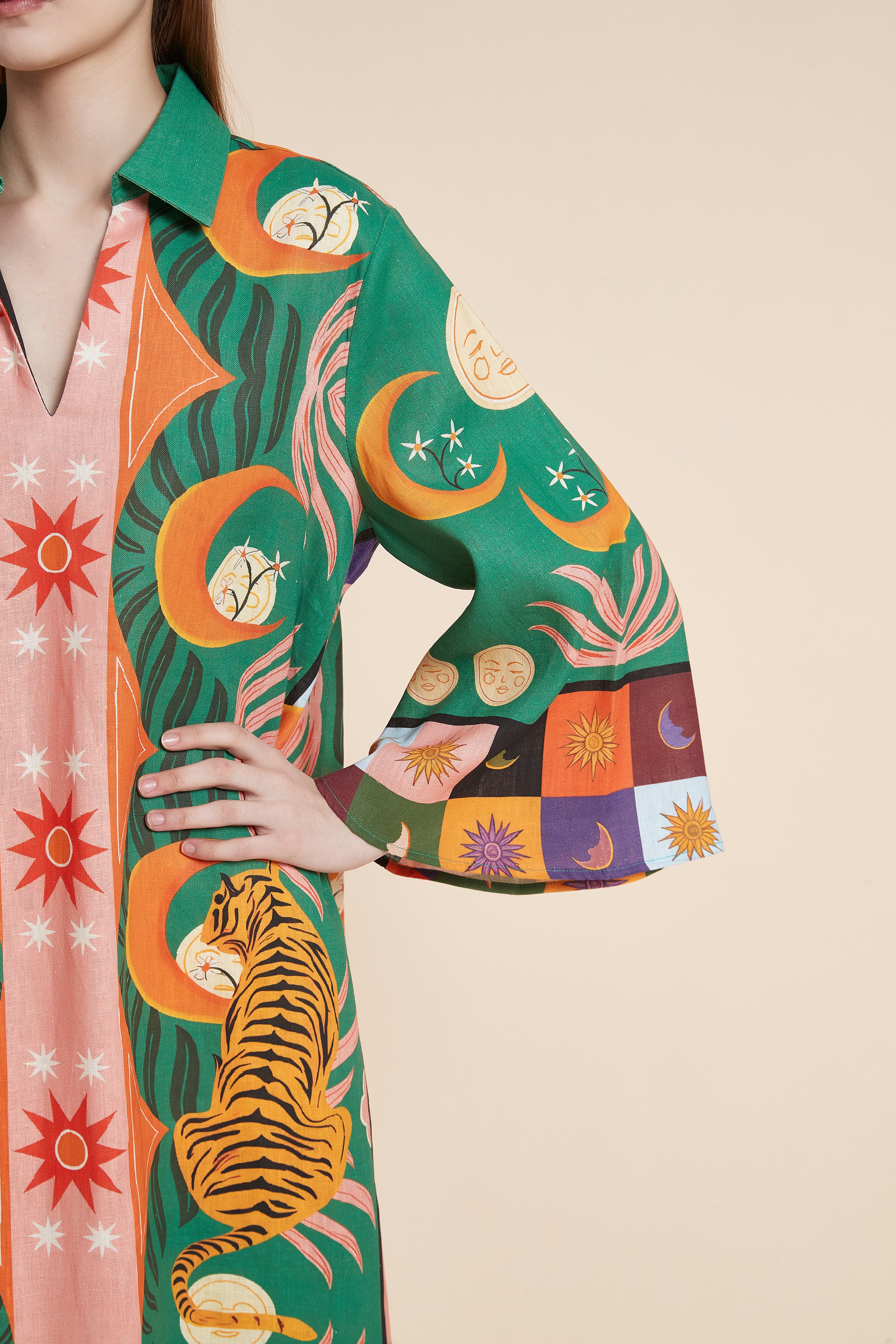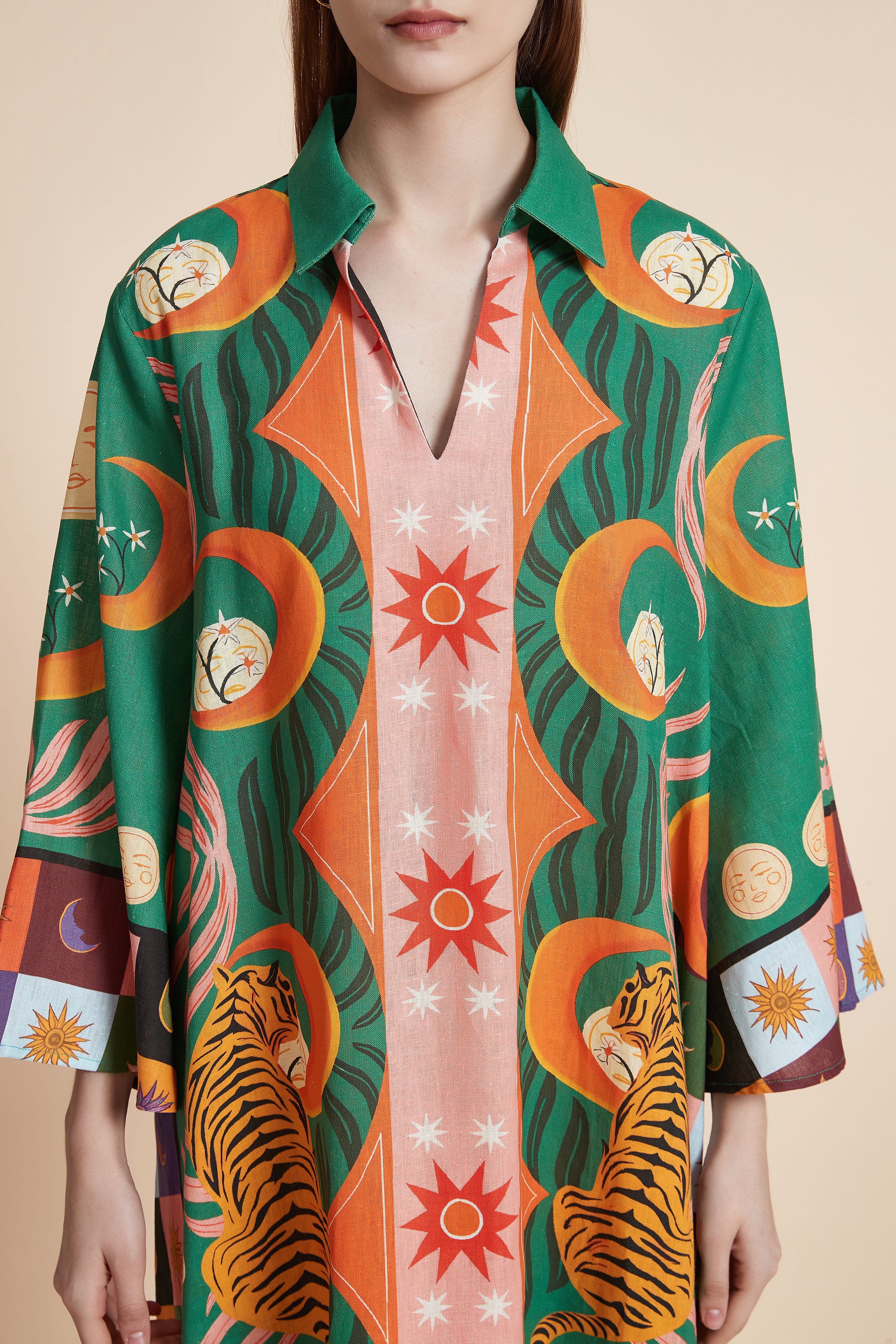صُنعت هذه القطعة من نسيج يتميز بملمس ناعم وبارد على البشرة، مما يجعلها خياراً مثالياً للاستخدام المطول. تتمتع الخامة بقدرة جيدة على تمرير الهواء لتمنحكِ انتعاشاً مستمراً، كما أنها تنسدل بمرونة تامة لتعطي مظهراً مرتباً دون جهد. يتميز القماش بقدرته على الاحتفاظ برونق لونه الأخضر الجذاب ومقاومة الانكماش، ليبقى وكأنه جديد لفترة طويلة. استثمار في قطعة تدوم سنوات وتبقى جميلة كاليوم الأول.