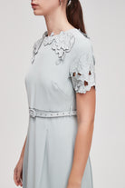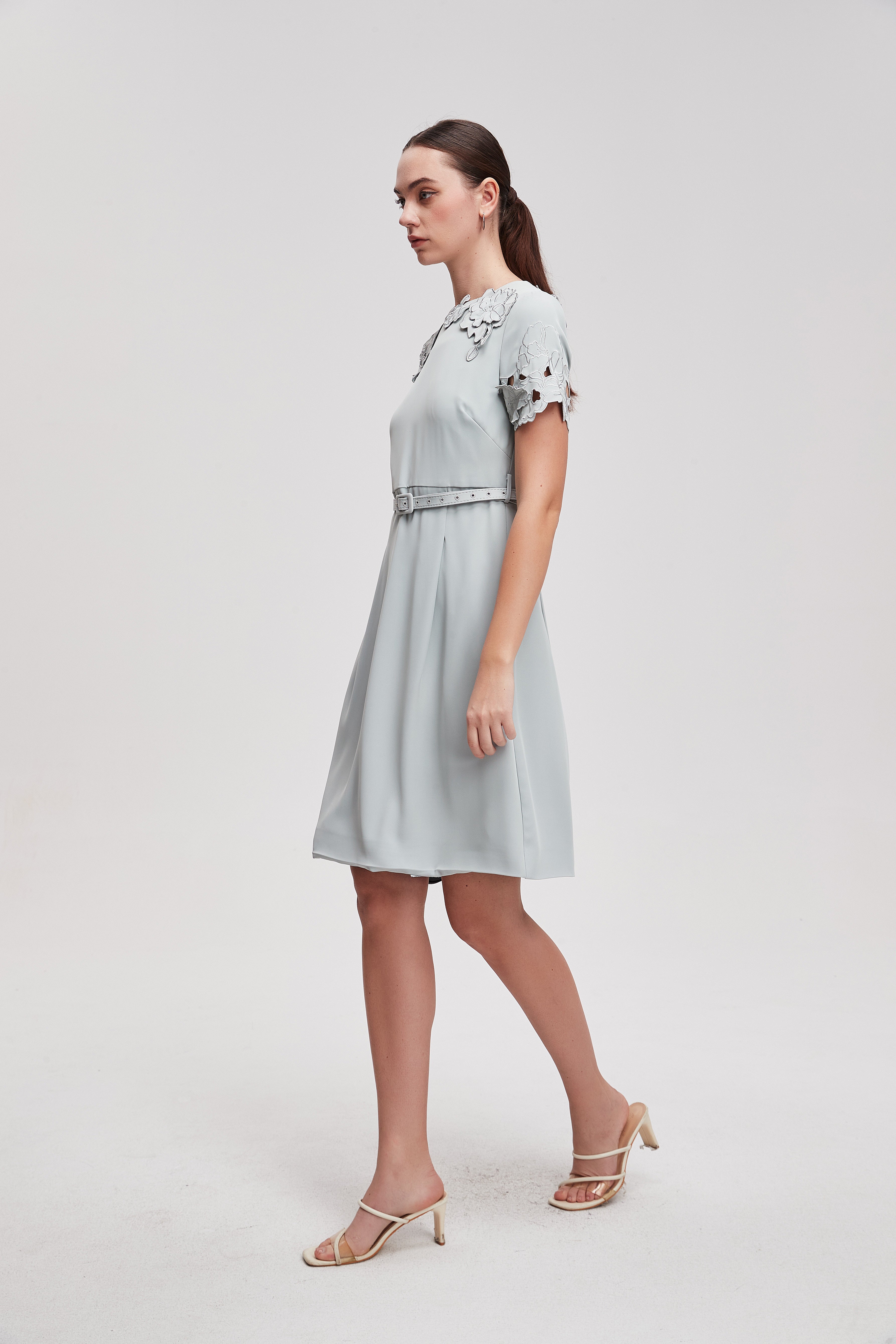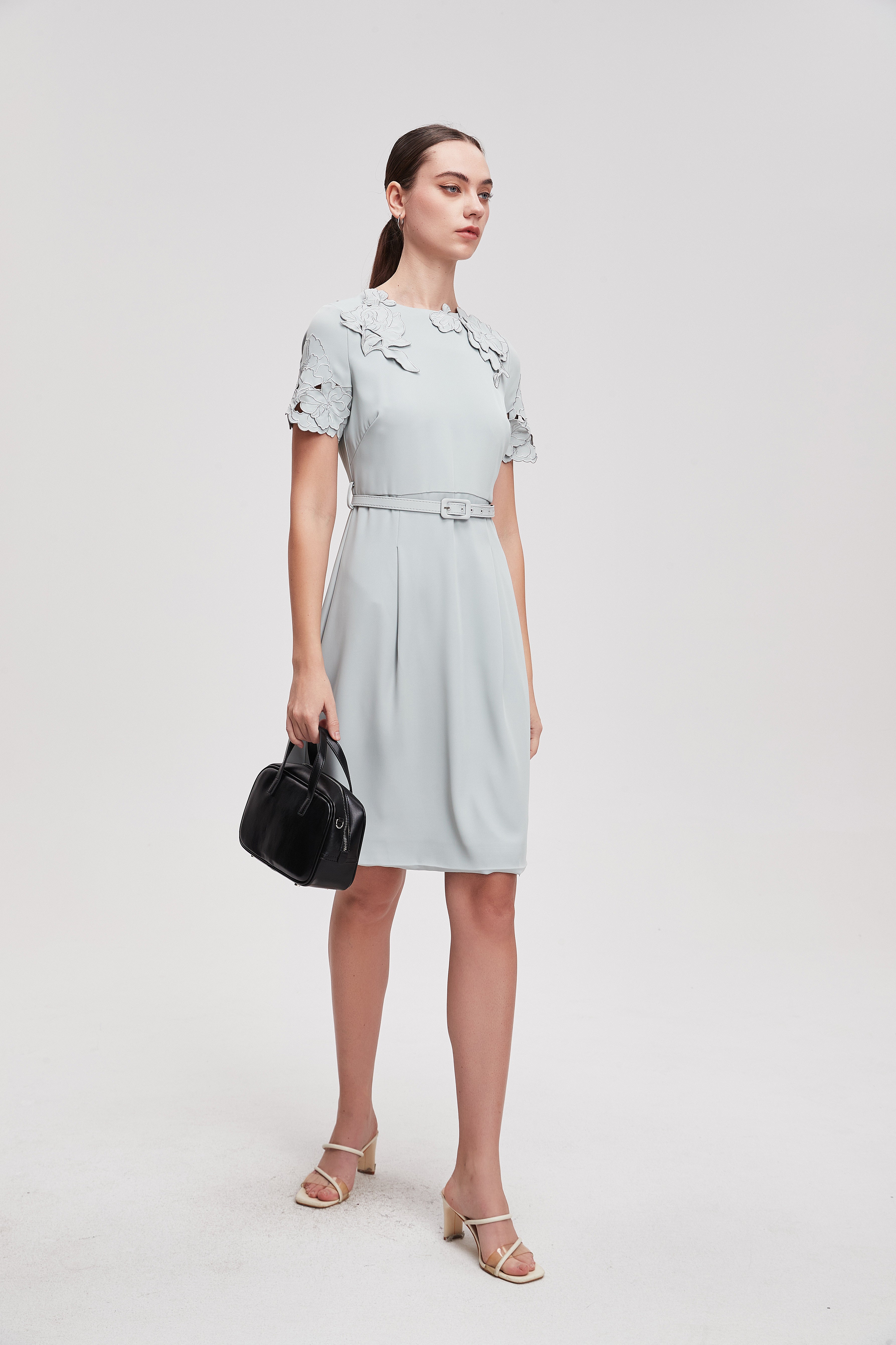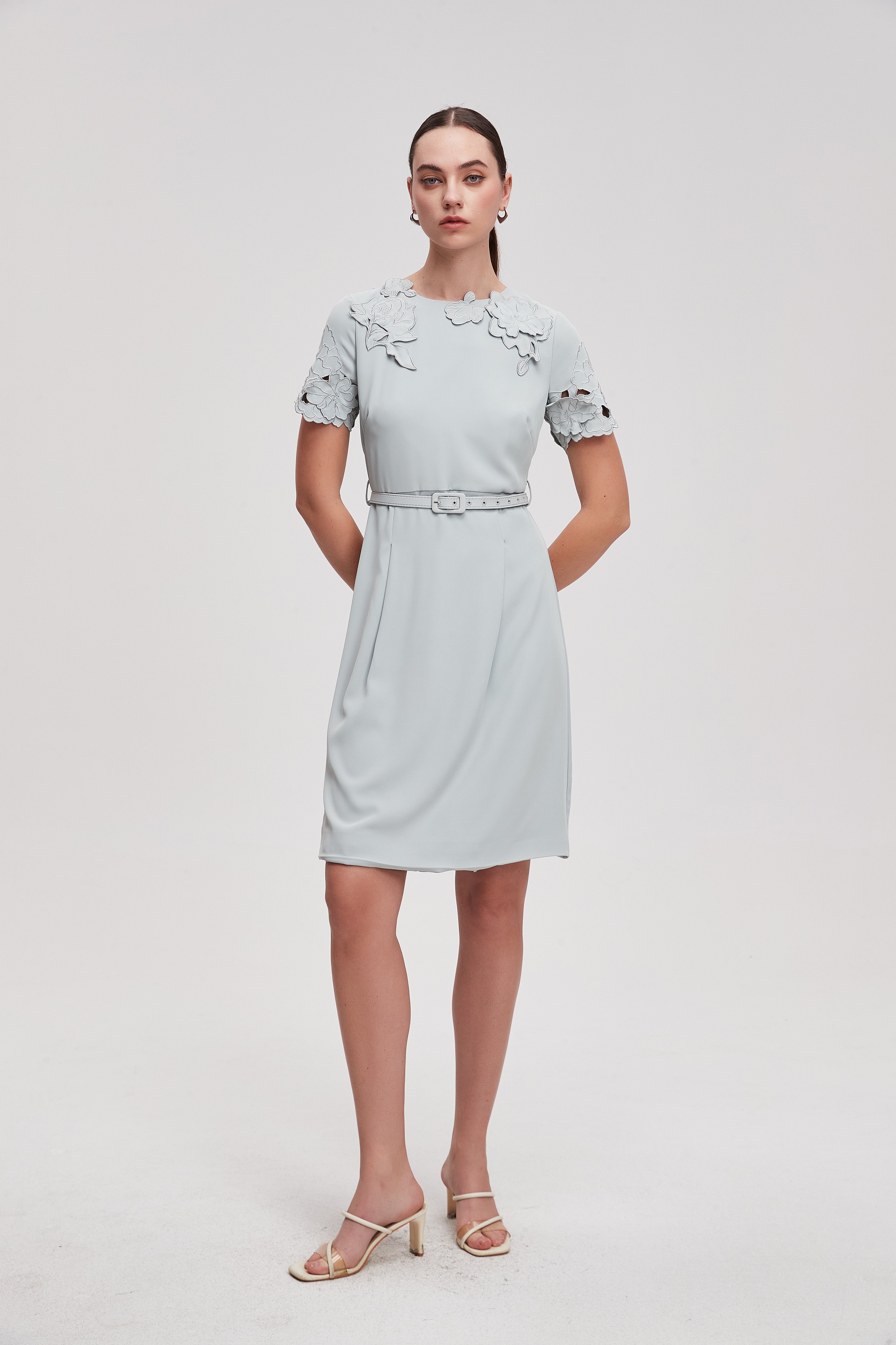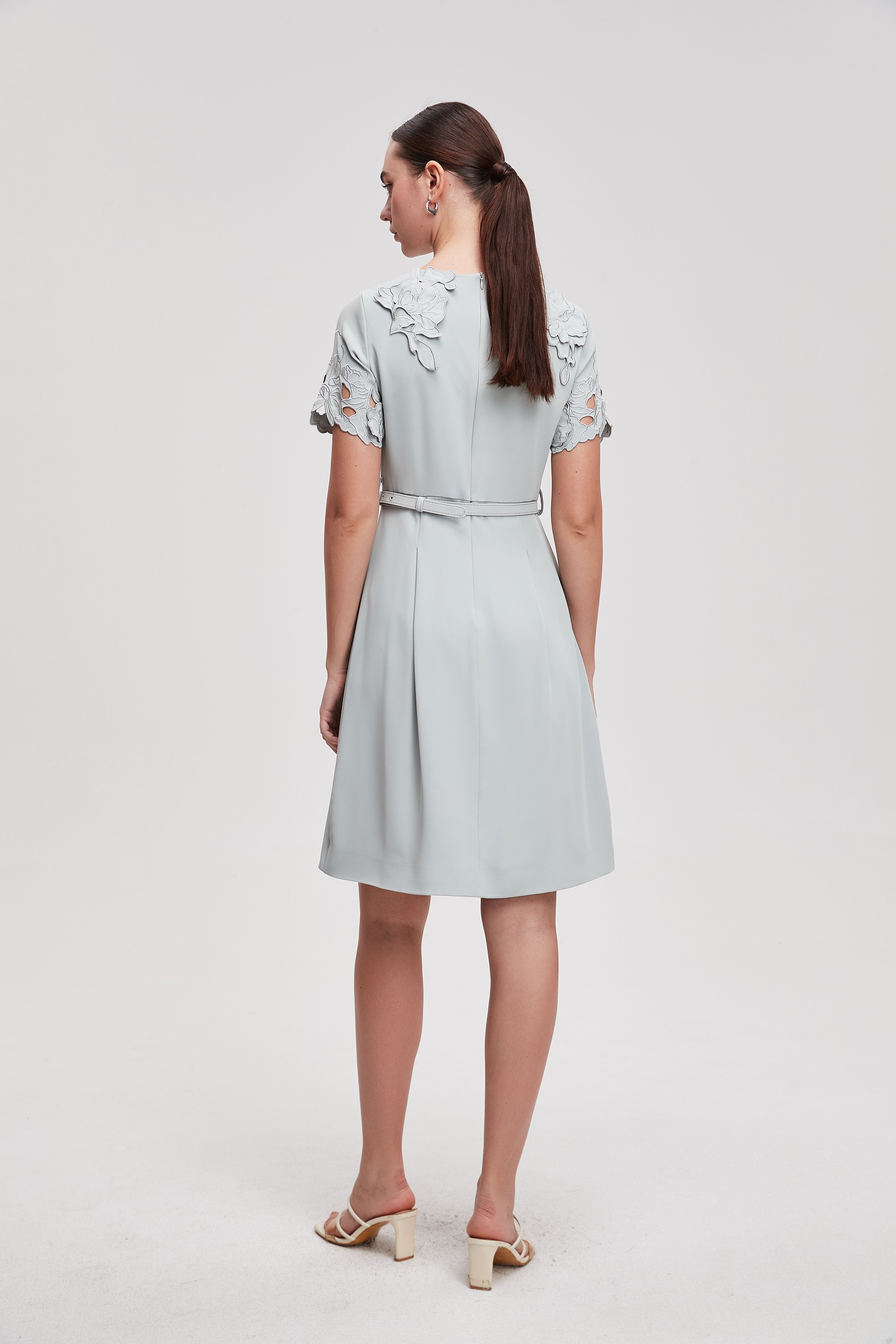فستان بطول الركبة بحزام خصر بأكمام قصيرة