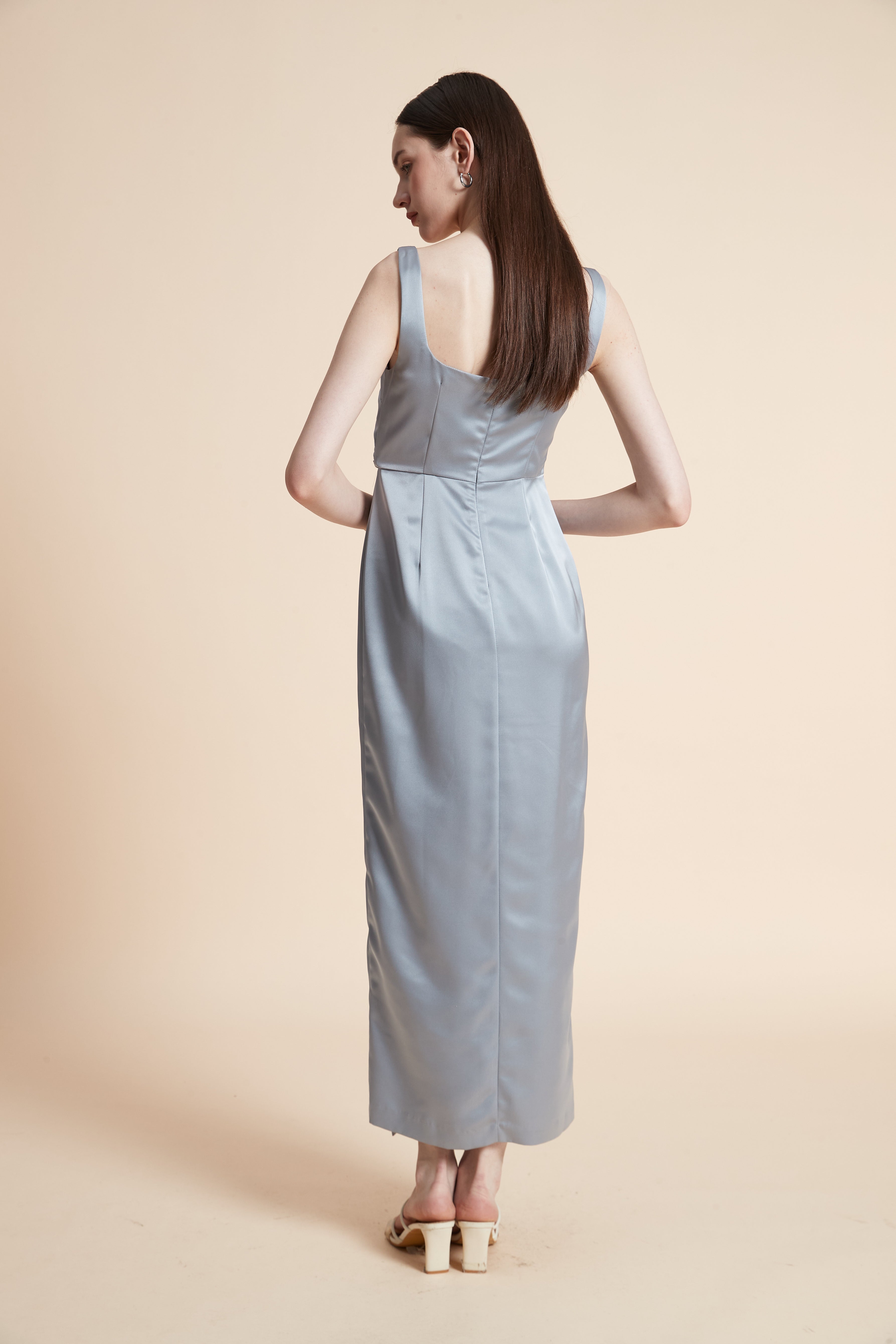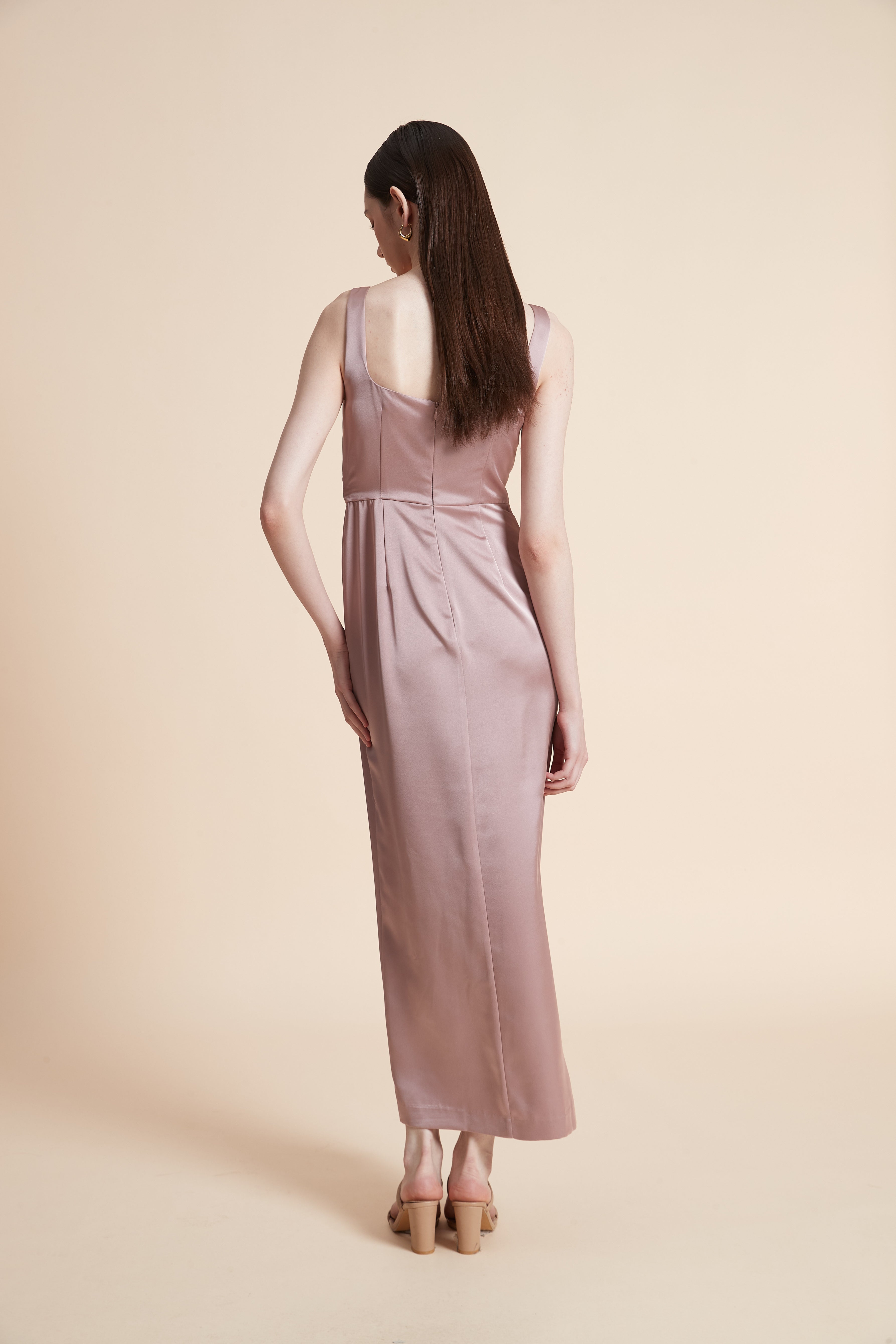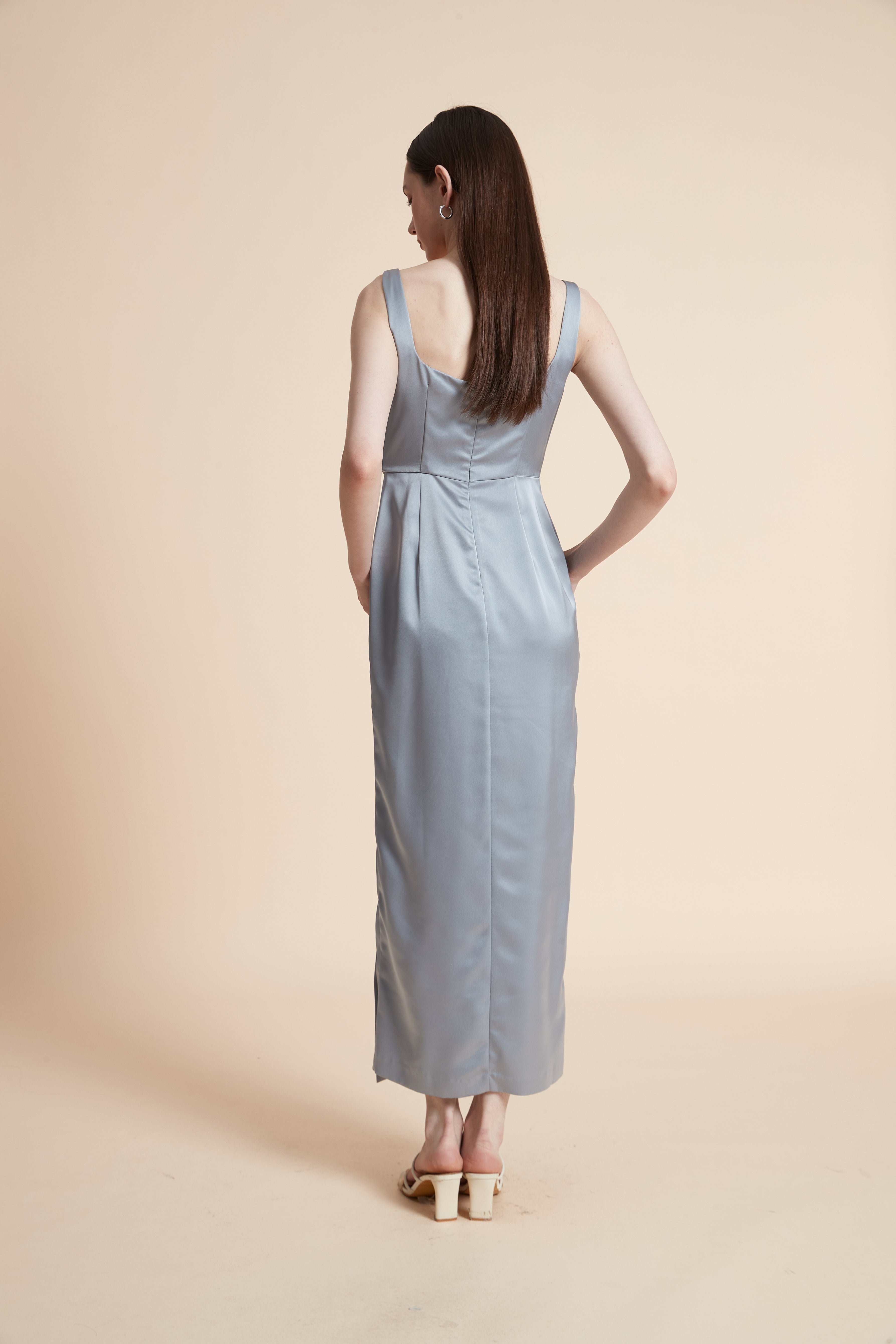 فستان ماكسي بدون أكمام بفتحة أمامية