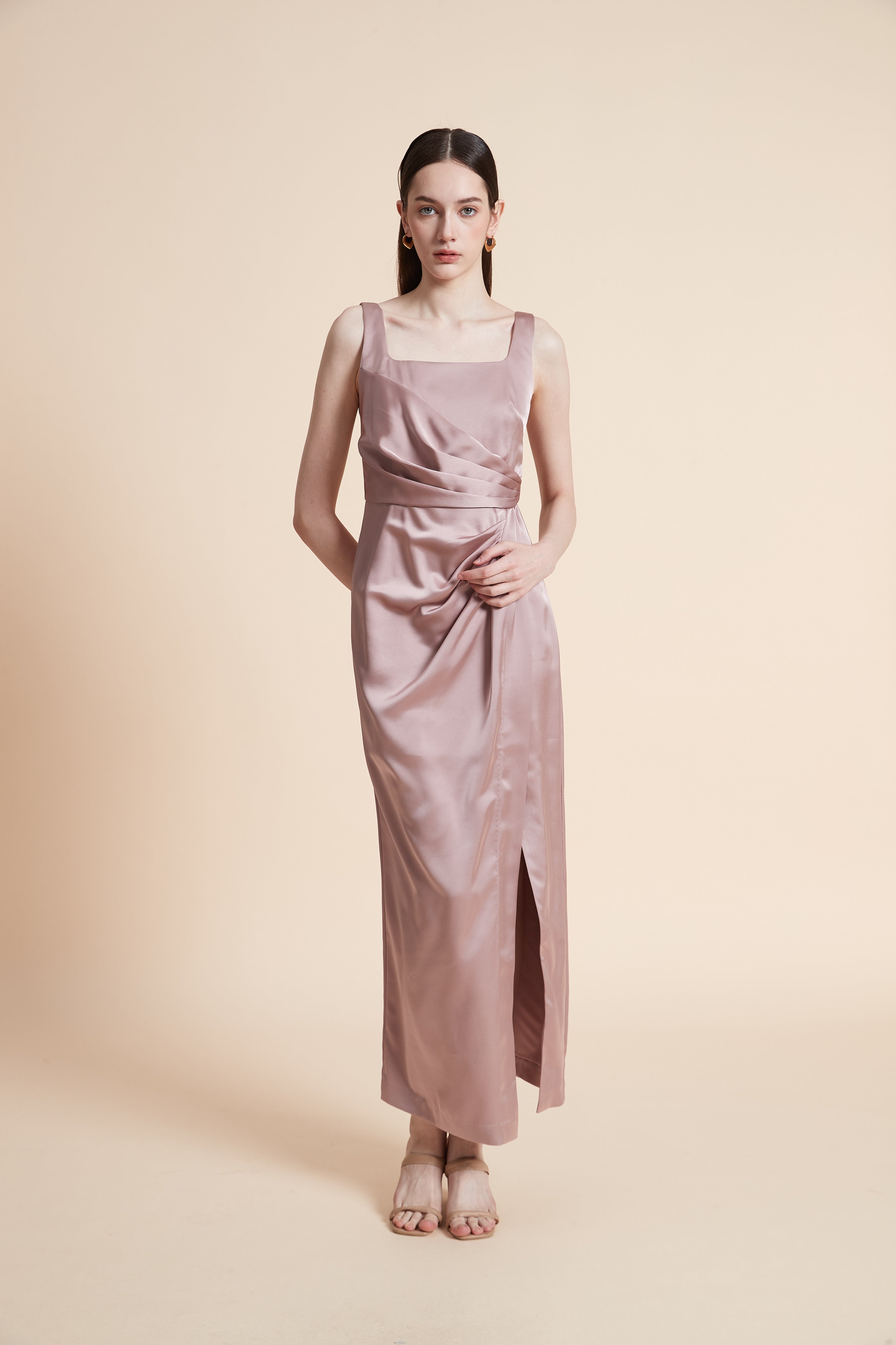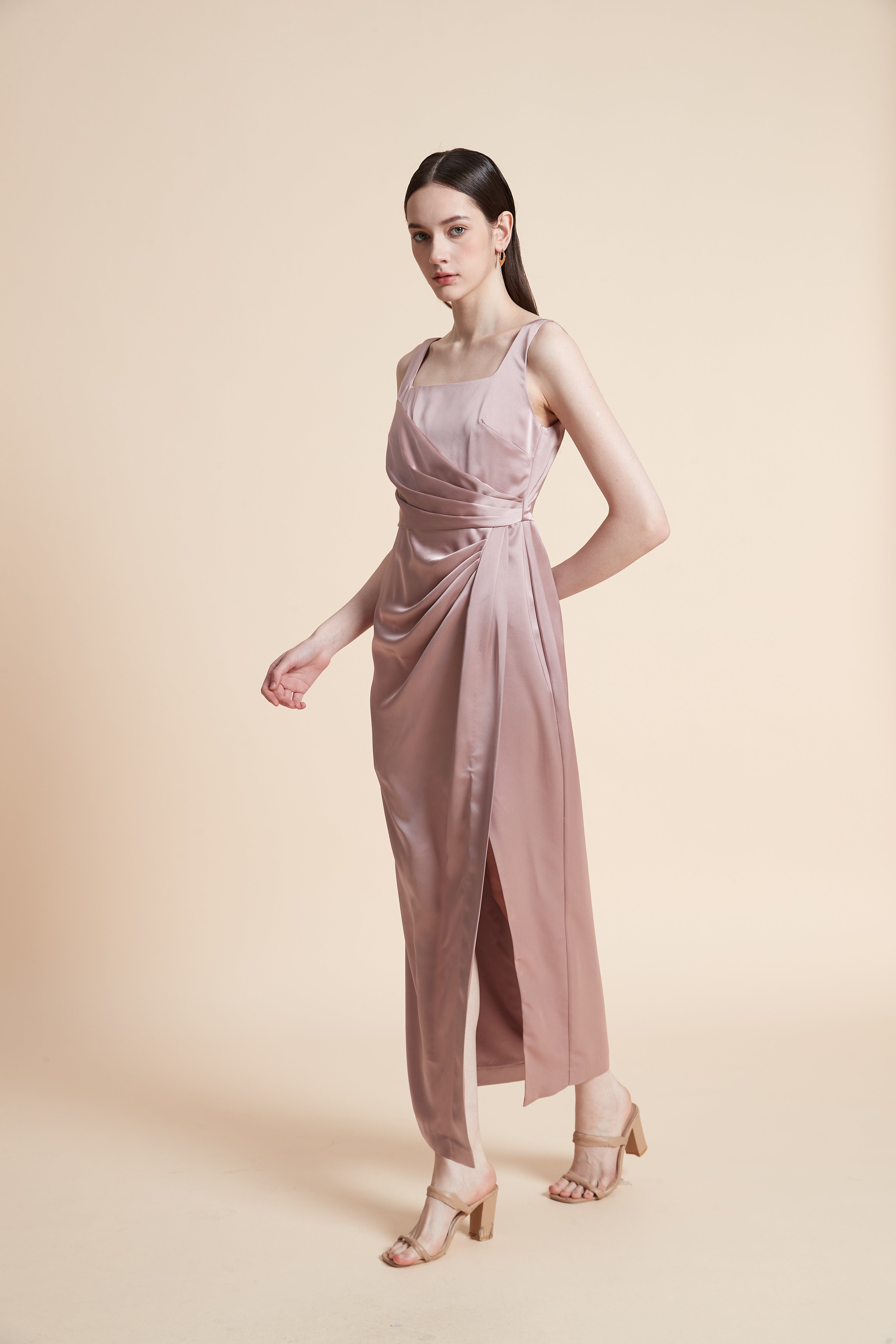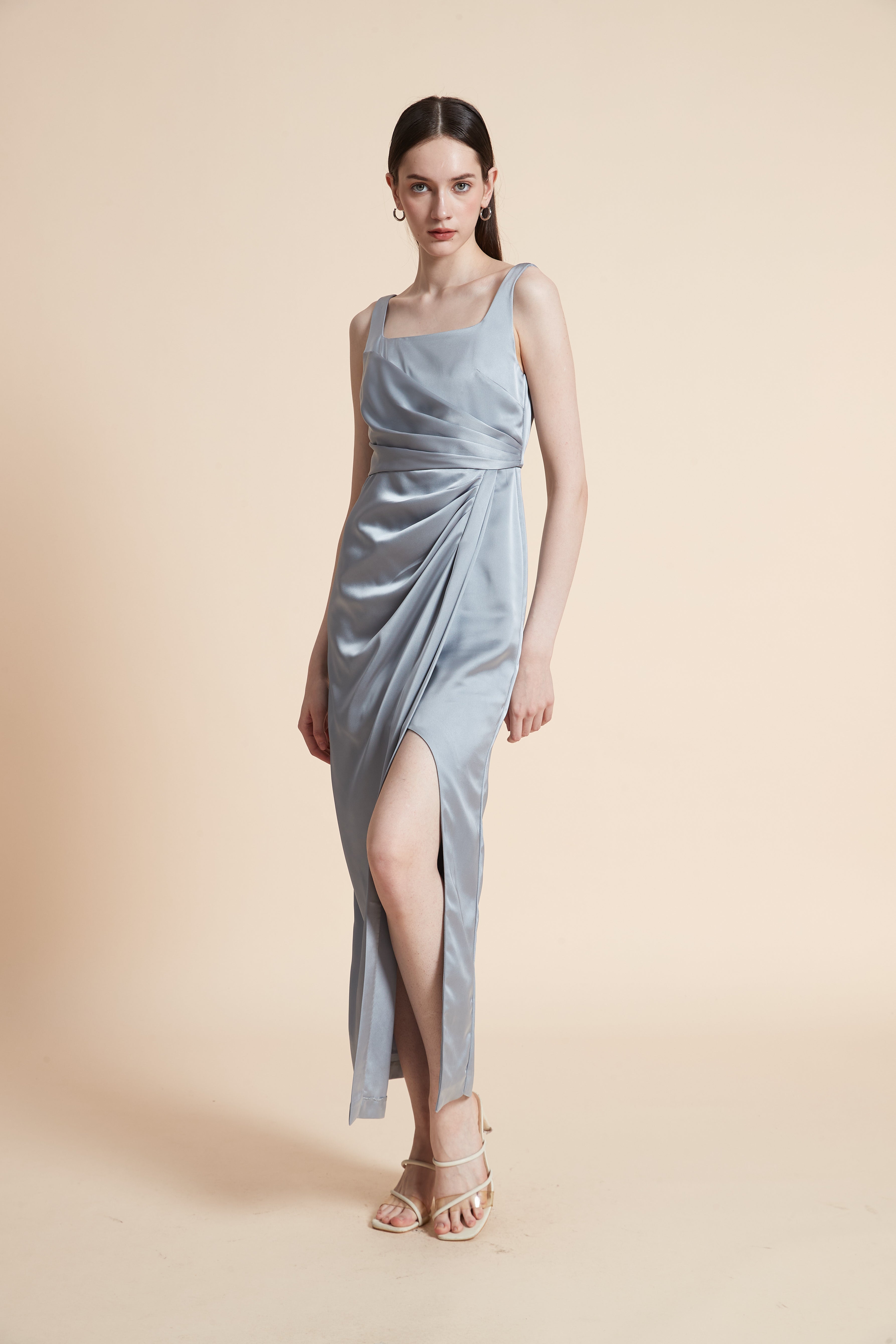 فستان ماكسي بدون أكمام بفتحة أمامية