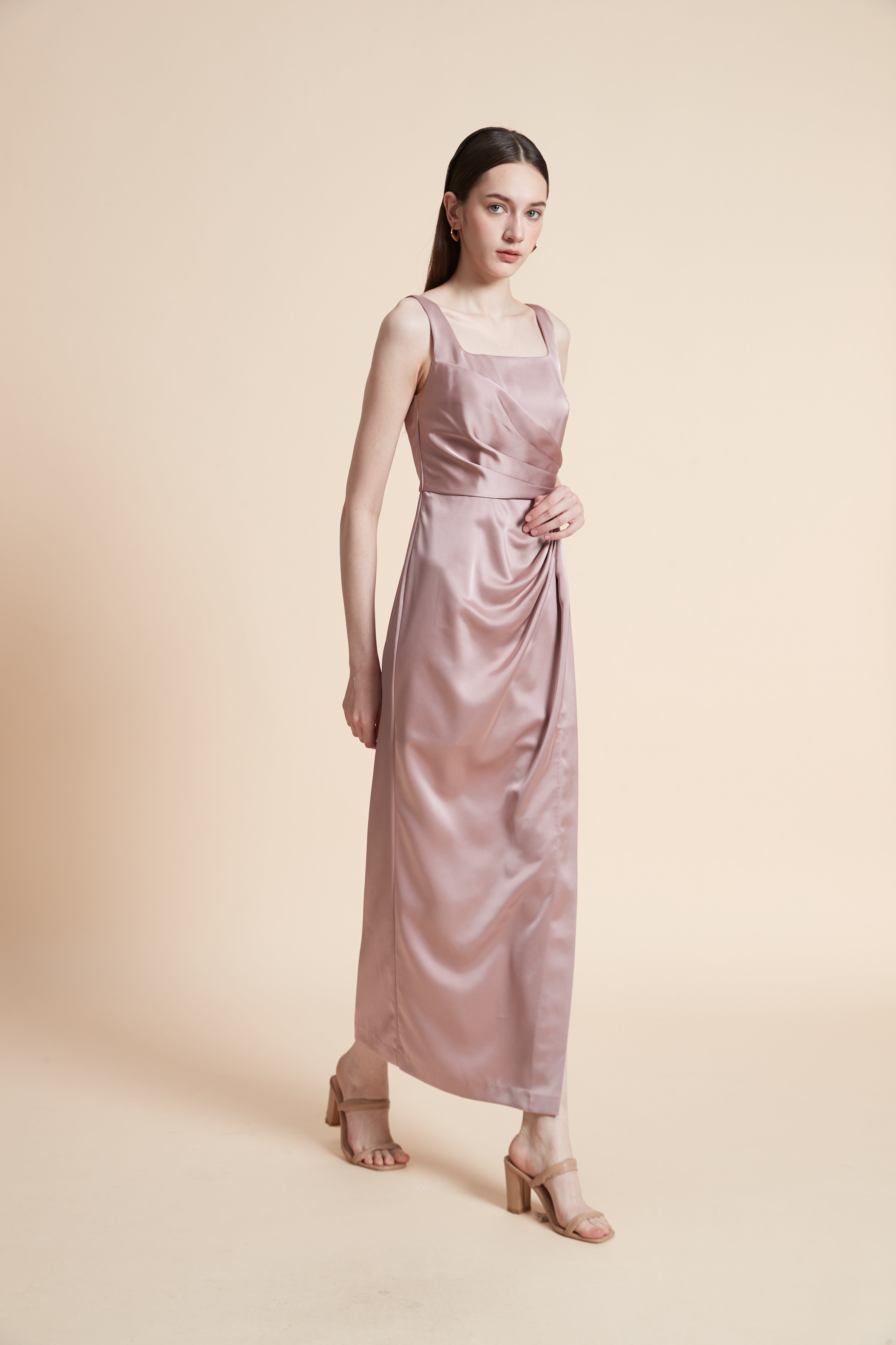 نسقي هذا الفستان الماكسي مع صنادل مسطحة أو إسبادريل لإطلالة يومية مريحة. أضيفي قلادة بسيطة وقبعة قش لإكمال المظهر الصيفي الجذاب، فهو مثالي للنزهات والاجتماعات الهادئة.