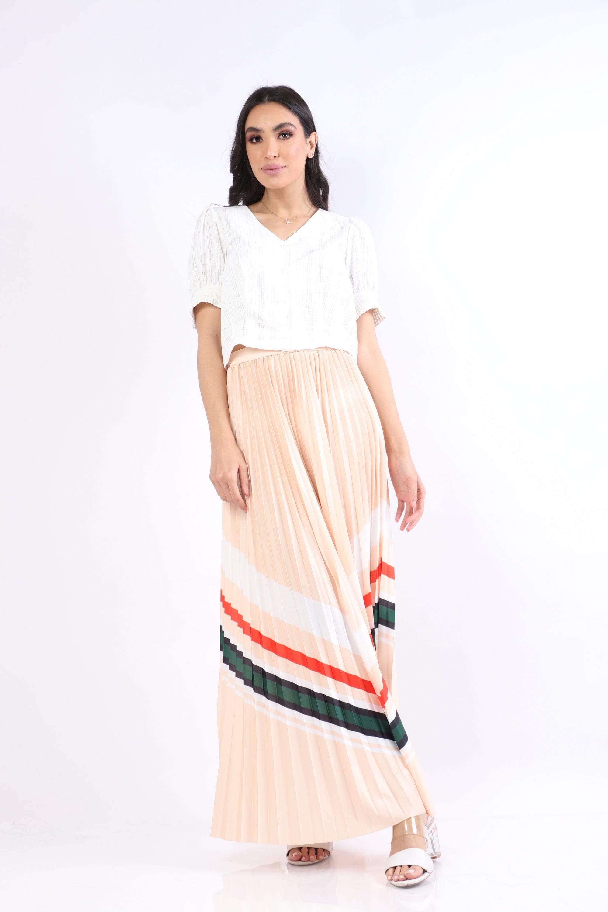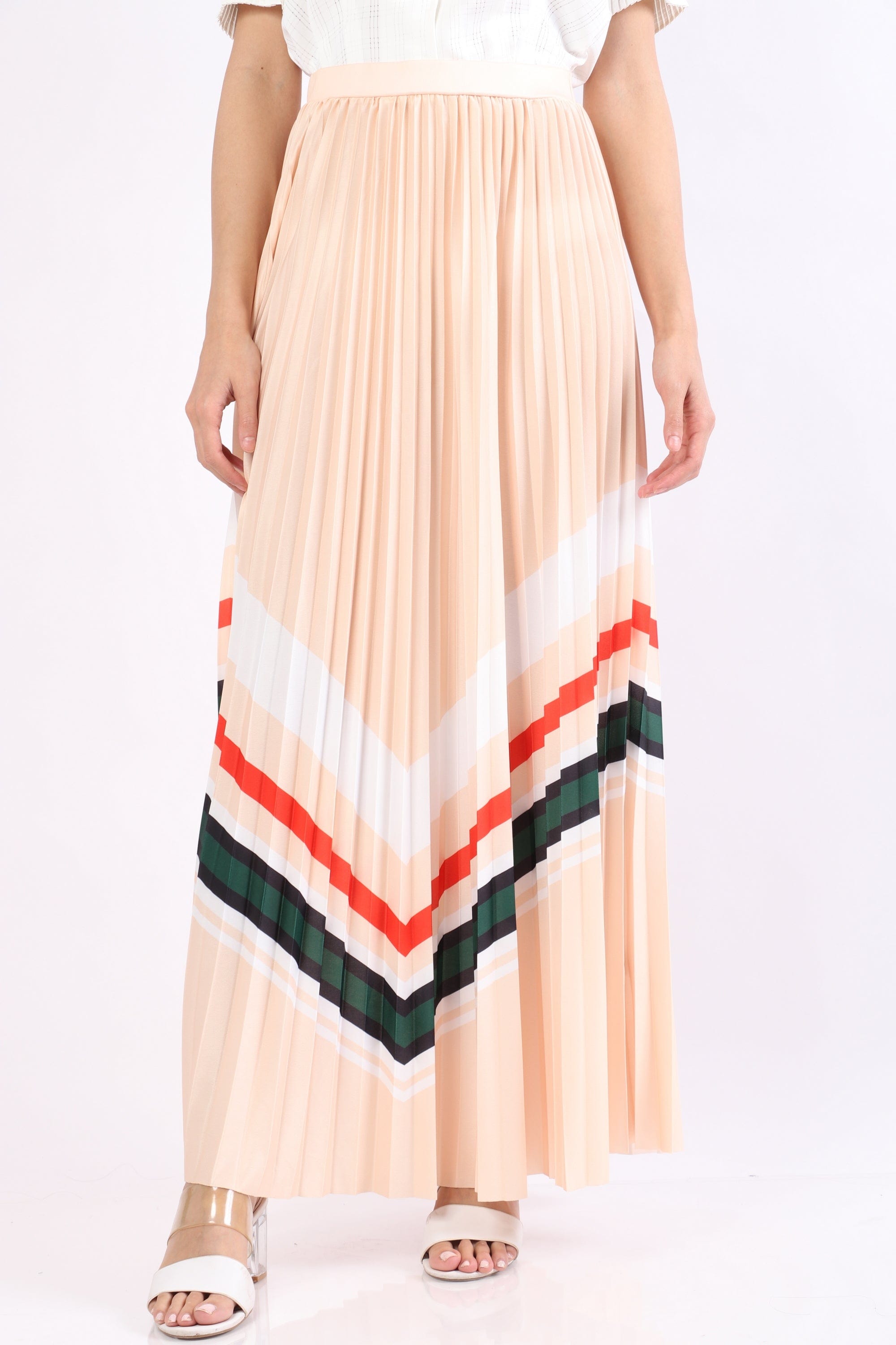 تنورة بليسية طويلة مخططة على نمط مثلث نسائية