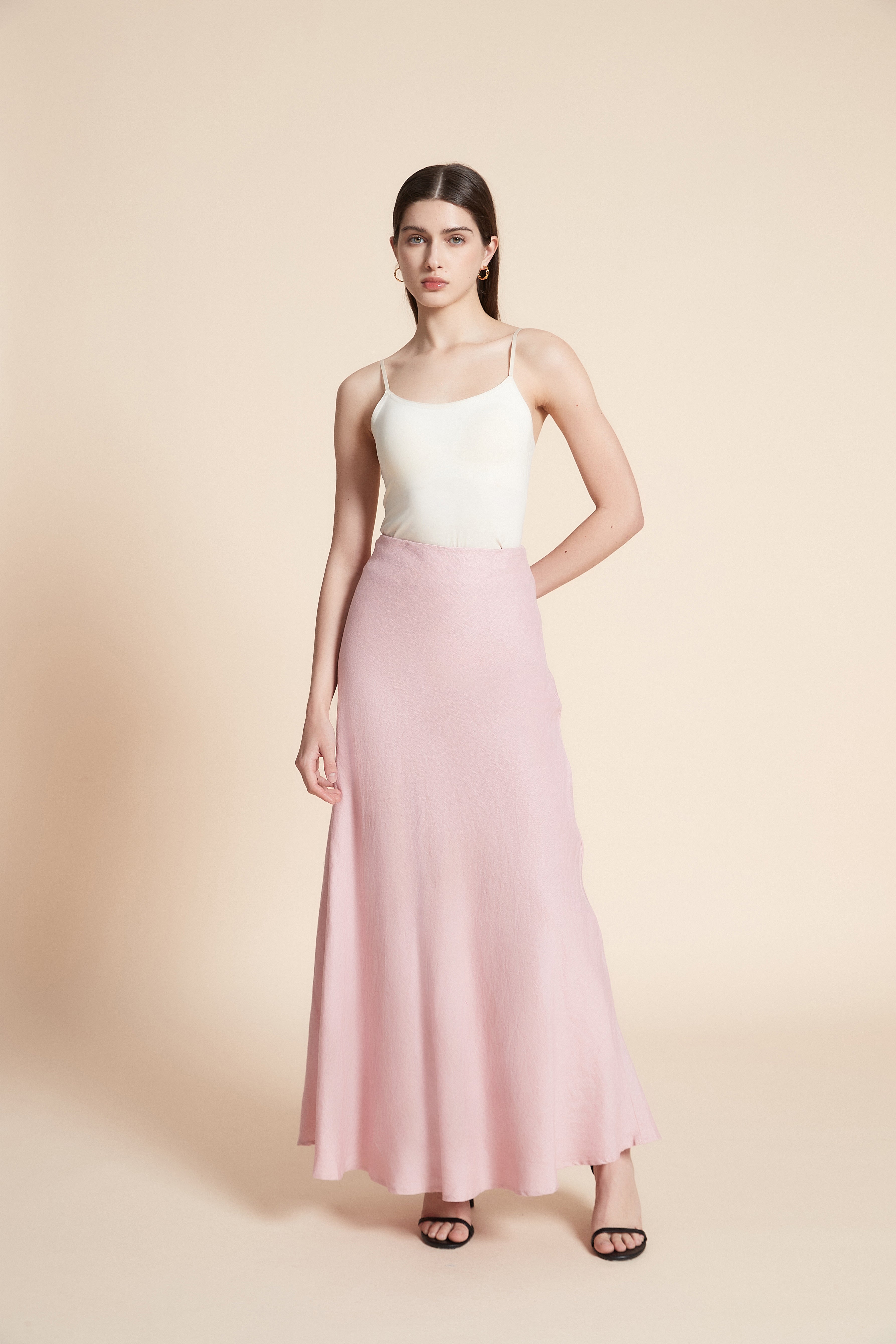 تنورة ماكسي سادة واسعة من الاسفل