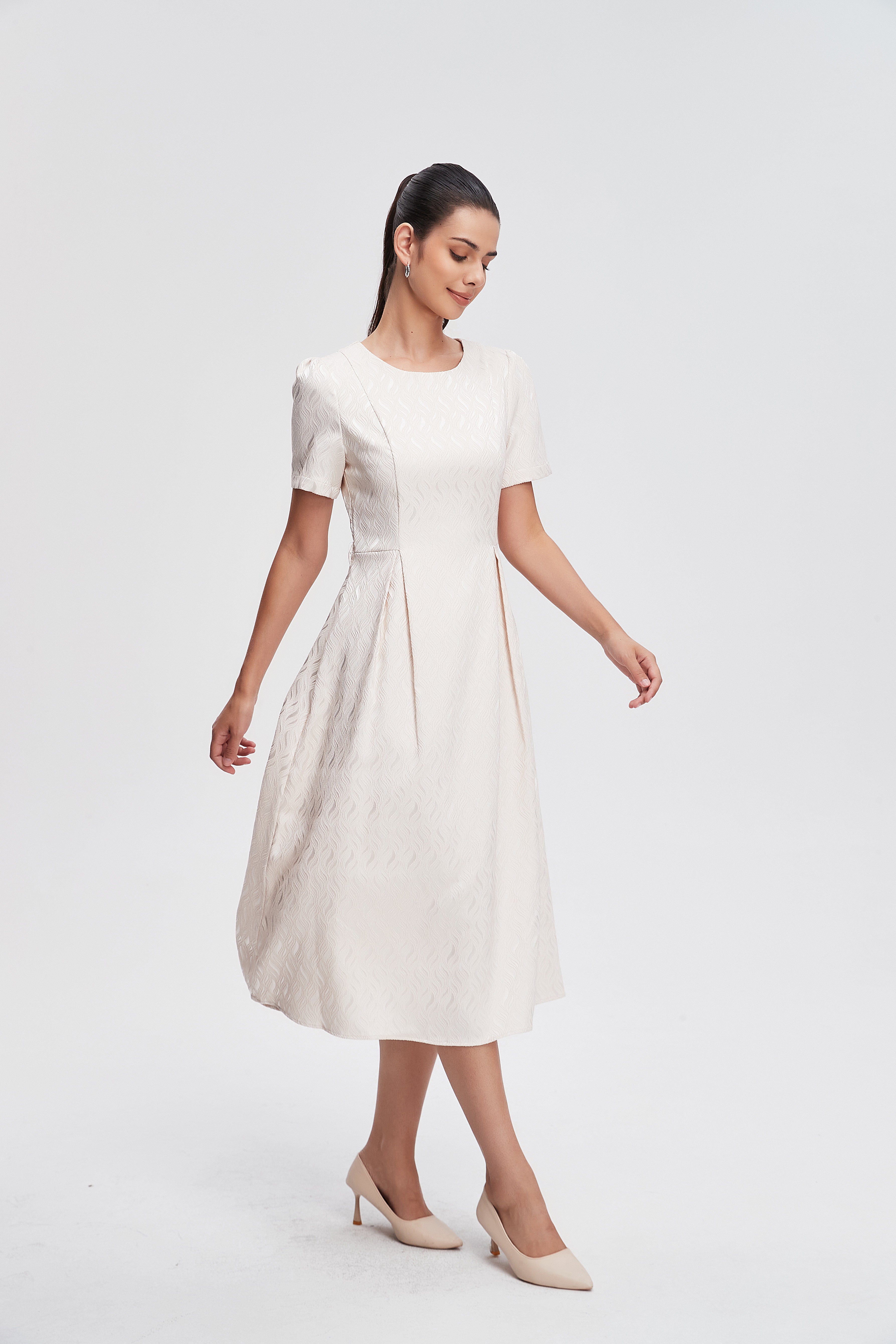 - التنسيق: نسقيه مع صندل مسطح للنهار وجاكيت جينز لحضور يومي، أضيفي الحزام لتحديد الخصر أو استبدليه بحزام جلدي للمساء، للمظهر الرسمي البسيط اختاري حذاء بكعب متوسط وإكسسوارات رقيقة؛ مناسب لكل المواسم مع طبقات خفيفة في الطقس البارد.