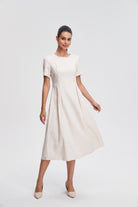 فستان سهرة ميدي مخصر كلوش من أسفل كم قصير نسائي