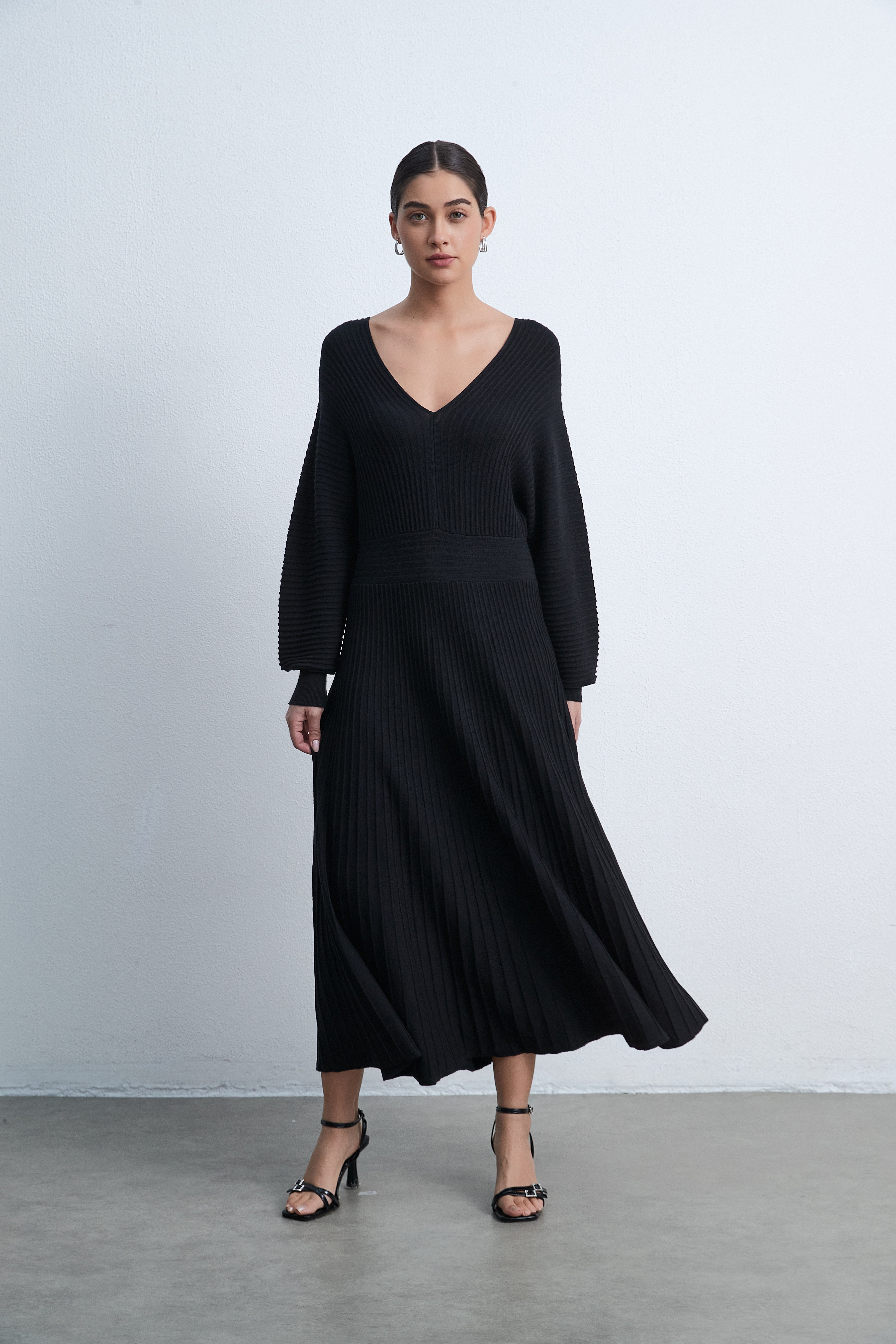 لما تبحثين عن فستان أنيق يناسب مناسبات متعددة وتبقين مواكبة للموضة، هذا الفستان الأسود بقصة A سيكون خيارك الذكي. القماش بسمك متوسط يعطي توازن بين الاحتشام والخفة، وستحبين كيف يتحرك معك، خصوصاً بطوله الميدي الذي يصلح للخروجات الرومانسية والسهرات الأنيقة. ياقة V تضيف لمسة أنثوية من دون مبالغة، والأكمام المنفوخة الطويلة تعطي حضوراً مميزاً دون الحاجة لتفاصيل أخرى. الفستان سادة وبقصة عادية، مما يجعله لوحة جاهزة لإكسسوارك المفضل—ولأنه بدون جيوب وبدون حزام يبقى نظيف الخطوط وواضح الشكل. مناسب لكل المواسم ويمكن تنسيقه بسهولة لصباح عملي أو مساء أنيق. اعثري على مقاسك في فاشن السعودية وأضيفي هذه القطعة المتنوعة إلى خزانة ملابسك اليوم.