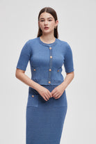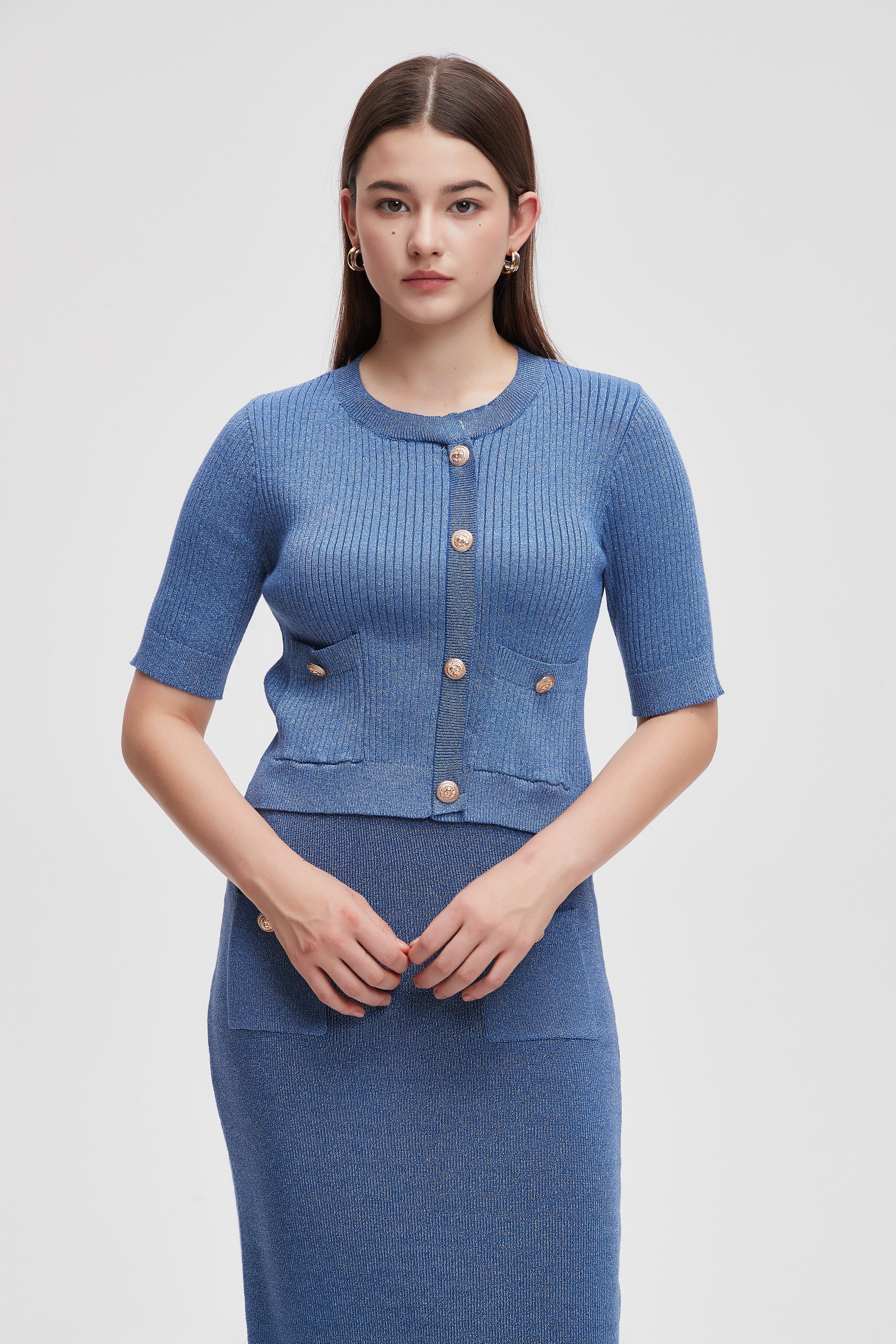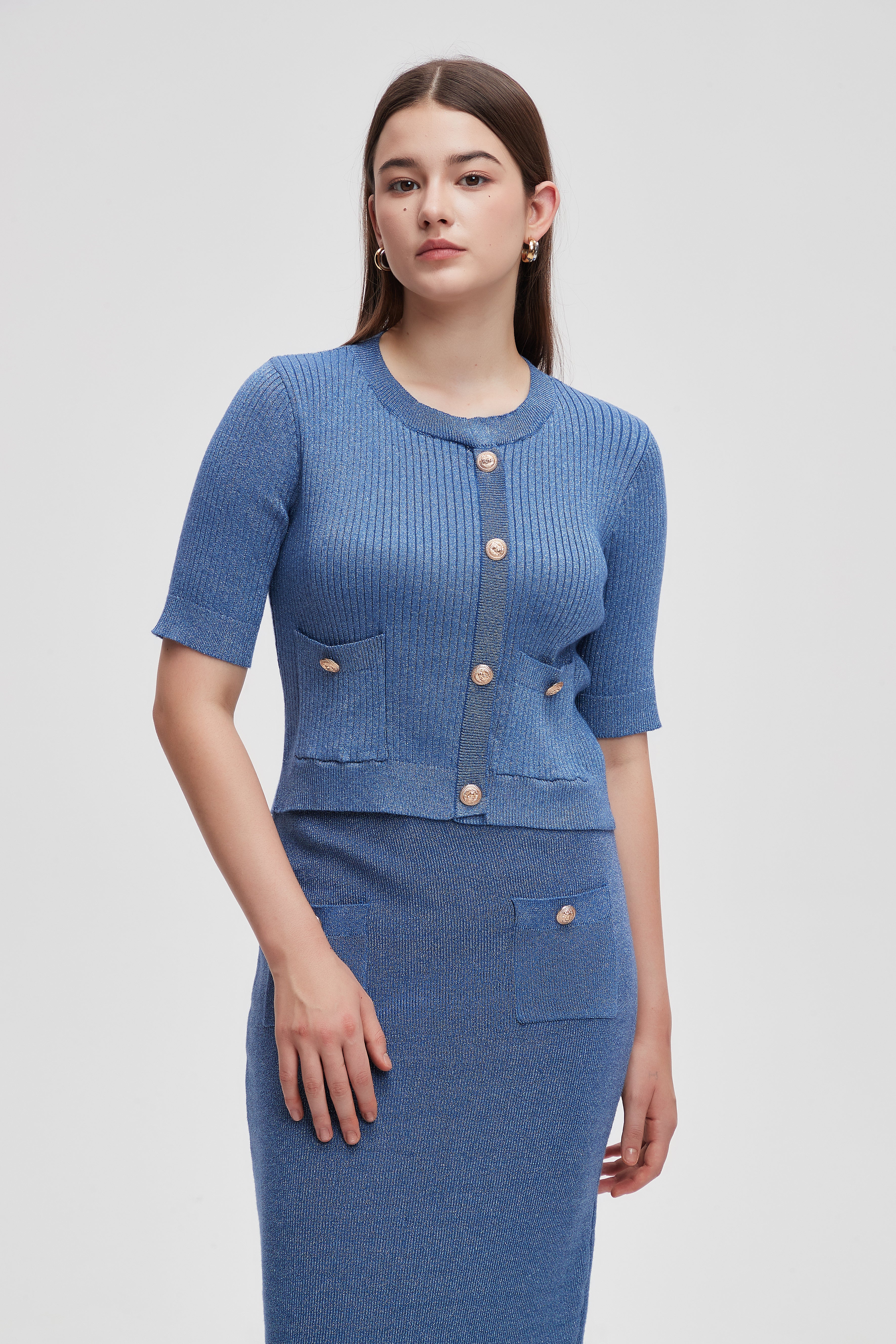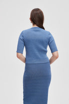 بلوزة بطول الخصر نصف كم مضلعة