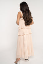 - العناية: اغسلي الفستان بماء بارد على دورة لطيفة مع ألوان مماثلة، لا تستخدمي مبيضاً. يفضل تعليق الفستان ليجف أو فرده مسطحاً وتجنبي حرارة نشافة عالية. اكوي على حرارة منخفضة إذا لزم.